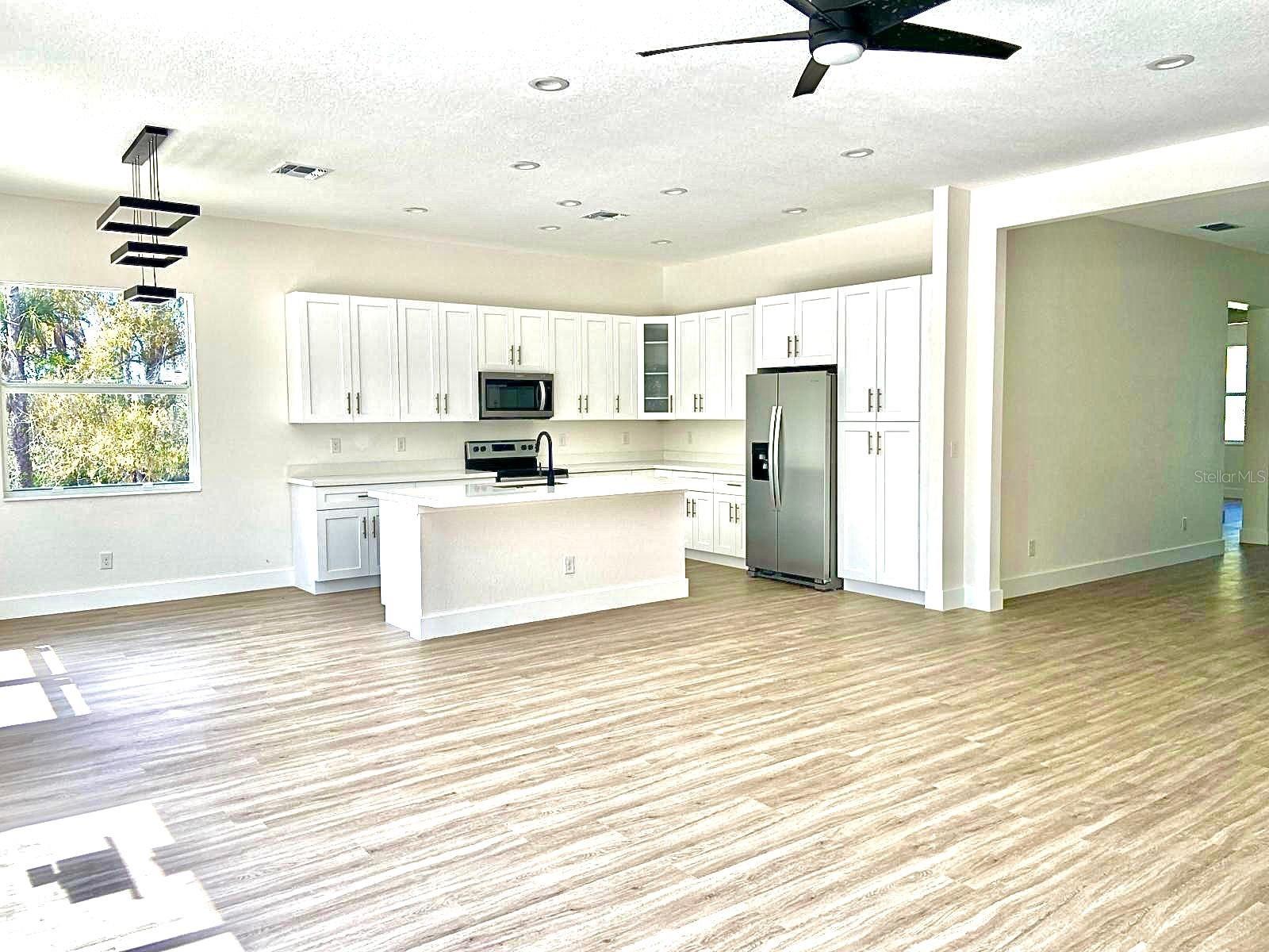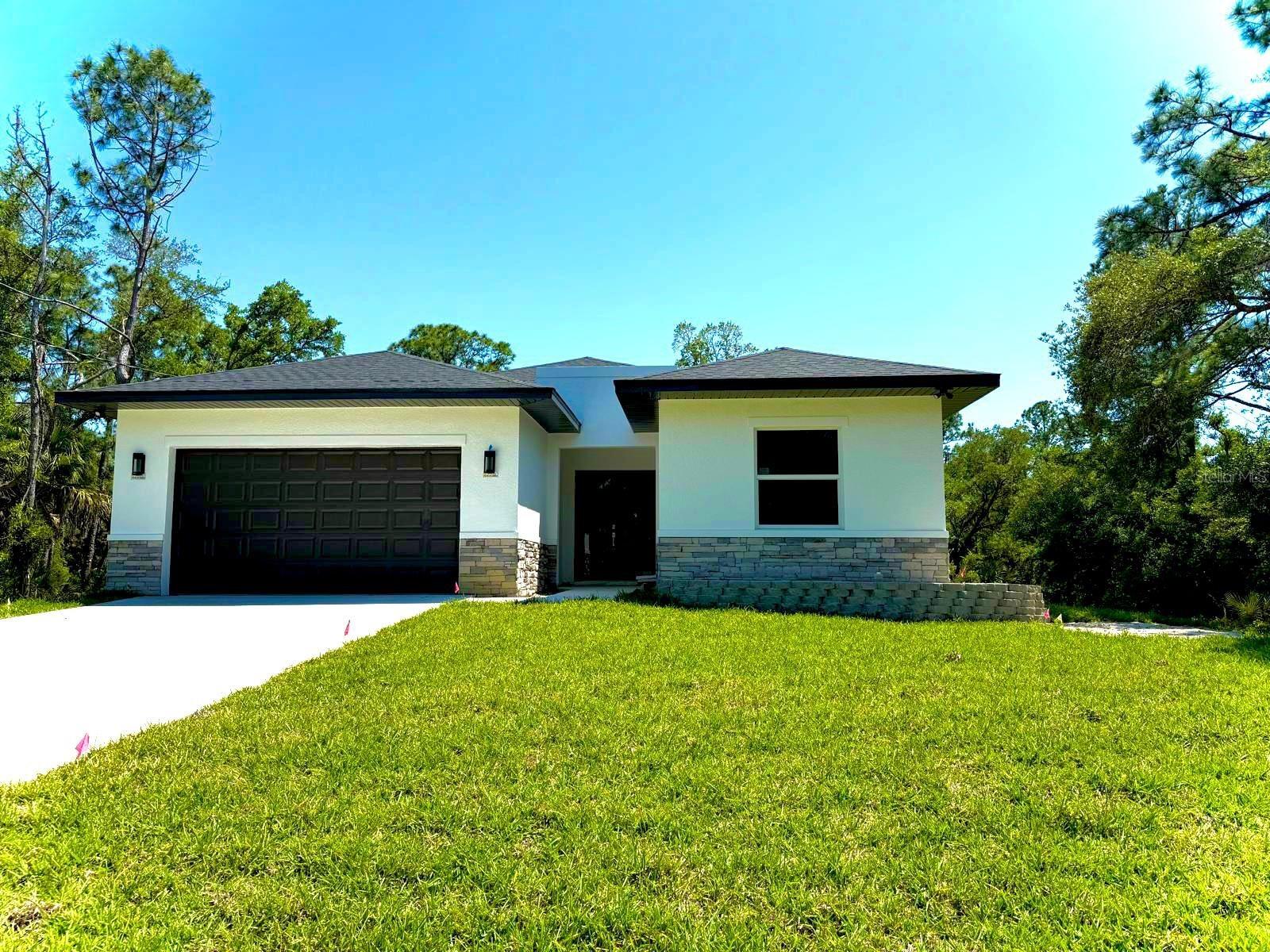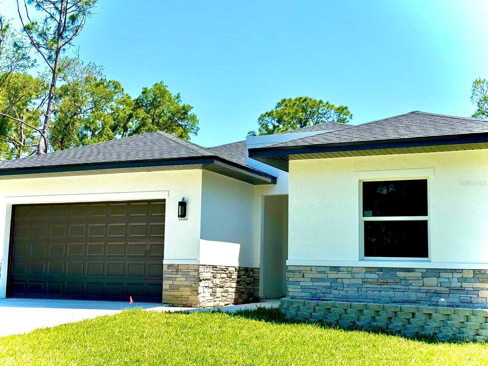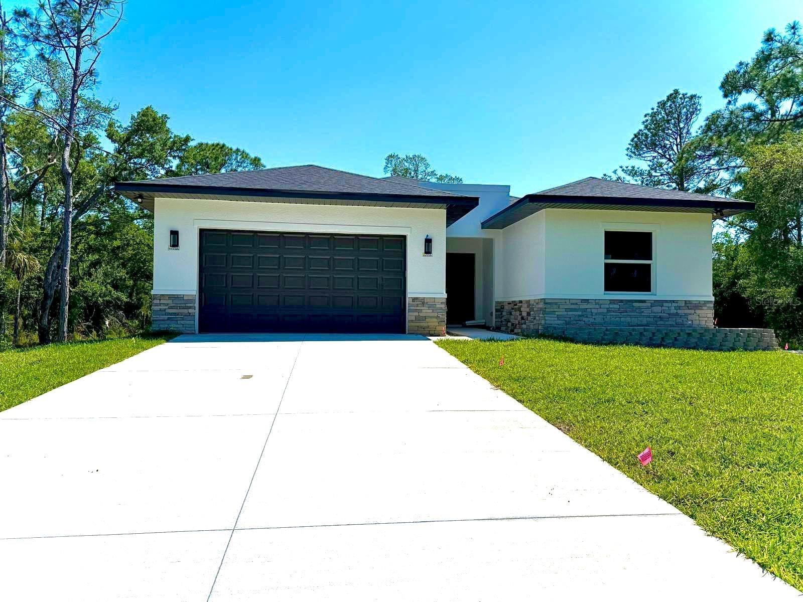 Under Construction. UNDER CONSTRUCTION! Estimated completion March 1, 2024. New three-bedroom, two-bathroom, two-car garage property. Behold a deal of your dreams! With 1,938 square feet, the entry foyer opens to the living room, dining and kitchen area; the perfect space to share with family and friends. Luxury vinyl floors and 6-inches baseboards throughout. The kitchen offers pristine quartz countertops, solid wood soft close cabinets with 42-inches upper cabinets, a 7-feet island, and modern stainless steel appliances worthy of a chef. The Principal Bedroom has a spacious walk-in closet and an extra closet for linens. The Master bathroom tiles have been carefully selected, from the soothing porcelain tile floors to the astonishing shower walls. Soak in tub and walk in shower with frameless shower enclosure. Solid wood vanities with quartz countertops and double sinks. Separate water closet. The split floor plan takes you to the other side featuring two large bedrooms with ceiling fans. The stunning 10 f-feet ceilings, impact front door, sliding glass doors and windows give this home elegance and openness. The laundry room has been prepared with dishwasher and dryer hook ups. The exterior of this property is as impressive as the interior. The dark two-car garage door, modern front door, and decorative stone are the final completing statements. Everything has been carefully thought out for your maximum enjoyment; irrigation system, water softener system, and a 1-year structural warranty. Don’t pass up this fantastic chance to own a home that is a great treasure.