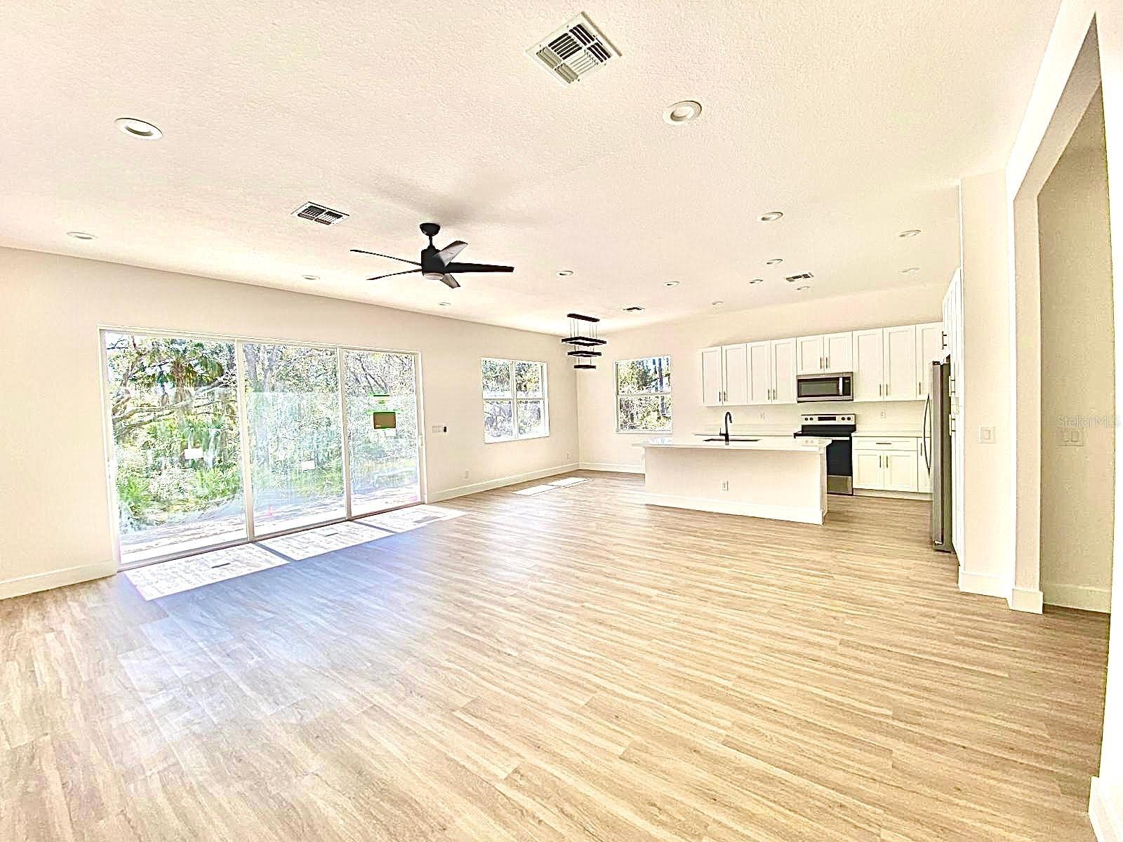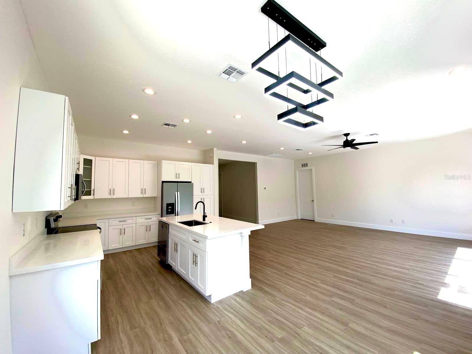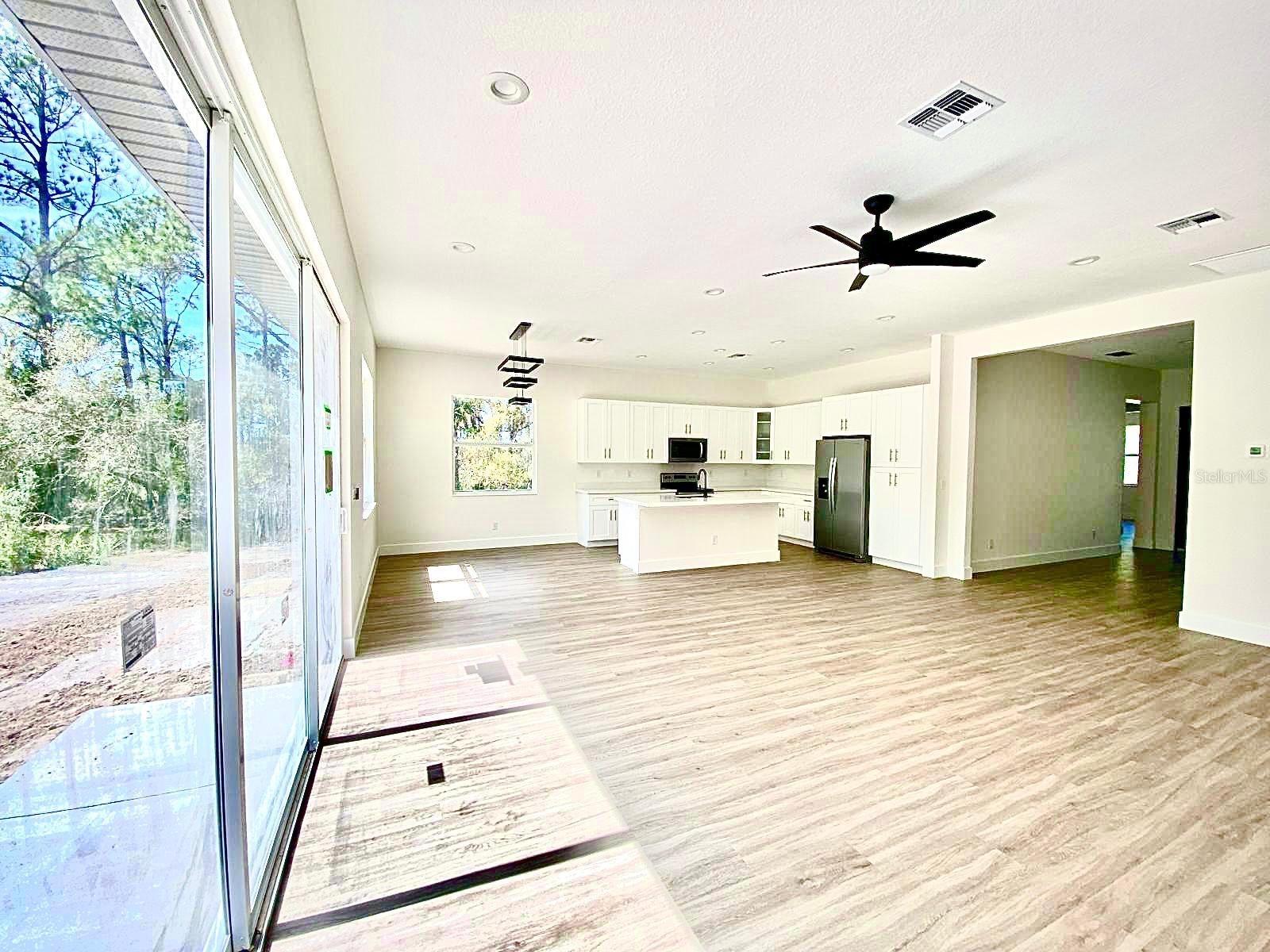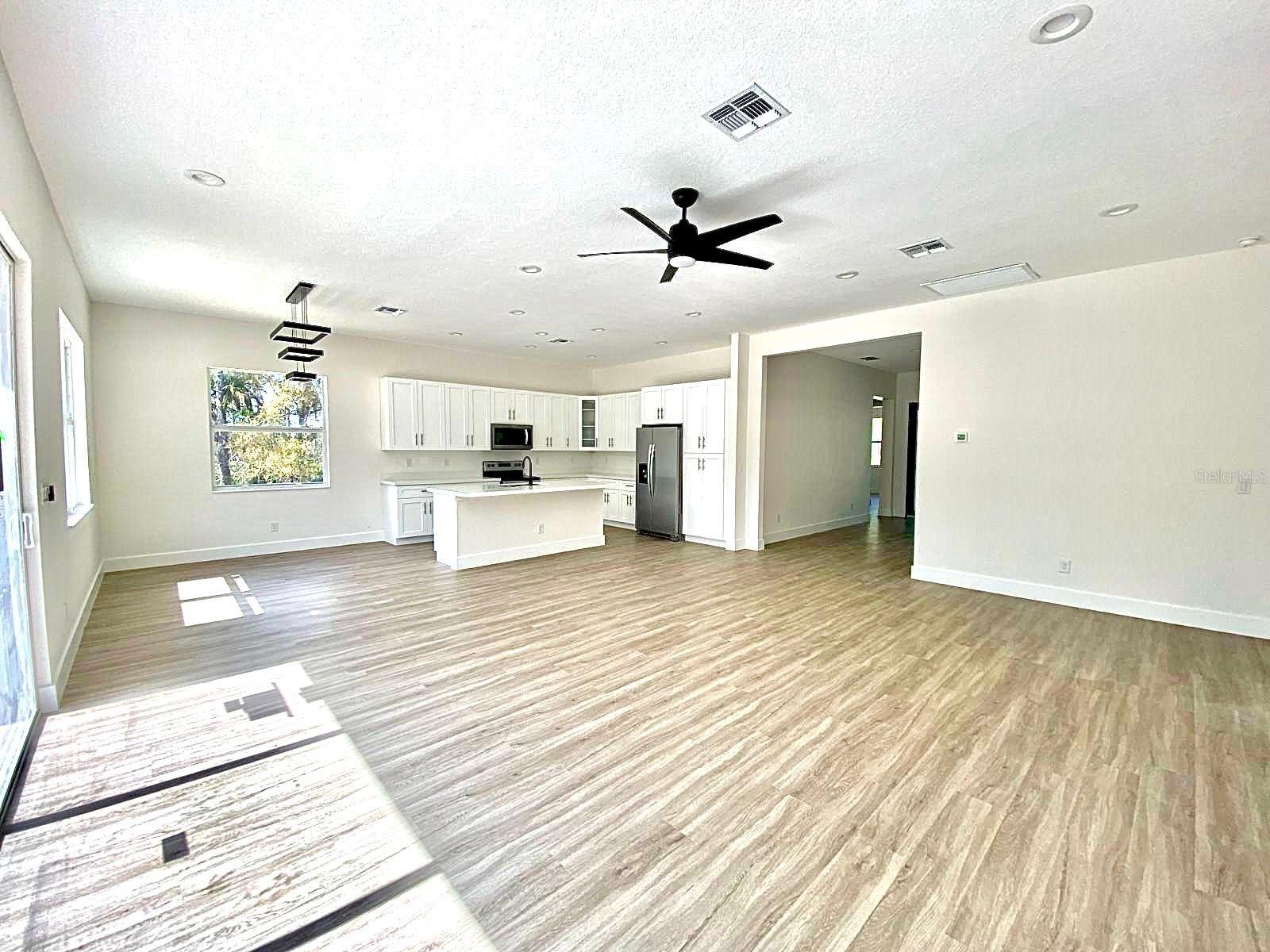 Under Construction. UNDER CONSTRUCTION! Estimated completion March 1, 2024. New three-bedroom, two-bathroom, two-car garage property. Behold a deal of your dreams! With 1,938 square feet, the entry foyer opens to the living room, dining and kitchen area; the perfect space to share with family and friends. Luxury vinyl floors and 6-inches baseboards throughout. The kitchen offers pristine quartz countertops, solid wood soft close cabinets with 42-inches upper cabinets, a 7-feet island, and modern stainless steel appliances worthy of a chef. The Principal Bedroom has a spacious walk-in closet and an extra closet for linens. The Master bathroom tiles have been carefully selected, from the soothing porcelain tile floors to the astonishing shower walls. Soak in tub and walk in shower with frameless shower enclosure. Solid wood vanities with quartz countertops and double sinks. Separate water closet. The split floor plan takes you to the other side featuring two large bedrooms with ceiling fans. The stunning 10 f-feet ceilings, impact front door, sliding glass doors and windows give this home elegance and openness. The laundry room has been prepared with dishwasher and dryer hook ups. The exterior of this property is as impressive as the interior. The dark two-car garage door, modern front door, and decorative stone are the final completing statements. Everything has been carefully thought out for your maximum enjoyment; irrigation system, water softener system, and a 1-year structural warranty. Don’t pass up this fantastic chance to own a home that is a great treasure.
