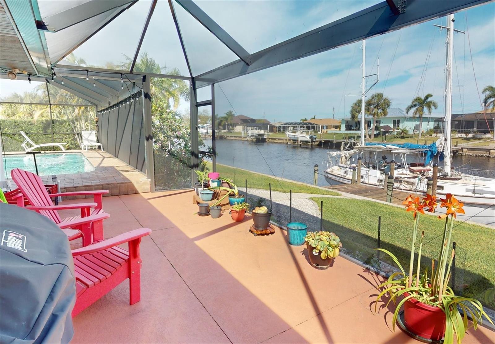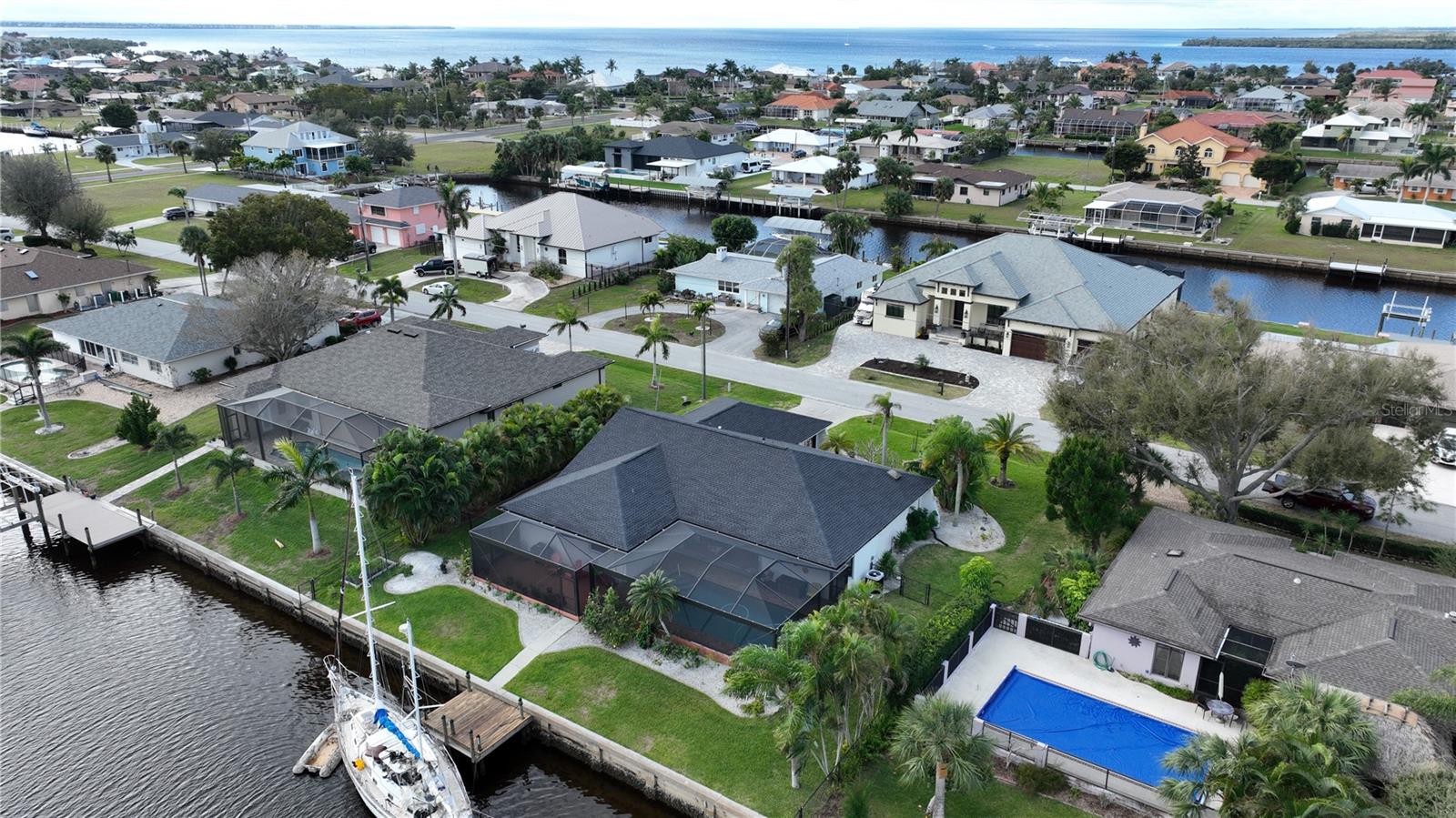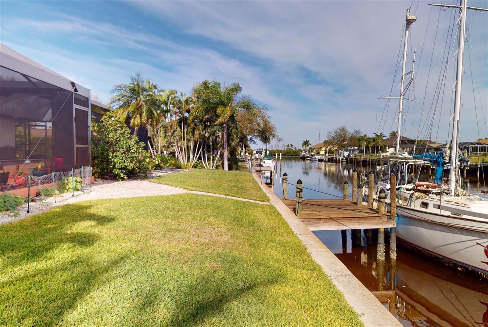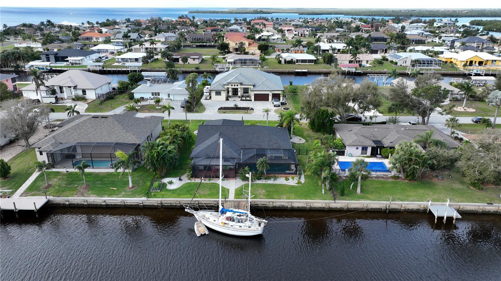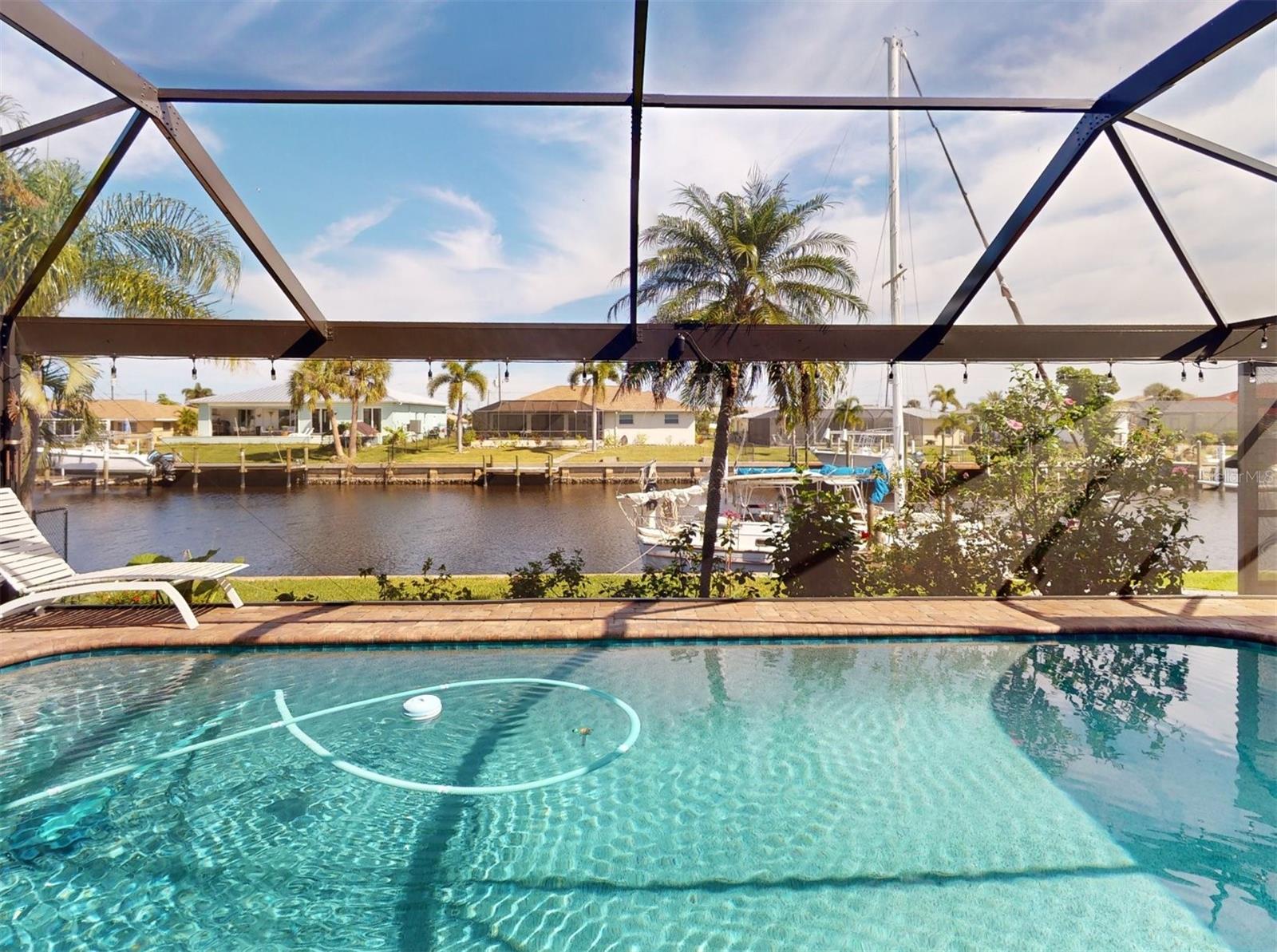 HUGE PRICE REDUCTION!! Start living the SW Florida lifestyle now! This sailboat access saltwater canal waterfront pool home located in the Buena Vista community has four bedrooms, two bathrooms. Ceramic tile floors are throughout. No HOA, The kitchen, completely renovated in 2021, has stainless appliances, a double wall oven, dark cabinets, granite countertops and a large island. The kitchen opens up to the family room, and the breakfast nook which has a view to the pool and canal. A separate living room area is located in the front of the house. The home has a split floor plan, so the primary and guest bedrooms are separated. The primary bedroom is roomy with double walk-in closets which lead into the primary bathroom with a walk-in shower. Both bathrooms underwent plumbing fixtures and toilet replacements in 2023. The lanai area is spacious with a pool and Pebble Tec resurfaced, pool deck pavers and pool heater installed and completed in 2021. The pool cage was replaced in 2022 and has two picture windows facing the canal. The unobstructed view is amazing! This home has more upgrades to include a roof 2023, dock boards, 6 impact windows installed in the family room, beds two, three and four in 2023 and the main electric panel upgrade 2021. The other windows and lanai have hurricane shutters. The grass in the front yard was replaced in 2023 with Florentine and the lawn sprinklers in 2017. This home is situated near The Port Charlotte Beach Park with amenities which include a fishing pier, boat ramp, beach, public heated pool, bocce ball, tennis/pickleball and basketball courts, play area, covered pavilion with grills, picnic tables and public restrooms. A boater's dream with quick no bridge water access from your dock to Charlotte Harbor which leads out to the Gulf of Mexico. Beautiful beaches, restaurants, shopping, golfing, resorts, and medical care are all close by. Viva la Buena Vida – Live the Good Life! Make sure to click on the Virtual Tour Link.