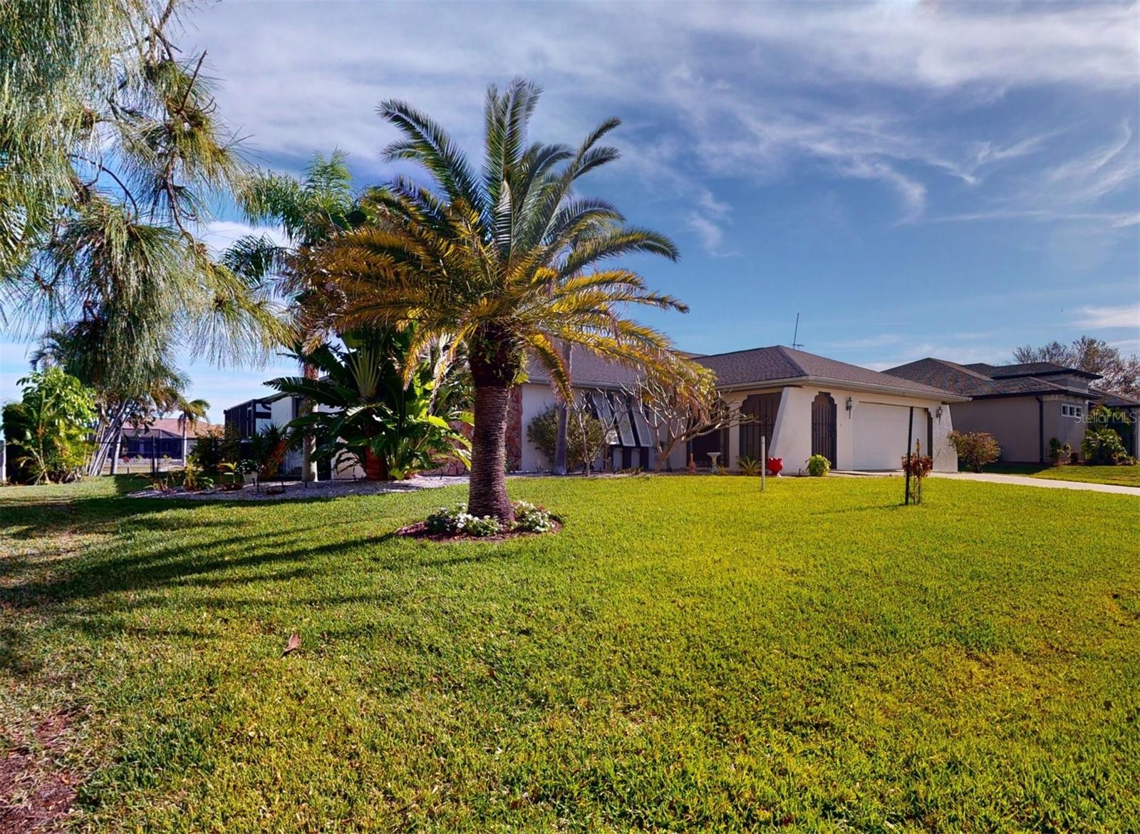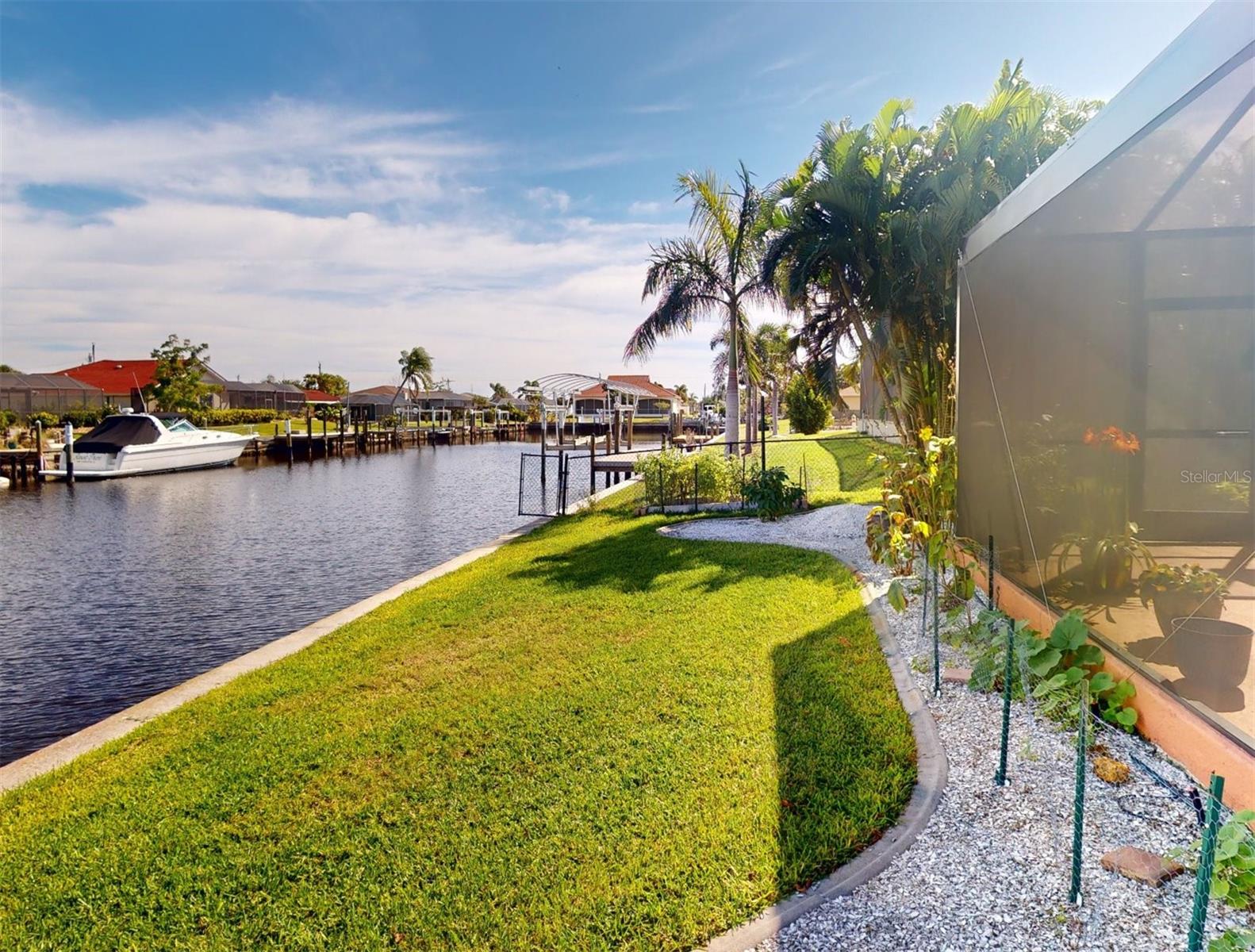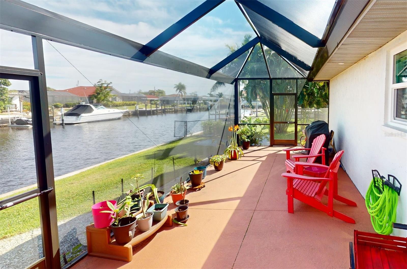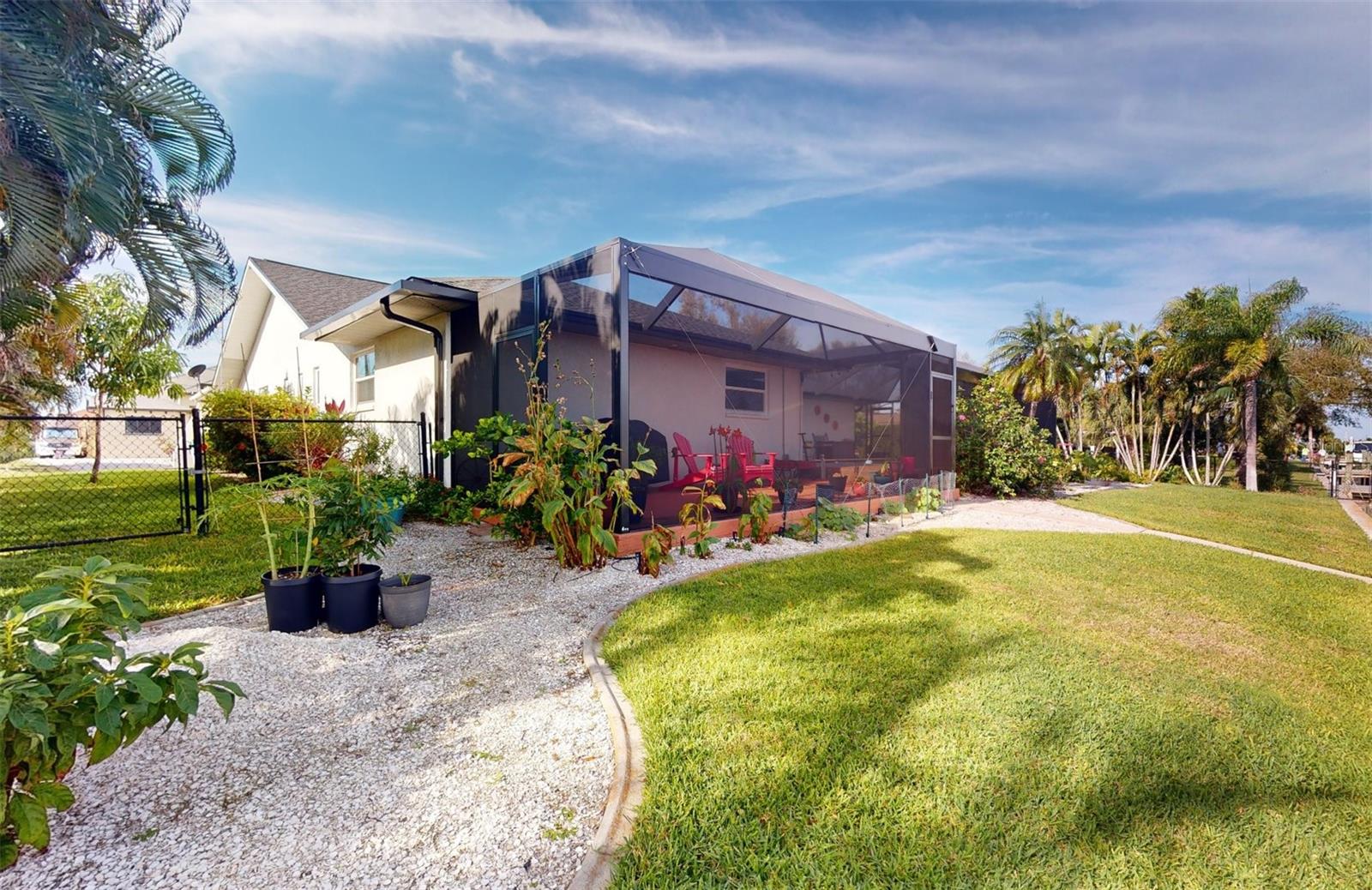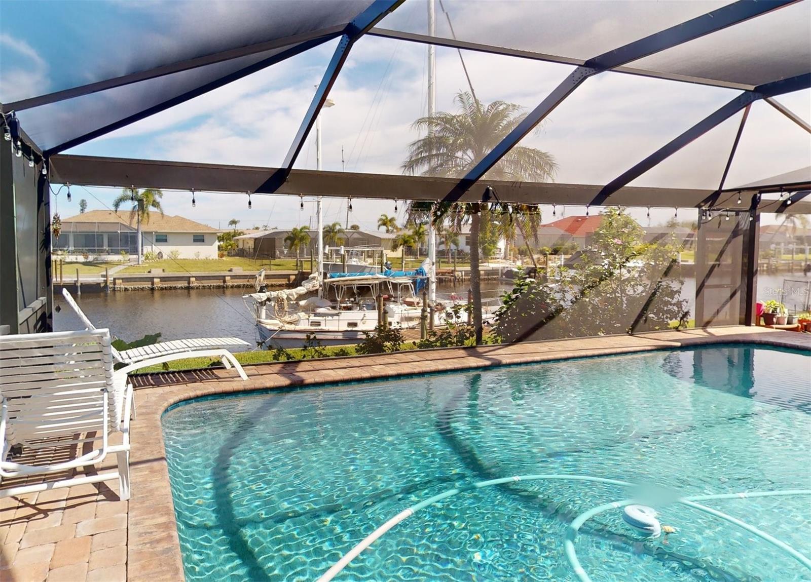 HUGE PRICE REDUCTION!! Start living the SW Florida lifestyle now! This sailboat access saltwater canal waterfront pool home located in the Buena Vista community has four bedrooms, two bathrooms. Ceramic tile floors are throughout. No HOA, The kitchen, completely renovated in 2021, has stainless appliances, a double wall oven, dark cabinets, granite countertops and a large island. The kitchen opens up to the family room, and the breakfast nook which has a view to the pool and canal. A separate living room area is located in the front of the house. The home has a split floor plan, so the primary and guest bedrooms are separated. The primary bedroom is roomy with double walk-in closets which lead into the primary bathroom with a walk-in shower. Both bathrooms underwent plumbing fixtures and toilet replacements in 2023. The lanai area is spacious with a pool and Pebble Tec resurfaced, pool deck pavers and pool heater installed and completed in 2021. The pool cage was replaced in 2022 and has two picture windows facing the canal. The unobstructed view is amazing! This home has more upgrades to include a roof 2023, dock boards, 6 impact windows installed in the family room, beds two, three and four in 2023 and the main electric panel upgrade 2021. The other windows and lanai have hurricane shutters. The grass in the front yard was replaced in 2023 with Florentine and the lawn sprinklers in 2017. This home is situated near The Port Charlotte Beach Park with amenities which include a fishing pier, boat ramp, beach, public heated pool, bocce ball, tennis/pickleball and basketball courts, play area, covered pavilion with grills, picnic tables and public restrooms. A boater's dream with quick no bridge water access from your dock to Charlotte Harbor which leads out to the Gulf of Mexico. Beautiful beaches, restaurants, shopping, golfing, resorts, and medical care are all close by. Viva la Buena Vida – Live the Good Life! Make sure to click on the Virtual Tour Link.