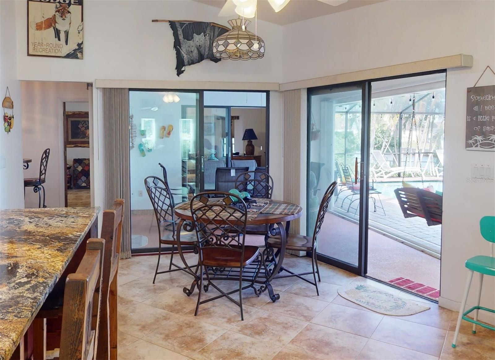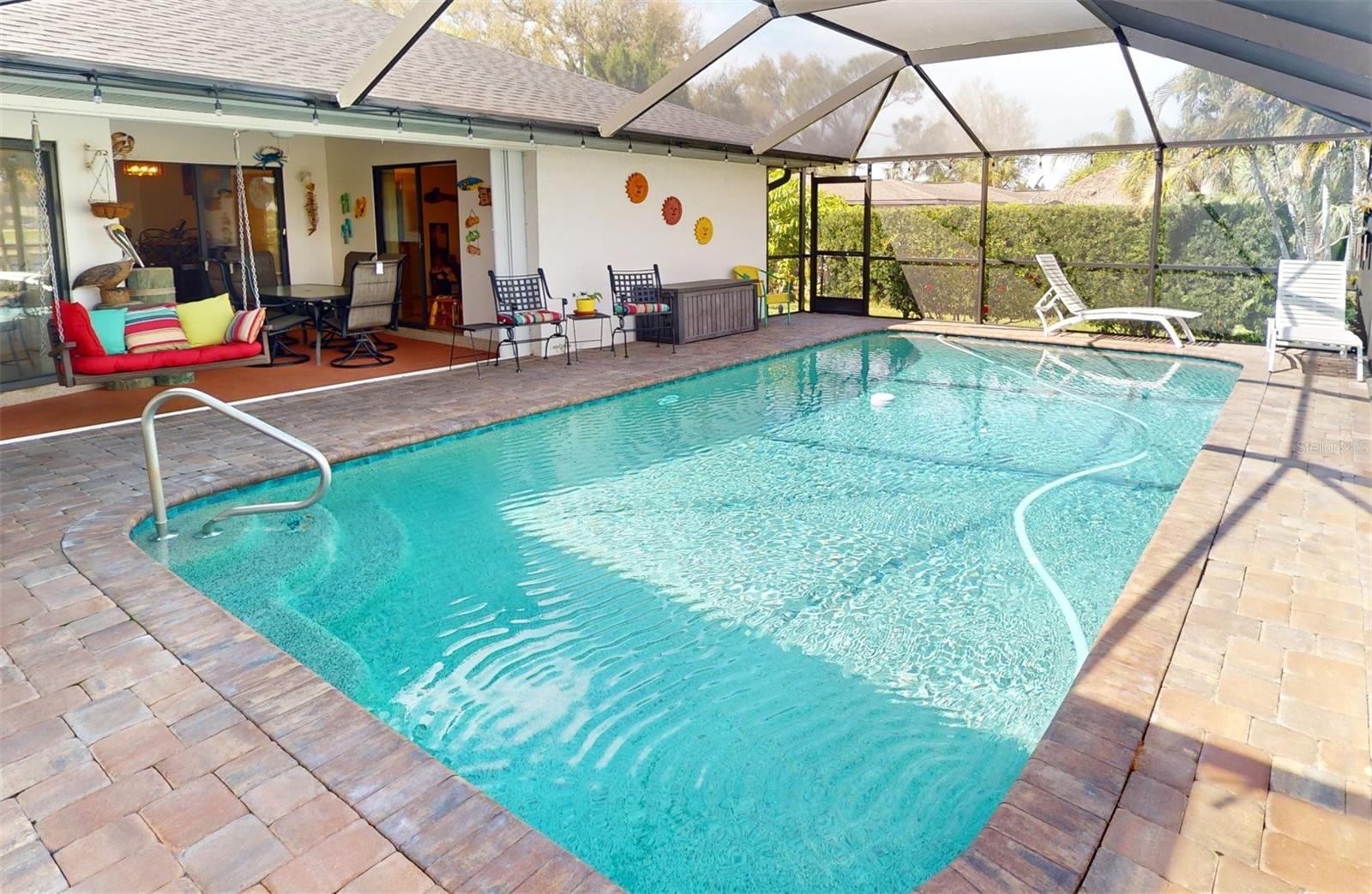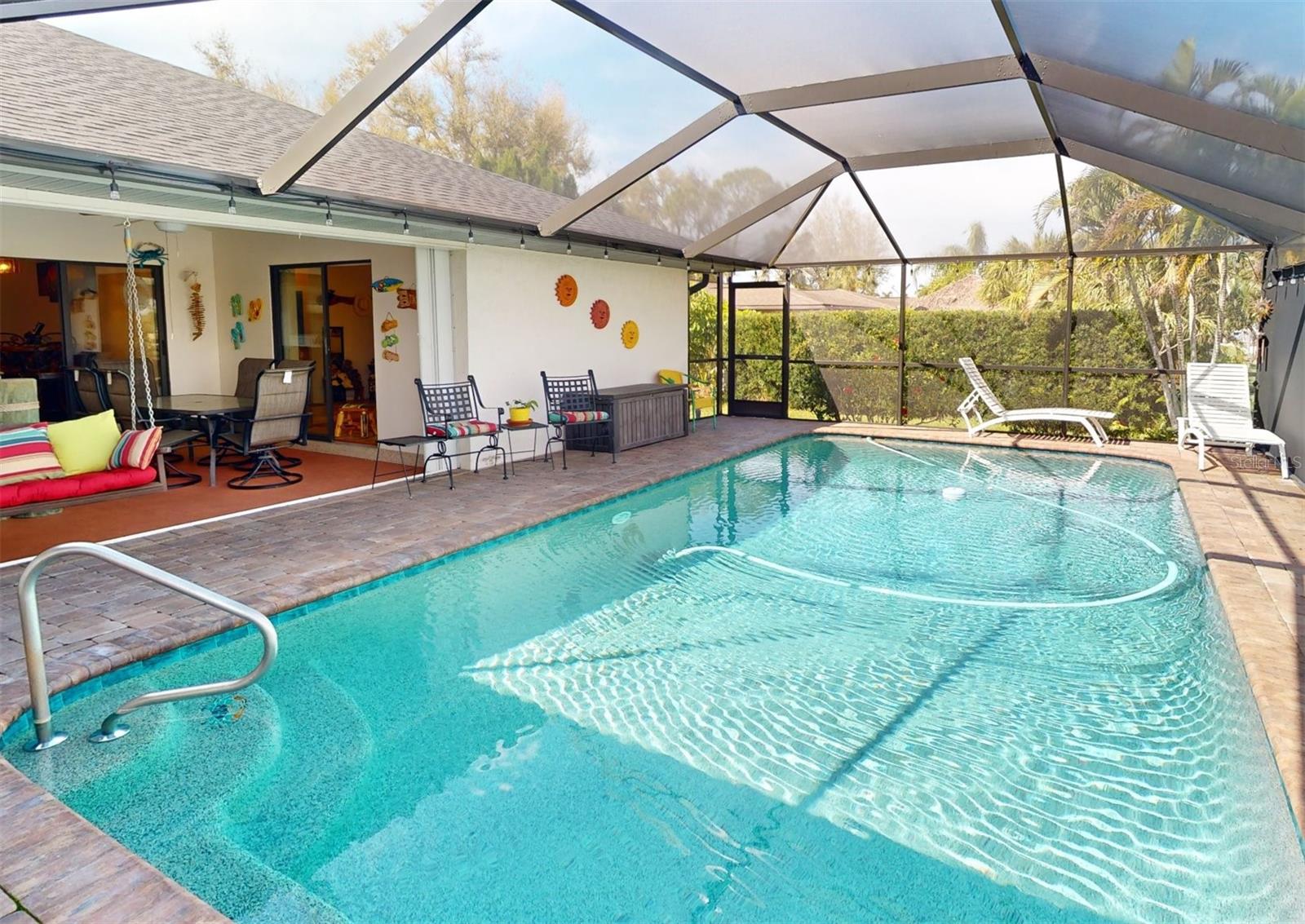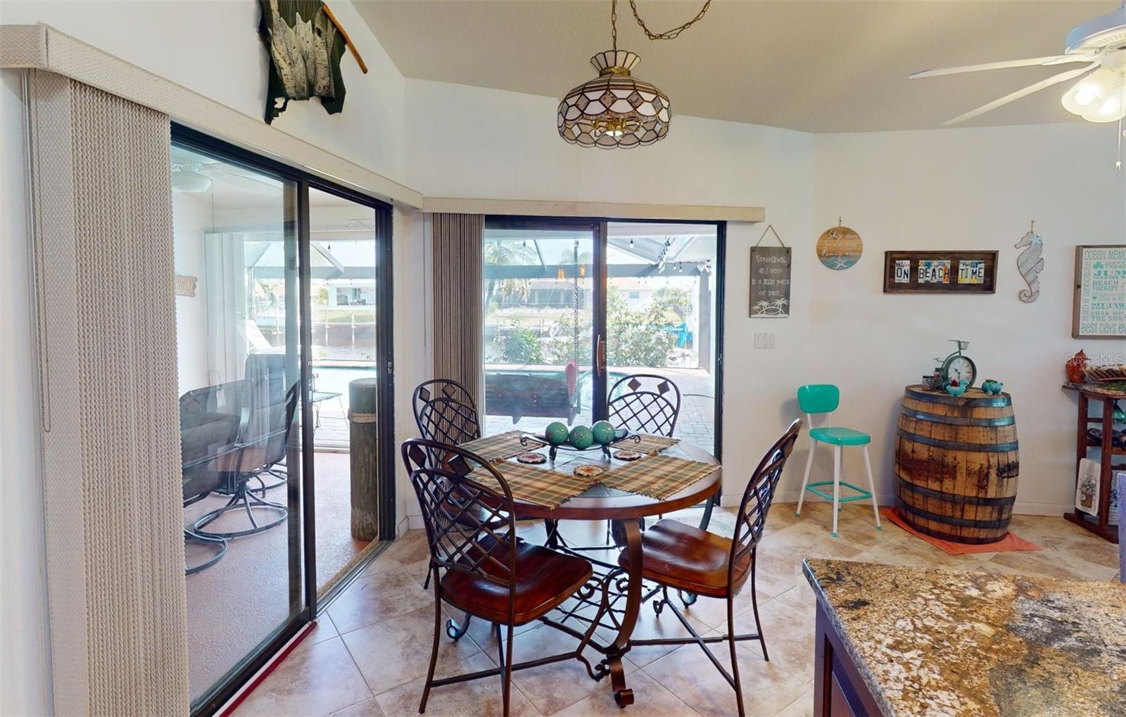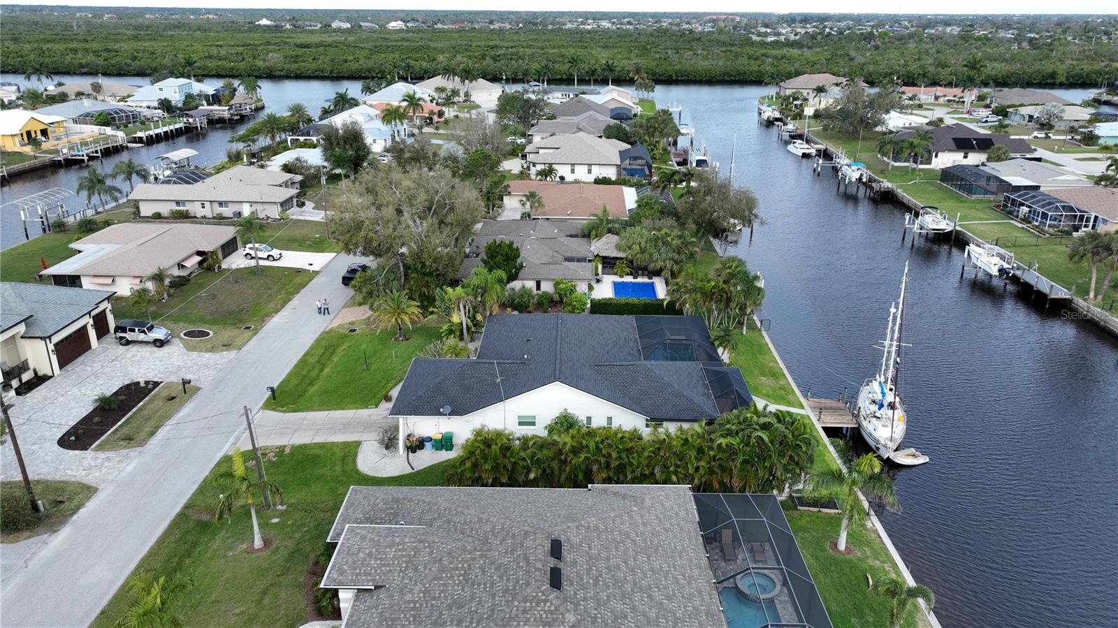 HUGE PRICE REDUCTION!! Start living the SW Florida lifestyle now! This sailboat access saltwater canal waterfront pool home located in the Buena Vista community has four bedrooms, two bathrooms. Ceramic tile floors are throughout. No HOA, The kitchen, completely renovated in 2021, has stainless appliances, a double wall oven, dark cabinets, granite countertops and a large island. The kitchen opens up to the family room, and the breakfast nook which has a view to the pool and canal. A separate living room area is located in the front of the house. The home has a split floor plan, so the primary and guest bedrooms are separated. The primary bedroom is roomy with double walk-in closets which lead into the primary bathroom with a walk-in shower. Both bathrooms underwent plumbing fixtures and toilet replacements in 2023. The lanai area is spacious with a pool and Pebble Tec resurfaced, pool deck pavers and pool heater installed and completed in 2021. The pool cage was replaced in 2022 and has two picture windows facing the canal. The unobstructed view is amazing! This home has more upgrades to include a roof 2023, dock boards, 6 impact windows installed in the family room, beds two, three and four in 2023 and the main electric panel upgrade 2021. The other windows and lanai have hurricane shutters. The grass in the front yard was replaced in 2023 with Florentine and the lawn sprinklers in 2017. This home is situated near The Port Charlotte Beach Park with amenities which include a fishing pier, boat ramp, beach, public heated pool, bocce ball, tennis/pickleball and basketball courts, play area, covered pavilion with grills, picnic tables and public restrooms. A boater's dream with quick no bridge water access from your dock to Charlotte Harbor which leads out to the Gulf of Mexico. Beautiful beaches, restaurants, shopping, golfing, resorts, and medical care are all close by. Viva la Buena Vida – Live the Good Life! Make sure to click on the Virtual Tour Link.