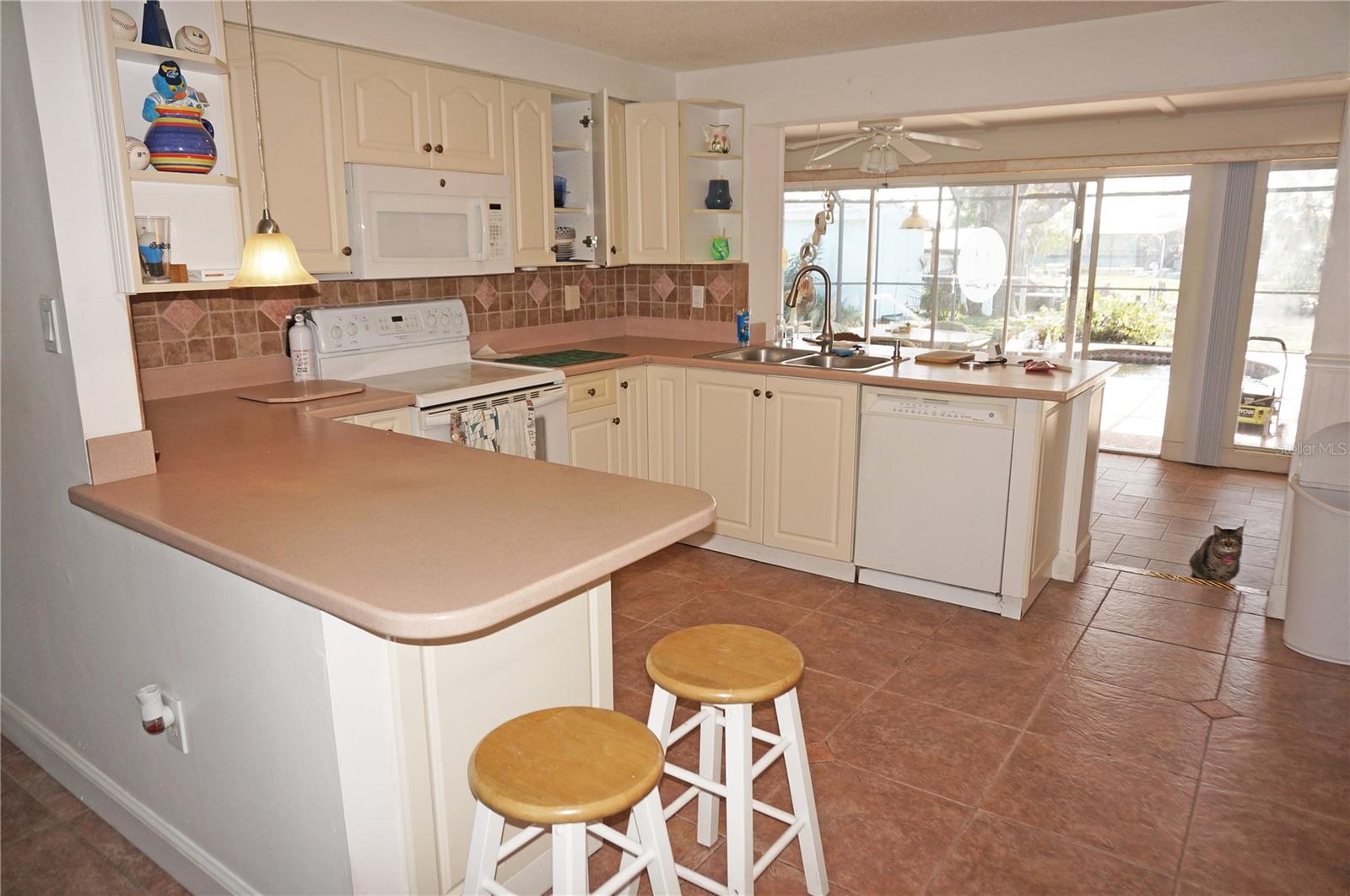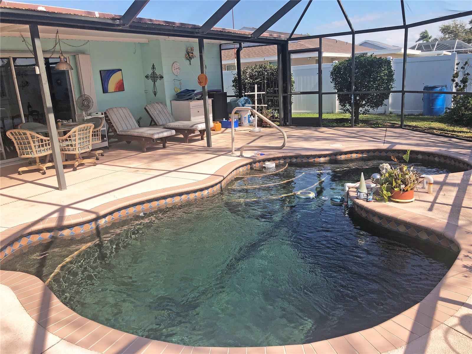 Spacious WATERFRONT POOL HOME 3 Bedrooms, 3 full bathrooms and attached 2 Car Garage. This home offers powerboat access to Charlotte Harbor and on to the Gulf of Mexico. 80 foot concrete seawall, concrete dock, water and electric, davits and waterfront wood deck. This light and bright home features an open and split bedroom floor plan with Living Room, well equipped Kitchen, Family Room with Dining Area and sliding glass doors to the Lanai. The Kitchen offers a breakfast bar, good counter and cabinet space, refrigerator, microwave, oven/range, dishwasher, disposal, Corian counters and opens to the Family Room. There is a huge Master Bedroom with laminate flooring, large windows, lanai access via sliding glass doors, large walk in closet and private bathroom with dual sinks and walk in shower. There is a second master suite and bedroom on the other side of the house. The generous sized bedroom has laminate flooring and double closet. There is a guest bathroom with a tub/shower combo. The second suite has a walk in closet, laminate flooring, access to the family room and private bathroom with walk in shower. The Garage offers a washer, dryer, laundry tub, side door, cabinets, refrigerator, pull down attic access, hurricane door. Your living space extends from the Family Room to the screened Lanai and pool area with heated inground pool, covered lanai, plenty of deck for sunbathing. There is a very spacious yard for your family and pets and a 12x10 storage shed with a porch. Other features include whole house hurricane protection, tile and laminate flooring, NEW ROOF 2021, county water and sewer, NO HOA. This home is 5 minutes from shopping, dining, medical care, entertainment and 10 minutes from historic downtown Punta Gorda. Also only 10 minutes to the Charlotte Sports Park, spring training home for the Tampa Bay Rays. This is what the Florida lifestyle is all about!
