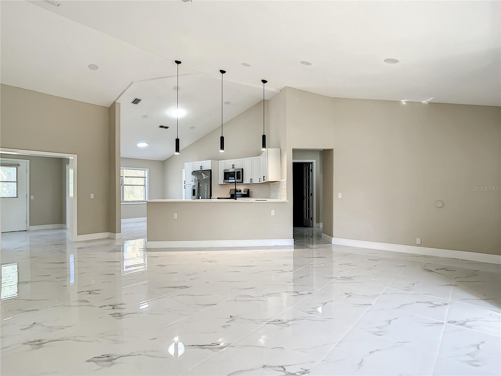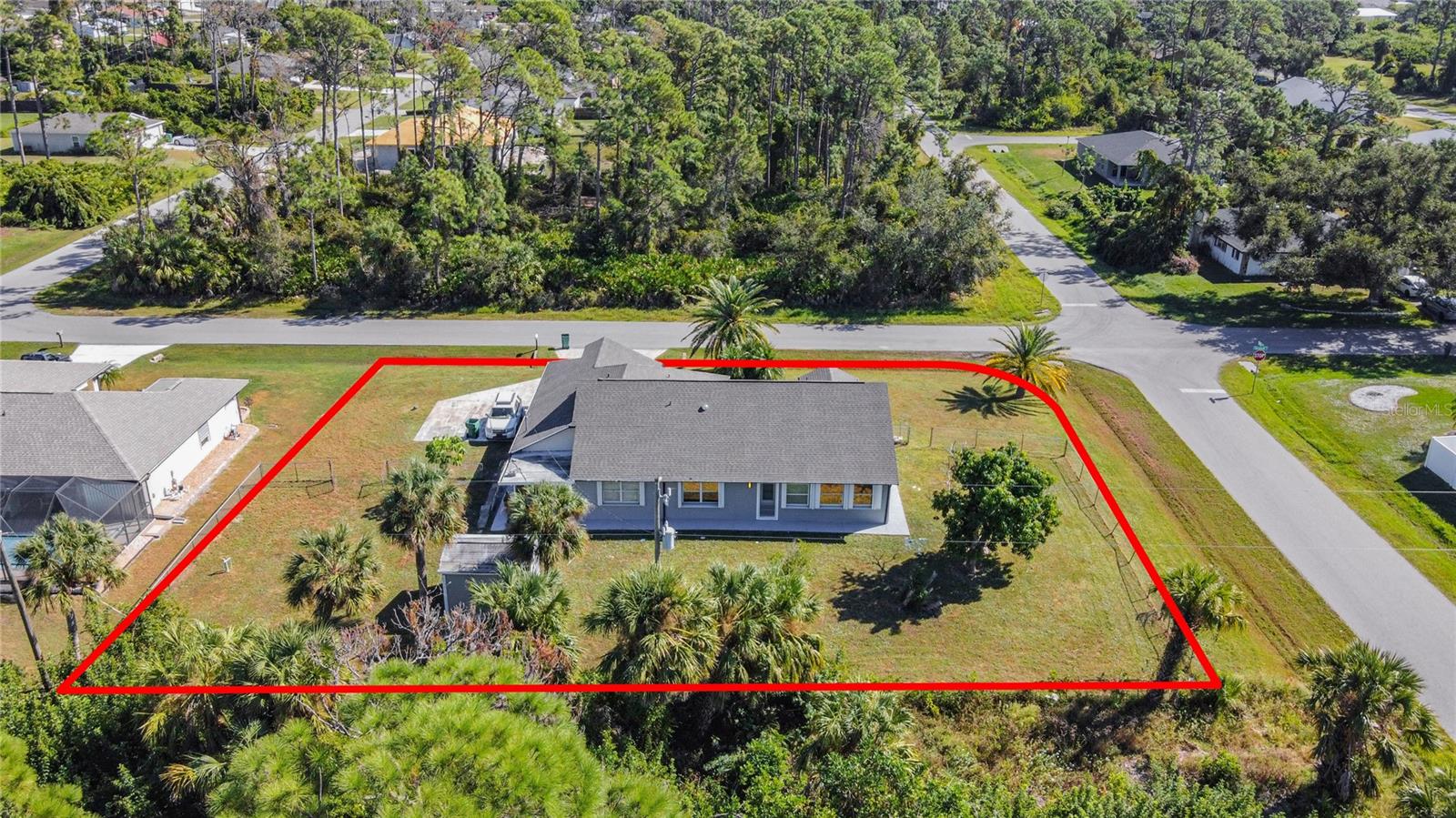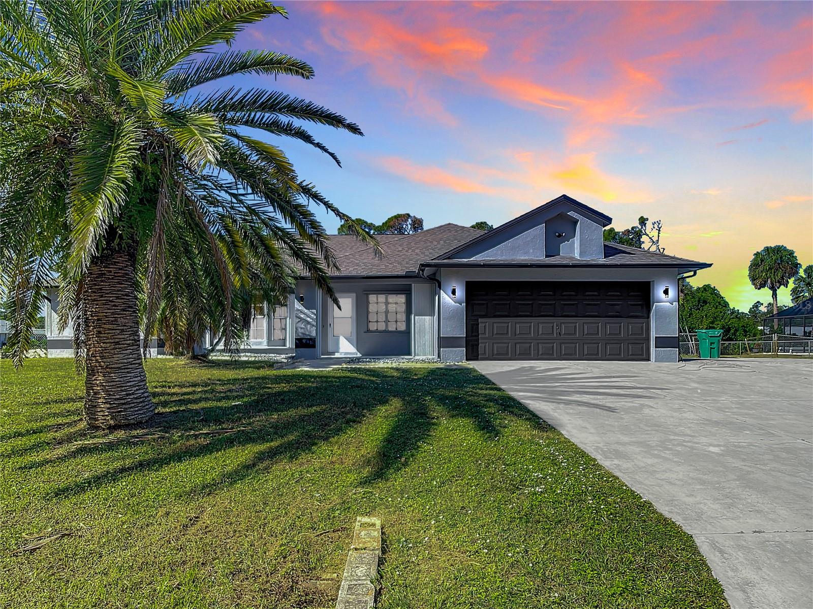 Welcome to this newly remodeled 4-bedroom, 3-bathroom, 2 car garage home. Situated on a spacious corner lot of nearly half an acre, this property offers modern living on a grand scale. The home features a den and a fenced-in yard, all on a non-flood zone lot. With a new kitchen, renovated bathrooms, stainless steel appliances, quartz counter-tops, 2021 roof, and porcelain tile flooring, this home is truly move in ready. The open floor plan seamlessly connects the living, dining, and kitchen areas. Additionally, the home includes role-safe shutters and a storage shed for added convenience. Extra poured concrete pad for RV, boat, or additional vehicle parking. Located in a NO HOA community and close to local beaches, shopping, restaurants, golfing and parks as well as a short drive to Downtown Historic Punta Gorda! Do not miss this opportunity! Schedule your private showing today.