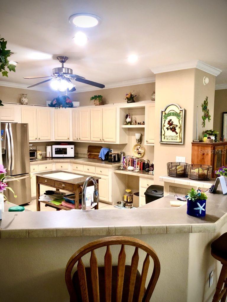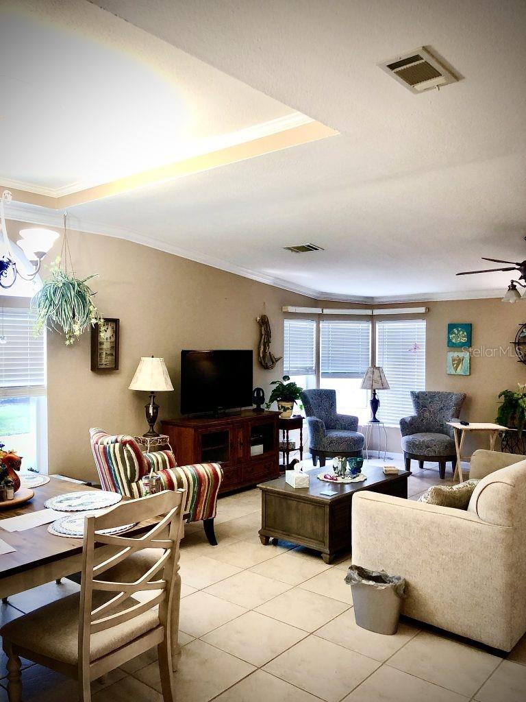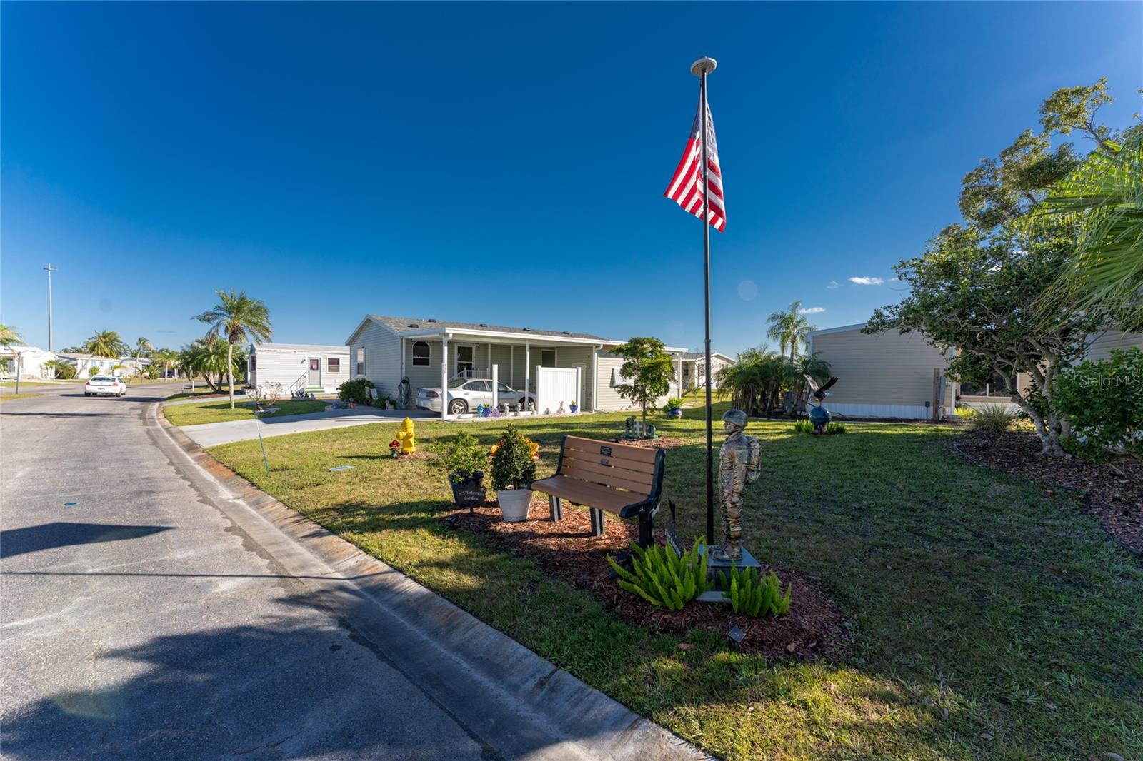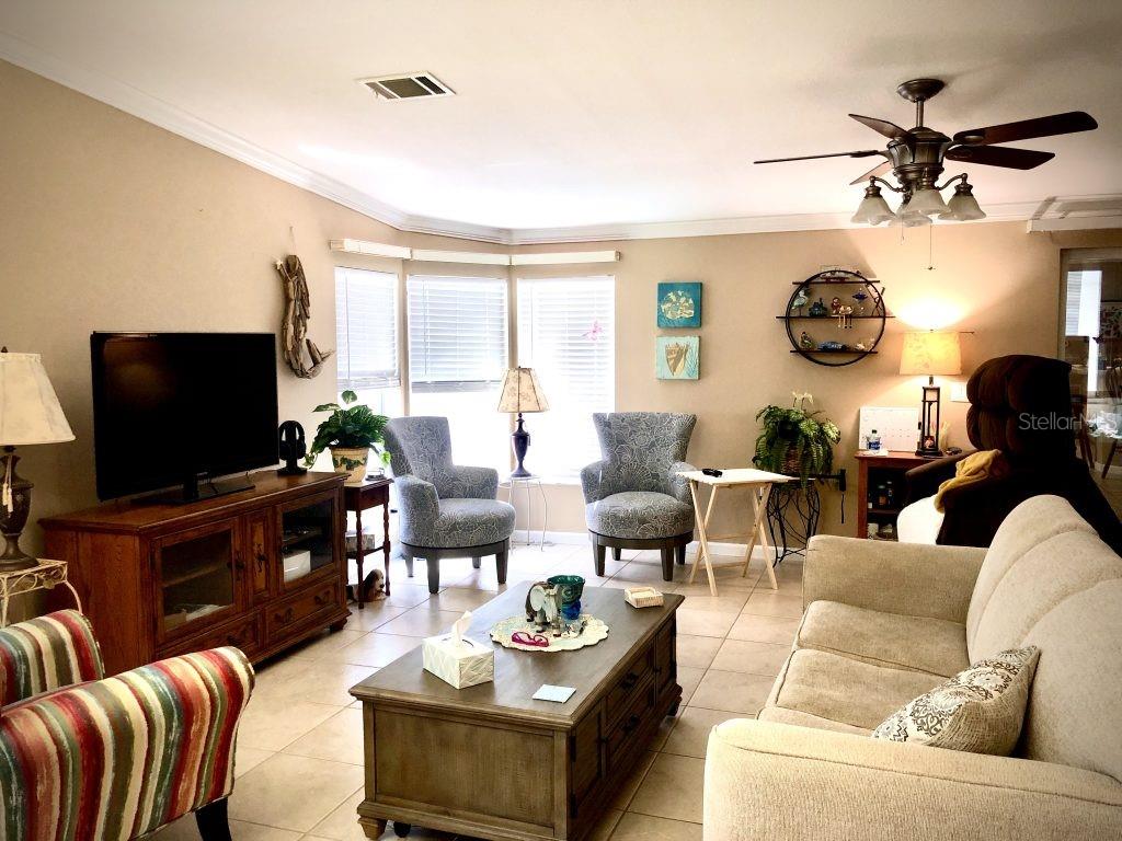 Winner of 2023 Best of Port Charlotte Mobile Home Parks! No downsizing required! This 2005-built TRIPLE-wide home features 1760 sq ft of open living space in pet-friendly Port Charlotte Village - an active, resident-owned 55+ community. The split floor plan offers 2 bedrooms with walk-in closets, 2 bathrooms and a study/den with French doors that could easily be a third bedroom.. The dream kitchen has plenty of counter space and cabinets, a walk-in pantry, stainless steel appliances (dishwasher, washer and dryer are new), bar top and garbage disposal. An enclosed raised porch off the living room adds additional entertaining space. Recent upgrades/repairs/replacements include a new roof in 2023, new A/C in 2023, siding, plywood sub-floor topped with luxury vinyl plank in primary bathroom, freshly painted ceilings and new landscaping. There is also a 1-car garage - ideal for a car, workspace, storage - plus a covered carport. This Community is on 86+ acres with three freshwater lakes. The monthly assessment includes the cost of water, sewer, Blue Stream cable tv and internet and lawn mowing. Flood insurance is not normally required! Recreational activities, special trips and events abound. Conveniently located to shopping, dining, hospitals, golf courses and I-75. Perfect opportunity to live in Paradise!