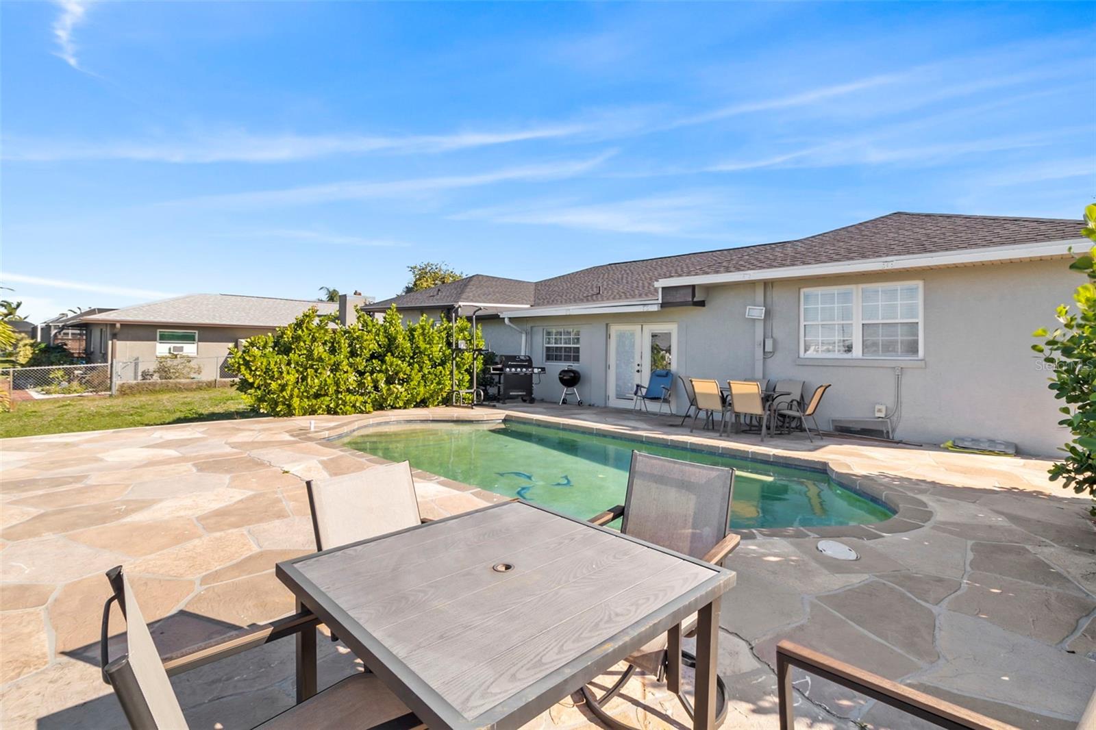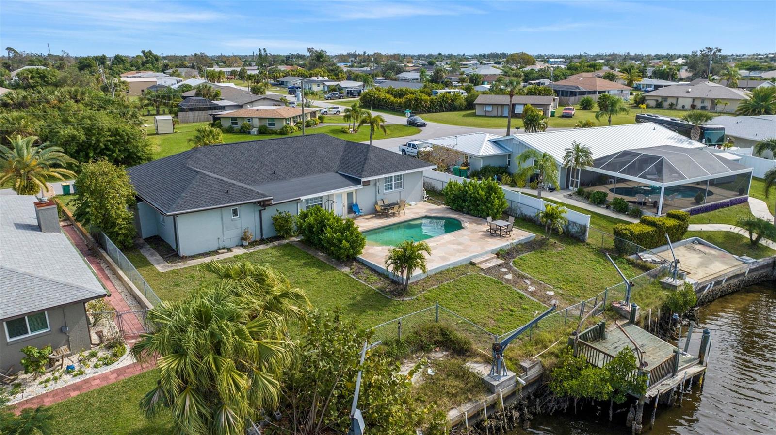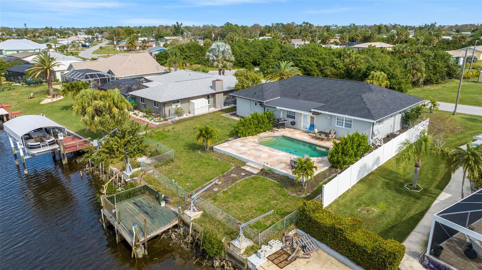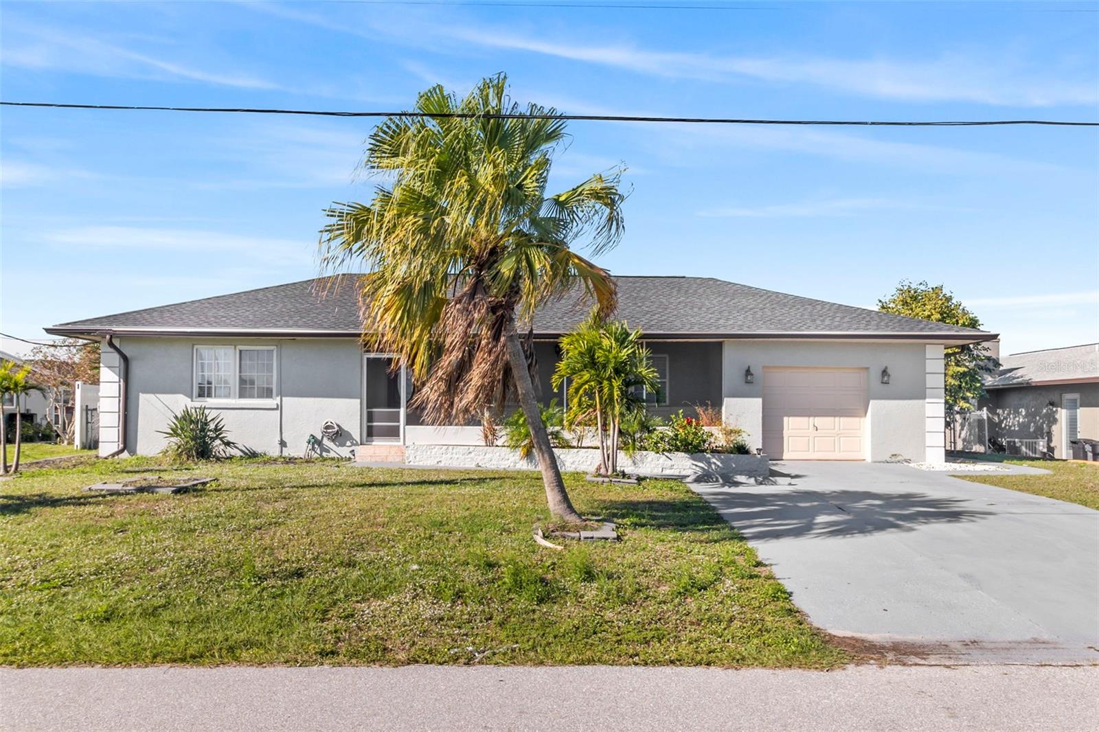 Waterfront pool home with dock and easy access to the open water of Charlotte Harbor and the Gulf of Mexico. Deep water canal with only one bridge to access open water (Bridge approx. height 11ft+ depending on tide). Three bedrooms, 3 full bathrooms, Master suite with private full bath, walk-in shower, and large closet. Bedrooms 2 & 3 are spacious with large closets. Spacious and nicely equipped kitchen with wood cabinets and granite countertops. Updated appliances. t the home with tile in the family room, kitchen, and baths. Ample dining area. Large family room with French doors that allow for direct access to the pool and boat dock. Spoil yourself sunbathing at the pool while enjoying the water view. The pool area was designed with entertaining in mind with a large 35x35 screened area around the 14x28 pool. Mature landscaped grounds with fruit trees. City water and sewer. Fenced-in backyard. The home is centrally located near golf courses, beaches, restaurants, medical facilities, baseball spring training & all the area's amenities. NEW ROOF AND FLOOR TILES.. PERFECT for SEASOAL RENTAL!