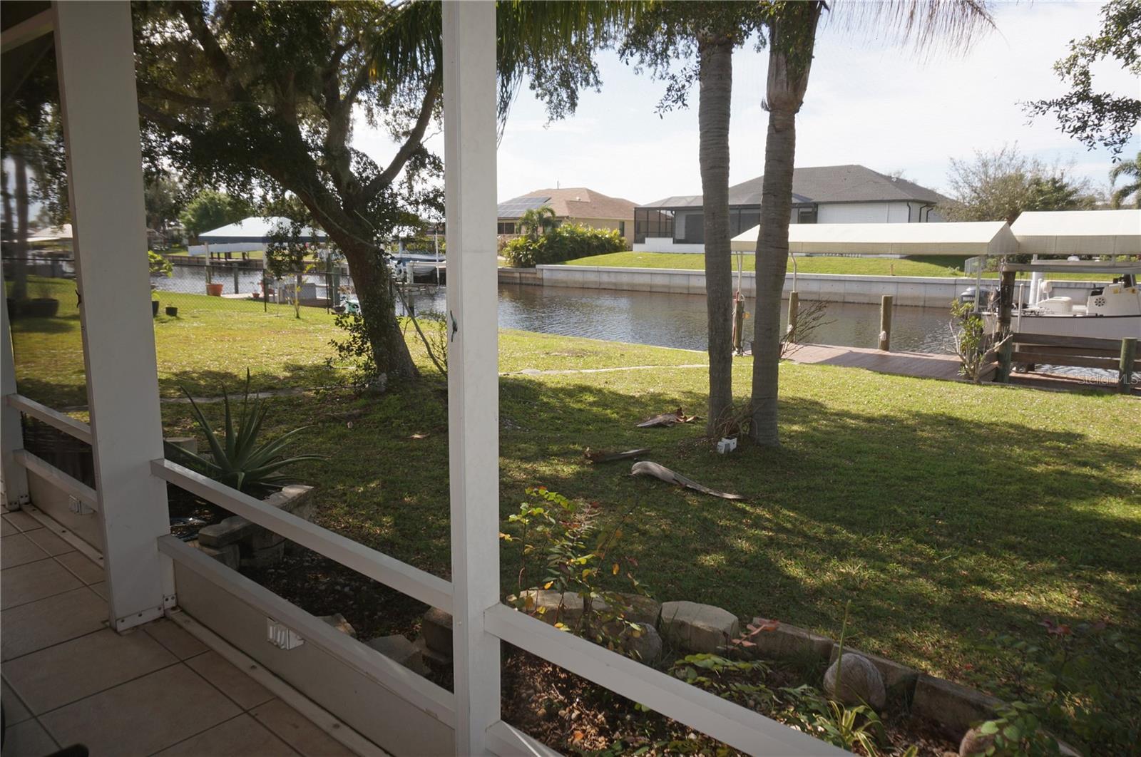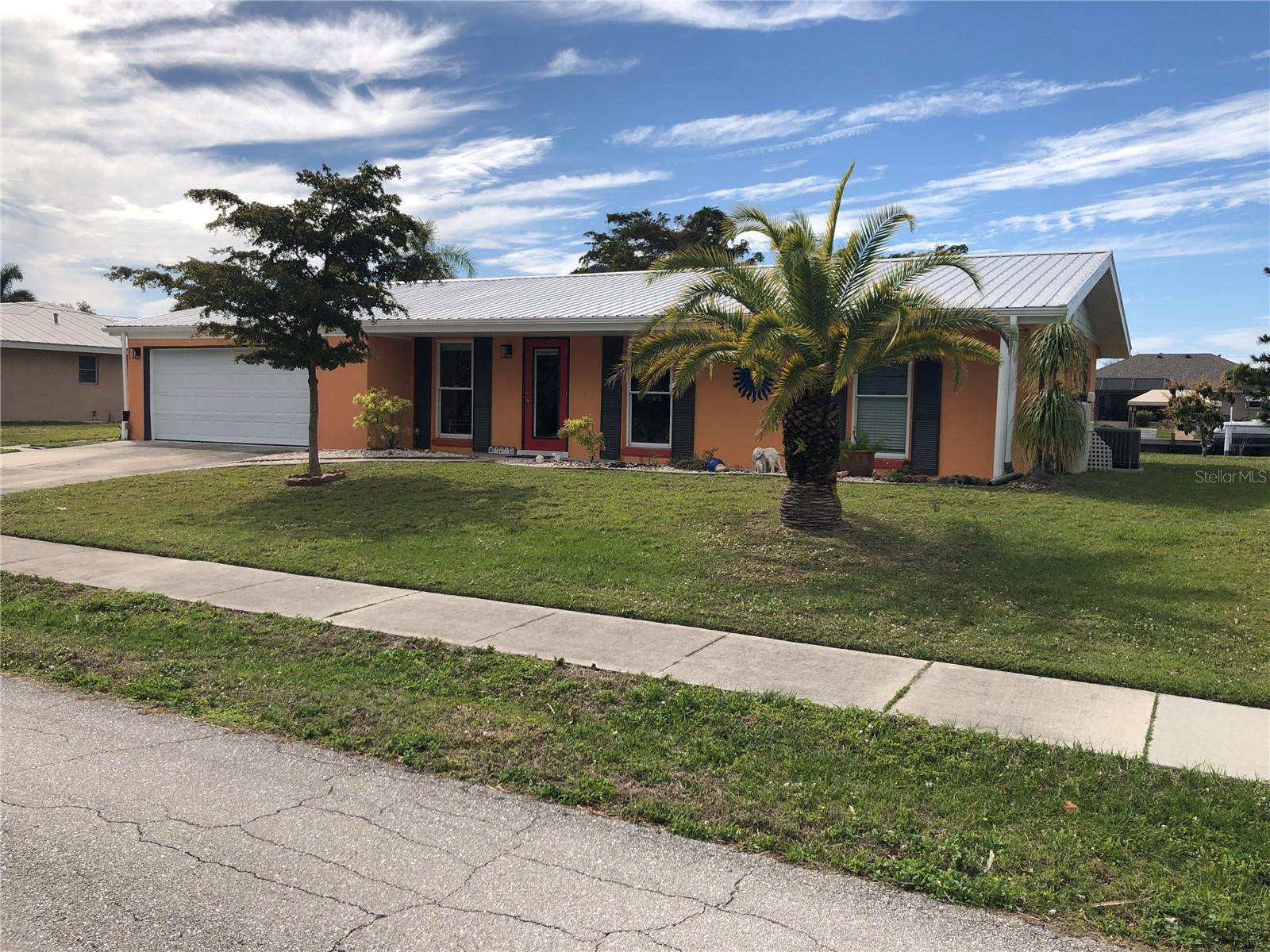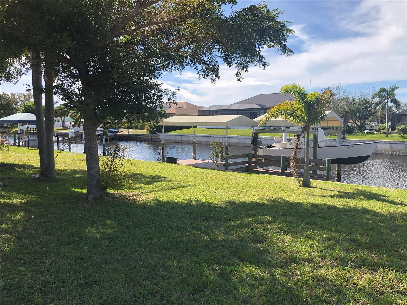 Delightful WATERFRONT home offers QUICK SAILBOAT ACCESS to Charlotte Harbor and on to the Gulf of Mexico. Located on a quiet street yet two minutes from all amenities. Don't let the age fool you! This home has beautiful design features throughout including original terrazzo floors in the Kitchen and 2 bedrooms. This light and bright home offers a Great Room, well appointed Kitchen, large Family Room, large Inside Laundry Room, 3 Bedrooms, 2 full Bathrooms and attached 2 Car Garage. The Great room features separate Dining Room and Living room areas, lots of natural light and wood laminate flooring. The Kitchen has a cooktop with hood, Refrigerator, dishwasher, breakfast bar, stainless farmhouse sink and white cabinetry. The Kitchen opens to the 24x12 Family Room in the rear of the home. The Inside Utility has front loading washer and dryer, large storage closet and plenty of additional space for cabinets or storage. There are three generous sized bedrooms with great closet space. The Master Bedroom has a private bathroom with walk in shower and vanity with vessel sink. The guest bathroom has a tub/shower combo. Your living space extends via French doors to the 24x12 screened Lanai with tile flooring. Continue to the waterfront with concrete seawall, covered wood dock and boat lift. Utilities are public water and public sewer. NO HOA. This home is minutes from shopping, dining, medical care, entertainment, Port Charlotte Beach Complex with tennis courts, basketball courts, playground, bocce courts, volleyball courts, HEATED SWIMMING POOL and more. Only 15 minutes to the Charlotte Sports Park, spring training home for the Tampa Bay Rays. This home is the Florida lifestyle at its best!