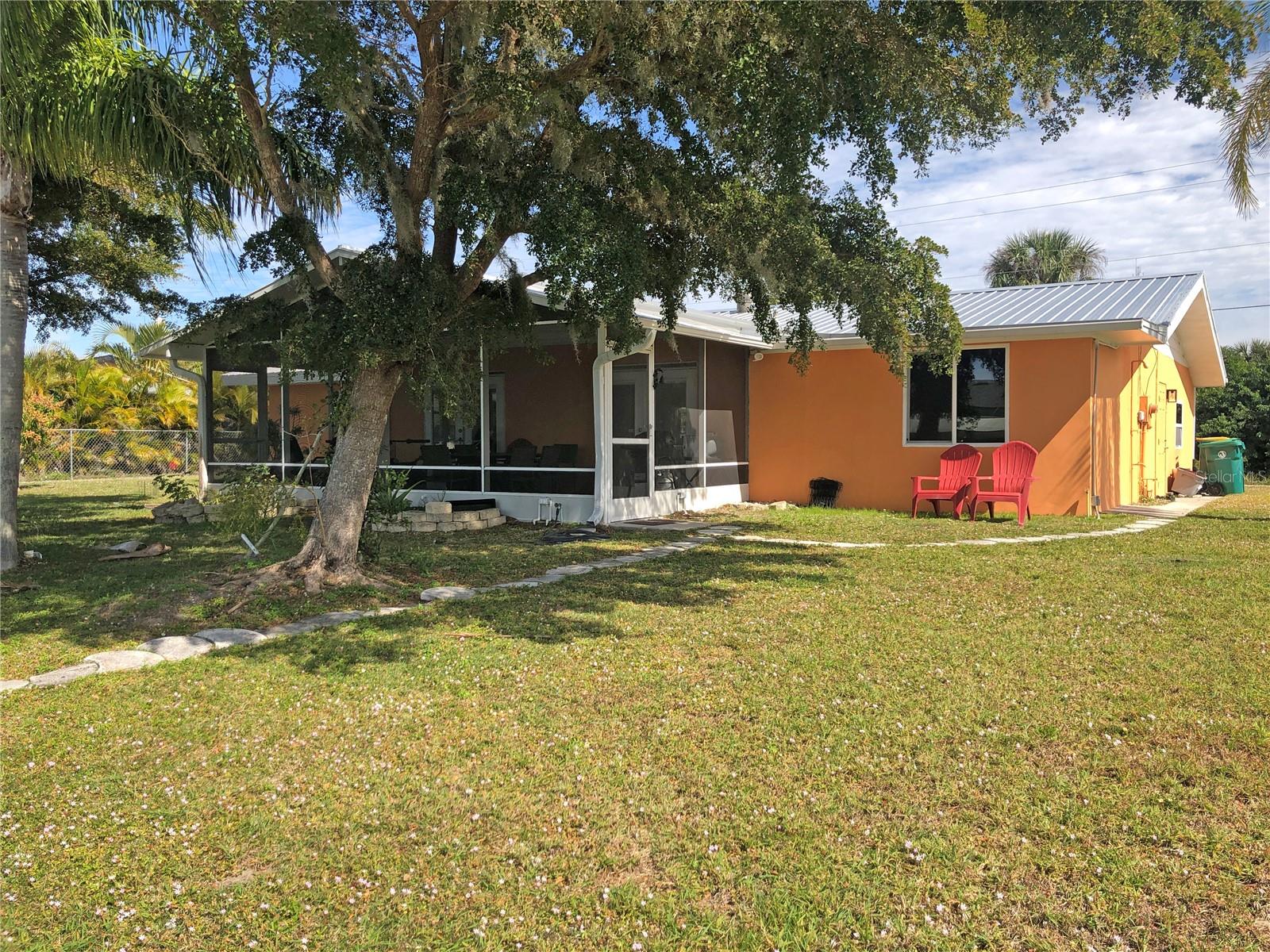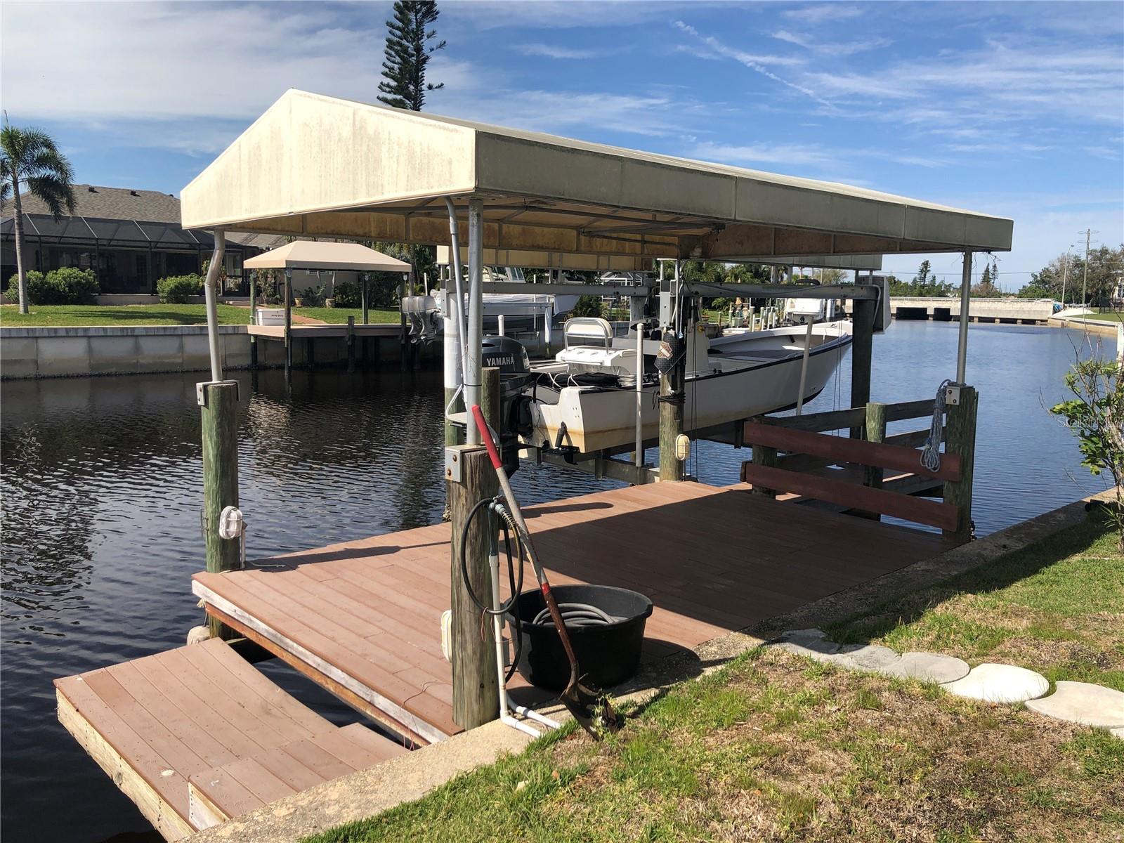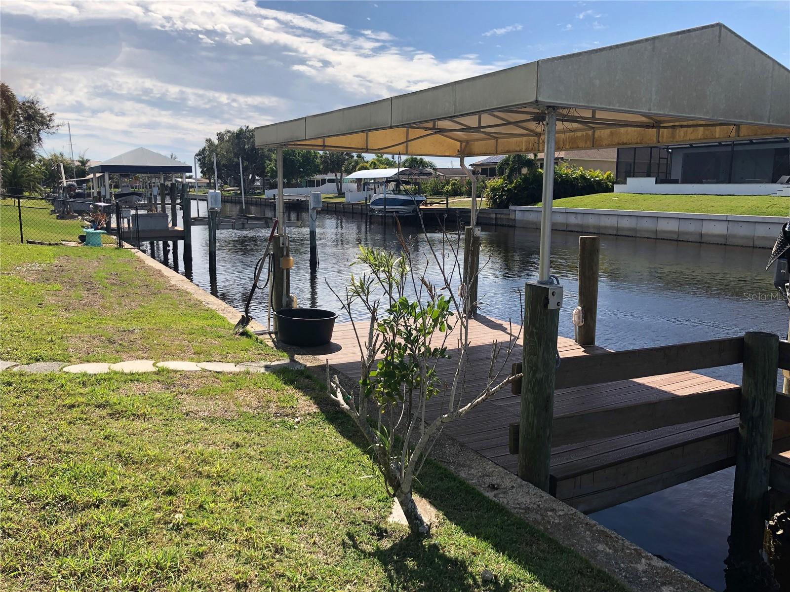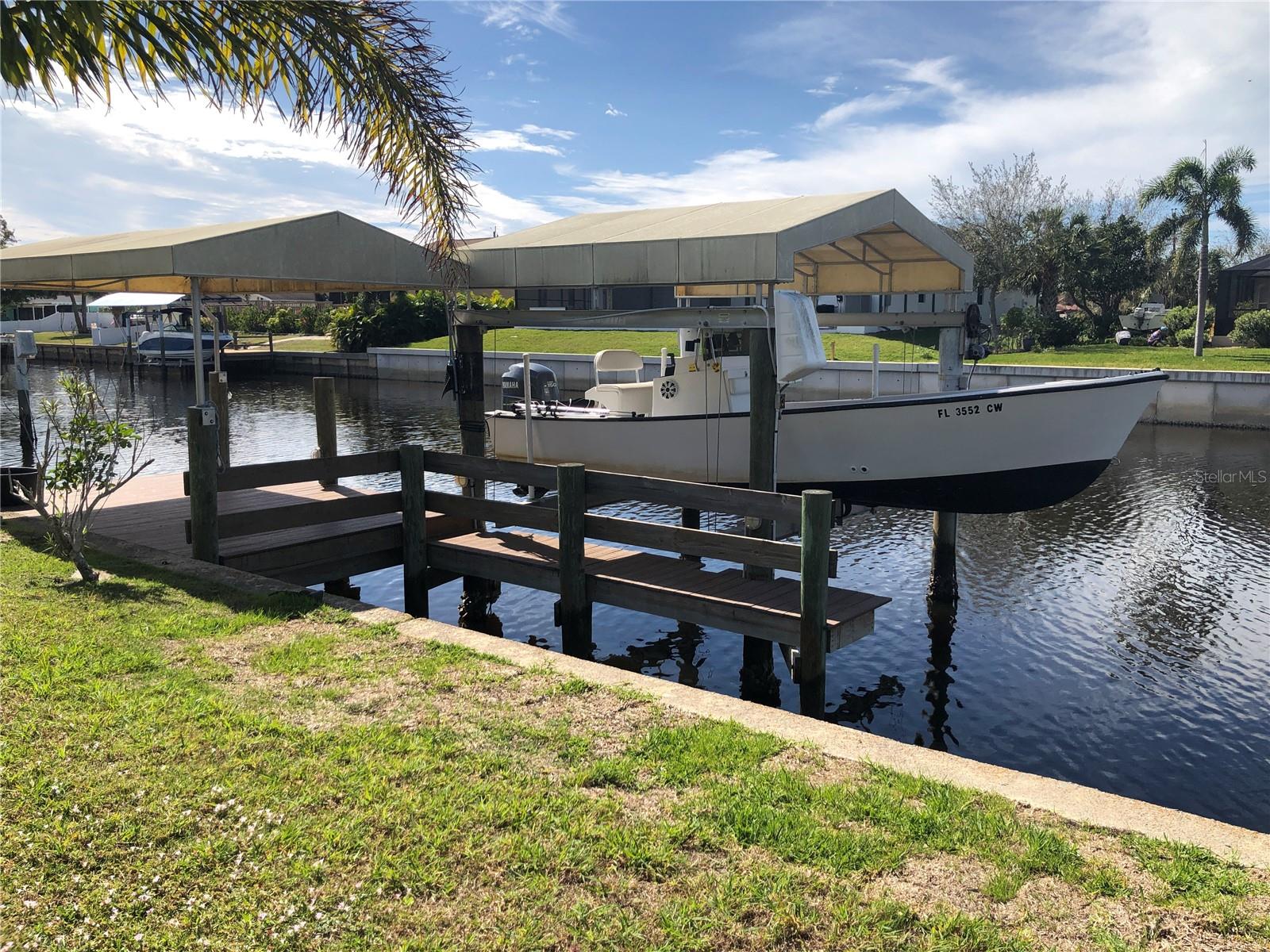 Delightful WATERFRONT home offers QUICK SAILBOAT ACCESS to Charlotte Harbor and on to the Gulf of Mexico. Located on a quiet street yet two minutes from all amenities. Don't let the age fool you! This home has beautiful design features throughout including original terrazzo floors in the Kitchen and 2 bedrooms. This light and bright home offers a Great Room, well appointed Kitchen, large Family Room, large Inside Laundry Room, 3 Bedrooms, 2 full Bathrooms and attached 2 Car Garage. The Great room features separate Dining Room and Living room areas, lots of natural light and wood laminate flooring. The Kitchen has a cooktop with hood, Refrigerator, dishwasher, breakfast bar, stainless farmhouse sink and white cabinetry. The Kitchen opens to the 24x12 Family Room in the rear of the home. The Inside Utility has front loading washer and dryer, large storage closet and plenty of additional space for cabinets or storage. There are three generous sized bedrooms with great closet space. The Master Bedroom has a private bathroom with walk in shower and vanity with vessel sink. The guest bathroom has a tub/shower combo. Your living space extends via French doors to the 24x12 screened Lanai with tile flooring. Continue to the waterfront with concrete seawall, covered wood dock and boat lift. Utilities are public water and public sewer. NO HOA. This home is minutes from shopping, dining, medical care, entertainment, Port Charlotte Beach Complex with tennis courts, basketball courts, playground, bocce courts, volleyball courts, HEATED SWIMMING POOL and more. Only 15 minutes to the Charlotte Sports Park, spring training home for the Tampa Bay Rays. This home is the Florida lifestyle at its best!