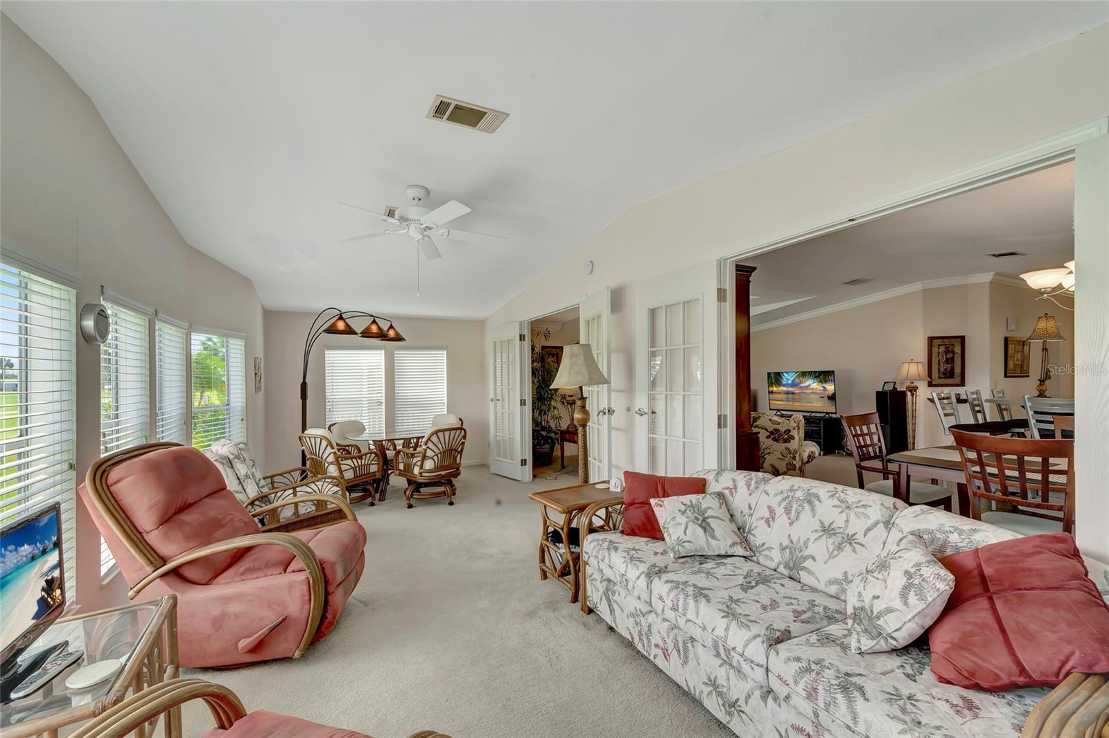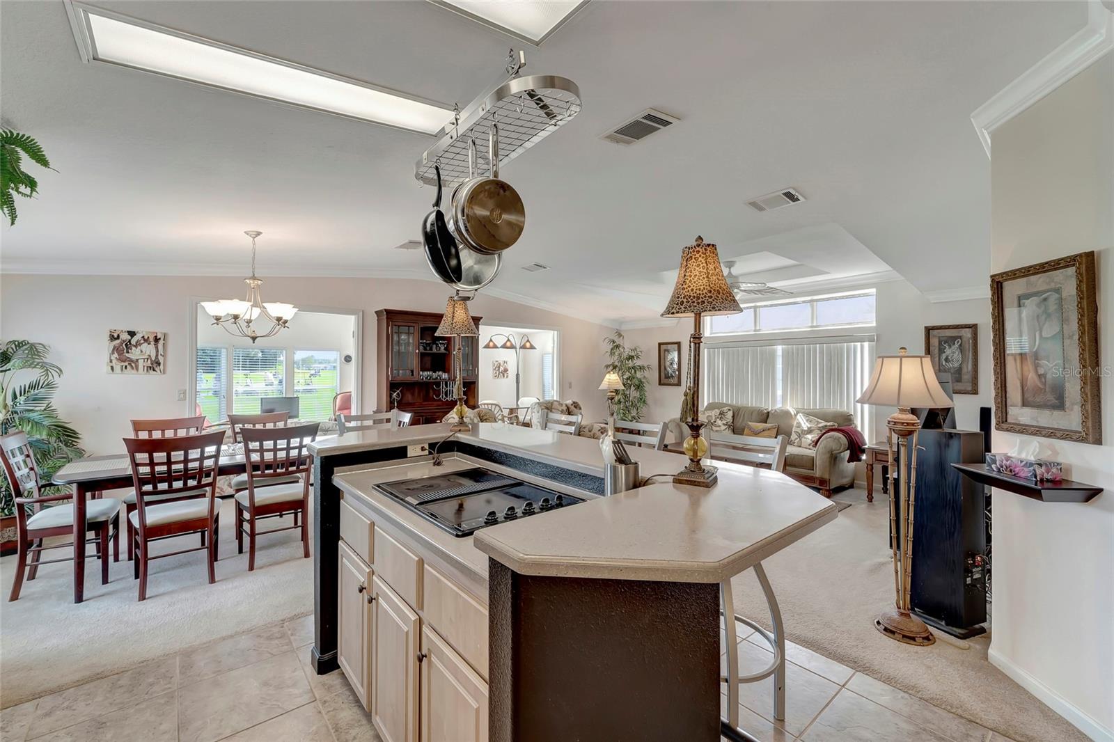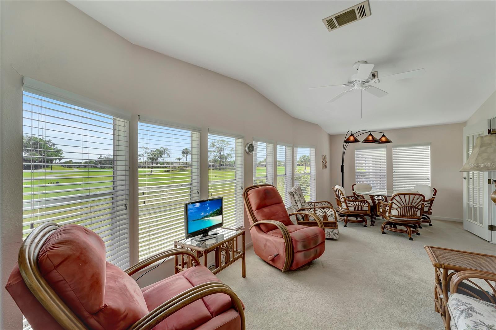 This spacious home offers it all! Welcome to your dream home! Nestled in the heart of panoramic golf course views, this 2005 Jacobsen-built masterpiece is a sanctuary of comfort and luxury. Boasting 1836 sq. ft.+ of meticulously designed living space, this home offers an open floor plan that's sure to impress. Step inside to discover an inviting atmosphere flooded with natural light, where every corner exudes warmth and elegance. Indulge in breathtaking sunrises and sunsets from your private oasis overlooking the 12th and 13th holes. Imagine sipping your morning coffee or unwinding after a long day in your custom wood barrel hot tub, set on a stunning Trex deck/patio. This move-in-ready gem features 2 bedrooms, including a spacious primary bedroom with an en-suite bath, perfect for unwinding after a long day. The gourmet eat-in kitchen is a chef's delight, equipped with Corian countertops, SS appliances, and custom built-ins. Need space to entertain? Look no further! The expansive living and dining areas provide the perfect backdrop for hosting gatherings with loved ones. And with a large den, there's ample room for overnight guests, a media room, craft space, or your home office. Relax and enjoy the serene views from your enclosed lanai, or step out onto the private deck to soak in the tranquility of your surroundings. With endless potential and quality craftsmanship throughout, this home is truly a rare find. Don't miss out on the opportunity to make this your forever home. Schedule a showing today and experience the luxury and comfort that awaits you. According to the owner, updates include a newer roof (5-7 yrs), newer AC and water heater, custom kitchen, and a custom barrel hot tub with Trex decking. Don't let this true gem slip away – it's a must-see! ? Home price includes certificate. Maple Leaf is a popular resident owned 55+ gated golf course community with an active resort lifestyle. Features an award winning 18 hole, par 62 golf course, 5 tennis courts, bocce ball, lawn bowling, 2 shuffleboard courts, 4 heated swimming pools, 2 hot tubs, fitness facility, woodworking facility, 75+ clubs/activities, 4 pickleball courts, restaurants, tiki hut/bar and much more. SCHEDULE A SHOWING TODAY !