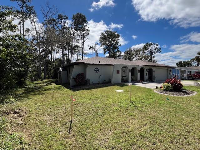 Seller may consider buyer concessions if made in an offer. $10,000 price drop! Move right into this well maintained 3 bedroom 2.5 bath home with an oversized garage! The house offers great living space with a huge living room and dining room and an additional family room for those occasions when entertaining a crowd! The kitchen is exceptional with an abundance SOLID WOOD CABINETS including many drawer banks and 2 cabinet pantries! Adding to the ambiance of the kitchen is a unique copper lined ceiling recess and upgraded light fixture. The ½ bath is in the laundry room, ideally located between the house and the garage which is oversized to allow for additional storage. One of the most attractive features of the house is the HUGE LANAI with entrances from the dining room, master bedroom and family room. With a finished Pebbletek floor, this lanai adds tremendous living space. The back yard is private and is bordered on 2 sides by undeveloped lots and the roof was replaced in 2022. Within 10 minutes of the beach complex, shopping/dining areas, schools, parks and the newly opened Sunseekers complex, this location is convenient to everything!