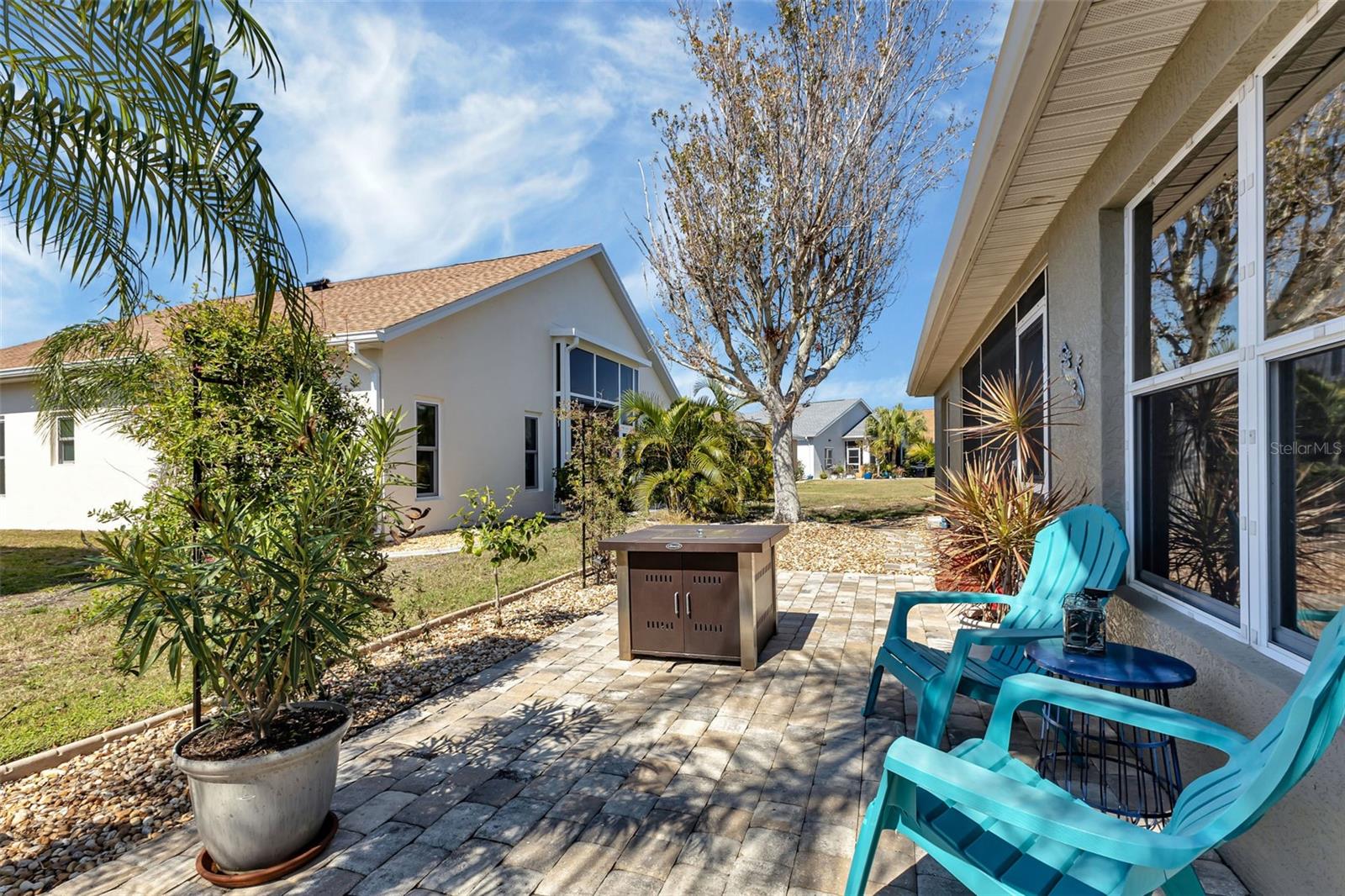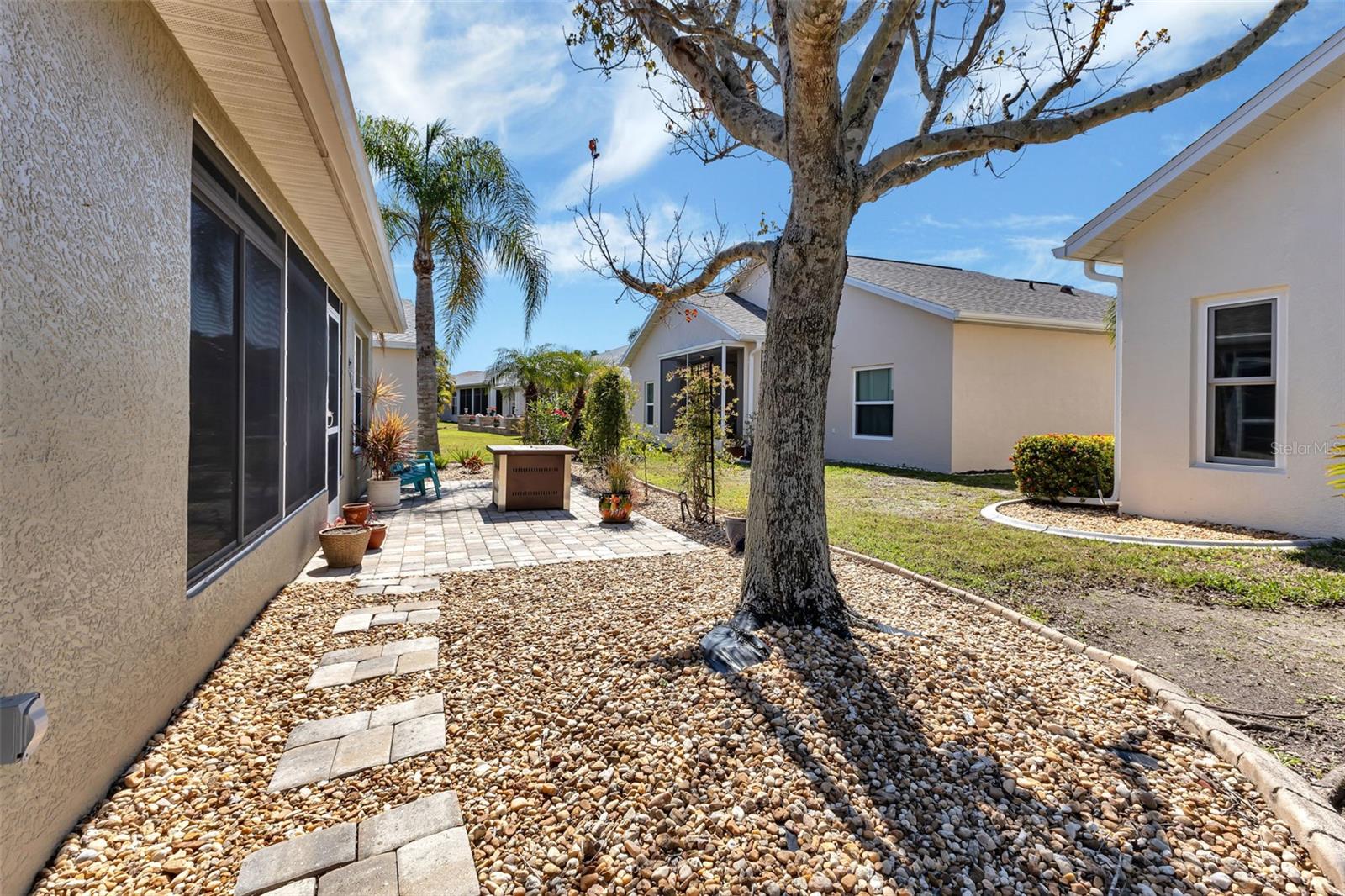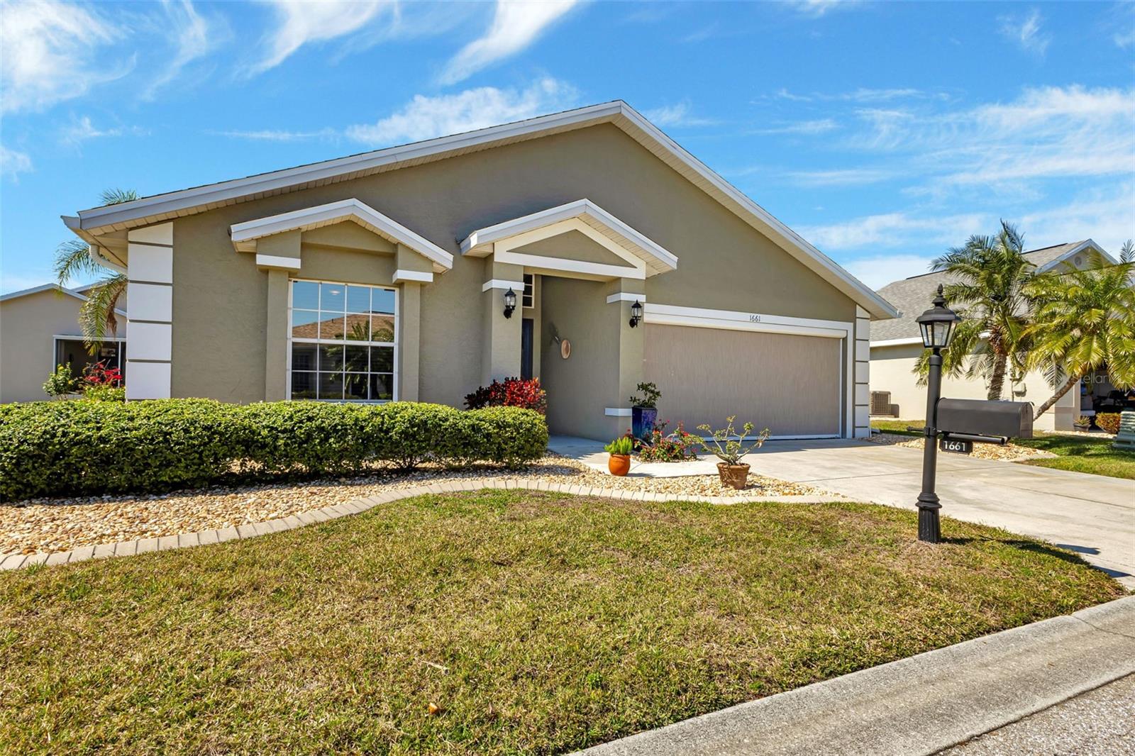 Great VALUE with this SENSATIONAL SHEFFIELD floor plan is MOVE-IN READY in the gated golf course/active resort of highly desirable Kings Gate, a 55+ community (evacuation zone D - have not been under any evacuation order, more than 20 feet above sea level - storm surge has not been an issue, not in a flood zone - no flood insurance required). Lots of BELLS and WHISTLES in this neat as a pin home - ROOF 2023, AC 2021, UPDATED DREAM KITCHEN with Quartz counters - stainless appliances and pull outs on the cabinets, RO system under kitchen sink, CROWN MOLDING in living room, roll down GARAGE SCREEN, paver patio outside with fire pit and more! Step inside this home (furniture negotiable) and you'll instantly feel at home with high ceilings - and a spacious living room that interacts nicely with the den, kitchen and lanai. You're going to love the Zen like feel provided by the lanai as you enjoy your morning coffee or your favorite evening beverage. With the guest bedroom and bath located in the front left of the home with the master bedroom (with his & her closets) located in the back right of the home both you and your guests will enjoy the privacy that provides. The French doors into the den allow you to use that room as a private office, 3rd bedroom, 2nd TV room or whatever fits your lifestyle. And if you haven't been to Kings Gate before - you're going to love the options for activity (Olympic size heated swimming pool and spa, tennis courts, pickle ball, lawn bowling, shuffle board, bocce, horseshoes, gym, billiards, library, euchre, bingo, bridge, Texas hold em, poker, mahjong and more). The onsite Lions Den restaurant and bar is super convenient and also offers Tuesday night Karaoke and monthly trivia contests. Many residents love the fact that they are just a golf cart ride away from the Winn Dixie shopping plaza that provides you access to grocery store, drug store, bank, restaurants and shopping. Want to explore outside of Kings Gate - your minutes away from the restaurants and shops of downtown Punta Gorda and Fisherman's village. And if you want to explore more of Florida's fun spots you’re near I75 to quickly head north or south. An AMAZING home with a DREAM KITCHEN in a PREMIER gated community should be on your list of must visits. Call today for a private showing and a golf cart tour of the community/amenities.