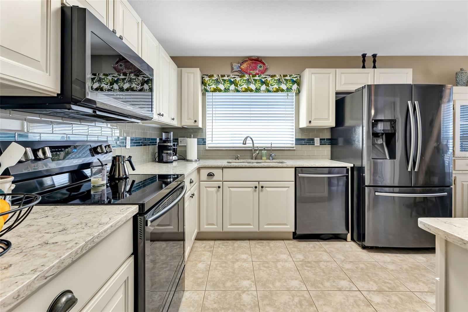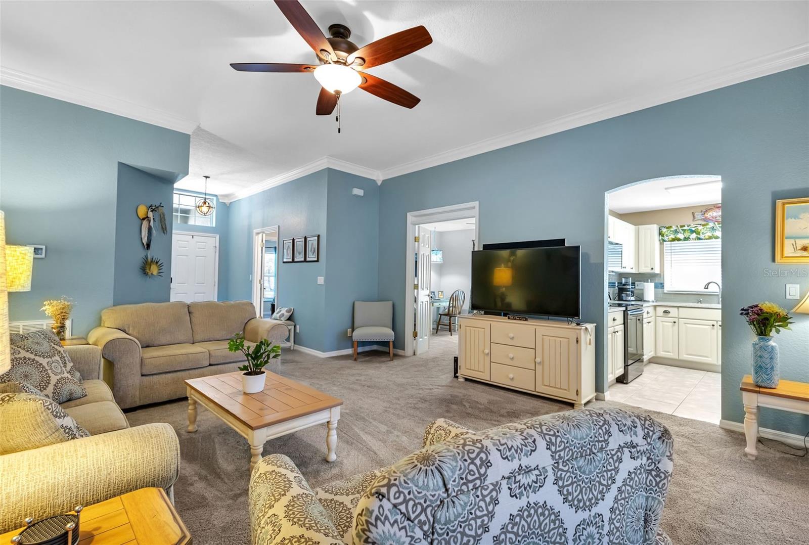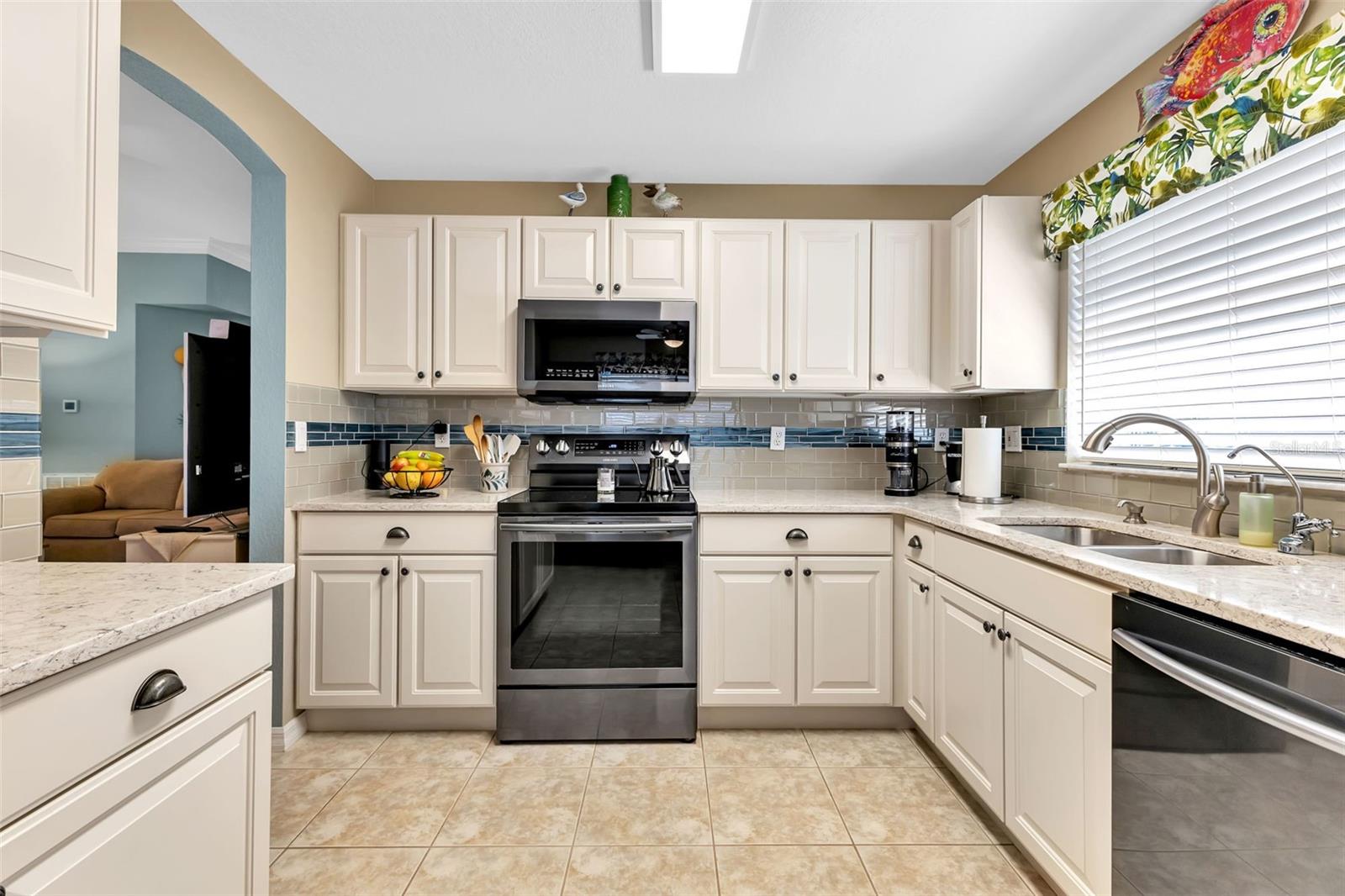 Great VALUE with this SENSATIONAL SHEFFIELD floor plan is MOVE-IN READY in the gated golf course/active resort of highly desirable Kings Gate, a 55+ community (evacuation zone D - have not been under any evacuation order, more than 20 feet above sea level - storm surge has not been an issue, not in a flood zone - no flood insurance required). Lots of BELLS and WHISTLES in this neat as a pin home - ROOF 2023, AC 2021, UPDATED DREAM KITCHEN with Quartz counters - stainless appliances and pull outs on the cabinets, RO system under kitchen sink, CROWN MOLDING in living room, roll down GARAGE SCREEN, paver patio outside with fire pit and more! Step inside this home (furniture negotiable) and you'll instantly feel at home with high ceilings - and a spacious living room that interacts nicely with the den, kitchen and lanai. You're going to love the Zen like feel provided by the lanai as you enjoy your morning coffee or your favorite evening beverage. With the guest bedroom and bath located in the front left of the home with the master bedroom (with his & her closets) located in the back right of the home both you and your guests will enjoy the privacy that provides. The French doors into the den allow you to use that room as a private office, 3rd bedroom, 2nd TV room or whatever fits your lifestyle. And if you haven't been to Kings Gate before - you're going to love the options for activity (Olympic size heated swimming pool and spa, tennis courts, pickle ball, lawn bowling, shuffle board, bocce, horseshoes, gym, billiards, library, euchre, bingo, bridge, Texas hold em, poker, mahjong and more). The onsite Lions Den restaurant and bar is super convenient and also offers Tuesday night Karaoke and monthly trivia contests. Many residents love the fact that they are just a golf cart ride away from the Winn Dixie shopping plaza that provides you access to grocery store, drug store, bank, restaurants and shopping. Want to explore outside of Kings Gate - your minutes away from the restaurants and shops of downtown Punta Gorda and Fisherman's village. And if you want to explore more of Florida's fun spots you’re near I75 to quickly head north or south. An AMAZING home with a DREAM KITCHEN in a PREMIER gated community should be on your list of must visits. Call today for a private showing and a golf cart tour of the community/amenities.