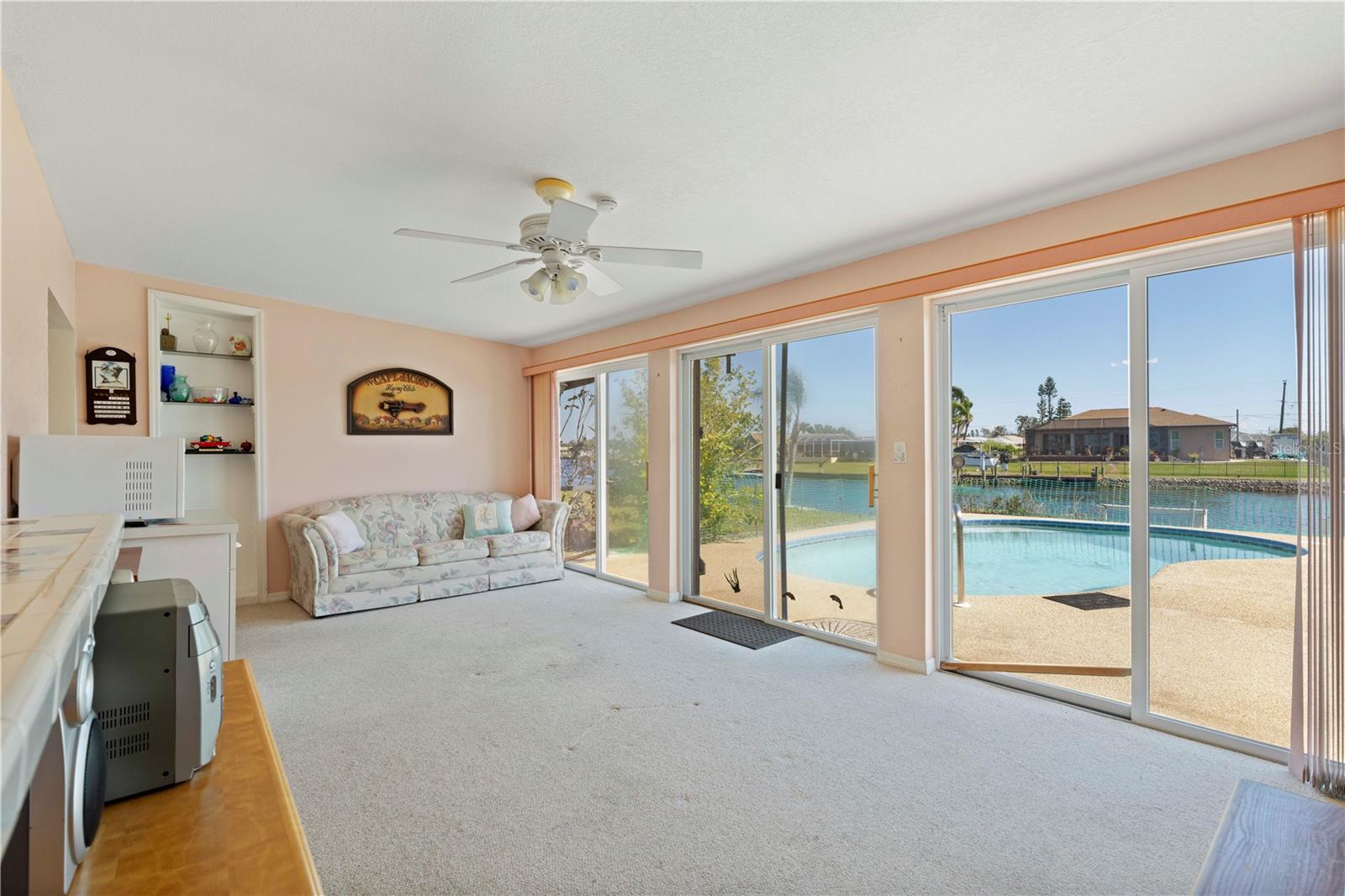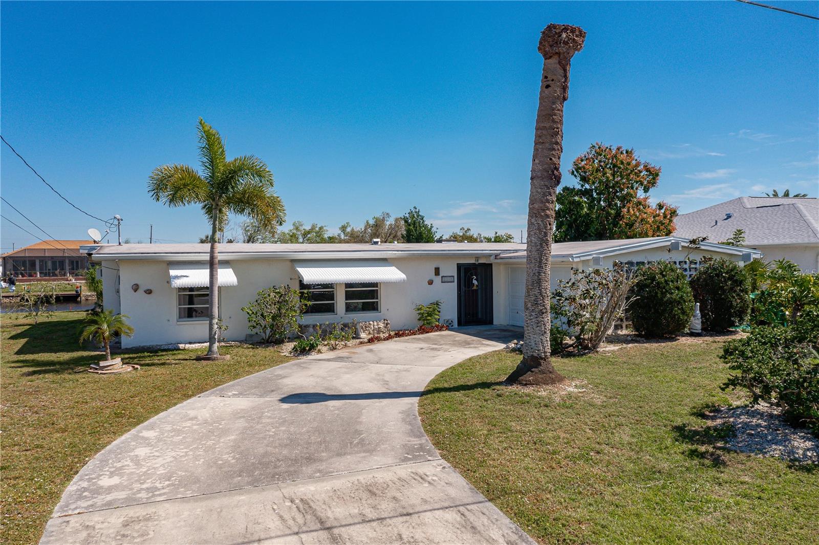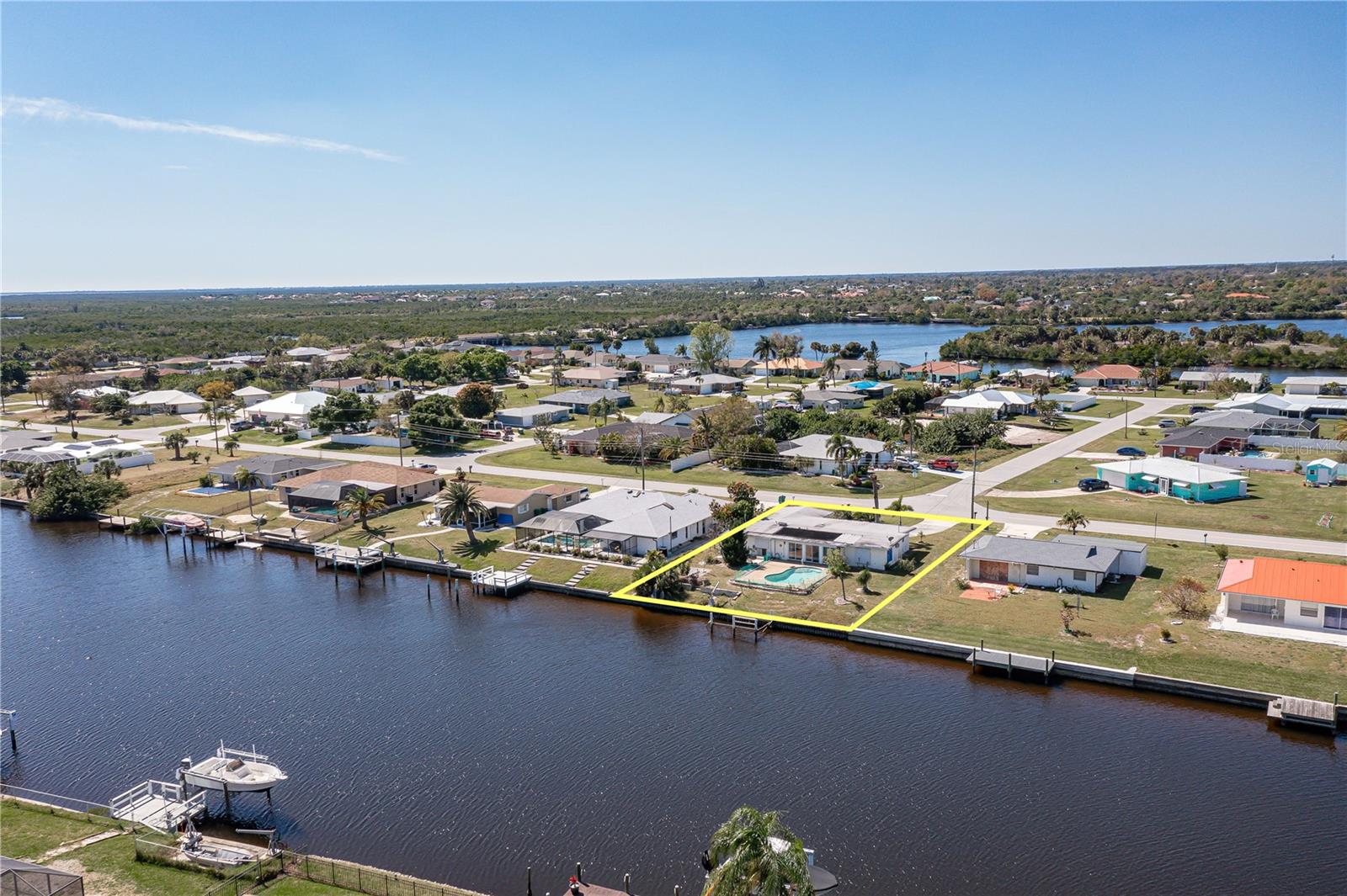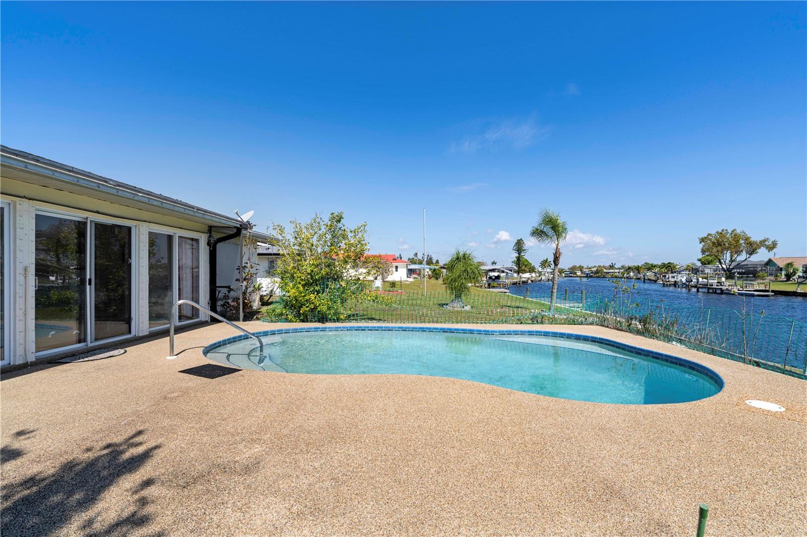 WATERFRONT HOME IN PORT CHARLOTTE W/80FT OF WATER FRONTAGE, WIDE CANAL VIEW & QUICK BOATING ACCESS TO CHARLOTTE HARBOR. This spacious, 3 bed/2 bath + den, waterfront home could be your opportunity to own on the water. Inside, the layout offers an L-shaped living room & dining room plus a separate Florida room. A tiled foyer w/coat closet greets you as you enter the home. Interior features include large picture windows, skylight in guest bath, mix of carpet & tile flooring & large bedrooms. The kitchen/dining area is the heart of this home. Kitchen has pass-through counter to Florida room plus view of pool & canal. Two large guest rooms share a Jack & Jill bath. Bath opens to outdoor garden that creates the feel of a private oasis. An expansion added 452 sq ft to the home adding the 3rd bedroom & den. Home has so much potential w/just over 1,800 sq ft of living space. The Florida room is bathed in natural light w/three sets of sliding glass doors opening to your private in-ground pool. Picture living the Florida dream here w/days spent out on the water or relaxing by your pool. Start enjoying some of the best fishing & boating in SW Florida directly from your backyard. Property has a NEW water heater, NEW pool pump & NEW refrigerator. Other amenities include oversized one-car garage, storage room & clamshell hurricane shutters. The home is located between Edgewater Dr & US41 w/easy access to shopping, restaurants & area medical centers. Home has transferrable Flood Insurance policy with $2851/yr premium. Claim your spot in paradise today.