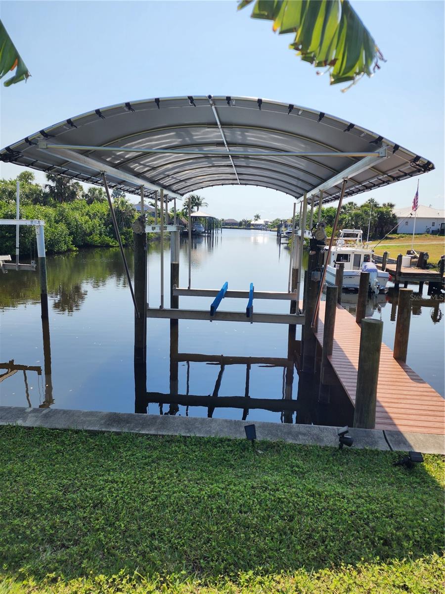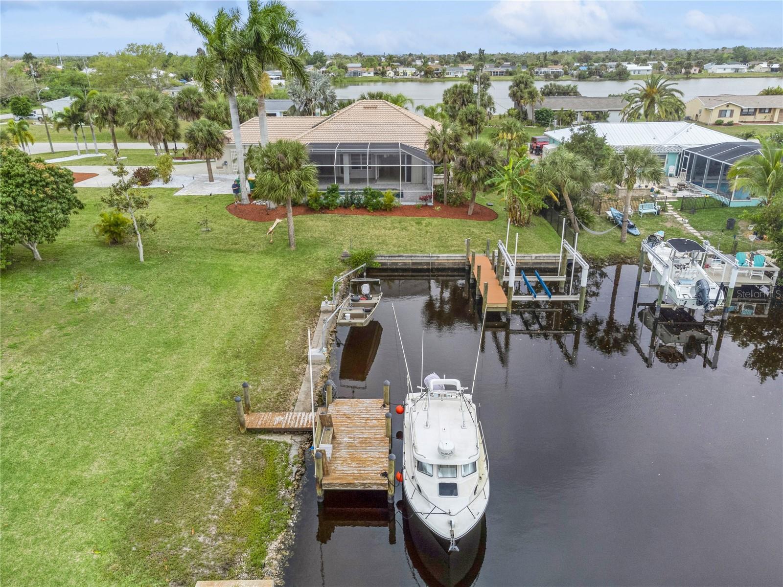 Just added a brand new boat lift cover 2024. Beautiful heated saltwater pool home on SAILBOAT canal goes out to open water. 3 bedrooms 2 bathroom and 2 car garage open floor plan on a double lot. With a brand new dock and 10,000 pound boat lift done in the later part of 2023. Just redone the landscape this week. This home has state of art alarm system were you can watch you home from any where. The owners put new cabinets in the garage in 2023. Lots of room to park your RV or boat. 2021 new pool heater, 2021 pool and deck was resurfaced and renovated, 2021 extended patio outside pool cage area. In 2022 emergency generator with buried propane tank which holds 500 gallons was installed. 2022 fenced area was added, 2023 exterior and interior was painted. This home also has hurrican shutters. You can open all the sliders an get a cool breeze inside the home. This home is ready for the new owners. This gem is move in ready and is located in convenient area in Port Charlotte. So call me for appointment today.