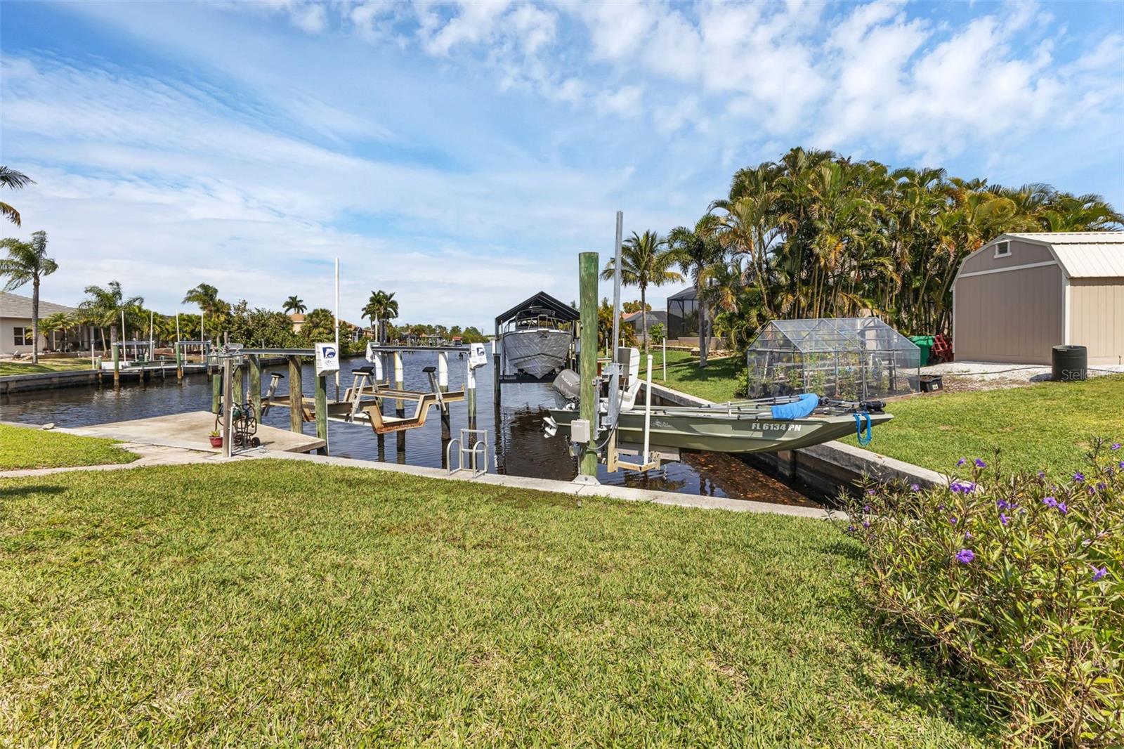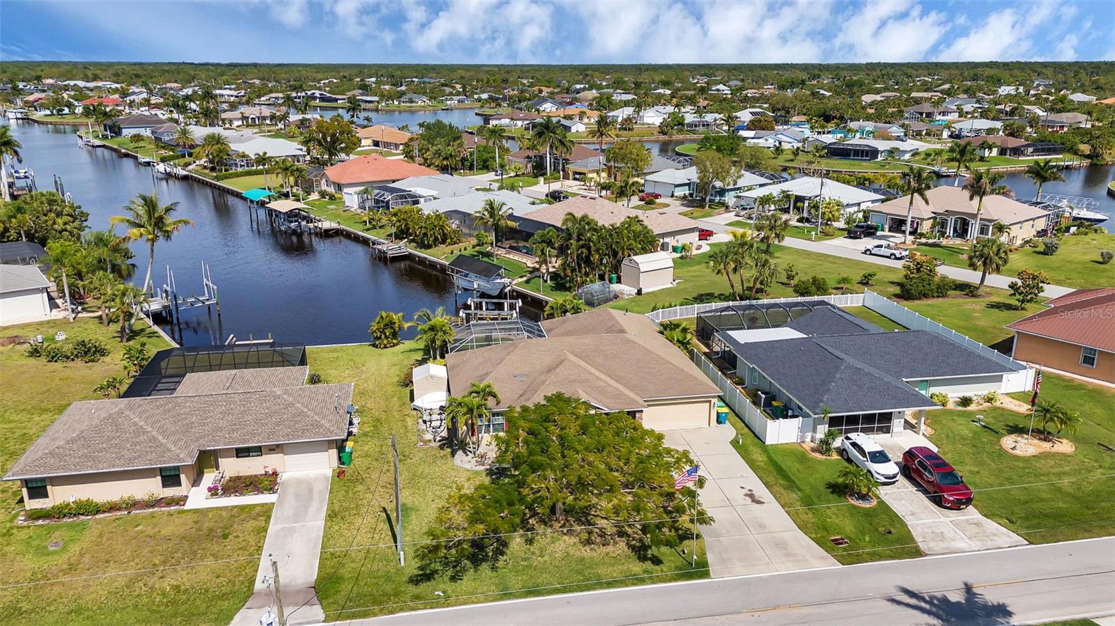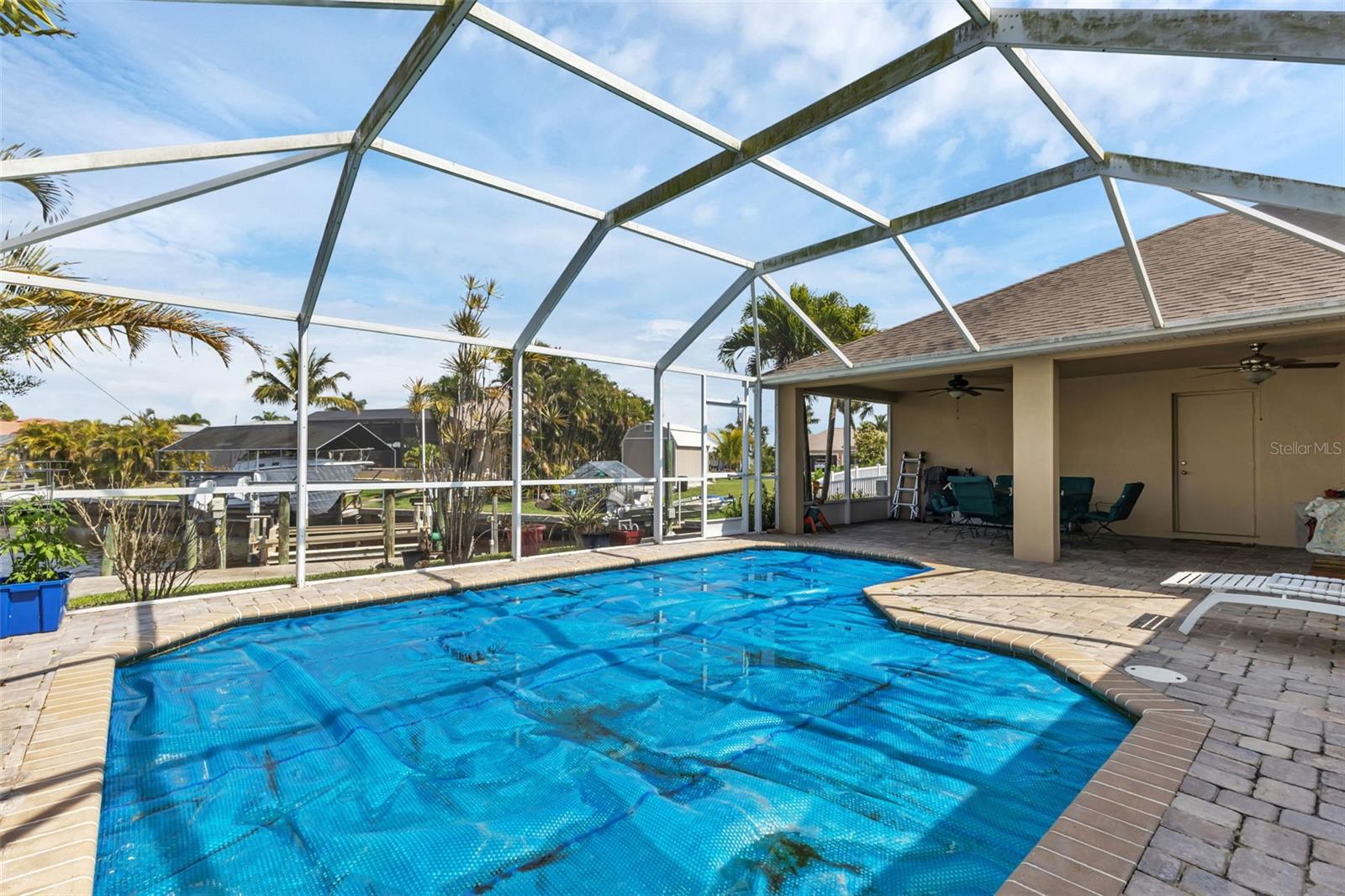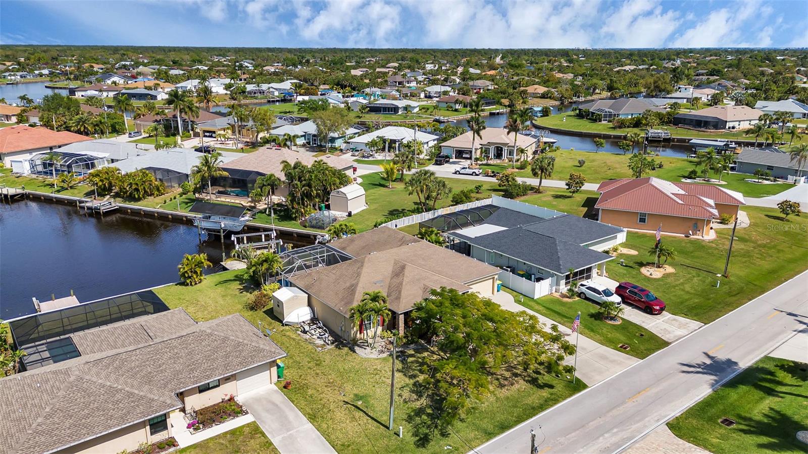 SAILBOAT WATER and STUNNING SUNSETS AWAIT YOU! Welcome to your waterfront oasis in the Manchester Waterway neighborhood! NO HOA! COUNTY WATER & SEWER! Assumable Flood Policy Available! This stunning Sailboat Waterfront home on desirable Ohara Drive, invites you to experience the best of coastal living with its array of enticing features. With NO BRIDGES, your maritime adventures are unrestricted from this location. Boating enthusiasts will rejoice with not just one, but 2 boat lifts available that include a 35,000lb SAILBOAT LIFT and a smaller 4,500lb lift, making it a breeze to set sail and explore the serene waters of Boca Grande, Captiva, Pine Island and the Gulf of Mexico. Think about the convenience and safety of having your sailboat on a lift versus setting in the water! Enjoy picturesque views of the long canal from your backyard, offering a sense of tranquility and relaxation. Step outside to your paver-covered lanai facing northward, providing the perfect respite from the summer heat. Take a dip in the heated pool or simply unwind while admiring the breathtaking sunsets from your covered front porch with stone finish. Nature lovers will appreciate the shallows and mangroves surrounding the property, offering plenty of action for fishermen. Whether you're sailing your yacht, cruising with your power-boat, or drifting with your kayak, the possibilities for adventure are endless. Built in 2011, this 2256 sqft abode exudes modern charm with plank tile flooring, quartz countertops, and craftsman-style stonework on the front of the home. The kitchen is a chef's delight, featuring two pantries, a kitchen island, and plenty of counter space for entertaining. The office/den has a closet can easily transition into a 4th bedroom, complete with a convenient Murphy bed system. Additional highlights include a 4-zone Orbit irrigation system controllable from your mobile device, hurricane shutters for home and a reinforced garage door for storm safety and features a 2021 myQ garage system. With spacious interiors flooded with natural light and thoughtful touches throughout, this waterfront retreat epitomizes the Florida boating lifestyle. Don't miss out on the opportunity to make it yours!