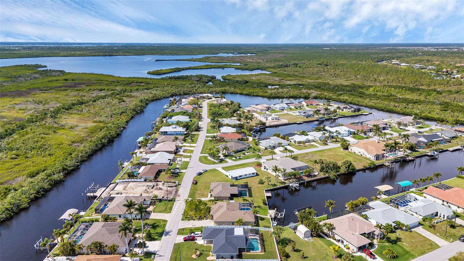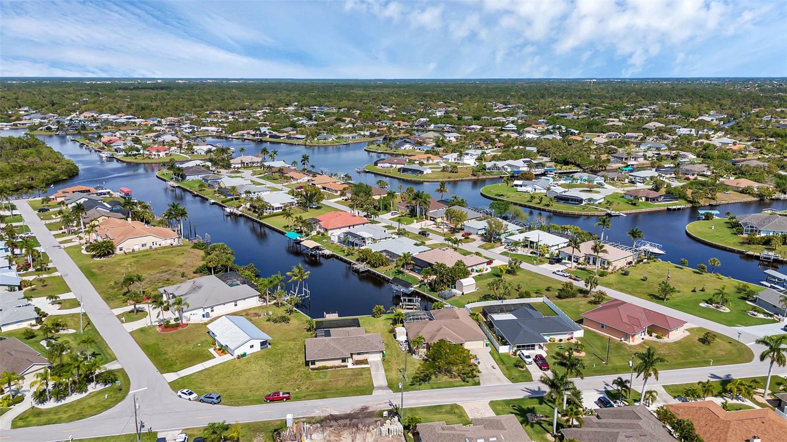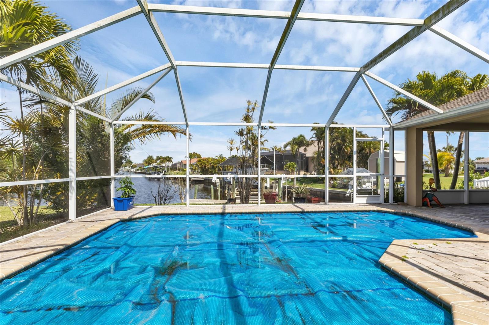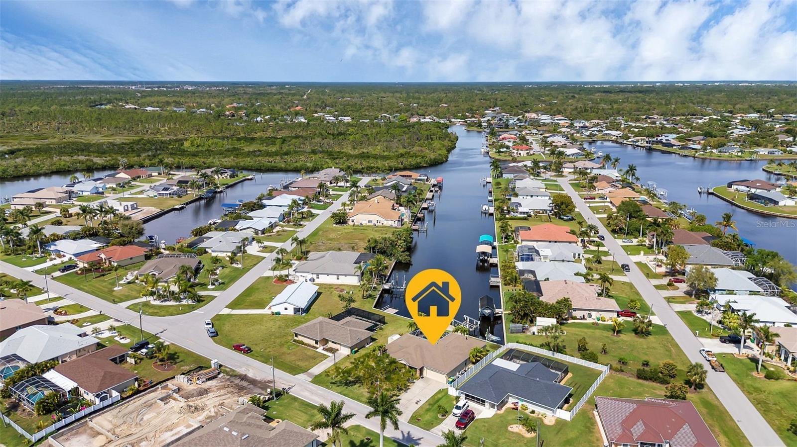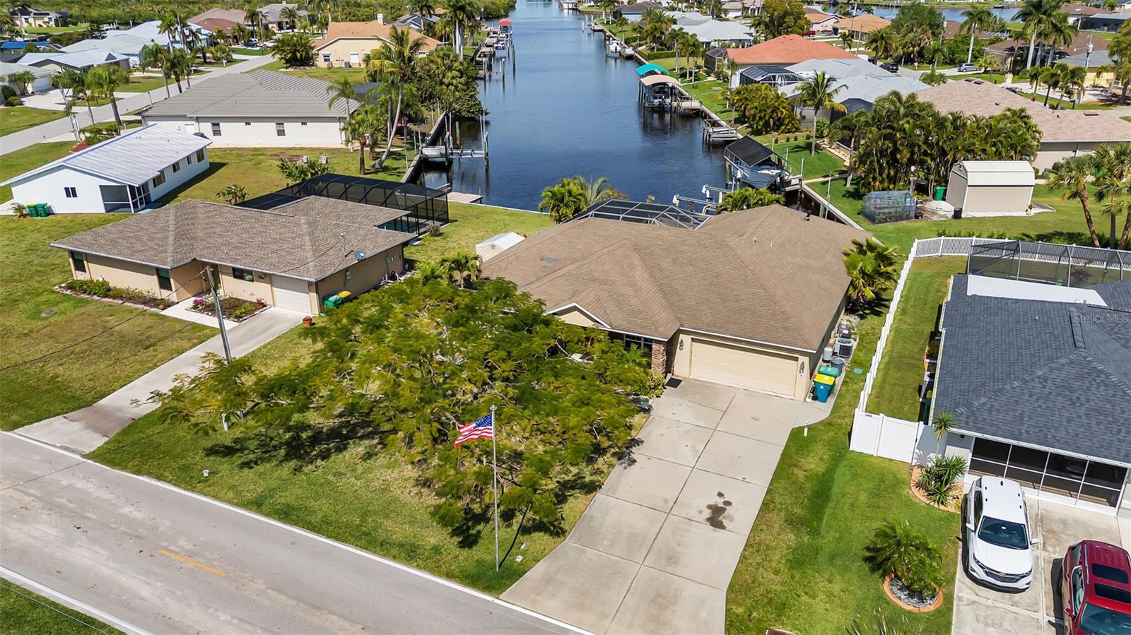 SAILBOAT WATER and STUNNING SUNSETS AWAIT YOU! Welcome to your waterfront oasis in the Manchester Waterway neighborhood! NO HOA! COUNTY WATER & SEWER! Assumable Flood Policy Available! This stunning Sailboat Waterfront home on desirable Ohara Drive, invites you to experience the best of coastal living with its array of enticing features. With NO BRIDGES, your maritime adventures are unrestricted from this location. Boating enthusiasts will rejoice with not just one, but 2 boat lifts available that include a 35,000lb SAILBOAT LIFT and a smaller 4,500lb lift, making it a breeze to set sail and explore the serene waters of Boca Grande, Captiva, Pine Island and the Gulf of Mexico. Think about the convenience and safety of having your sailboat on a lift versus setting in the water! Enjoy picturesque views of the long canal from your backyard, offering a sense of tranquility and relaxation. Step outside to your paver-covered lanai facing northward, providing the perfect respite from the summer heat. Take a dip in the heated pool or simply unwind while admiring the breathtaking sunsets from your covered front porch with stone finish. Nature lovers will appreciate the shallows and mangroves surrounding the property, offering plenty of action for fishermen. Whether you're sailing your yacht, cruising with your power-boat, or drifting with your kayak, the possibilities for adventure are endless. Built in 2011, this 2256 sqft abode exudes modern charm with plank tile flooring, quartz countertops, and craftsman-style stonework on the front of the home. The kitchen is a chef's delight, featuring two pantries, a kitchen island, and plenty of counter space for entertaining. The office/den has a closet can easily transition into a 4th bedroom, complete with a convenient Murphy bed system. Additional highlights include a 4-zone Orbit irrigation system controllable from your mobile device, hurricane shutters for home and a reinforced garage door for storm safety and features a 2021 myQ garage system. With spacious interiors flooded with natural light and thoughtful touches throughout, this waterfront retreat epitomizes the Florida boating lifestyle. Don't miss out on the opportunity to make it yours!