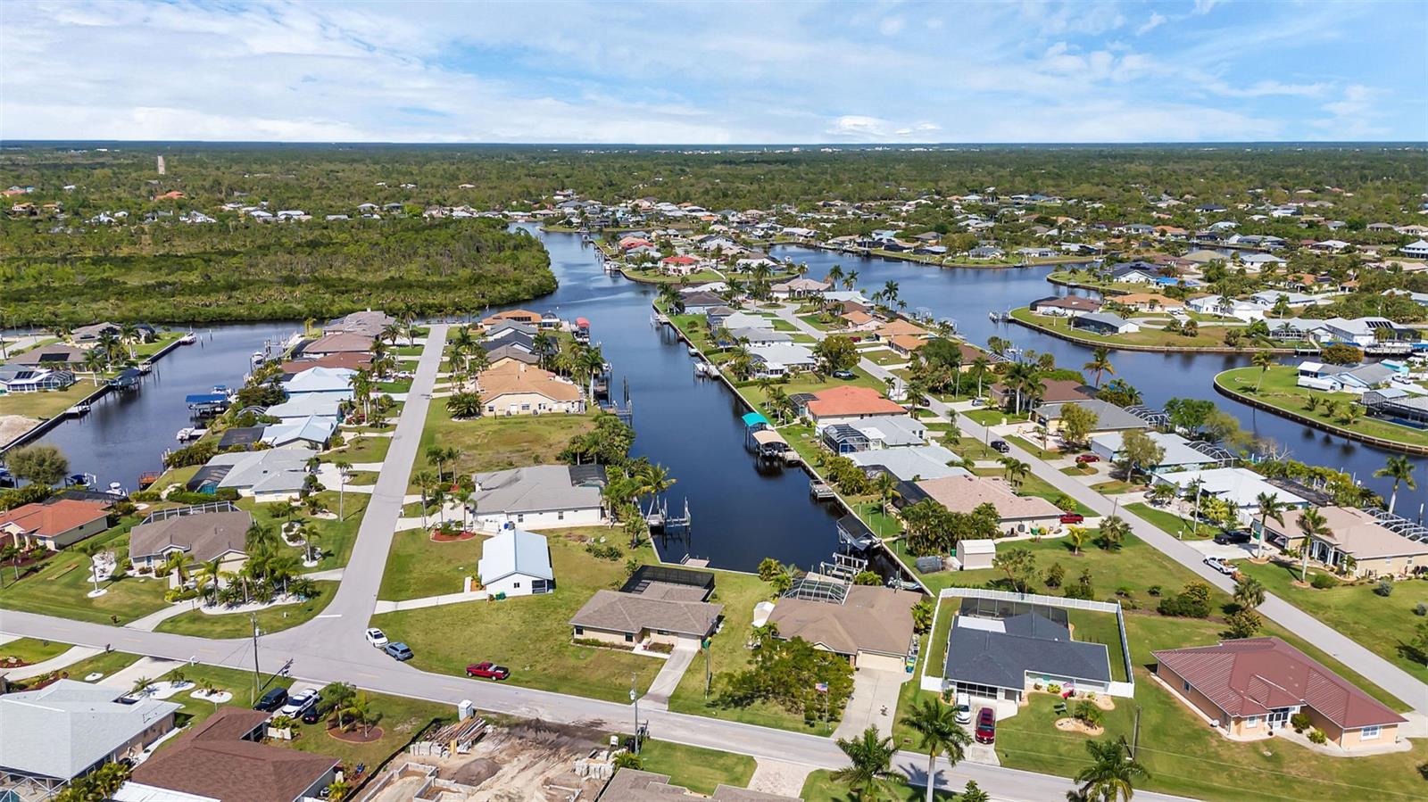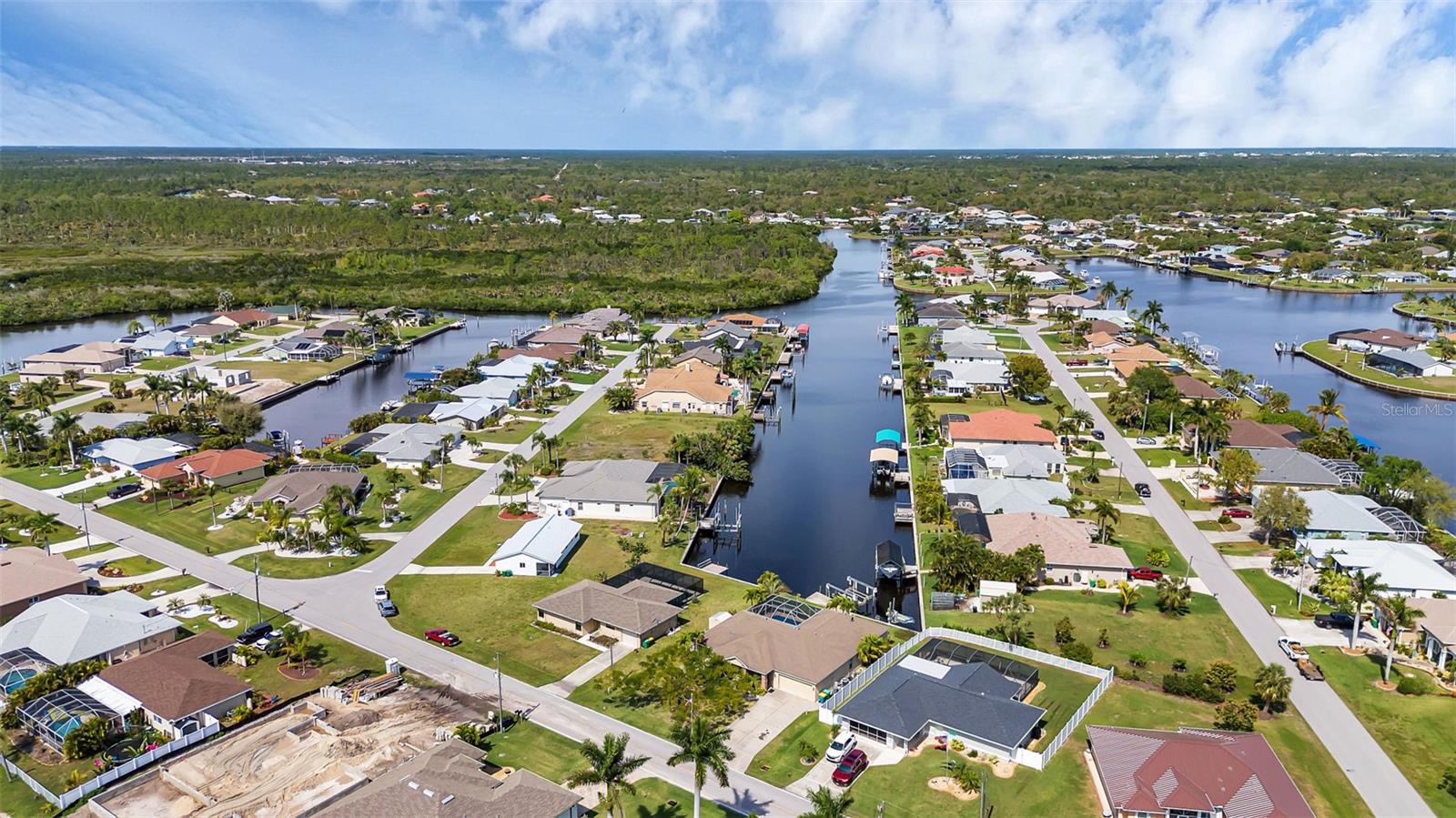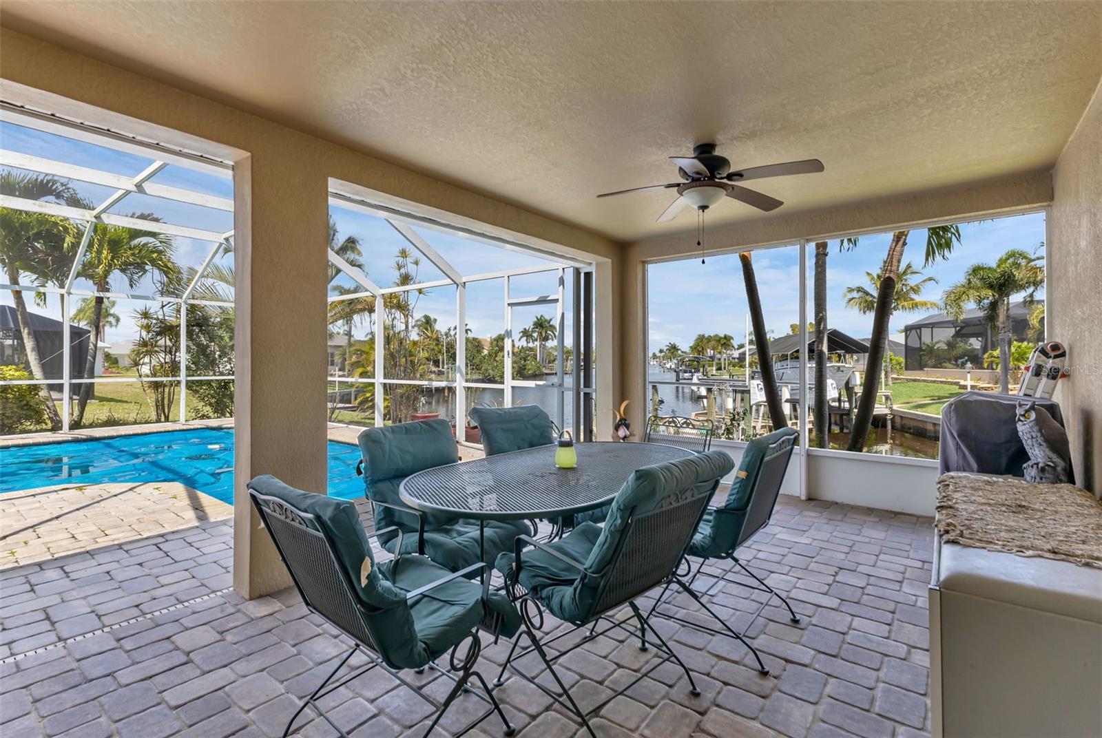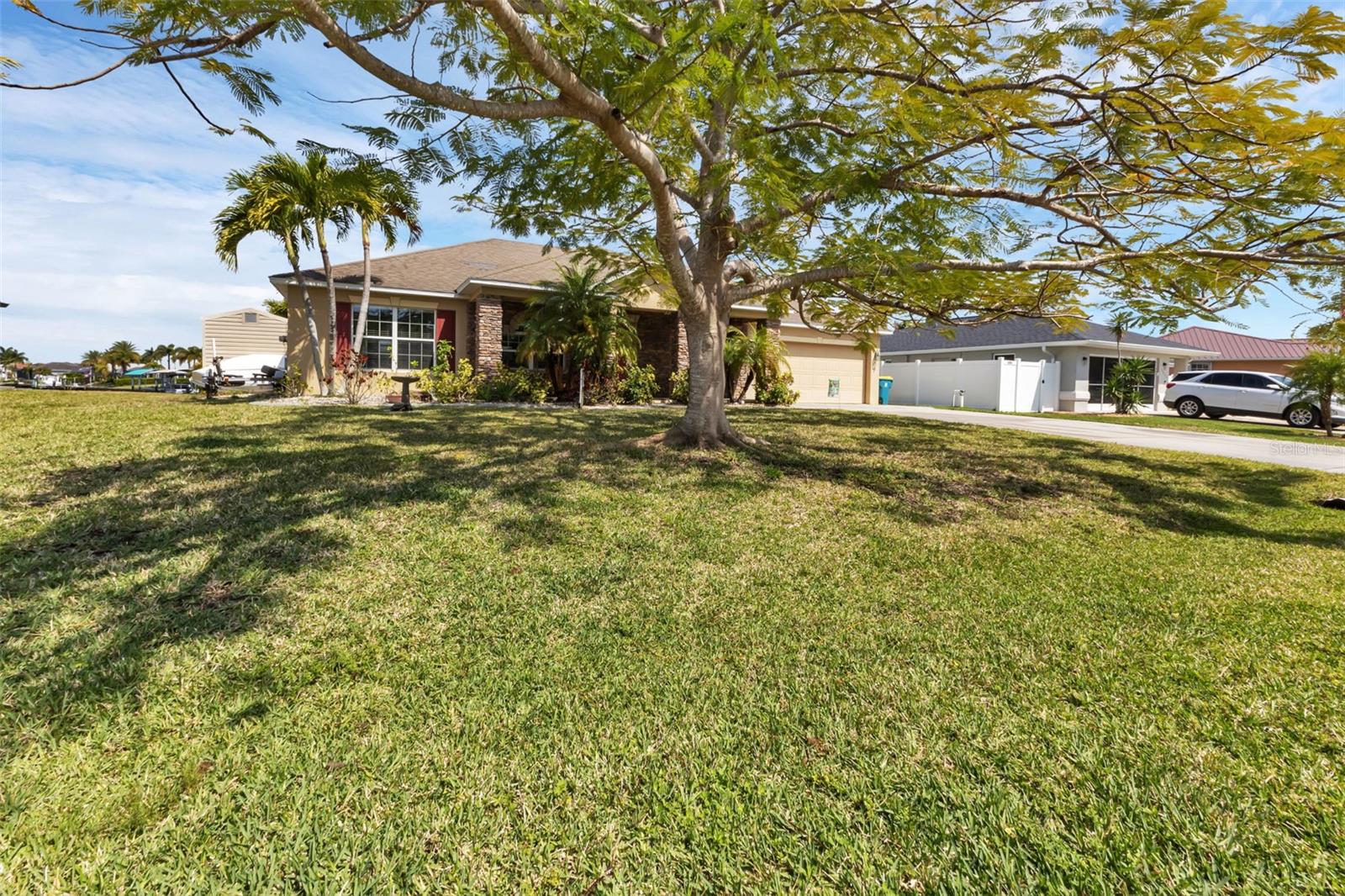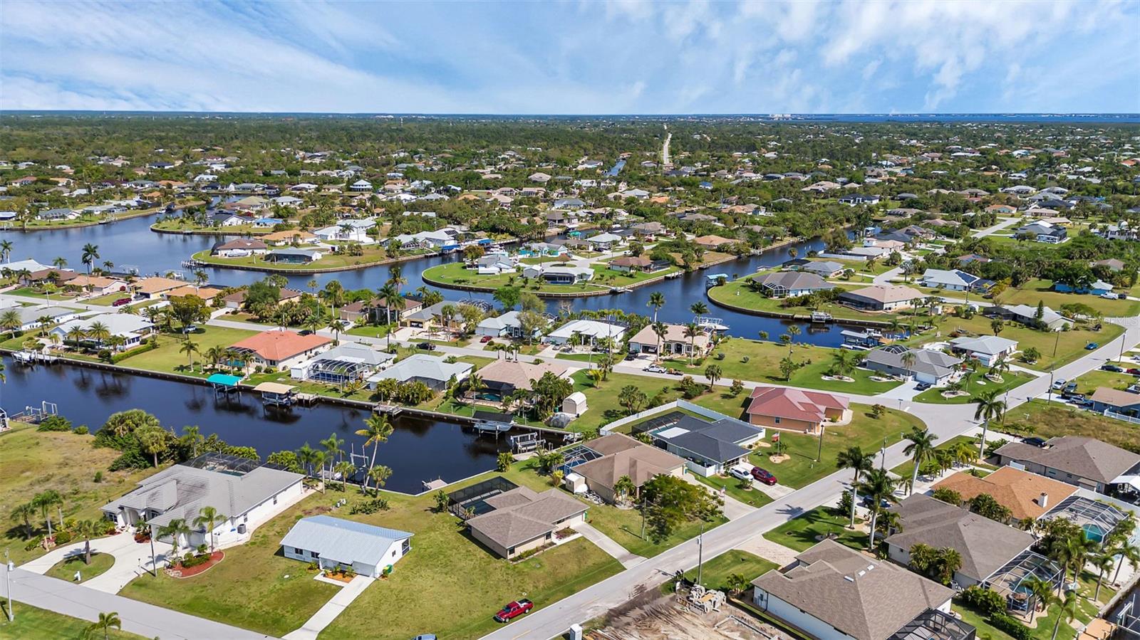 SAILBOAT WATER and STUNNING SUNSETS AWAIT YOU! Welcome to your waterfront oasis in the Manchester Waterway neighborhood! NO HOA! COUNTY WATER & SEWER! Assumable Flood Policy Available! This stunning Sailboat Waterfront home on desirable Ohara Drive, invites you to experience the best of coastal living with its array of enticing features. With NO BRIDGES, your maritime adventures are unrestricted from this location. Boating enthusiasts will rejoice with not just one, but 2 boat lifts available that include a 35,000lb SAILBOAT LIFT and a smaller 4,500lb lift, making it a breeze to set sail and explore the serene waters of Boca Grande, Captiva, Pine Island and the Gulf of Mexico. Think about the convenience and safety of having your sailboat on a lift versus setting in the water! Enjoy picturesque views of the long canal from your backyard, offering a sense of tranquility and relaxation. Step outside to your paver-covered lanai facing northward, providing the perfect respite from the summer heat. Take a dip in the heated pool or simply unwind while admiring the breathtaking sunsets from your covered front porch with stone finish. Nature lovers will appreciate the shallows and mangroves surrounding the property, offering plenty of action for fishermen. Whether you're sailing your yacht, cruising with your power-boat, or drifting with your kayak, the possibilities for adventure are endless. Built in 2011, this 2256 sqft abode exudes modern charm with plank tile flooring, quartz countertops, and craftsman-style stonework on the front of the home. The kitchen is a chef's delight, featuring two pantries, a kitchen island, and plenty of counter space for entertaining. The office/den has a closet can easily transition into a 4th bedroom, complete with a convenient Murphy bed system. Additional highlights include a 4-zone Orbit irrigation system controllable from your mobile device, hurricane shutters for home and a reinforced garage door for storm safety and features a 2021 myQ garage system. With spacious interiors flooded with natural light and thoughtful touches throughout, this waterfront retreat epitomizes the Florida boating lifestyle. Don't miss out on the opportunity to make it yours!