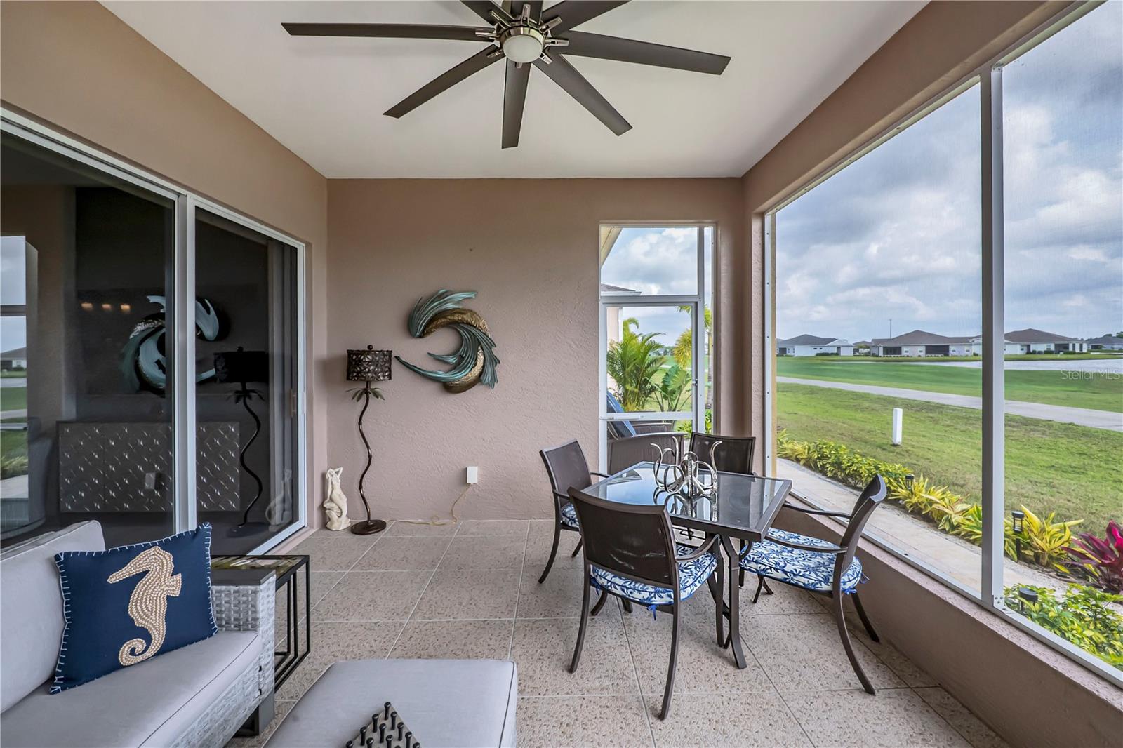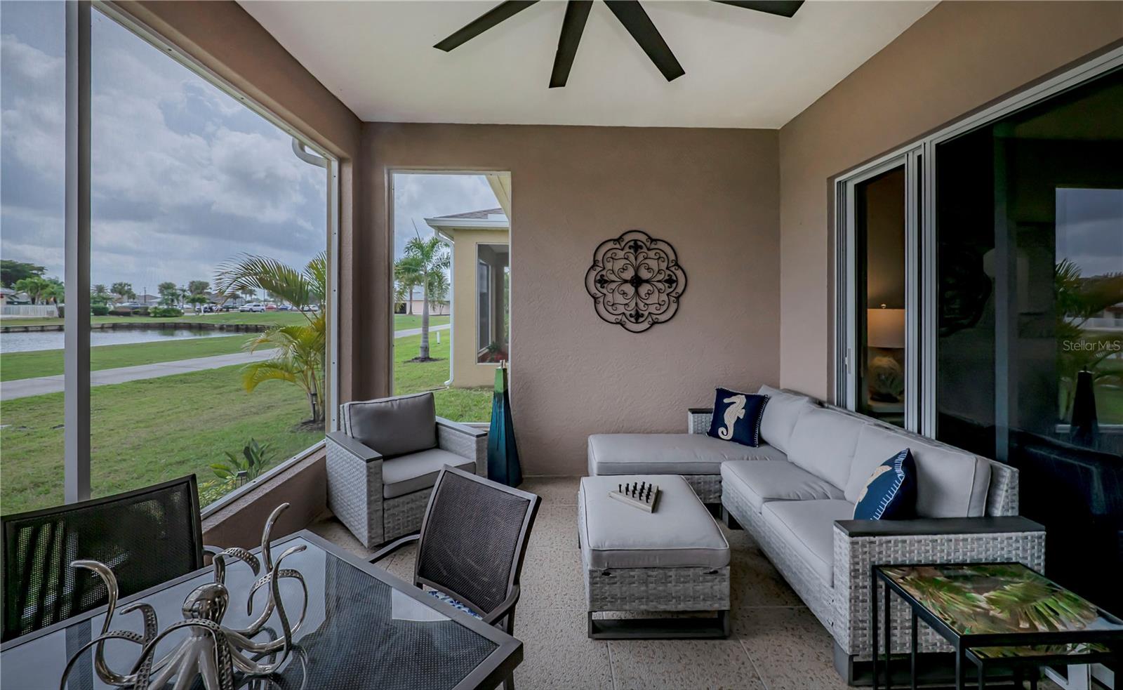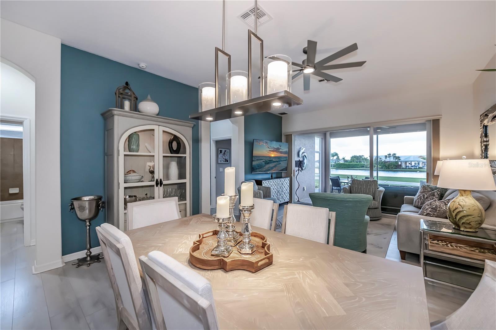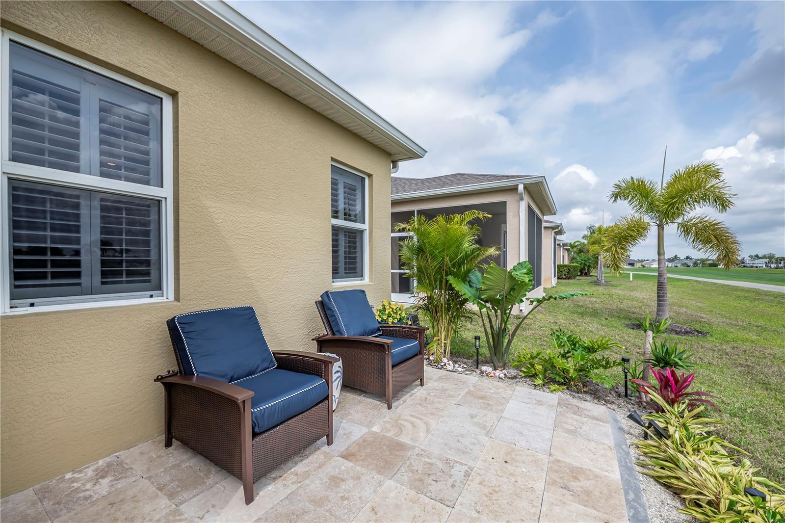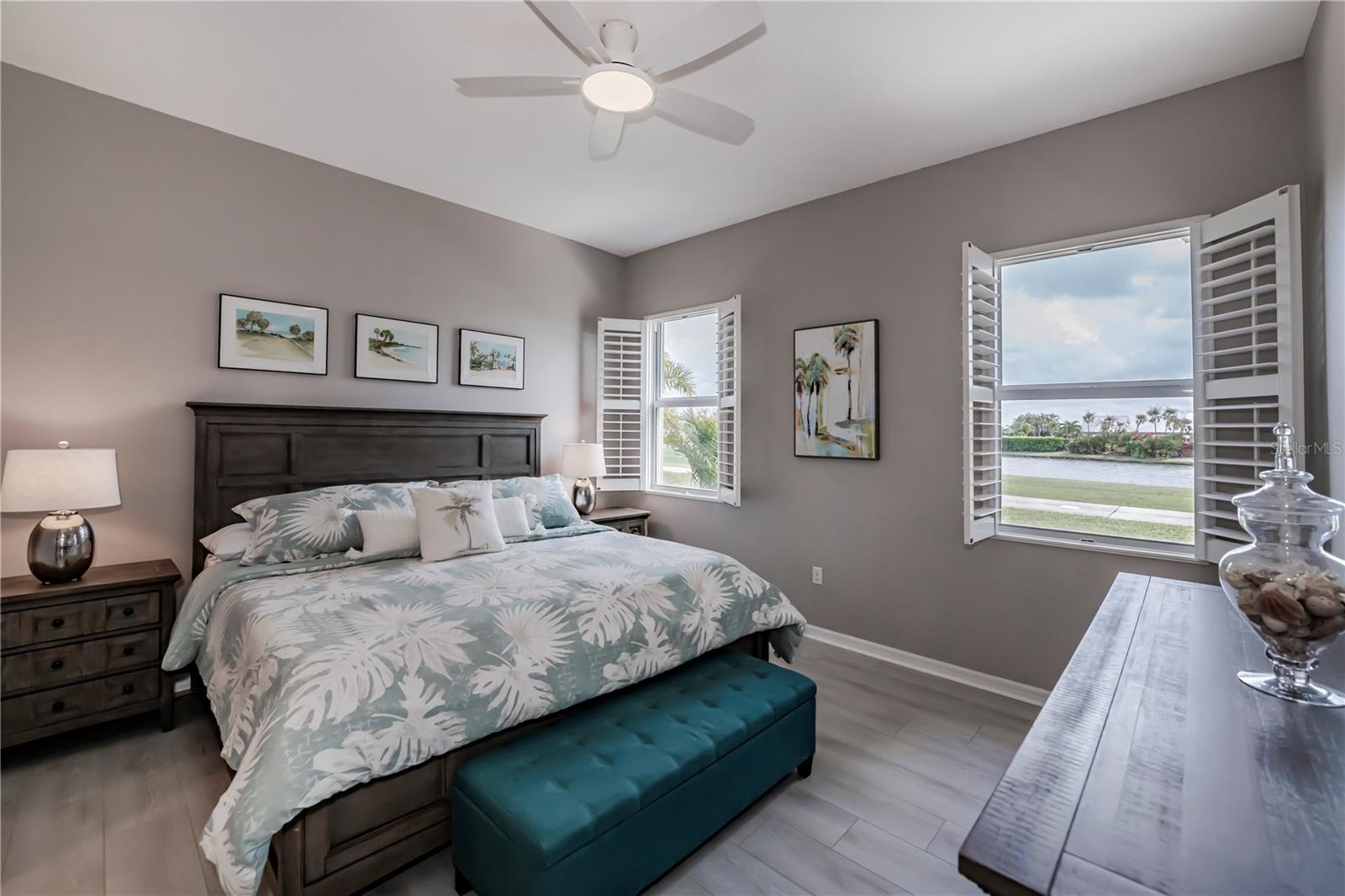 AWESOME LAKEFRONT 2/2/2 Villa overlooking the 1st Tee and fairway, plus PANORAMIC VIEWS across to pool area Cabanas and Clubhouse. Facilities are all simply walking distance. Located in the GATED golf course/active resort of Kings Gate, a 55+ community. This popular Augusta floor plan features a great OPEN CONCEPT design with 10 FOOT CEILINGS throughout. Incredible upgrades that affords SPECTACULAR VIEWS of the golf course/water from the EXPANDED LANAI and travertine patio, living room, dining room and kitchen. Welcoming foyer is impressive the moment you enter the front screened porch. Stunning Chef worthy kitchen with its STONE COUNTERS, rich wood cabinets, top of the line STAINLESS appliances, luxurious glass tile decorator backsplash, full breakfast bar and striking specialty lighting will make entertaining delightful. All new LED pot lights. bathroom fans and updated fixtures throughout. No carpet or tile, Brand new 2023 ENGINEERED FLOORING THROUGHOUT THE HOME. Home is newly painted in 2023 in neutral colors to make this home look lovely and modern. Master bedroom is a retreat with waterfront view, luxurious updated ensuite bath and full closets. Guests will enjoy serenity in the spacious second bedroom, with shared access to main bath that is lavishly upgraded. Laundry room has lots of storage cabinets and a FULL PANTRY for you extra storage needs. Full 2 car garage has a nice automatic PRIVACY SHADE to make it easy to enjoy working with a nice cross breeze. Driveway is long enough to accommodate a full size pickup truck or large SUV. The large scenic, back lanai/patio is the icing on the cake, zen stone laded tiles beckon you day or night to relax sunrise or sunset watching wildlife on the lake, golfers in a distance with your favorite beverage of choice, so relaxing! And there are NO cable boxes, utility, water or electrical boxes on the front lawns, impact glass & hurricane garage door, NEW ROOF DEC 2022. Amidst this picturesque waterfront community, residents enjoy a range of amenities, from lawn maintenance and low cost HOA-covered amenities such as irrigation water, cable, roof maintenance, exterior paint, termite, & pressure washing. This active 55+ community provides a myriad of exciting activities with a full-time Activities Director, an Olympic-sized heated swimming pool and spa, exercise and fitness centers, lighted clay surfaced tennis courts, a theater, billiards and computer room and so much more. Other planned activities and outings for your pleasure are not limited but include pickleball, bocce, lawn bowling, shuffleboard, horseshoes, mahjongg, cards & crafts. Enjoy onsite full service Lions Den Restaurant/ bar with Tuesday night Karaoke and monthly trivia contests, ballroom, plus a 18-hole golf course. A golf cart ride takes you to the nearby Winn Dixie shopping plaza, offering access to groceries, a drug store, banking, restaurants, and more. Boat or RV storage is available for a separate fee, adding a layer of convenience to the already desirable lifestyle this community embodies.Discover the extraordinary lakeside living experience waiting for you ,with unparalleled views, luxurious amenities, and an active community lifestyle, THIS IS AN OPPORTUNITY NOT TO BE MISSED. Schedule your showing today and make this exceptional residence your lakeside .