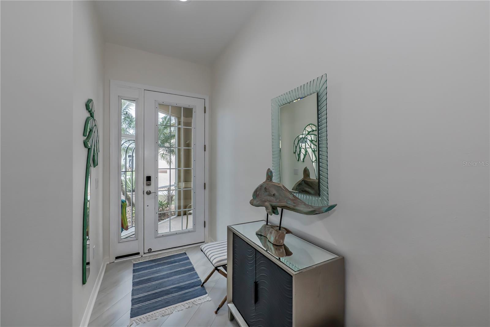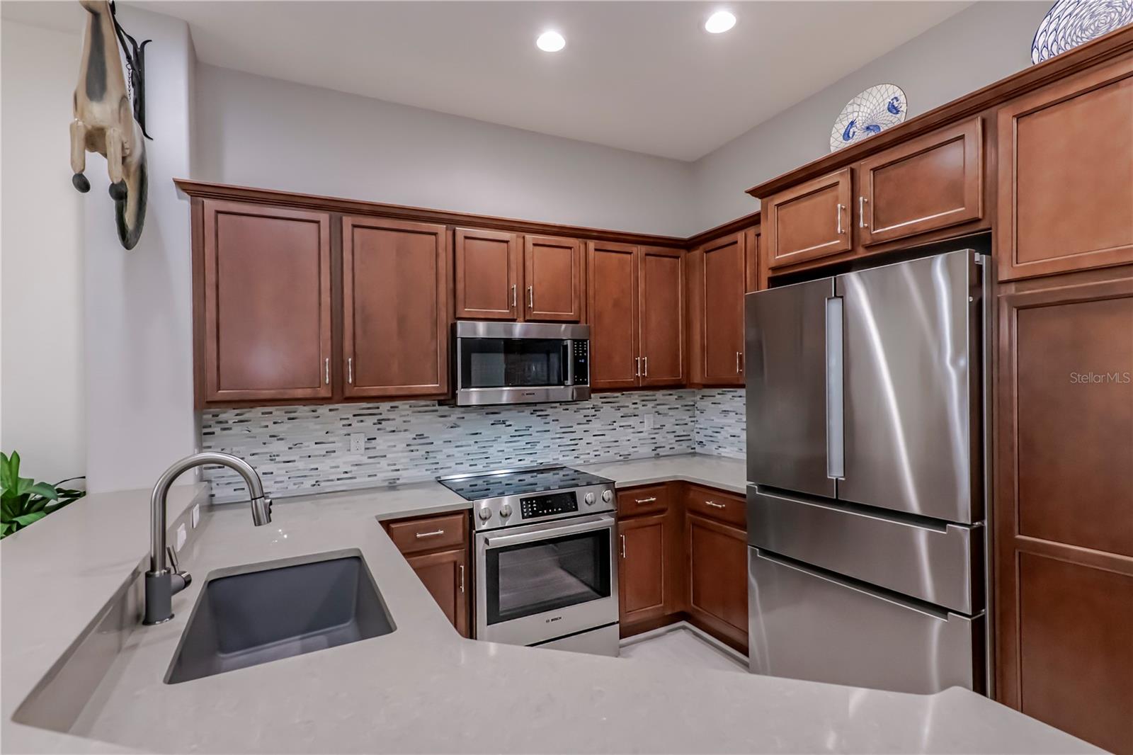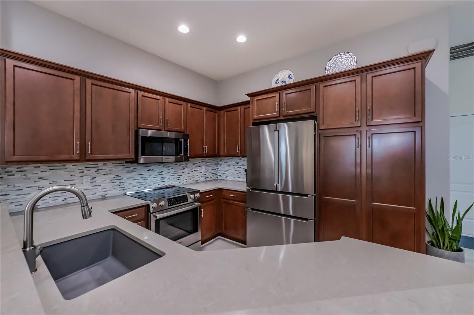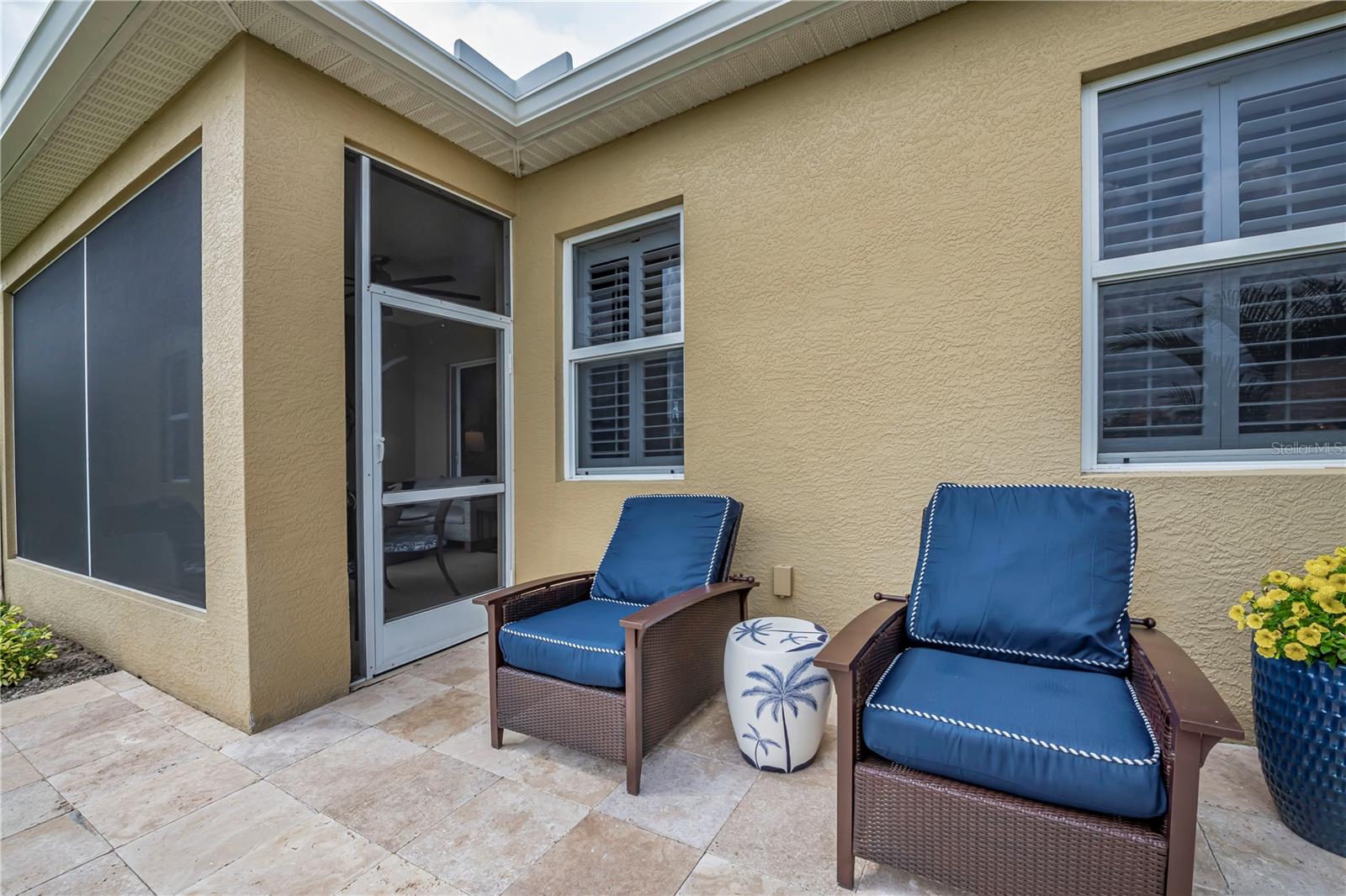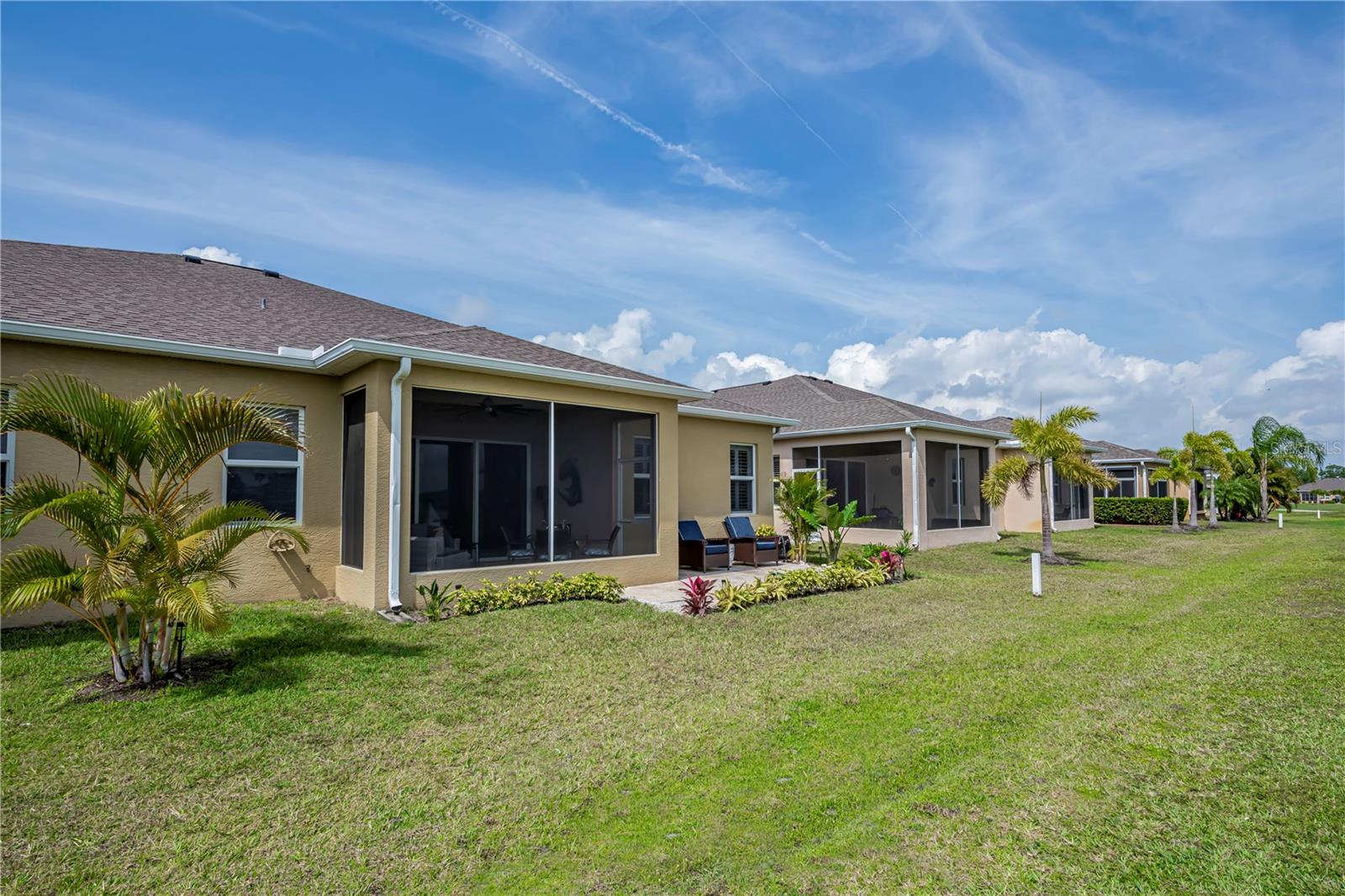 AWESOME LAKEFRONT 2/2/2 Villa overlooking the 1st Tee and fairway, plus PANORAMIC VIEWS across to pool area Cabanas and Clubhouse. Facilities are all simply walking distance. Located in the GATED golf course/active resort of Kings Gate, a 55+ community. This popular Augusta floor plan features a great OPEN CONCEPT design with 10 FOOT CEILINGS throughout. Incredible upgrades that affords SPECTACULAR VIEWS of the golf course/water from the EXPANDED LANAI and travertine patio, living room, dining room and kitchen. Welcoming foyer is impressive the moment you enter the front screened porch. Stunning Chef worthy kitchen with its STONE COUNTERS, rich wood cabinets, top of the line STAINLESS appliances, luxurious glass tile decorator backsplash, full breakfast bar and striking specialty lighting will make entertaining delightful. All new LED pot lights. bathroom fans and updated fixtures throughout. No carpet or tile, Brand new 2023 ENGINEERED FLOORING THROUGHOUT THE HOME. Home is newly painted in 2023 in neutral colors to make this home look lovely and modern. Master bedroom is a retreat with waterfront view, luxurious updated ensuite bath and full closets. Guests will enjoy serenity in the spacious second bedroom, with shared access to main bath that is lavishly upgraded. Laundry room has lots of storage cabinets and a FULL PANTRY for you extra storage needs. Full 2 car garage has a nice automatic PRIVACY SHADE to make it easy to enjoy working with a nice cross breeze. Driveway is long enough to accommodate a full size pickup truck or large SUV. The large scenic, back lanai/patio is the icing on the cake, zen stone laded tiles beckon you day or night to relax sunrise or sunset watching wildlife on the lake, golfers in a distance with your favorite beverage of choice, so relaxing! And there are NO cable boxes, utility, water or electrical boxes on the front lawns, impact glass & hurricane garage door, NEW ROOF DEC 2022. Amidst this picturesque waterfront community, residents enjoy a range of amenities, from lawn maintenance and low cost HOA-covered amenities such as irrigation water, cable, roof maintenance, exterior paint, termite, & pressure washing. This active 55+ community provides a myriad of exciting activities with a full-time Activities Director, an Olympic-sized heated swimming pool and spa, exercise and fitness centers, lighted clay surfaced tennis courts, a theater, billiards and computer room and so much more. Other planned activities and outings for your pleasure are not limited but include pickleball, bocce, lawn bowling, shuffleboard, horseshoes, mahjongg, cards & crafts. Enjoy onsite full service Lions Den Restaurant/ bar with Tuesday night Karaoke and monthly trivia contests, ballroom, plus a 18-hole golf course. A golf cart ride takes you to the nearby Winn Dixie shopping plaza, offering access to groceries, a drug store, banking, restaurants, and more. Boat or RV storage is available for a separate fee, adding a layer of convenience to the already desirable lifestyle this community embodies.Discover the extraordinary lakeside living experience waiting for you ,with unparalleled views, luxurious amenities, and an active community lifestyle, THIS IS AN OPPORTUNITY NOT TO BE MISSED. Schedule your showing today and make this exceptional residence your lakeside .