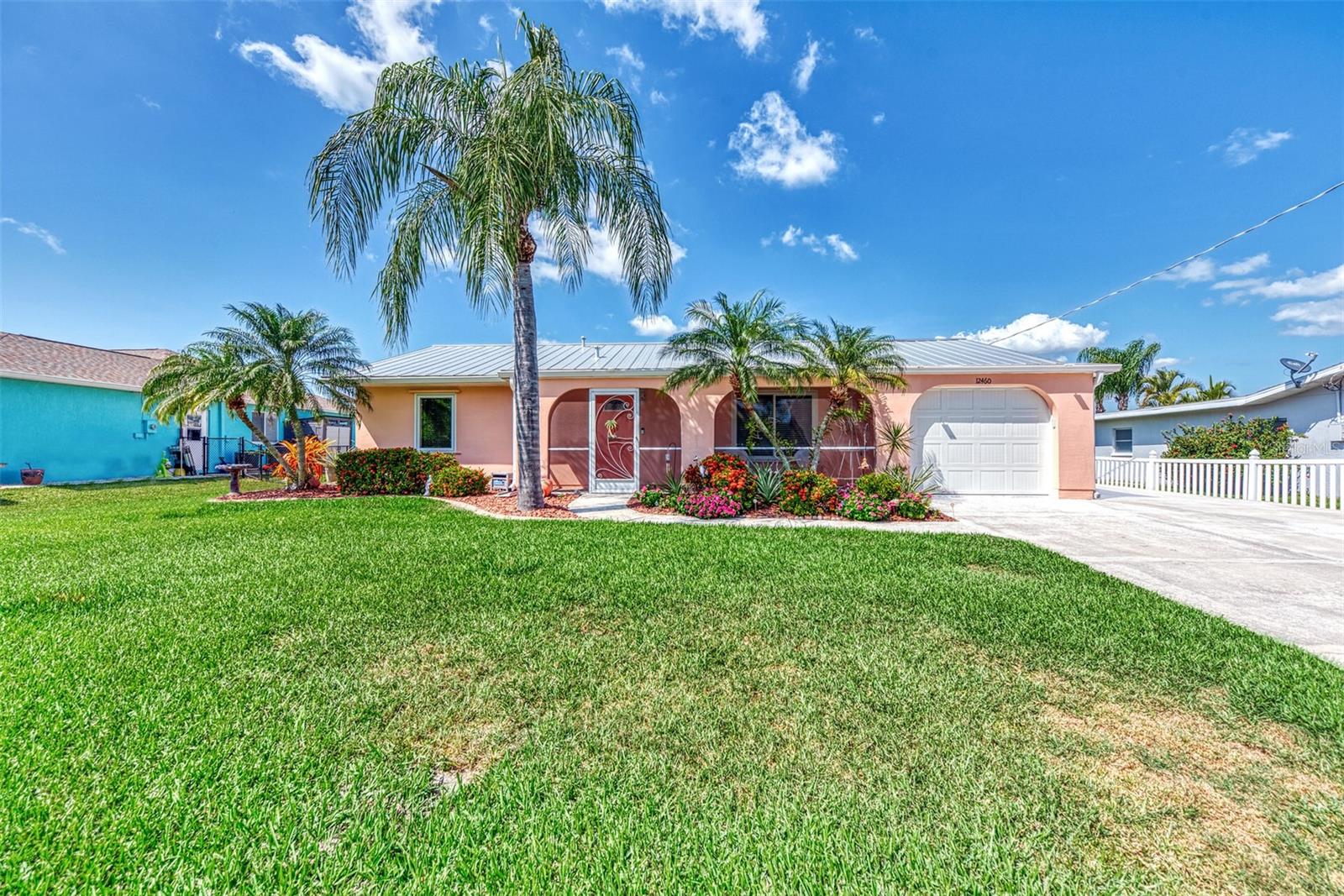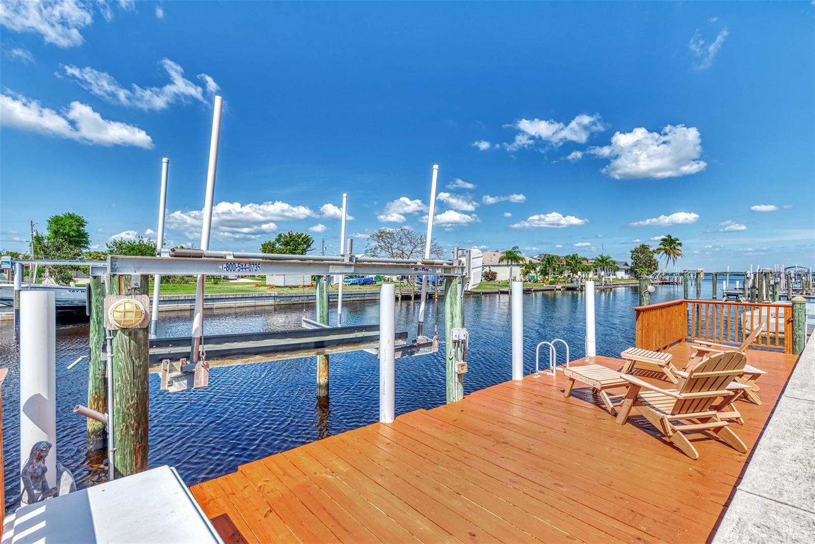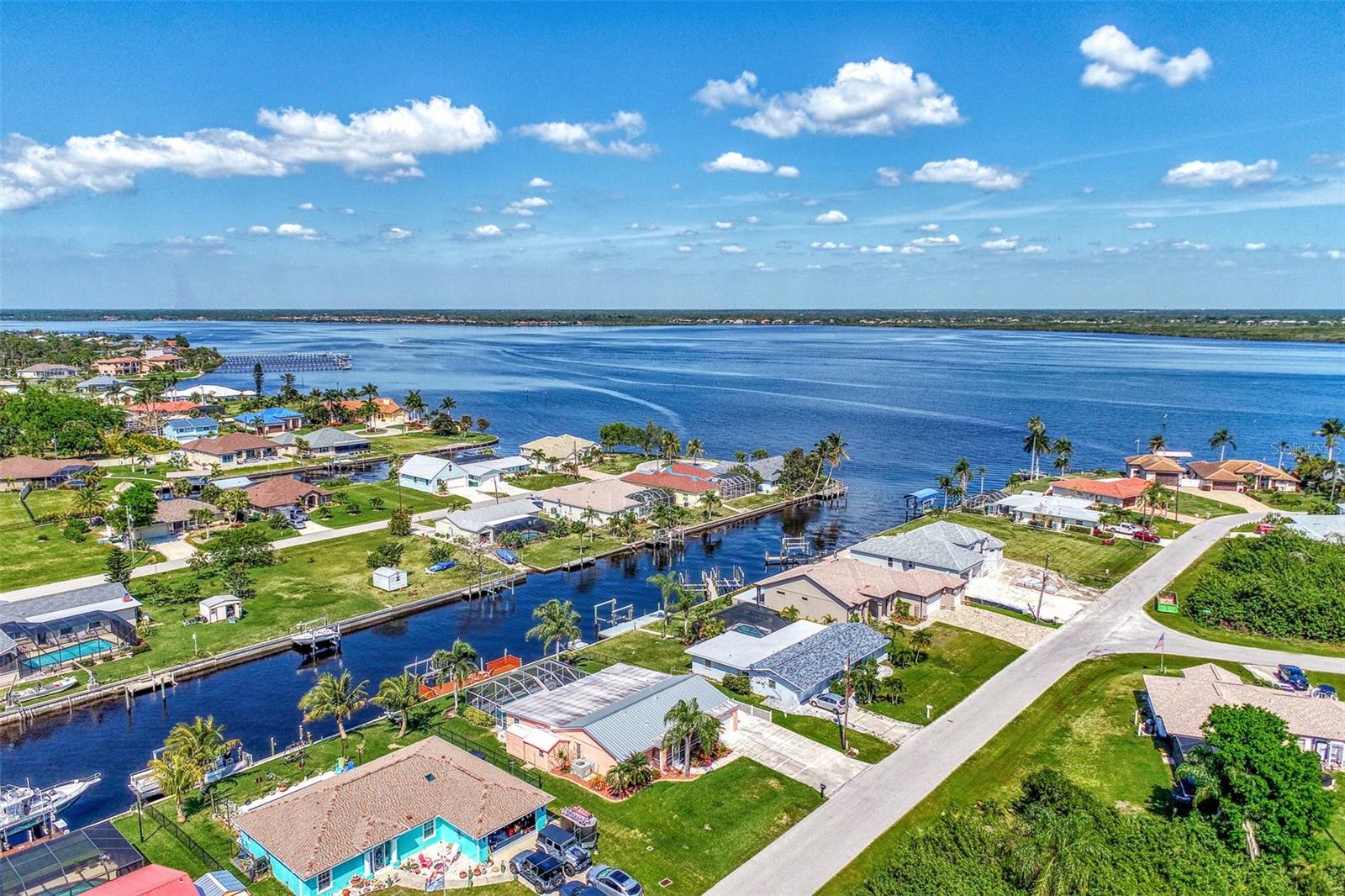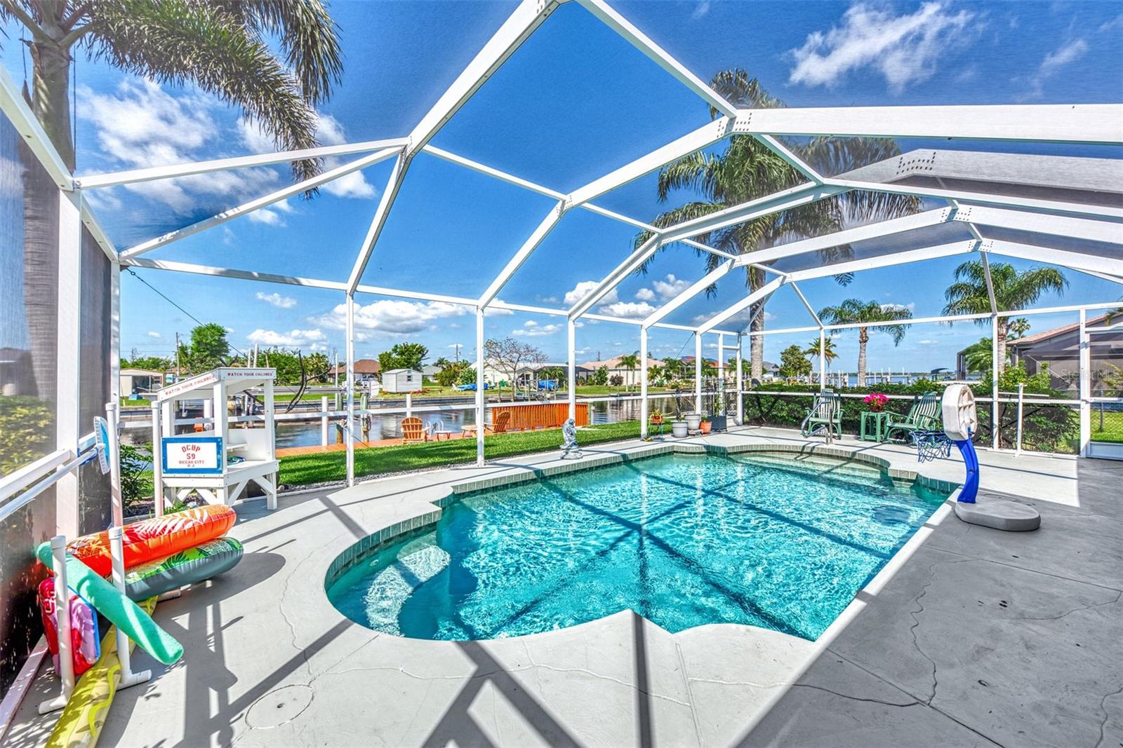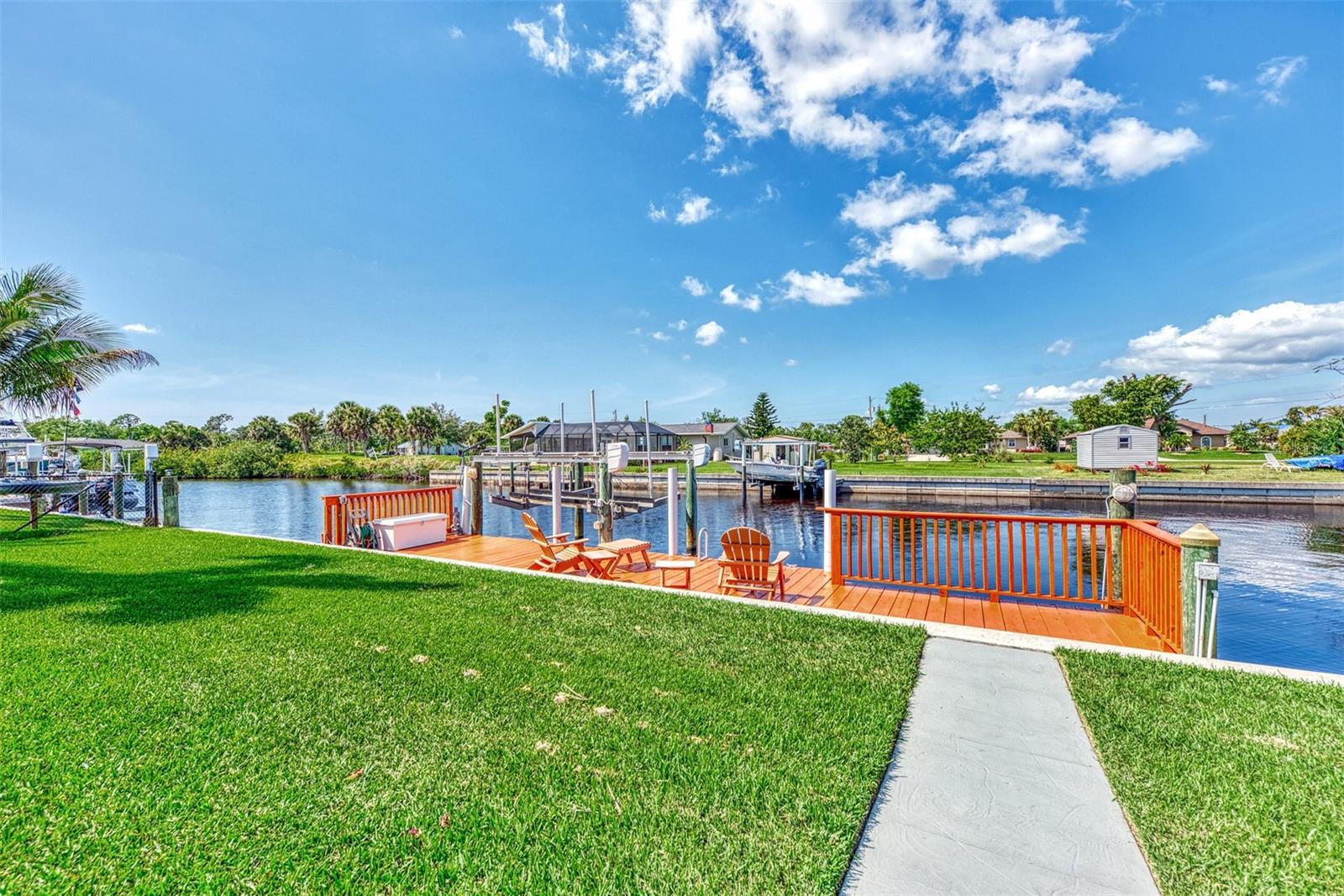 INCREDIBLE VALUE AND PRICE IMPROVEMENT IN A NEIGHBORHOOD WITH MULTI MILLION DOLLAR WATERFRONT PROPERTIES! Spectacular 3 bedroom, 2 bath pool home with private 6,000 lb boat lift, wood dock with electricity and 80' concrete seawall! This waterfront home leads out to the El-Jobean bridge with QUICK ACCESS to Charlotte Harbor and the GULF! Many wonderful updates include a newer metal roof & A/C (2019), BRAND NEW septic & drain field (2024), hot water heater (2021), refrigerator (2021), updated lanai area, boat lift & electric panel (2003), NEW garage door, side door & opener! Double wide driveway with R/V or Boat parking on side! With almost 1900 sq. ft of living, there is an array of amenities and updates included along with a blend of comfort, luxury, and convenience. As you step inside, you're greeted by an eye-catching waterfront view and a spacious living room, perfect for hosting gatherings or simply lounging with loved ones. The kitchen is a chef's delight, featuring ample counter space and a cozy dinette area where you can savor your morning coffee while admiring tranquil blue water views. Entertain in style in the formal dining room, or unwind in the welcoming family room, ideal for movie nights or lazy Sunday afternoons. Need extra space for guests or a home office? Look no further than the versatile bonus room, complete with its own access door to the inviting pool area. The fenced-in side yard offers a safe haven for children and pets to play freely. Whether you're a fishing enthusiast or love water sports, or simply love soaking up the sun, this waterfront paradise has something for everyone. And let's not forget about the practical updates that enhance both comfort and peace of mind. This home also has 2 storage sheds! The location is minutes to Englewood Beach, Twisted Fork restaurant, Town Center Mall, and a short drive to Boca Grande, the Tarpon fishing capital of the world. Call today! Rare find in this wonderful neighborhood!