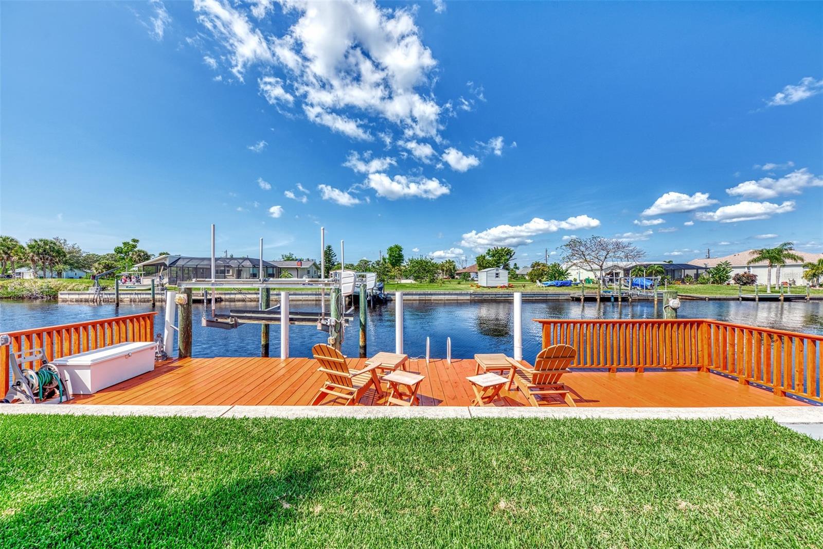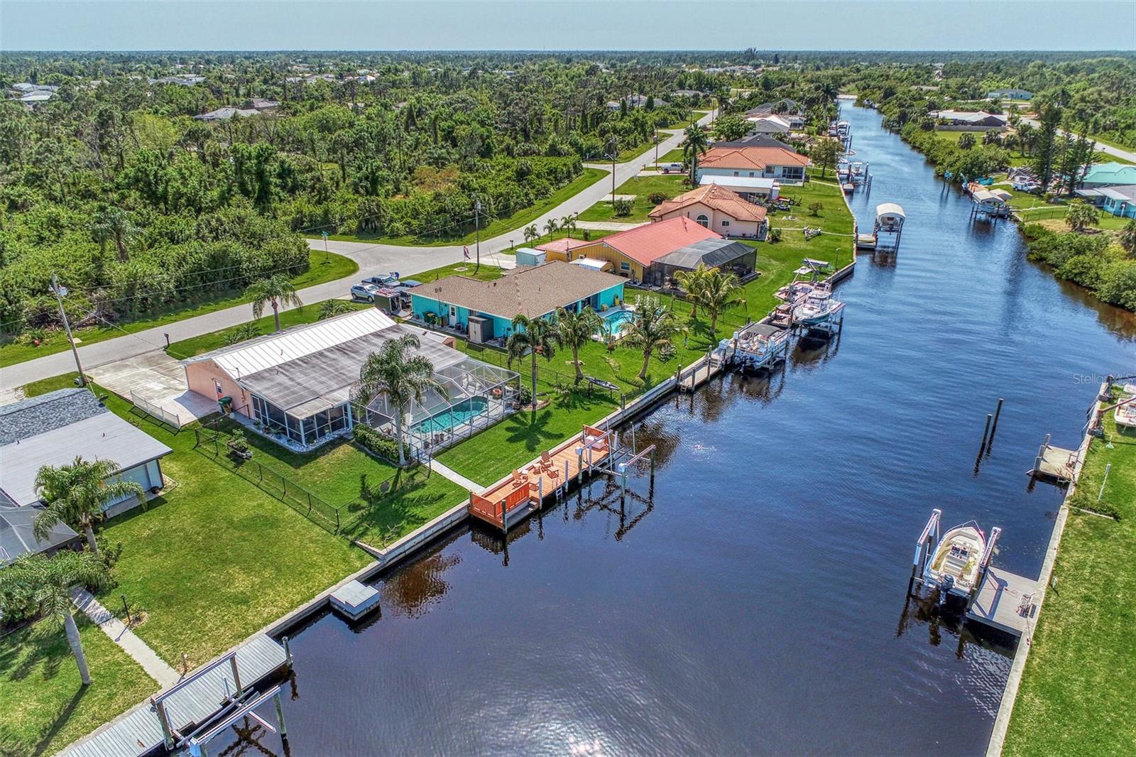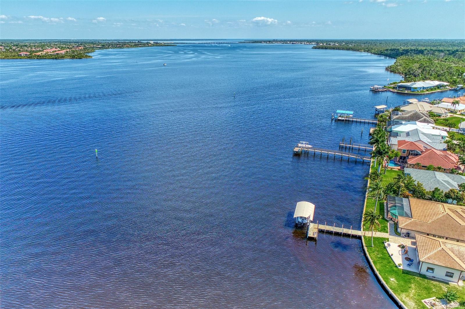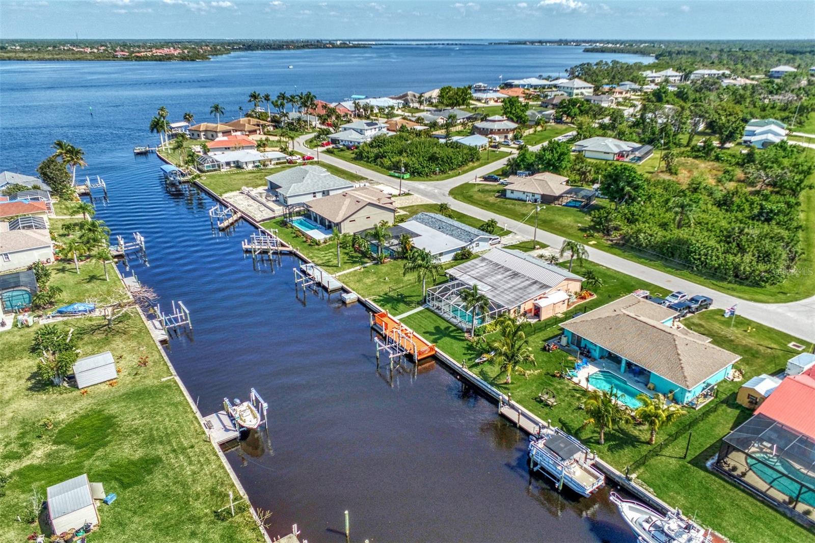 INCREDIBLE VALUE AND PRICE IMPROVEMENT IN A NEIGHBORHOOD WITH MULTI MILLION DOLLAR WATERFRONT PROPERTIES! Spectacular 3 bedroom, 2 bath pool home with private 6,000 lb boat lift, wood dock with electricity and 80' concrete seawall! This waterfront home leads out to the El-Jobean bridge with QUICK ACCESS to Charlotte Harbor and the GULF! Many wonderful updates include a newer metal roof & A/C (2019), BRAND NEW septic & drain field (2024), hot water heater (2021), refrigerator (2021), updated lanai area, boat lift & electric panel (2003), NEW garage door, side door & opener! Double wide driveway with R/V or Boat parking on side! With almost 1900 sq. ft of living, there is an array of amenities and updates included along with a blend of comfort, luxury, and convenience. As you step inside, you're greeted by an eye-catching waterfront view and a spacious living room, perfect for hosting gatherings or simply lounging with loved ones. The kitchen is a chef's delight, featuring ample counter space and a cozy dinette area where you can savor your morning coffee while admiring tranquil blue water views. Entertain in style in the formal dining room, or unwind in the welcoming family room, ideal for movie nights or lazy Sunday afternoons. Need extra space for guests or a home office? Look no further than the versatile bonus room, complete with its own access door to the inviting pool area. The fenced-in side yard offers a safe haven for children and pets to play freely. Whether you're a fishing enthusiast or love water sports, or simply love soaking up the sun, this waterfront paradise has something for everyone. And let's not forget about the practical updates that enhance both comfort and peace of mind. This home also has 2 storage sheds! The location is minutes to Englewood Beach, Twisted Fork restaurant, Town Center Mall, and a short drive to Boca Grande, the Tarpon fishing capital of the world. Call today! Rare find in this wonderful neighborhood!
