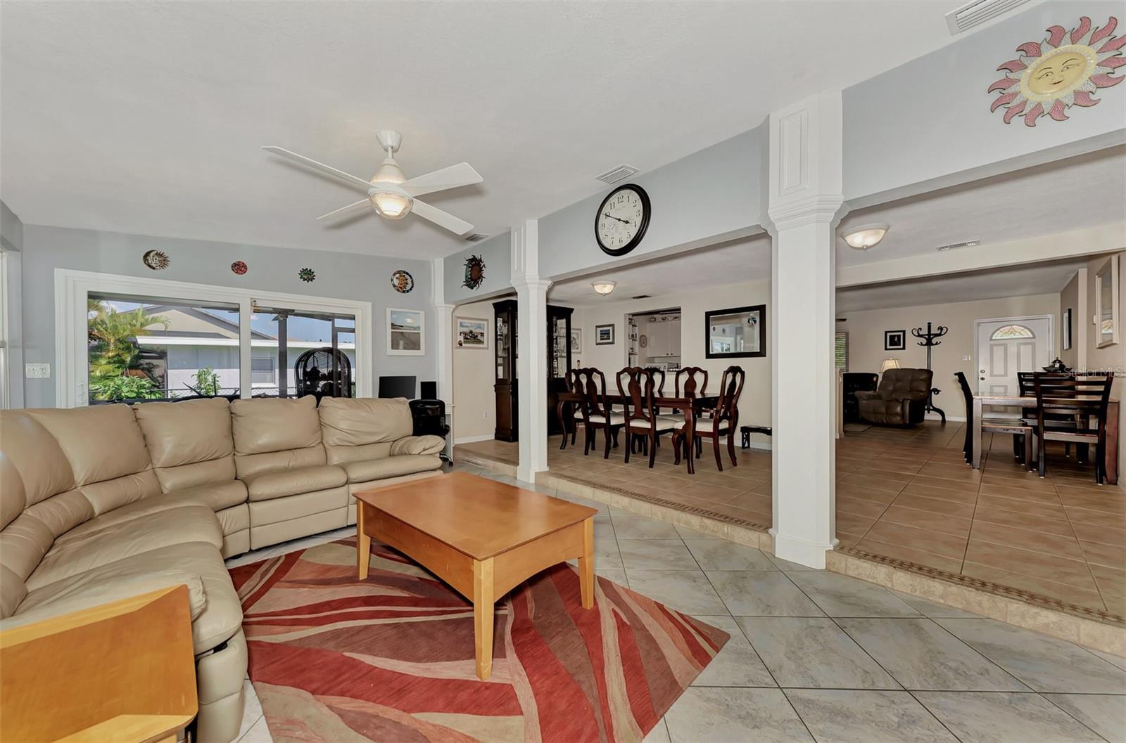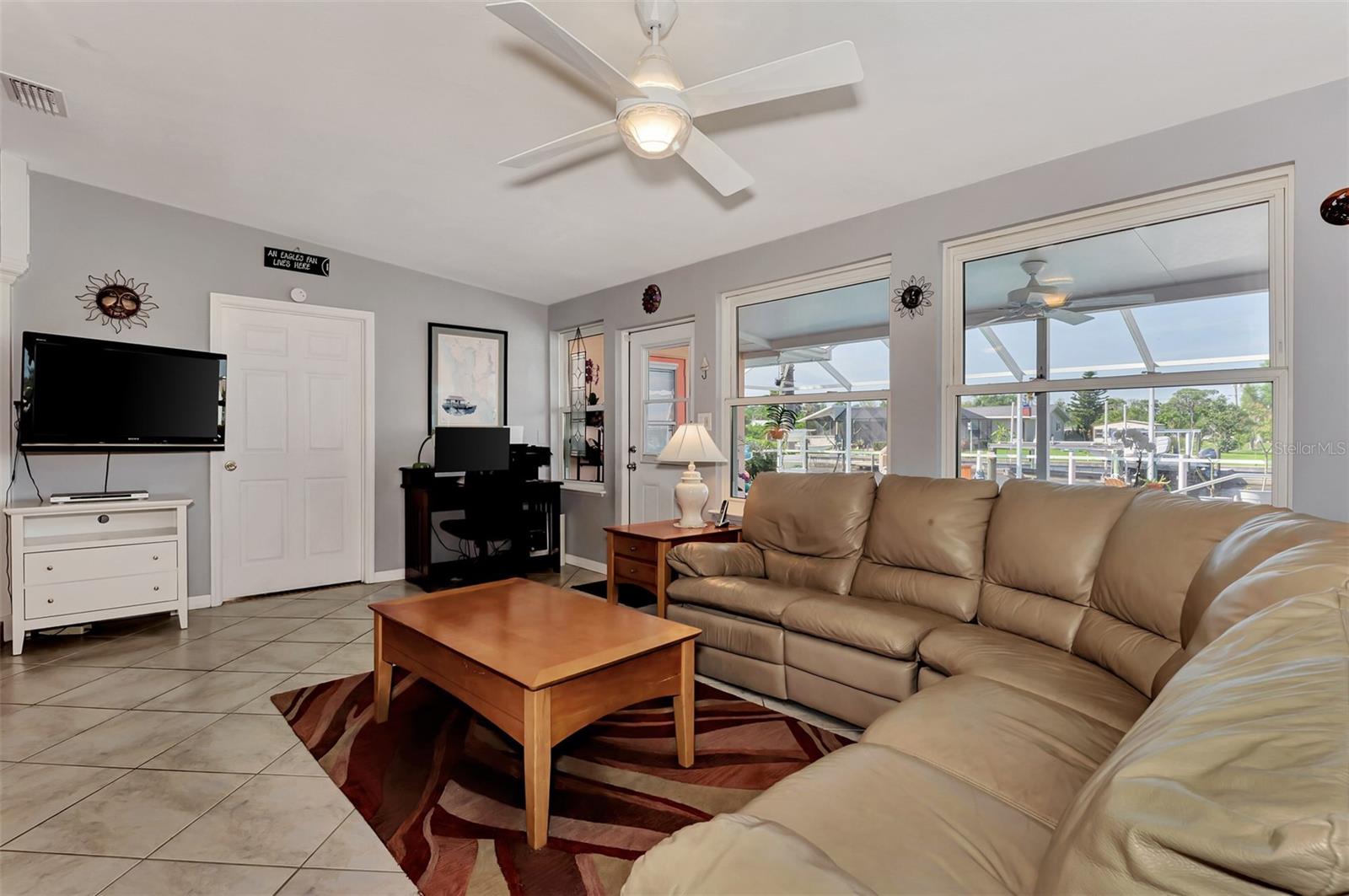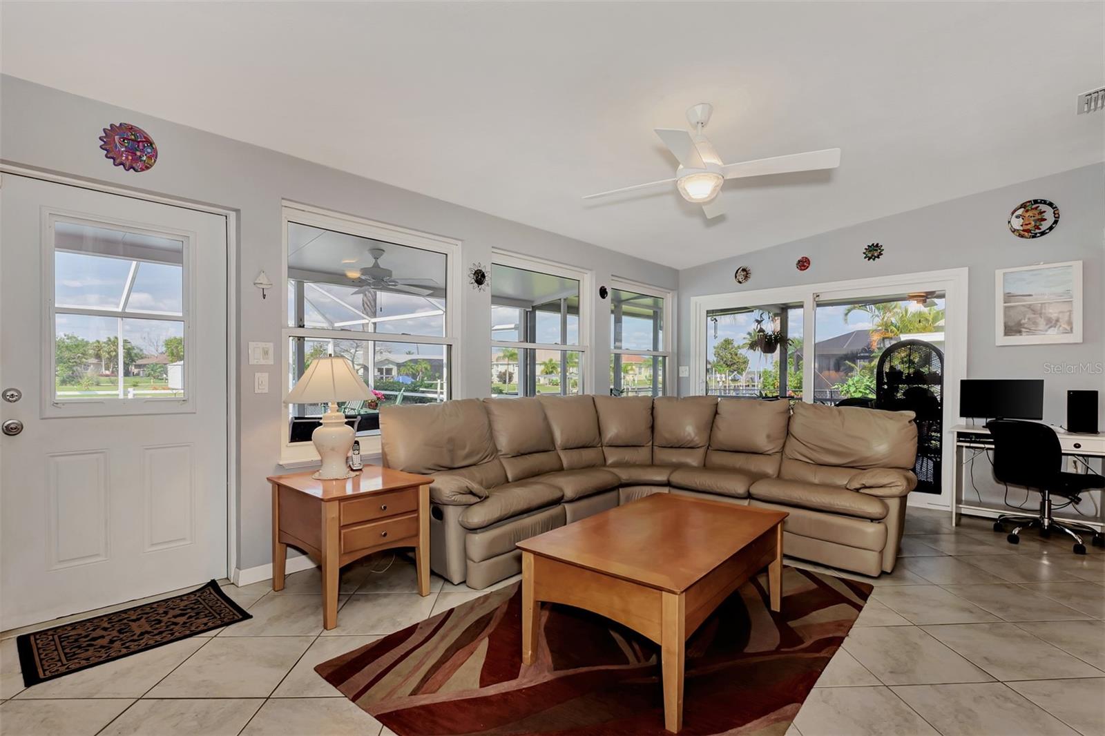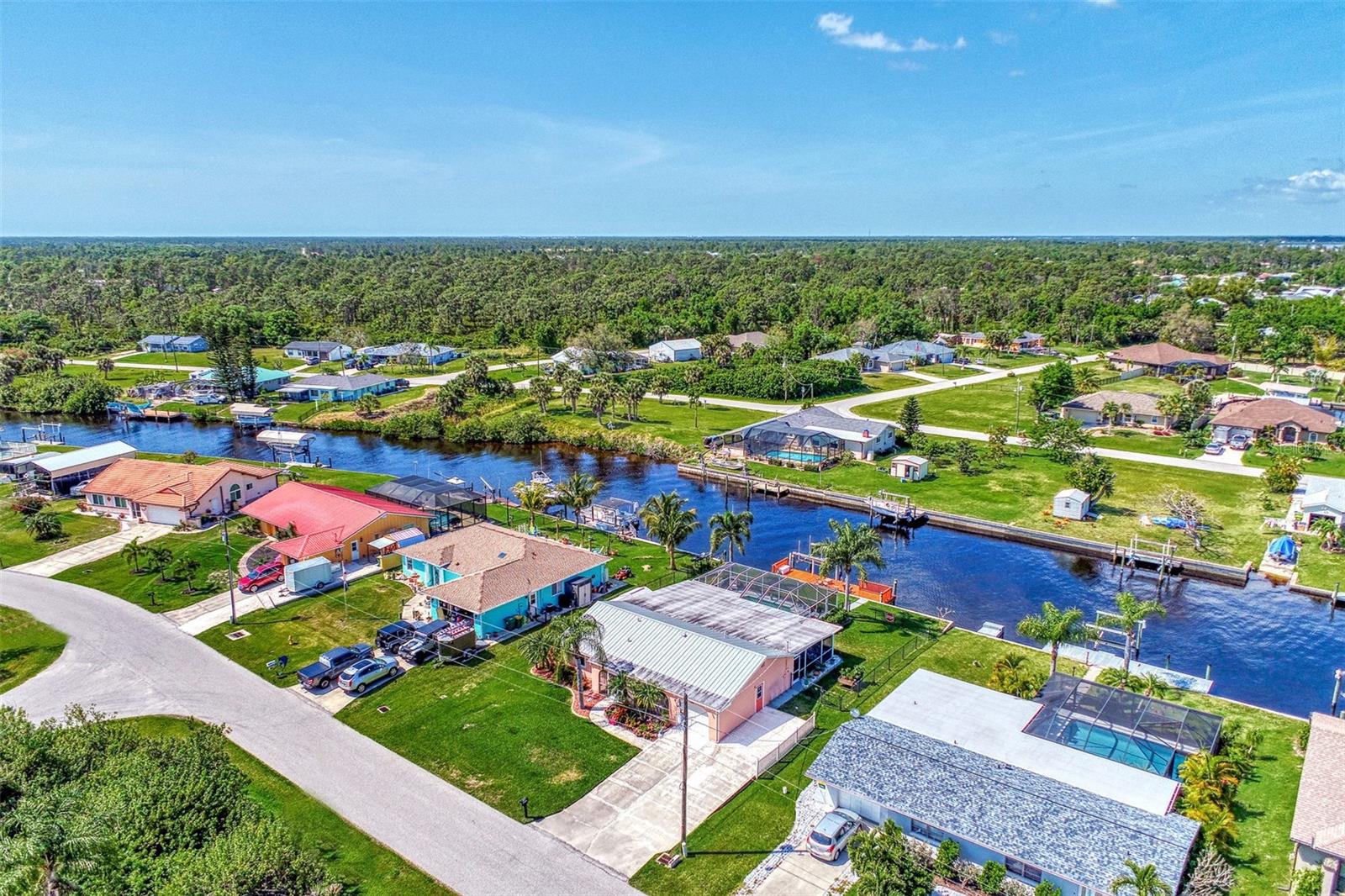 INCREDIBLE VALUE AND PRICE IMPROVEMENT IN A NEIGHBORHOOD WITH MULTI MILLION DOLLAR WATERFRONT PROPERTIES! Spectacular 3 bedroom, 2 bath pool home with private 6,000 lb boat lift, wood dock with electricity and 80' concrete seawall! This waterfront home leads out to the El-Jobean bridge with QUICK ACCESS to Charlotte Harbor and the GULF! Many wonderful updates include a newer metal roof & A/C (2019), BRAND NEW septic & drain field (2024), hot water heater (2021), refrigerator (2021), updated lanai area, boat lift & electric panel (2003), NEW garage door, side door & opener! Double wide driveway with R/V or Boat parking on side! With almost 1900 sq. ft of living, there is an array of amenities and updates included along with a blend of comfort, luxury, and convenience. As you step inside, you're greeted by an eye-catching waterfront view and a spacious living room, perfect for hosting gatherings or simply lounging with loved ones. The kitchen is a chef's delight, featuring ample counter space and a cozy dinette area where you can savor your morning coffee while admiring tranquil blue water views. Entertain in style in the formal dining room, or unwind in the welcoming family room, ideal for movie nights or lazy Sunday afternoons. Need extra space for guests or a home office? Look no further than the versatile bonus room, complete with its own access door to the inviting pool area. The fenced-in side yard offers a safe haven for children and pets to play freely. Whether you're a fishing enthusiast or love water sports, or simply love soaking up the sun, this waterfront paradise has something for everyone. And let's not forget about the practical updates that enhance both comfort and peace of mind. This home also has 2 storage sheds! The location is minutes to Englewood Beach, Twisted Fork restaurant, Town Center Mall, and a short drive to Boca Grande, the Tarpon fishing capital of the world. Call today! Rare find in this wonderful neighborhood!