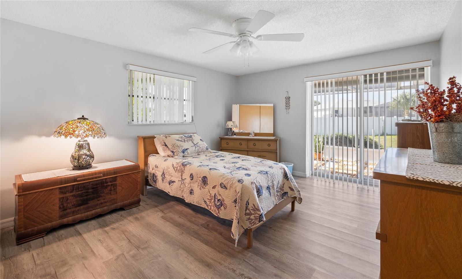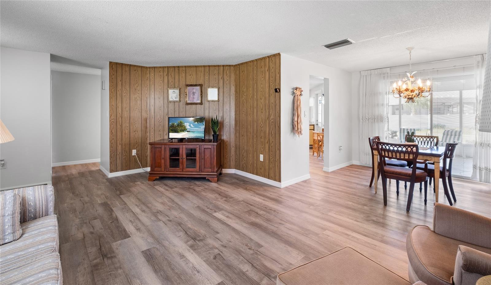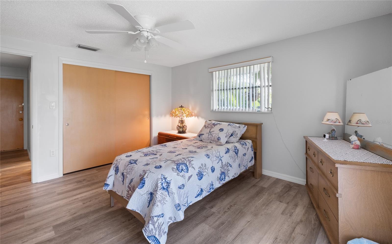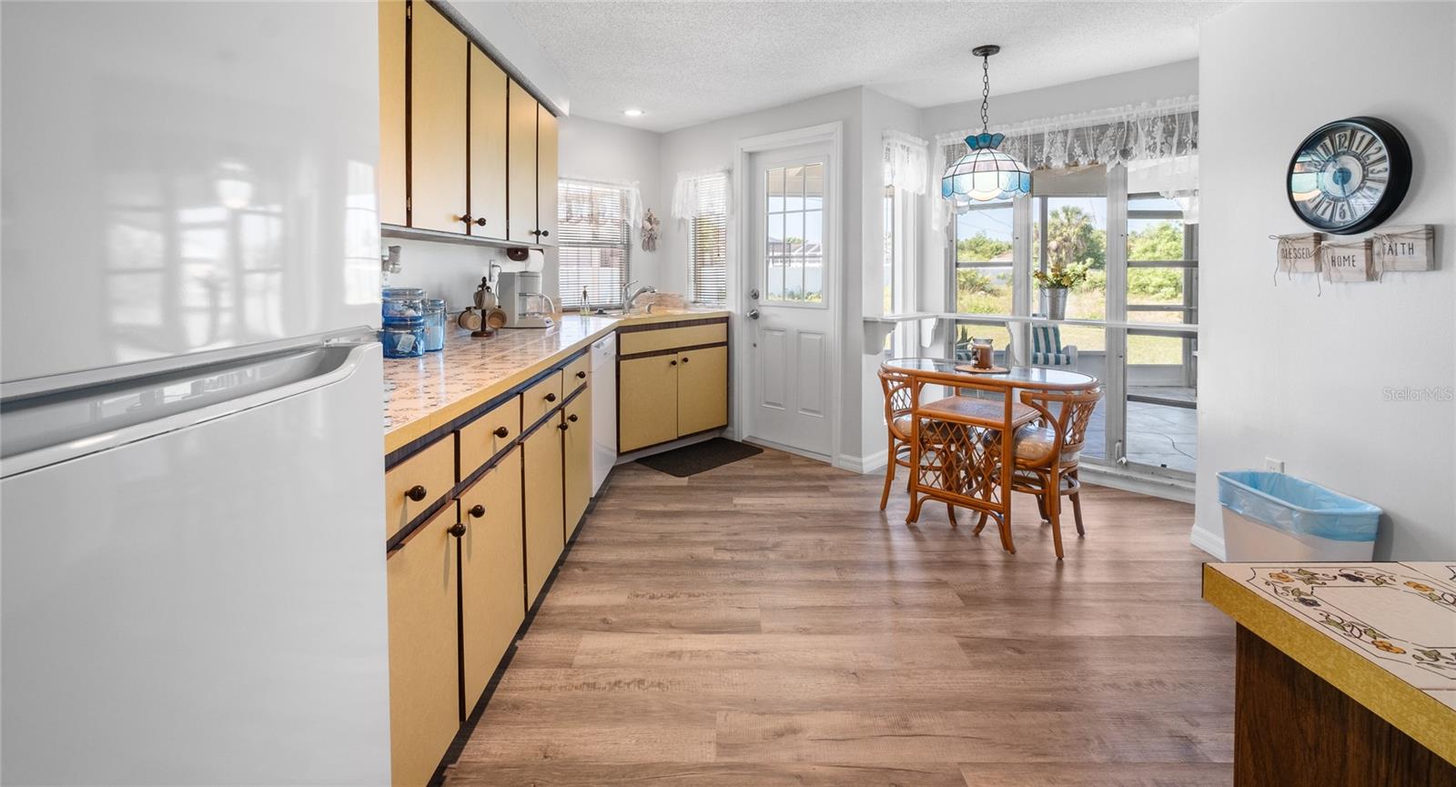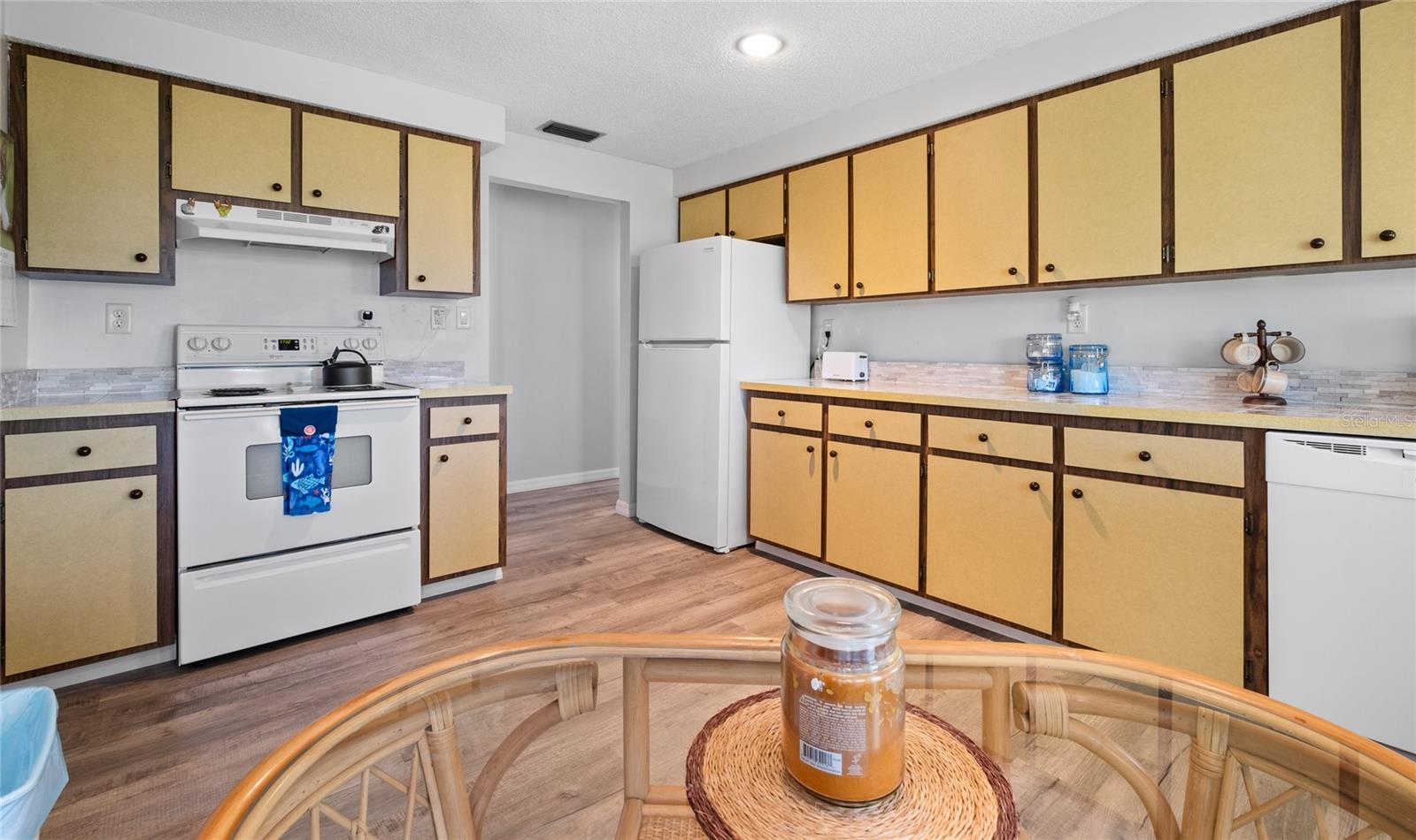 TURN Key ready to move in home. This lovely 2 bed, 2 bath home has it all. No need to lift a finger. The home sits on an oversized corner lot 0.37 of an acre. This home has been maintained to the highest degree and updated from everything from re-pipping, NEW AC, New Electric Panel for entire house, NEW faucets, NEW hot water heater, NEW toilets, NEW Electric BOX for AC, NEW exterior lights, 2 NEW high impact front door and kitchen door. Pocket doors throughout home. NEW laminate flooring throughout entire home and NEW baseboards. 2022 NEW Paint- exterior and interior, including closets. NEW GFI outlets installed in kitchen and bathrooms. 2022 garage floor painted, 2023 NEW dishwasher and NEW refrigerator installed. 2023 New high impact garage door installed. Furniture is included with exception to a few sentimental items. NO HOA. NO Deed Restrictions.