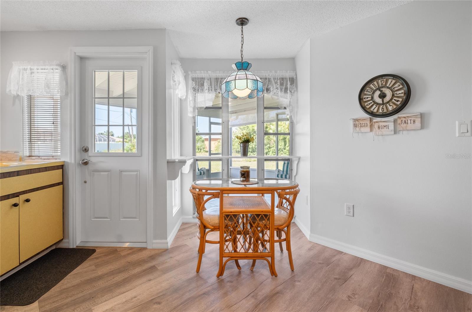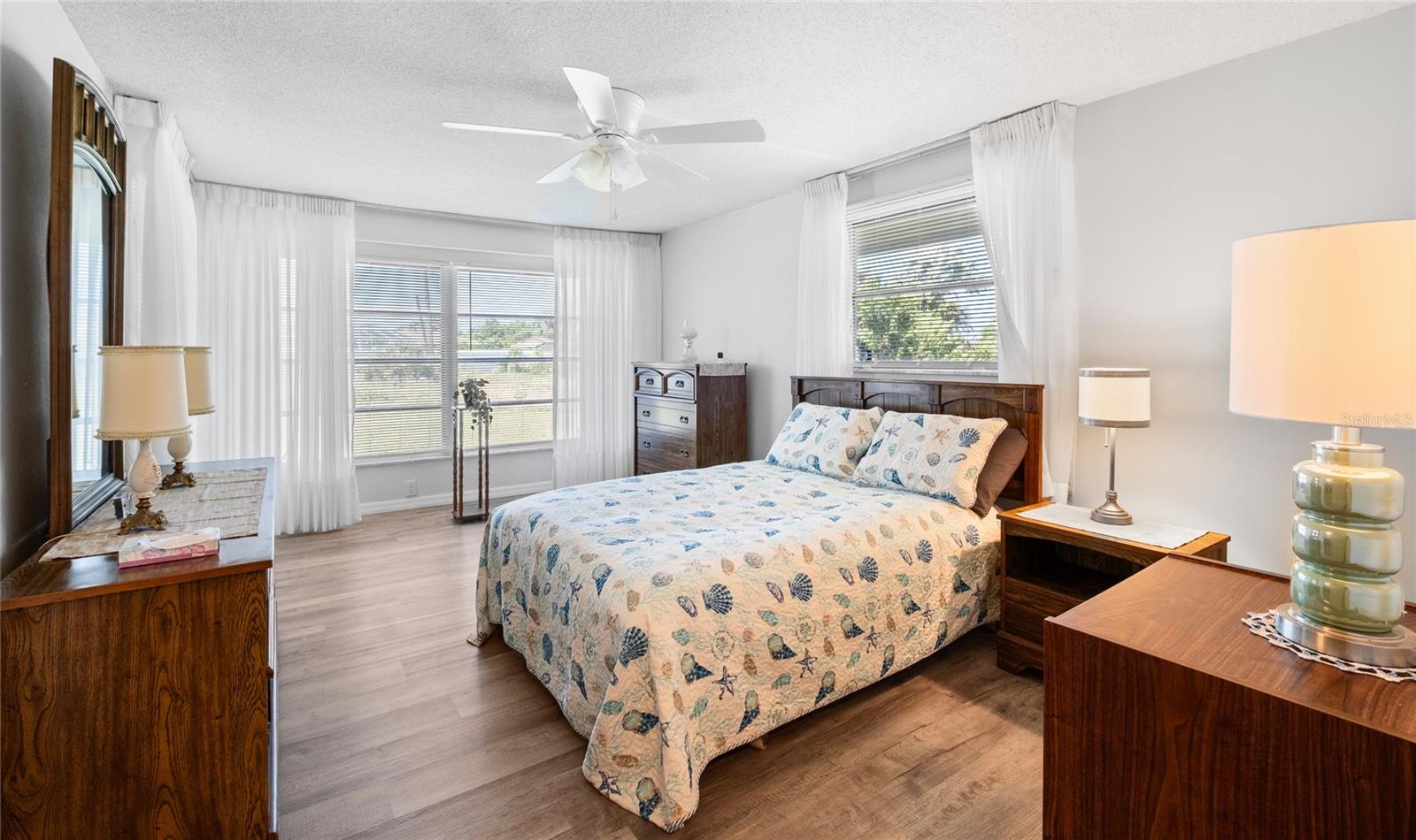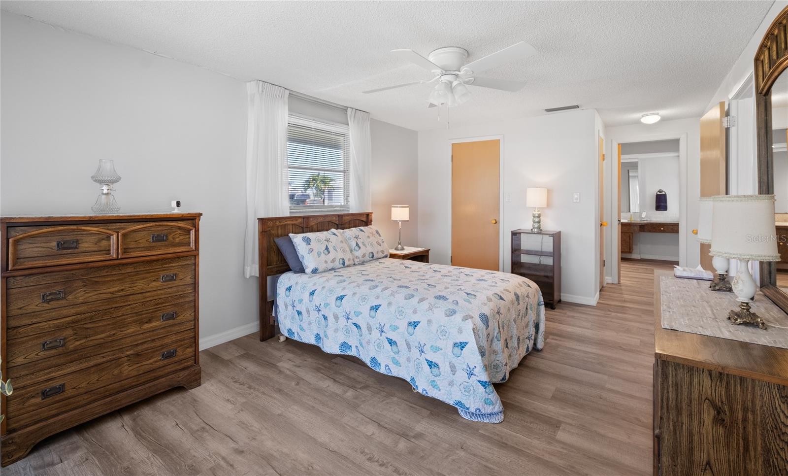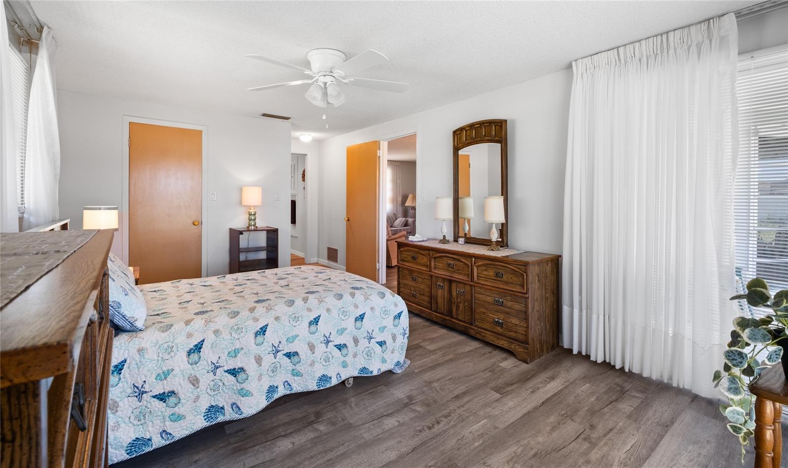 TURN Key ready to move in home. This lovely 2 bed, 2 bath home has it all. No need to lift a finger. The home sits on an oversized corner lot 0.37 of an acre. This home has been maintained to the highest degree and updated from everything from re-pipping, NEW AC, New Electric Panel for entire house, NEW faucets, NEW hot water heater, NEW toilets, NEW Electric BOX for AC, NEW exterior lights, 2 NEW high impact front door and kitchen door. Pocket doors throughout home. NEW laminate flooring throughout entire home and NEW baseboards. 2022 NEW Paint- exterior and interior, including closets. NEW GFI outlets installed in kitchen and bathrooms. 2022 garage floor painted, 2023 NEW dishwasher and NEW refrigerator installed. 2023 New high impact garage door installed. Furniture is included with exception to a few sentimental items. NO HOA. NO Deed Restrictions.