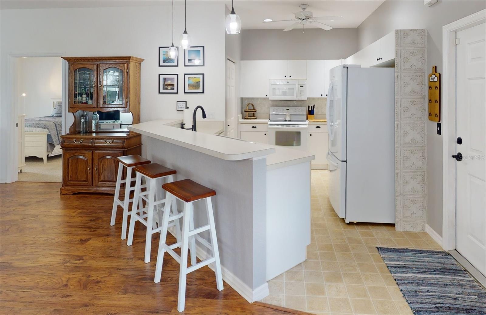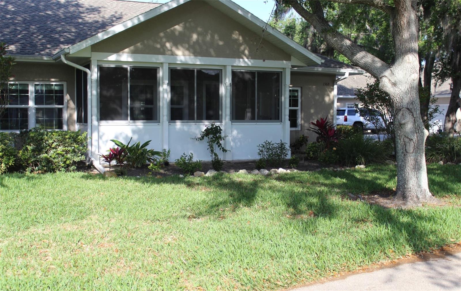 Discover the charm of 1568 Red Oak Lane, a pristine turn-key villa in Port Charlotte's Heritage Oak Park. This 2002-built villa has been beautifully upgraded for comfort and style. Step into the bright, open floor plan featuring new laminate flooring in the main living space and enjoy the versatile bonus room with trundle beds. The modern kitchen comes equipped with essential appliances for your convenience. Luxury meets comfort in the two bedroom with a den /office that can be used a a third bedroom, including a master suite with a walk-in closet and an en-suite bathroom featuring a walk-in shower. The villa is enhanced by an enclosed lanai with impact windows, providing a second living space rated to withstand 75 MPH winds and newly tiled floor. The lanai is perfect for year-round enjoyment. Noteworthy upgrades include all-new impact windows and a recently replaced A/C unit, which is only five years old, ensuring peace of mind and energy efficiency. Ample storage is provided through a garage with screen doors and metal racks, plus a large attic with pull-down stairs. The villa's community amenities include a pool, fitness center, and tennis courts, all within a pet-friendly environment. Situated on a 0.11-acre lot, this villa combines privacy with the convenience of Port Charlotte's attractions. Take advantage of this opportunity to embrace the Florida lifestyle in a secure, comfortable setting. Schedule your visit to 1568 Red Oak Lane today.