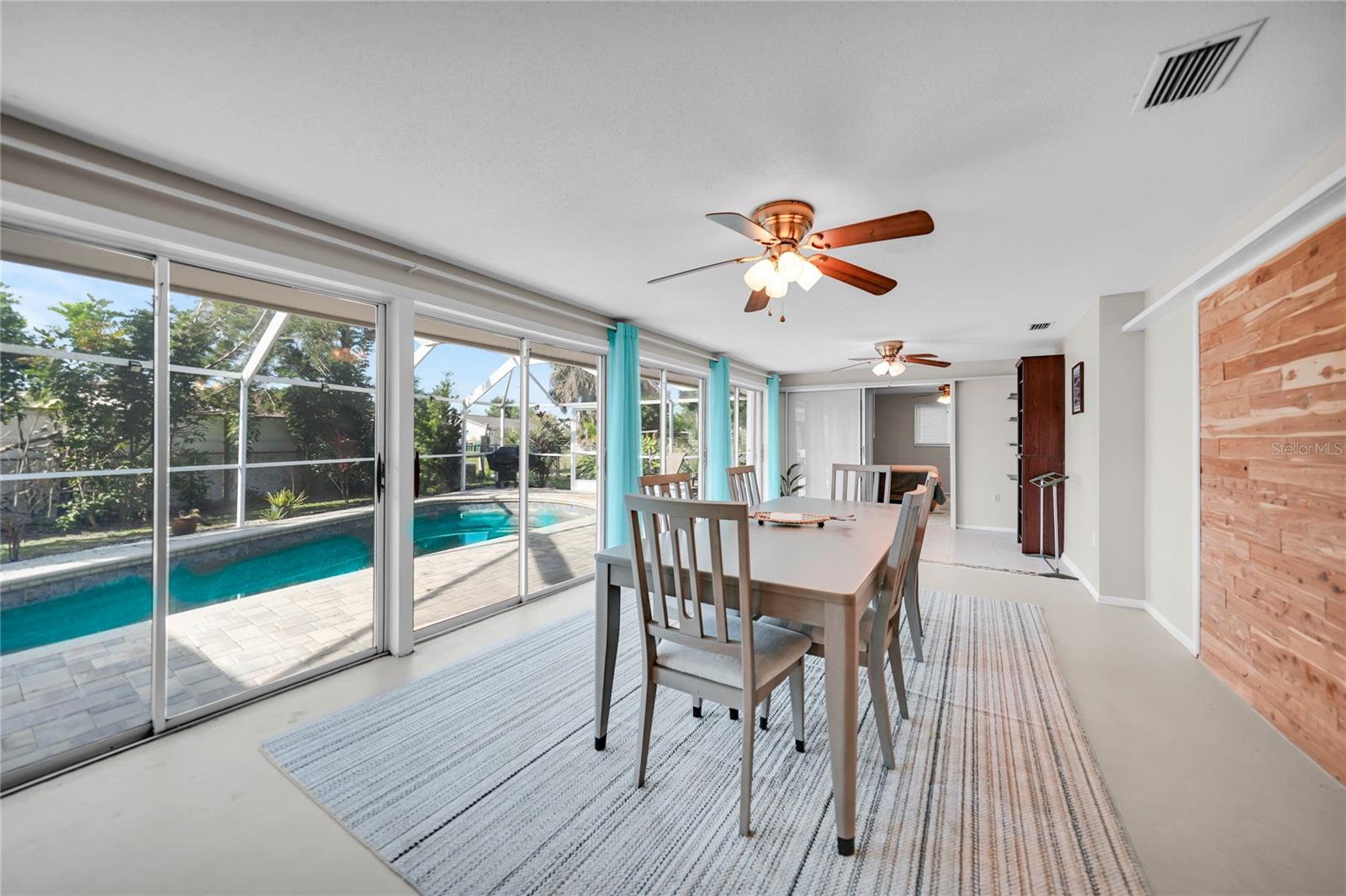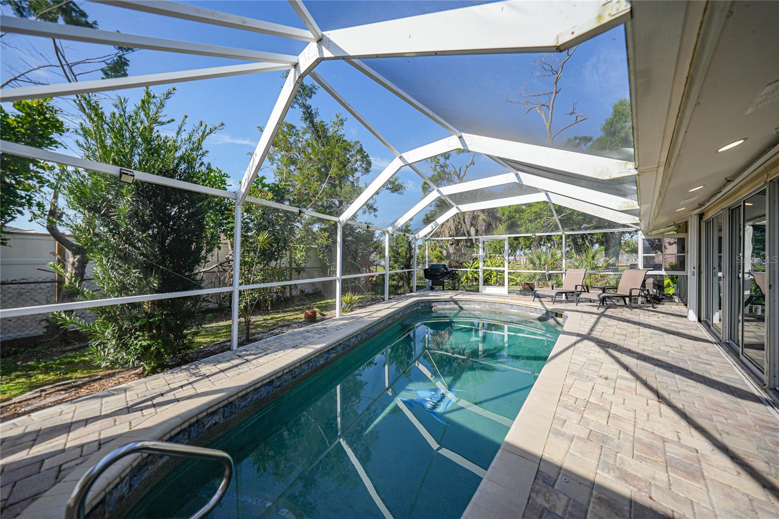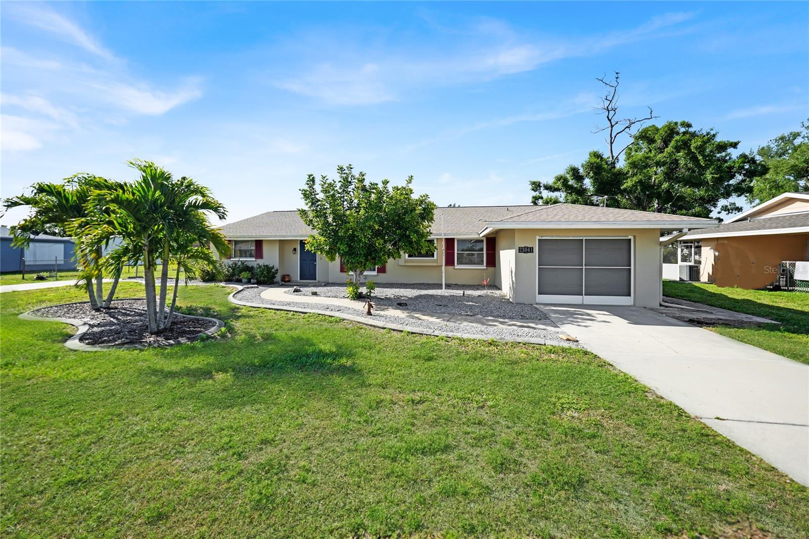 Perfect opportunity to own this nicely updated 3-bedroom, 2-bathroom, heated pool home located in the heart of Port Charlotte. This charming single-family home has 1,888 square feet of living space with an attached garage and oversized fenced-in yard. As you enter, you'll immediately notice the meticulous updates throughout. The open floorplan enhances the home's spacious feel, with a bright main living area with built-in shelving and luxury vinyl flooring. The living room seamlessly flows into a large sunroom with four sets of sliders that open offering panoramic views of the pool lanai. This versatile space is perfect for hosting gatherings or simply enjoying the Florida sunshine year-round. The kitchen has been tastefully renovated with shaker cabinets, sleek granite countertops, and top-of-the-line stainless steel appliances, creating a modern and inviting space to prepare meals and gather with loved ones. The master suite offers a serene oasis, complete with a spacious walk-in closet plush carpeting and a private bath, ensuring a tranquil retreat from the hustle and bustle of daily life. Positioned separately from the primary suite are two guest bedrooms that share a full bath and provide privacy and comfort. Step outside to discover your own private paradise. The pool area is an entertainer's delight, featuring a fully screened enclosure, elegant paver surroundings, pool is heated/saltwater and a charming, covered area for outdoor dining or relaxation. Whether you're hosting a barbecue with friends or lounging by the pool with a good book, this space is sure to impress. The fenced, oversized side yard provides additional versatility and convenience, with an extra driveway and a convenient storage shed for all your outdoor equipment and toys. With no deed restrictions or HOA fees, you have the freedom to customize the property to suit your lifestyle and preferences. Updates including the A/C and water heater in 2016, along with a new roof and pool heater in 2021, offer peace of mind and ensure years of comfort and enjoyment. Schedule your showing today and make this your forever home! PLEASE ENJOY THE ATTACHED INTERACTIVE 3D TOUR!