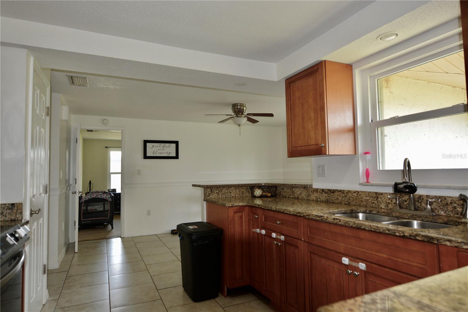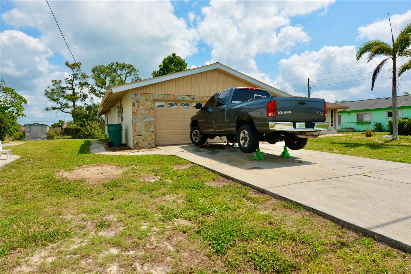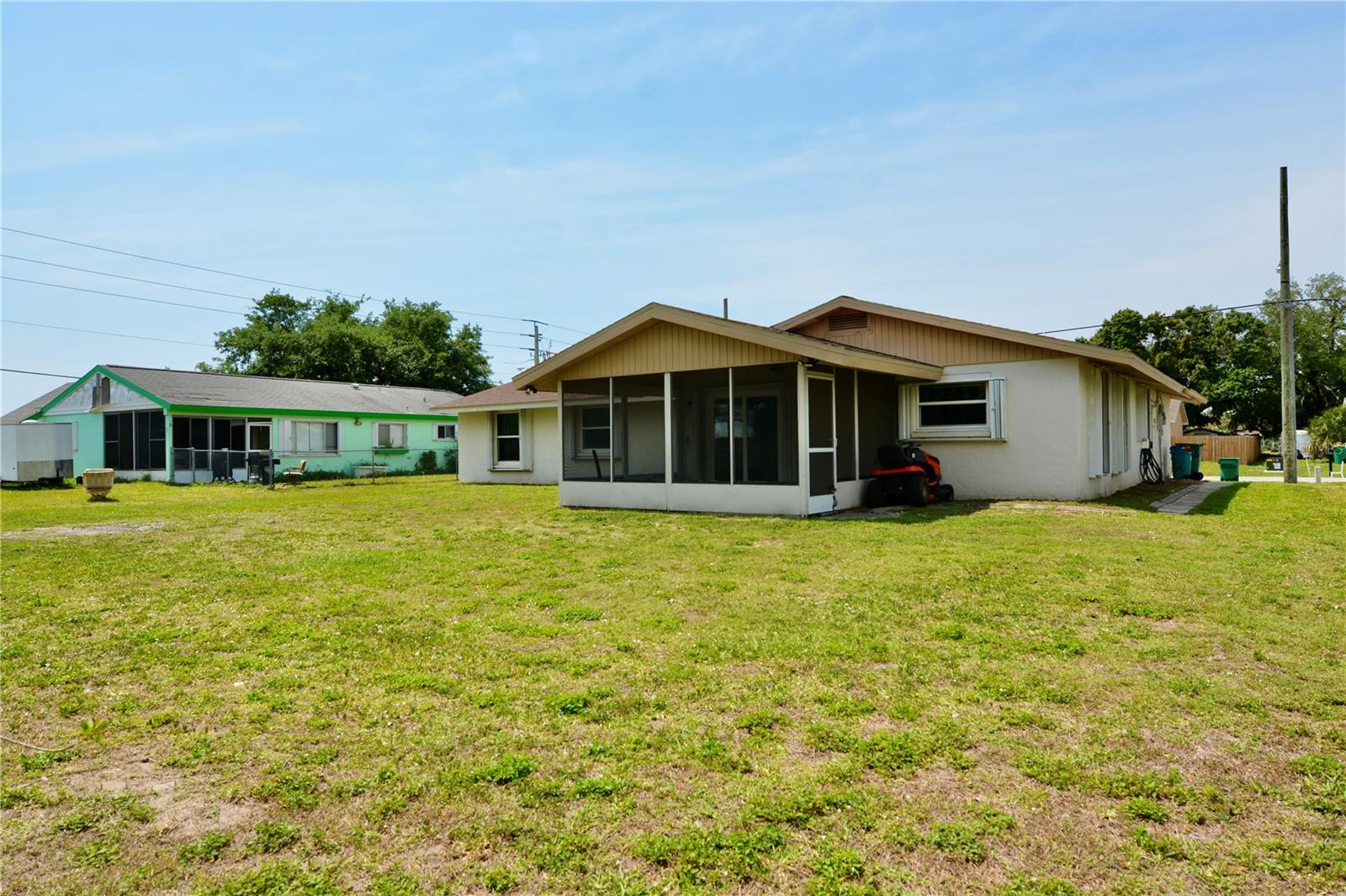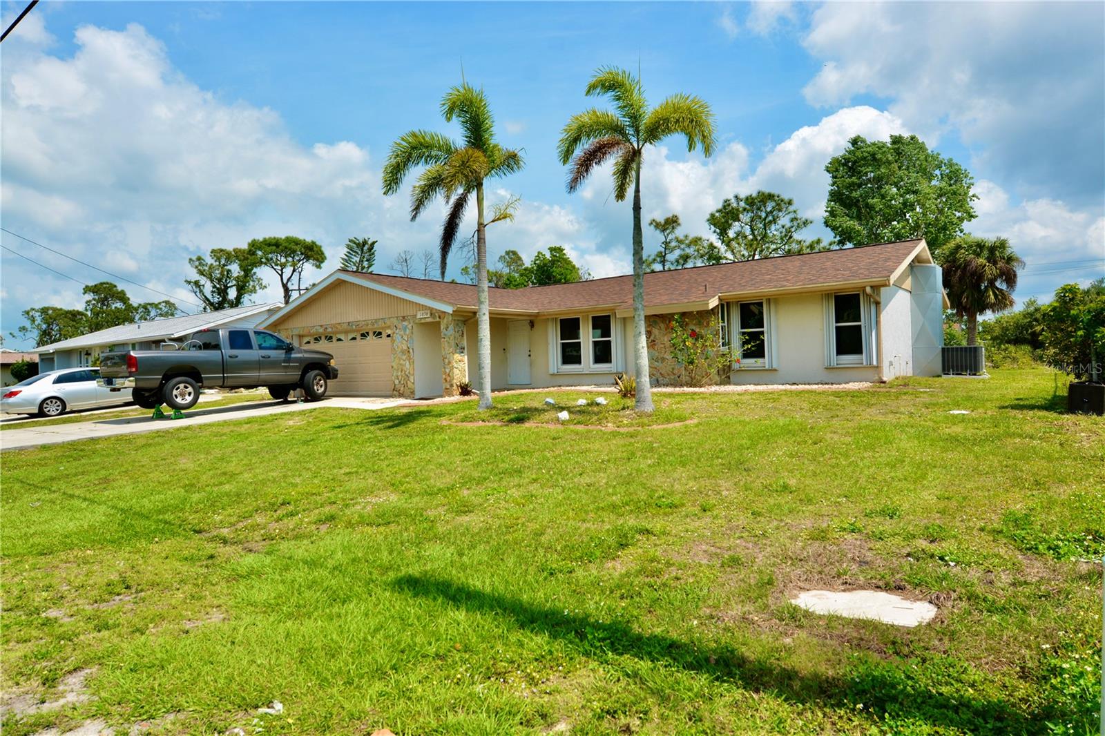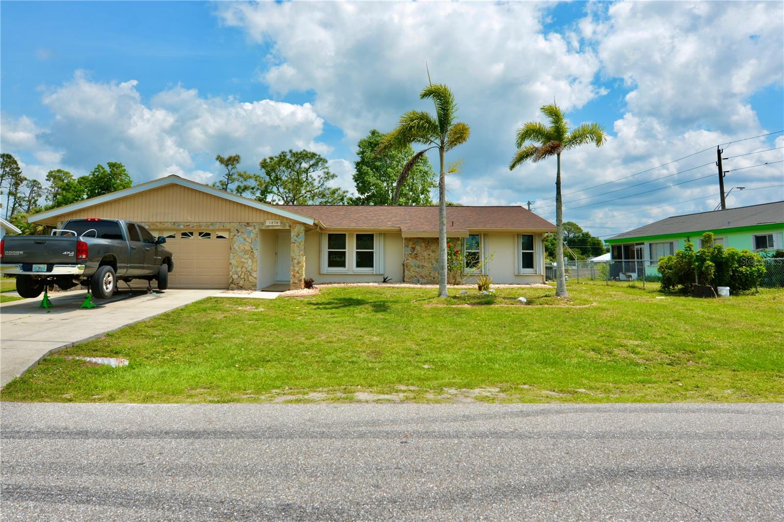 Welcome to 1636 Abscott St! This home features three bedrooms, two bathrooms in a comfortable split floor plan. The property is easily accessed from Midway Blvd and located on the Niagara Waterway, a brackish water canal. As you enter the home you are greeted with the spacious living room with bright, natural sunlight, neutral colored walls and dark colored wood like flooring. The living area flows through the formal dining room off the living room and adjacent to the kitchen. The kitchen features stainless steel appliances, granite countertops, neutral colored wood cabinets, pantry and a comfortable working triangle. A breakfast bar and an informal dining area aside the kitchen with slider doors accessing the lanai. The primary bedroom is bright and spacious with a large walk-in closet and an en suite bathroom that has a glazed window creating a bright space featuring neutral colored tile, a single sink vanity, standing shower, and a door that leads to the garage. Bedrooms two and three have a moderate sized window, neutral colored paint, and spacious closets. The second bathroom features a glazed window, a single vanity, and a neutral colored tiled tub/shower combo. The lanai is screened, tiled and accesses the spacious yard. The garage is oversized with plenty of storage space, houses the laundry area and has a side door that accesses the north side of property. The property is landscaped with palm trees in the front and an array of Deciduous and Conifer trees that border the back property line at waters edge. Colored concrete edging with assorted bushes and rock gardens highlight the front of the home. The riding lawnmower is functional and conveys with the property, as is. There is an irrigation system in place from the canal that needs repair. The roof was replaced in 2022. The windows were replaced in 2021 and all windows have accordion shutters. Electrical panel was upgraded in 2021. Water heater is 2017. AC is 2020.