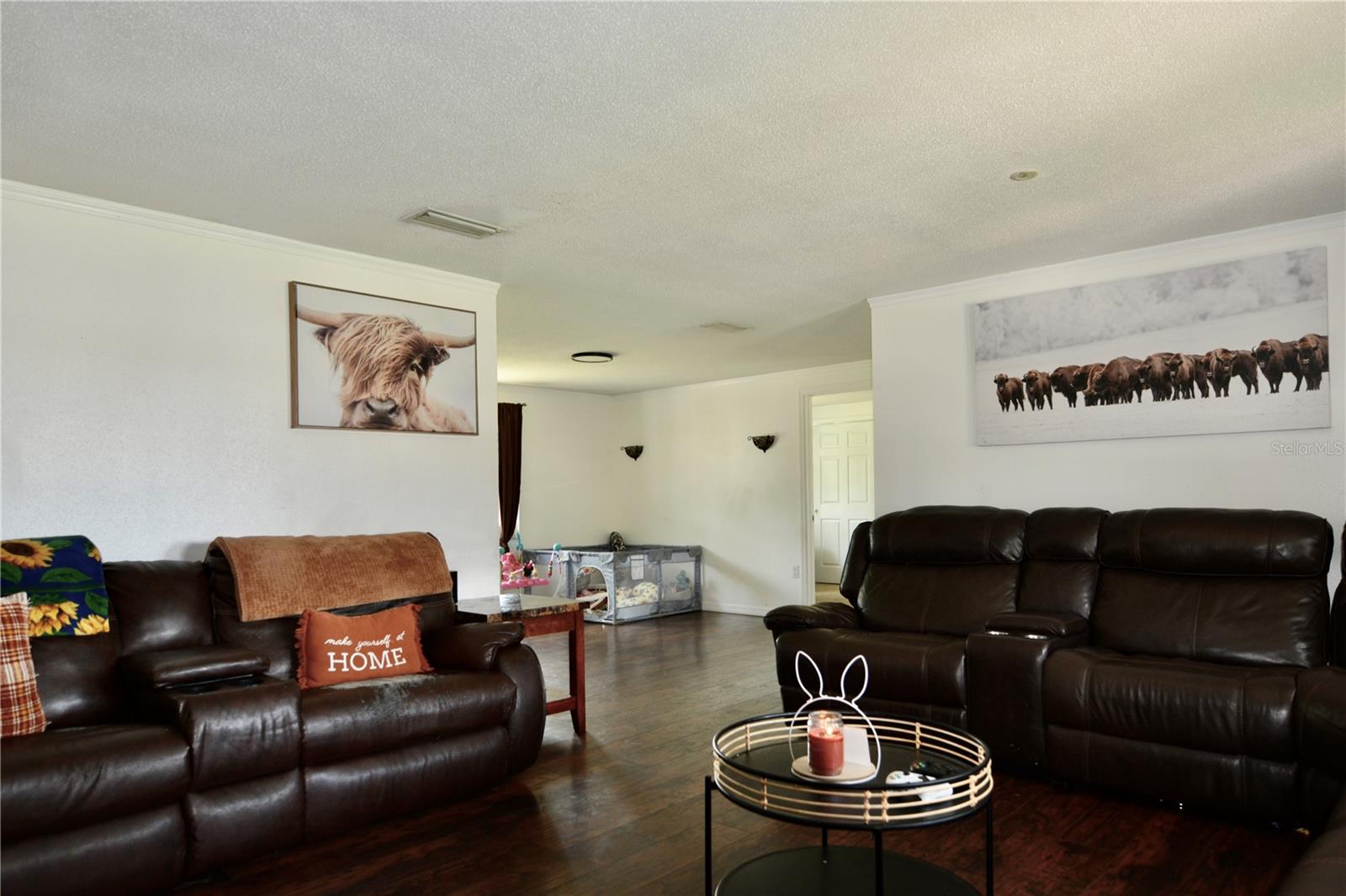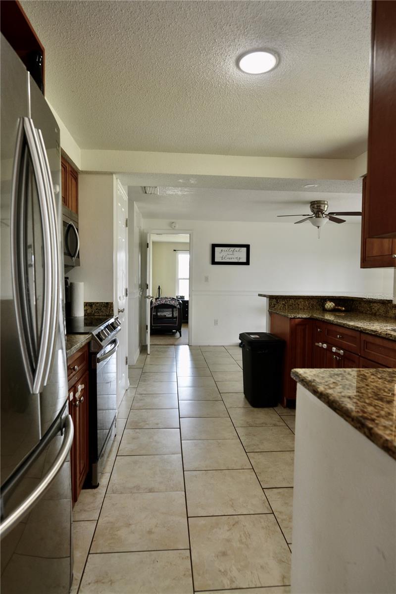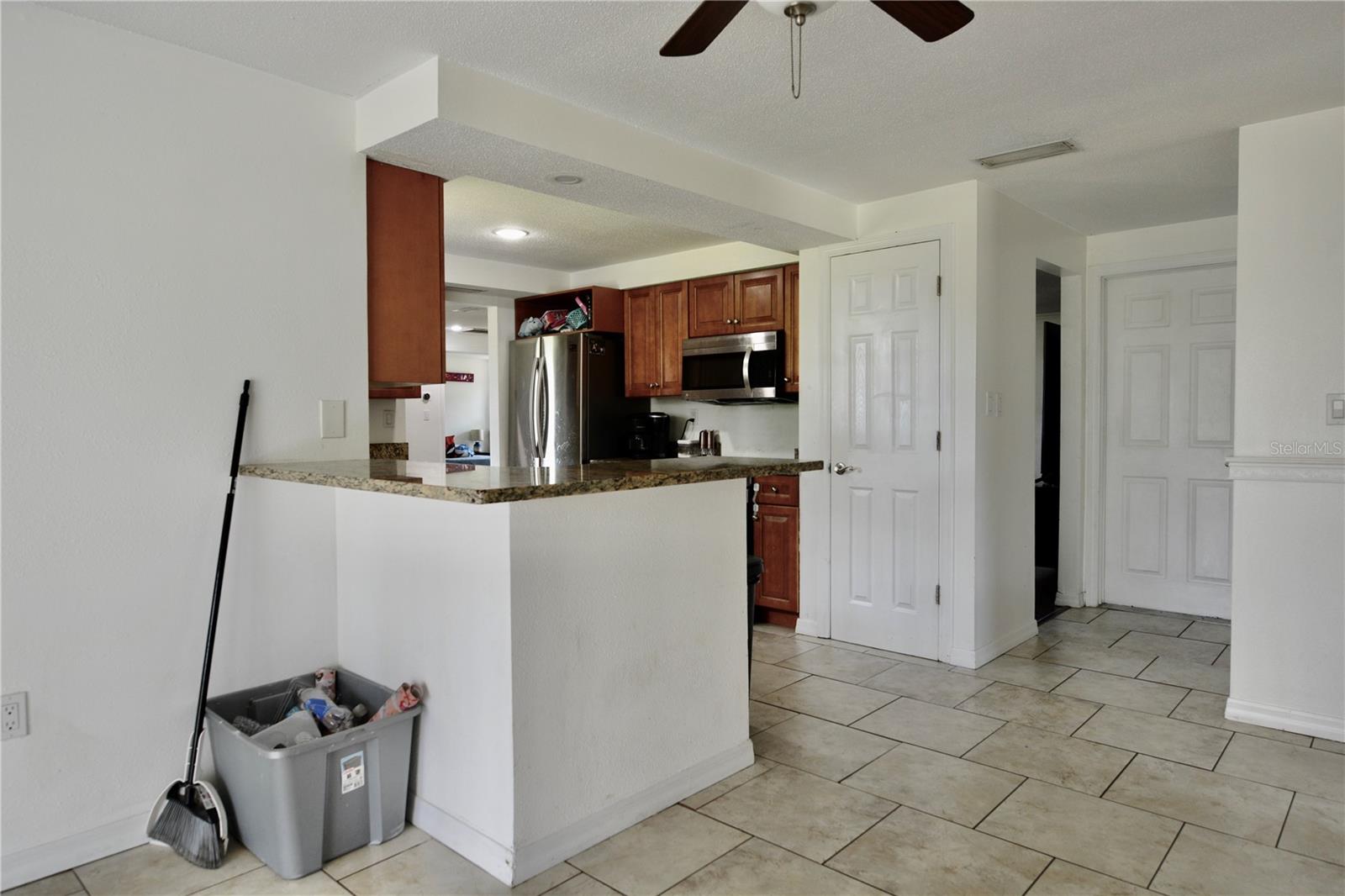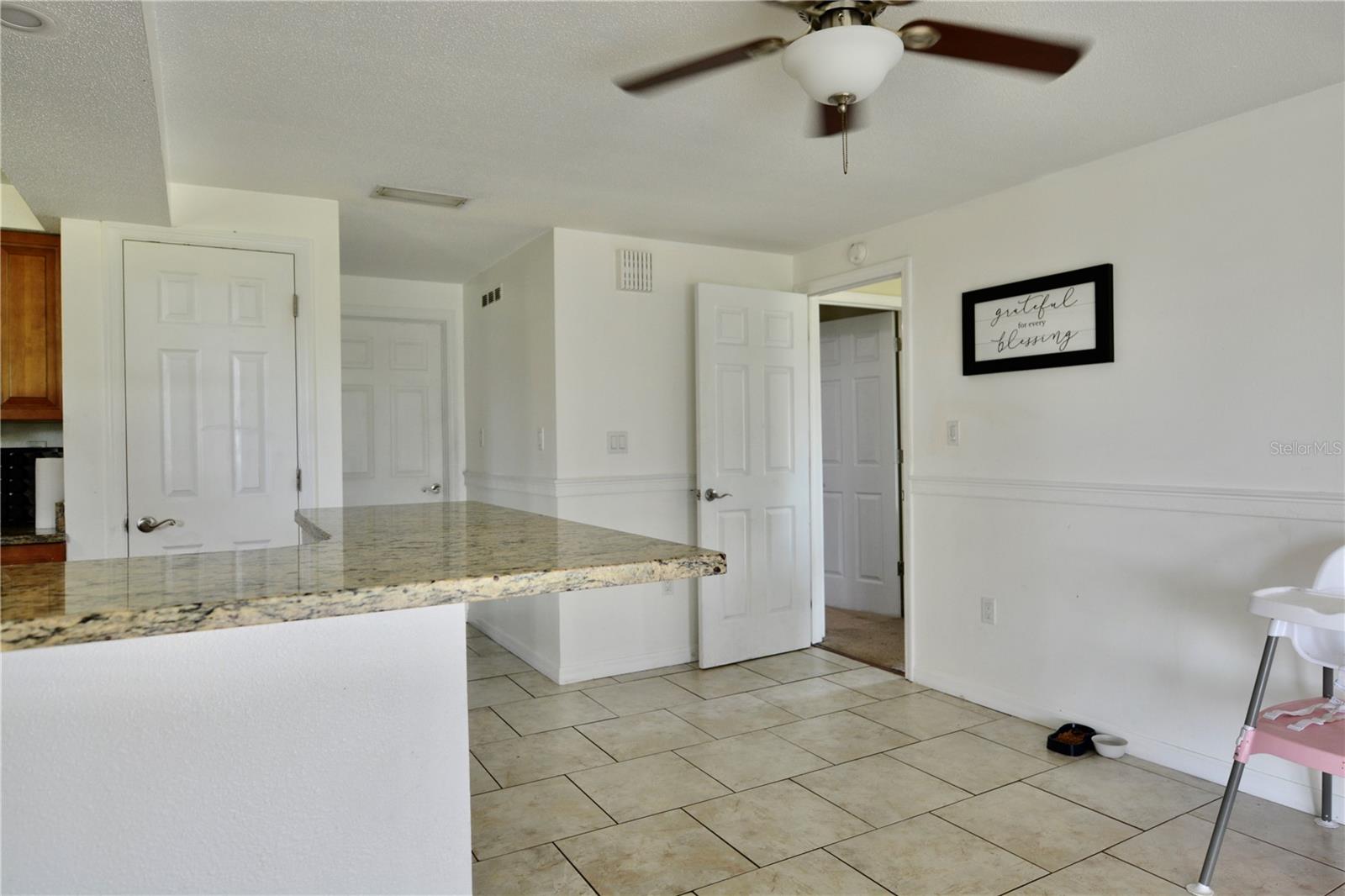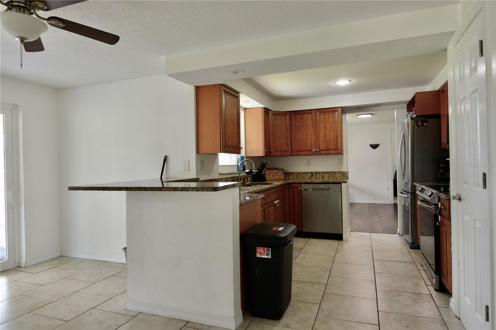 Welcome to 1636 Abscott St! This home features three bedrooms, two bathrooms in a comfortable split floor plan. The property is easily accessed from Midway Blvd and located on the Niagara Waterway, a brackish water canal. As you enter the home you are greeted with the spacious living room with bright, natural sunlight, neutral colored walls and dark colored wood like flooring. The living area flows through the formal dining room off the living room and adjacent to the kitchen. The kitchen features stainless steel appliances, granite countertops, neutral colored wood cabinets, pantry and a comfortable working triangle. A breakfast bar and an informal dining area aside the kitchen with slider doors accessing the lanai. The primary bedroom is bright and spacious with a large walk-in closet and an en suite bathroom that has a glazed window creating a bright space featuring neutral colored tile, a single sink vanity, standing shower, and a door that leads to the garage. Bedrooms two and three have a moderate sized window, neutral colored paint, and spacious closets. The second bathroom features a glazed window, a single vanity, and a neutral colored tiled tub/shower combo. The lanai is screened, tiled and accesses the spacious yard. The garage is oversized with plenty of storage space, houses the laundry area and has a side door that accesses the north side of property. The property is landscaped with palm trees in the front and an array of Deciduous and Conifer trees that border the back property line at waters edge. Colored concrete edging with assorted bushes and rock gardens highlight the front of the home. The riding lawnmower is functional and conveys with the property, as is. There is an irrigation system in place from the canal that needs repair. The roof was replaced in 2022. The windows were replaced in 2021 and all windows have accordion shutters. Electrical panel was upgraded in 2021. Water heater is 2017. AC is 2020.