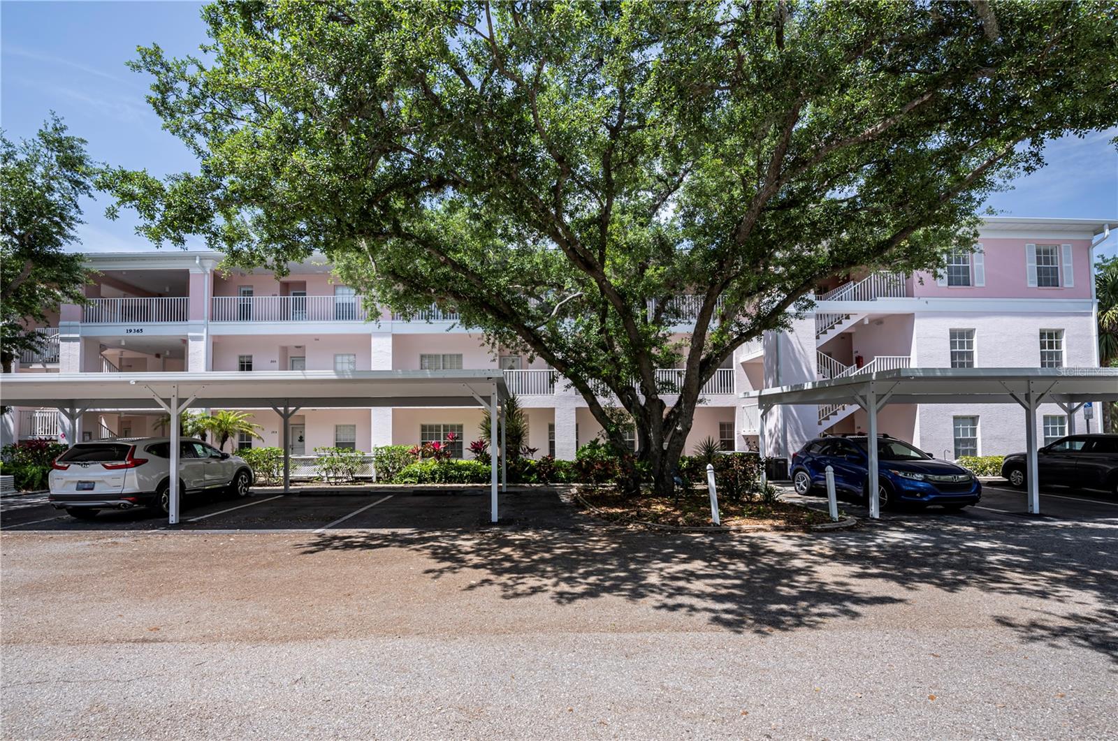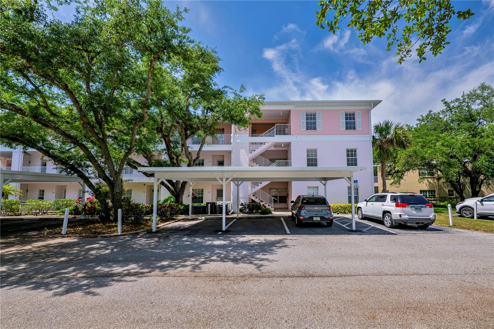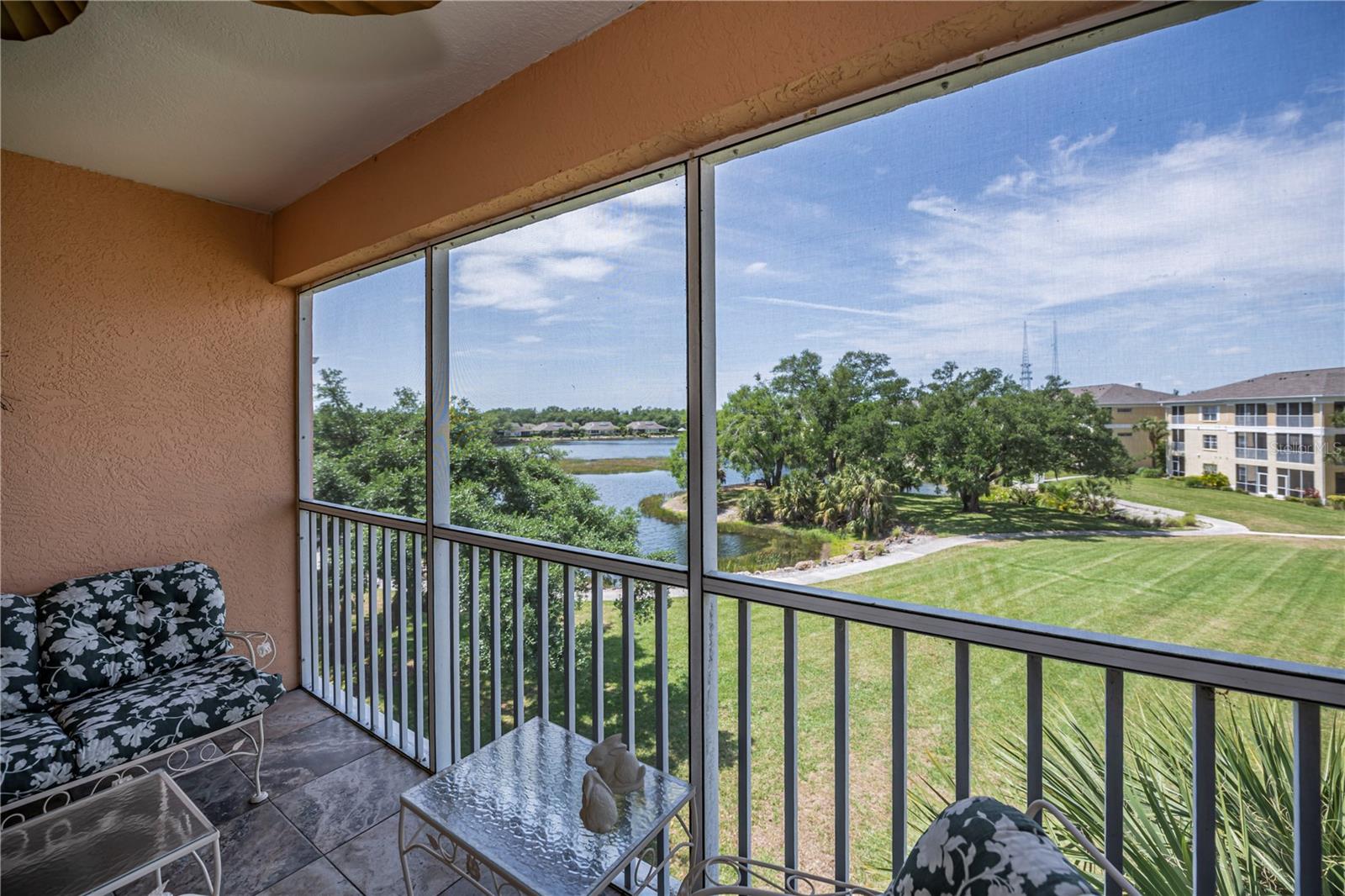 PRICE REDUCED! Fantastic LAKEVIEW from this absolutely gorgeous top floor, 3 bedrooms, 2 bath condo located in the POPULAR gated community of Heritage Oak Park! If you want the best of the best-here it is! Tons of upgrades were done & with top-of-the-line materials, Condo has an open floorplan w/split bedrooms & is an end unit w/extra windows for light! Features and upgrades inc. engineered wood floors in all areas except wet areas which are tiled, kitchen has wood cabinets to the ceiling w/crown molding, self-close drawers, pull out drawers in bottom cabinets, tile backsplash, granite countertop, & Samsung appliances, custom window treatments thru-out, ceiling fans w/remotes & lights thru-out, tile on lanai, interior laundry w/LG full size washer & dryer, newer Kohler toilets in both baths, storm door on front door & Much More! Comes with brand new assigned carport & elevator in building. New shingle roof installed in 2023! Heritage Oak Park is an active gated community with an activity's director on staff. Amenities include a large clubhouse, heated pool, tennis courts, bocce ball, pickle ball, shuffleboard, fitness room, billiards room, & library! There is also a walking path around the large lake with fishing allowed but catch & release! Just around the corner from Publix, the YMCA, & a short drive to Port Charlotte Town Center Mall, Restaurants & shopping.