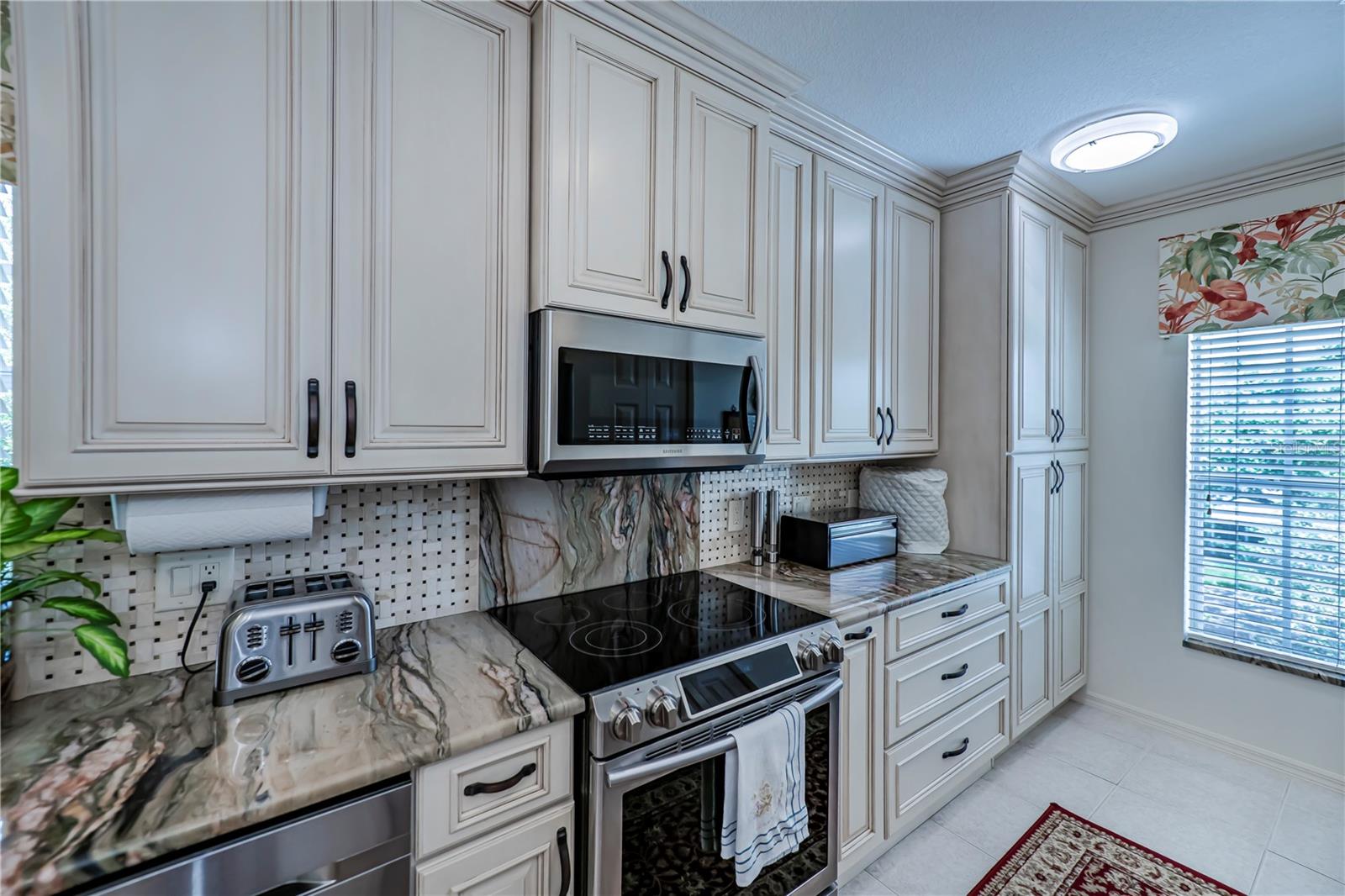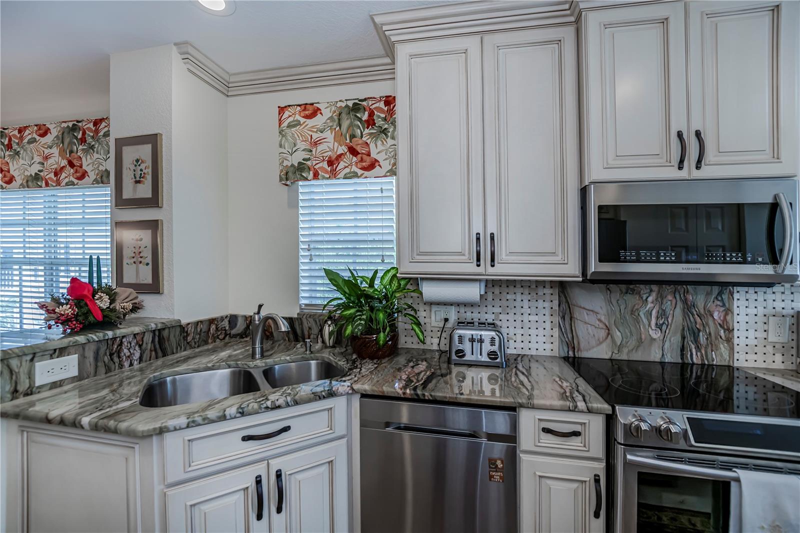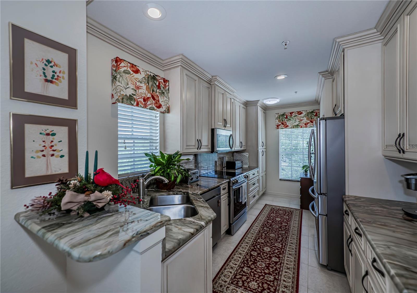 PRICE REDUCED! Fantastic LAKEVIEW from this absolutely gorgeous top floor, 3 bedrooms, 2 bath condo located in the POPULAR gated community of Heritage Oak Park! If you want the best of the best-here it is! Tons of upgrades were done & with top-of-the-line materials, Condo has an open floorplan w/split bedrooms & is an end unit w/extra windows for light! Features and upgrades inc. engineered wood floors in all areas except wet areas which are tiled, kitchen has wood cabinets to the ceiling w/crown molding, self-close drawers, pull out drawers in bottom cabinets, tile backsplash, granite countertop, & Samsung appliances, custom window treatments thru-out, ceiling fans w/remotes & lights thru-out, tile on lanai, interior laundry w/LG full size washer & dryer, newer Kohler toilets in both baths, storm door on front door & Much More! Comes with brand new assigned carport & elevator in building. New shingle roof installed in 2023! Heritage Oak Park is an active gated community with an activity's director on staff. Amenities include a large clubhouse, heated pool, tennis courts, bocce ball, pickle ball, shuffleboard, fitness room, billiards room, & library! There is also a walking path around the large lake with fishing allowed but catch & release! Just around the corner from Publix, the YMCA, & a short drive to Port Charlotte Town Center Mall, Restaurants & shopping.