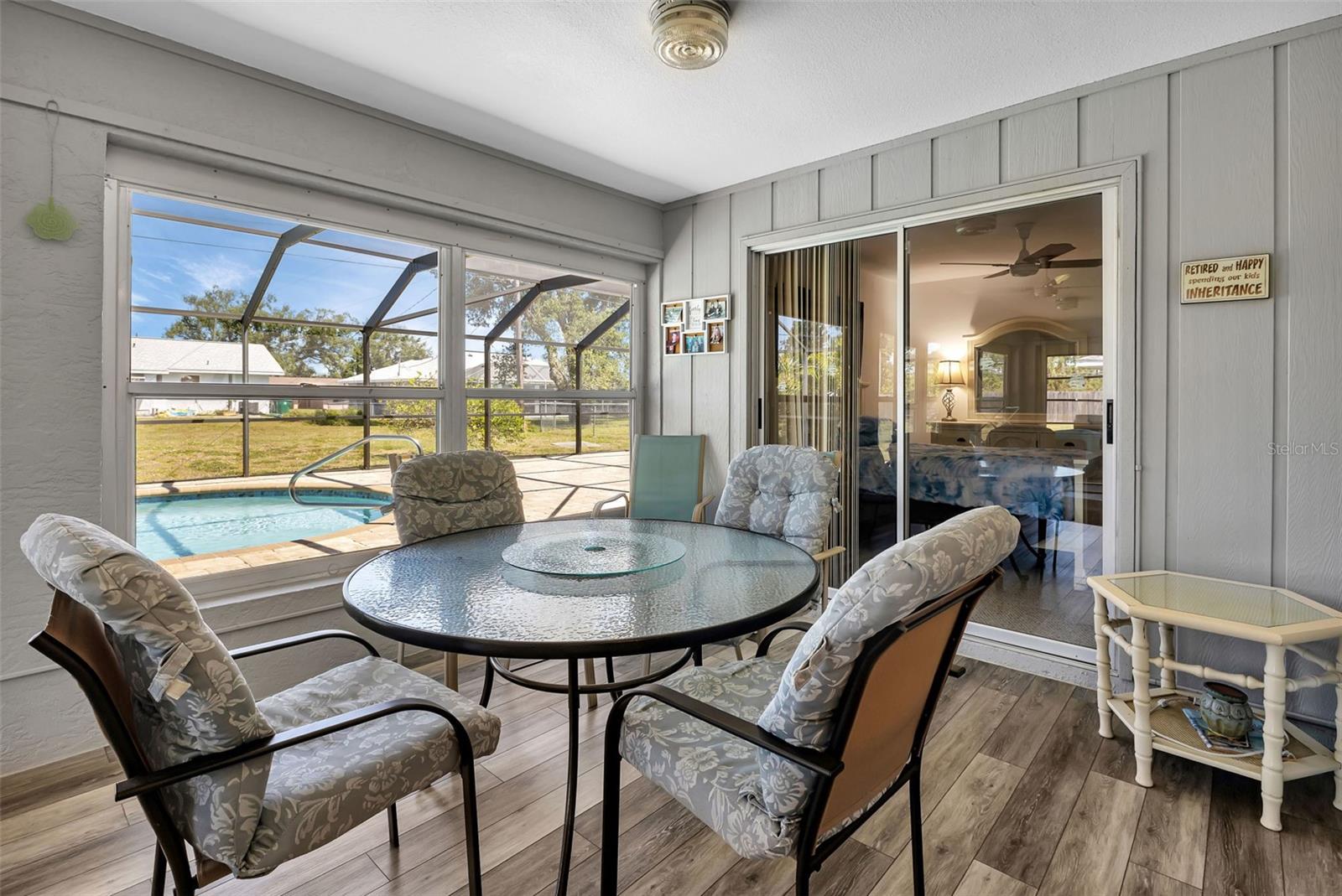 AGAIN!!!!! - MOTIVATED SELLER - HUGE PRICE ADJUSTMENT ... MOVE RIGHT IN!!! NO DAMAGE FROM HURRICANE.... Don't waste another minute looking for your perfect get away. This FULLY FURNISHED home has everything figured out and works like a charm! The new roof in 2023 is just the beginning of upgrades and improvements made since the current owners purchased in 2011. Shared with only friends and family over the years - it's now time for you to get involved! The wide open living room offers plenty of indoor entertaining - is just off the kitchen and also open to the spacious lanai with sparkling, heated pool and outdoor shower. The primary bedroom features a walk in closet and en suite bath with updated tile and double sinks. The 2nd and 3rd bedroom (one opens to lanai) share a bath and feature plenty of storage. The oversized garage houses your toy pools and your laundry area with washer/dryer, laundry sink and hot water heater.