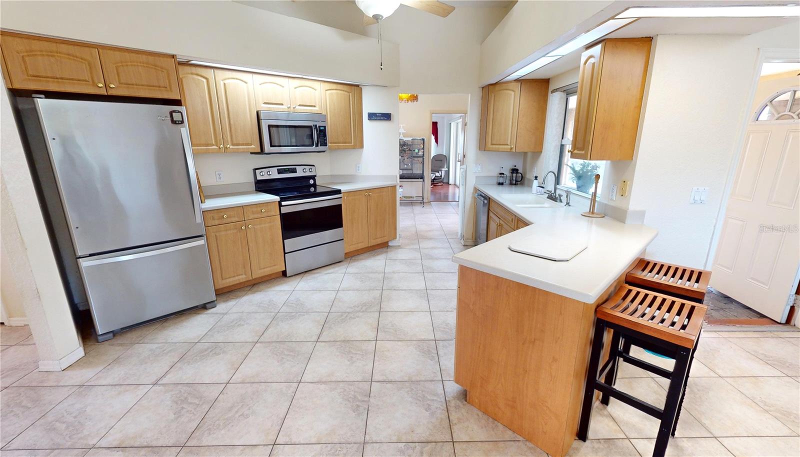 PORT CHARLOTTE IS GROWING....DON'T MISS OUT! This spacious 3-bedroom, 2-bathroom home offers the perfect blend of comfort and Florida living. With over 2300 square feet of living space, this property boasts tile flooring throughout, accented by luxurious vinyl in the primary bedroom for a contemporay look. The primary ensuite features a split dual sink/vanity setup, a separate tub and shower, and dual closets, providing ample storage for the fashionista. The guest bedrooms are generously sized and each come with walk-in closets, ensuring everyone has their own space. The guest bath also serves as a pool bath, ideal for those sunny Florida days spent by the pool. The layout includes separate living and family rooms, providing plenty of space for relaxation and entertainment Enjoy the convenience of an interior laundry room and the flexibility of a garage conversion into a versatile man cave, which can easily be converted back to a 2-car garage, if desired. Additional driveway parking adds to the practicality of the property. Step outside to discover a beautiful screened and covered lanai with a paver deck, perfect for outdoor dining and lounging. The pool also features a paver deck and is screened separately, providing a private oasis for enjoying the Florida sunshine. The fenced backyard includes a shed for added storage convenience. With no homeowners association or deed restrictions, you'll have the freedom to personalize and enjoy your property to the fullest. Plus, the METAL ROOF installed and NEW A/C in 2023 as well as IMPACT WINDOWS offer peace of mind and added durability. This home truly offers the best of Florida living, with its spacious interiors, versatile layout, and impressive outdoor amenities. Don't miss out on the opportunity to make this your dream home! ***PLEASE ENJOY THE 3D VIRTUAL TOUR*** Bedroom Closet Type: Walk-in Closet (Primary Bedroom).