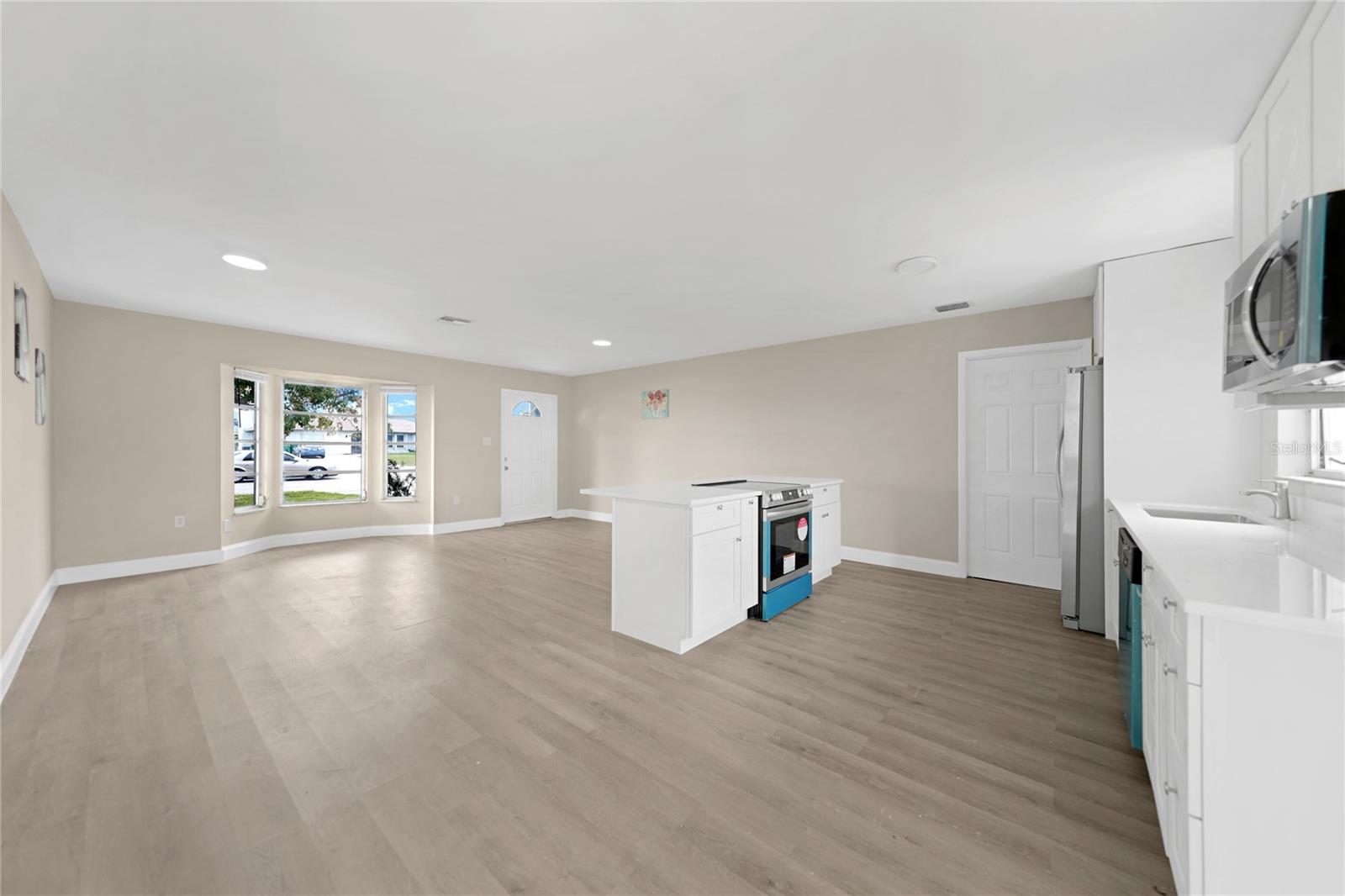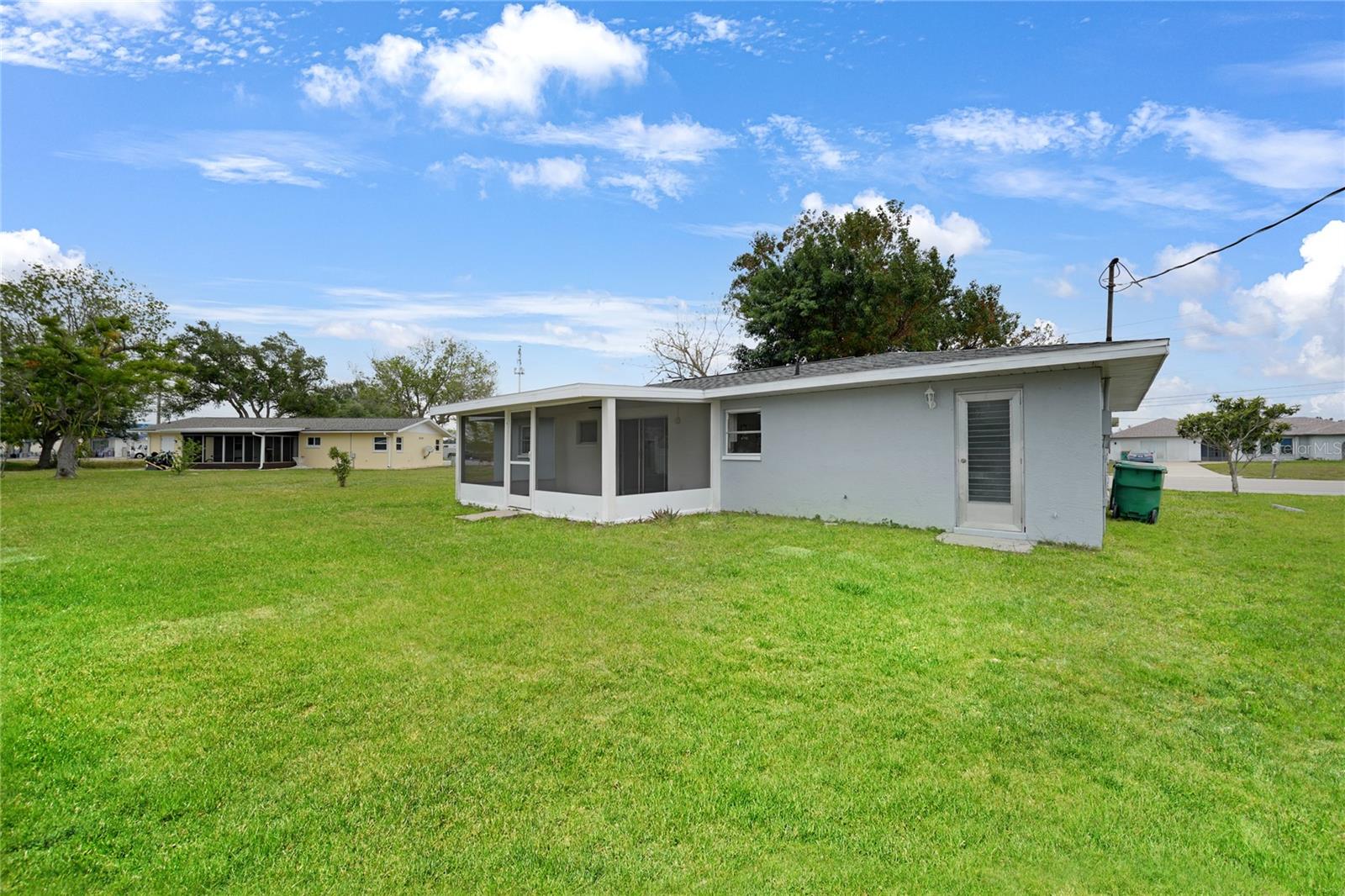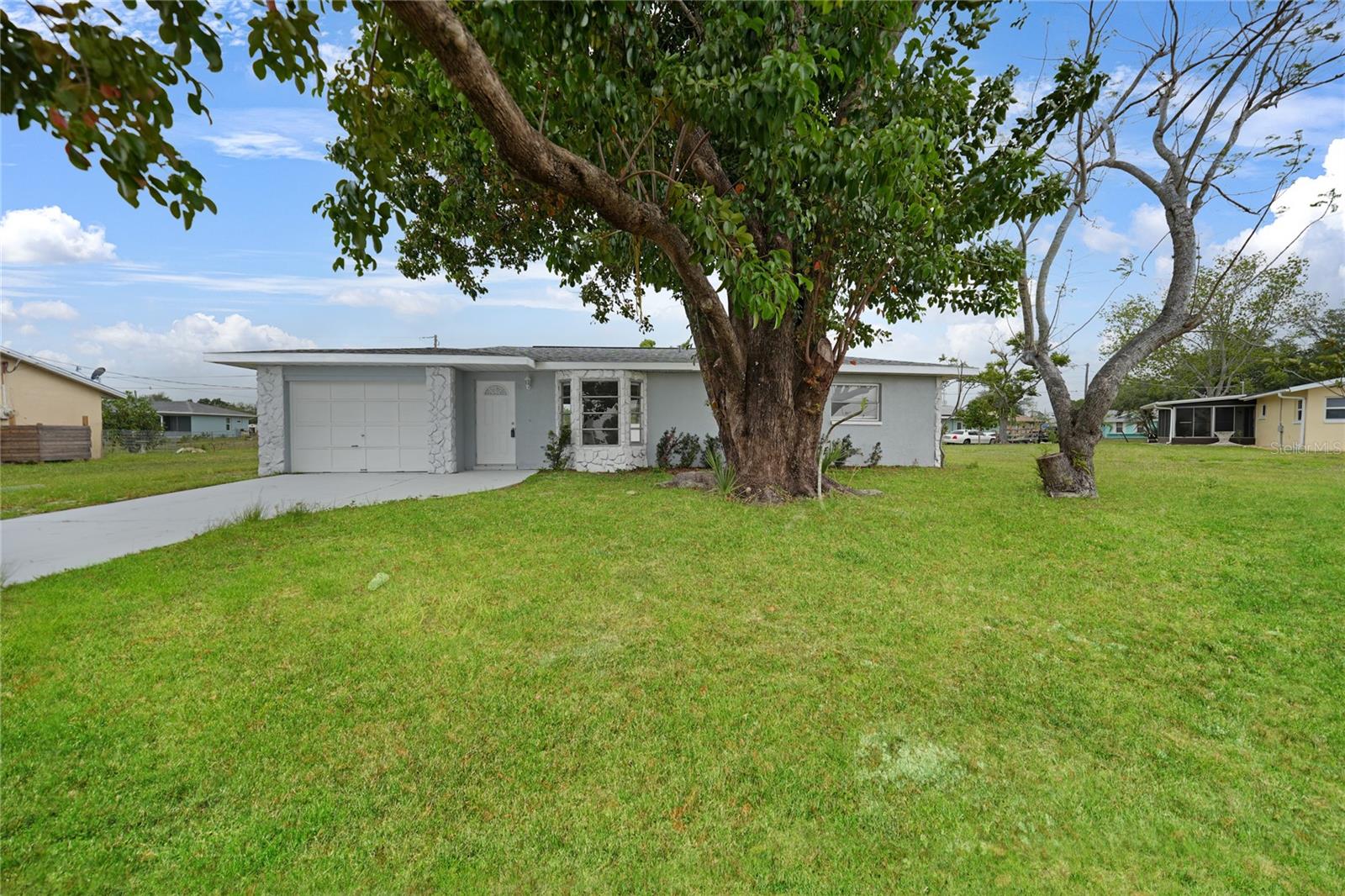 PLEASE ENJOY THE ATTACHED COMPLIMENTARY 3D AND VIDEO! Perfect starter home, winter retreat or investment opportunity. Port Charlotte 2 bedroom, 2 bathroom home with attached single car garage has been completely update inside. This charming single family home with brand new roof has 1,105 square feet of living space with a large backyard. The open floor concept greets you as soon as you enter your home featuring new wood laminate flooring throughout the home that makes for easy maintenance. The beautifully updated kitchen area has new solid surface countertops, brand new Frigidaire stainless steel appliances, center island and white shaker-style cabinets/drawers. The kitchen overlooks the spacious dining/living room area with sliders out to a 18x10 screened-in lanai. The primary bedroom has a large built-in closet and updated bathroom with a walk-in shower, single sink vanity area, and linen closet. Family and friends will appreciate their own bedroom along with an updated guest bathroom that is a match to the primary. The single-car garage has ample room for storage and laundry facilities, perfect for convenience and organization in this charming home. Centrally located between North Port and Punta Gorda with access to sandy beaches, entertainment, shopping/restaurants, I75/US4.