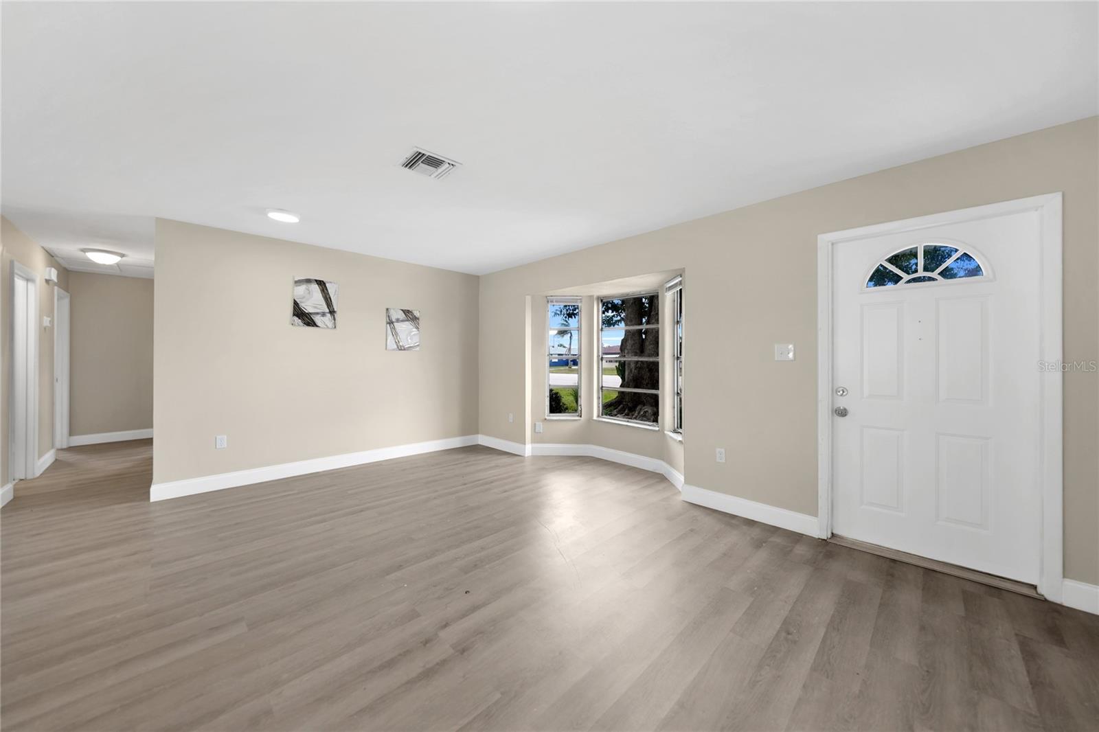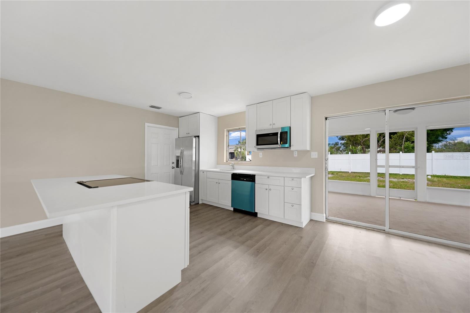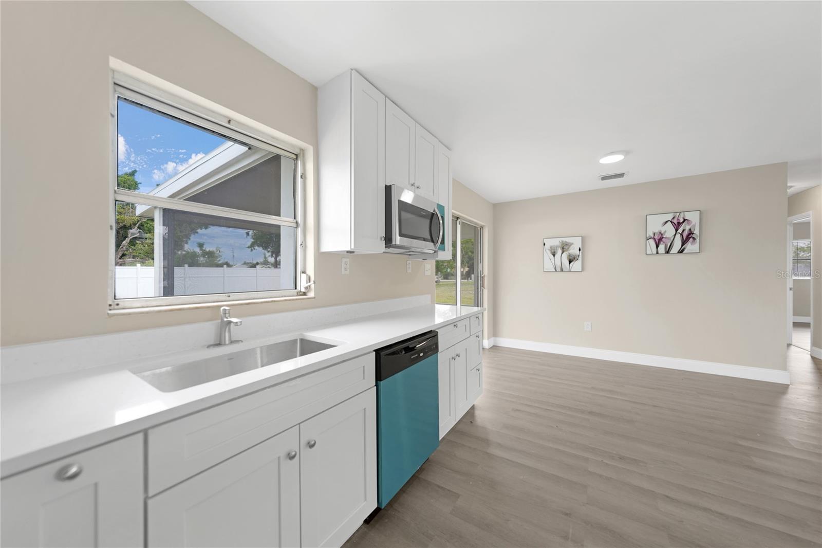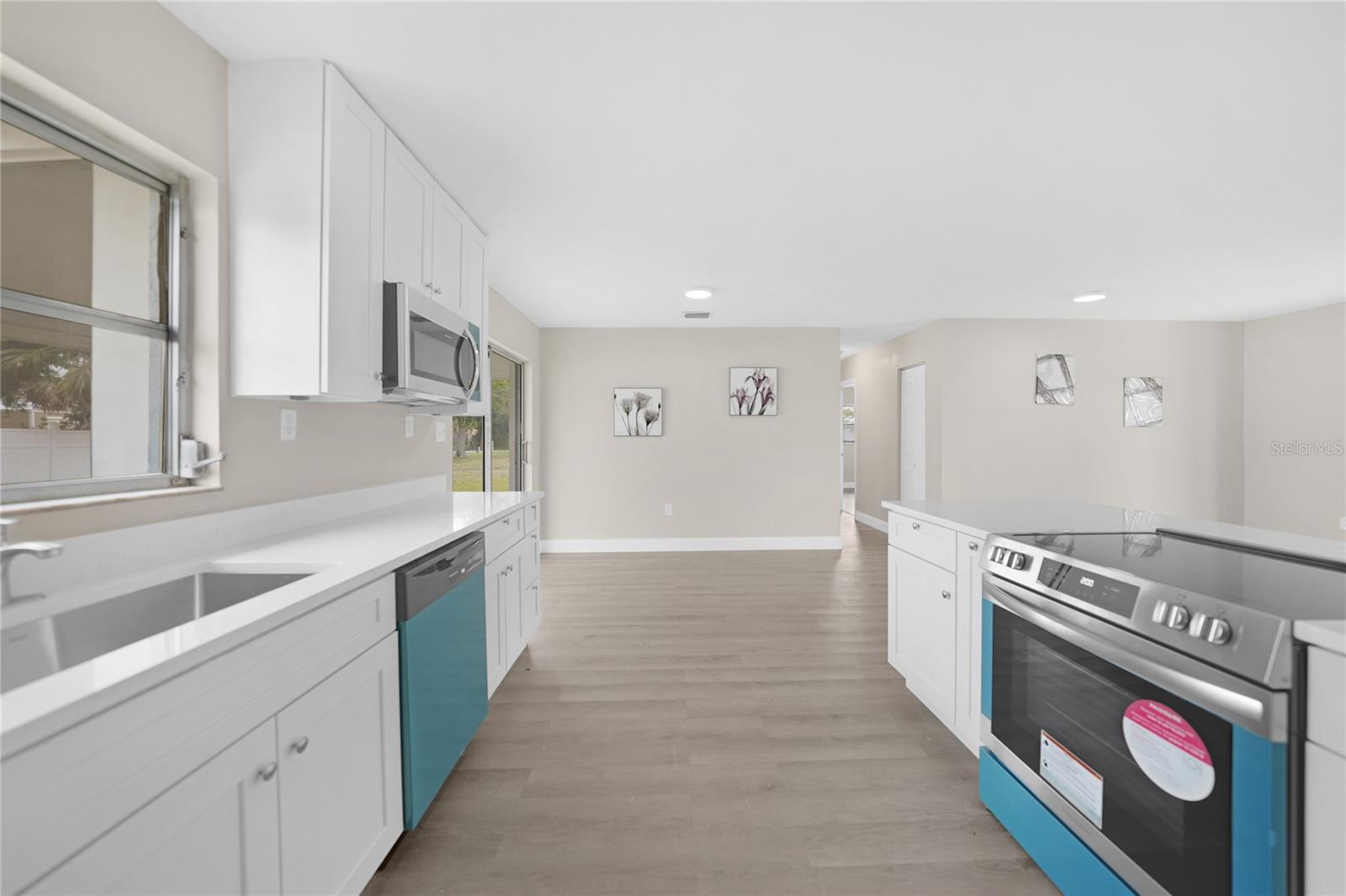PLEASE ENJOY THE ATTACHED COMPLIMENTARY 3D AND VIDEO! Perfect starter home, winter retreat or investment opportunity. Port Charlotte 2 bedroom, 2 bathroom home with attached single car garage has been completely update inside. This charming single family home with brand new roof has 1,105 square feet of living space with a large backyard. The open floor concept greets you as soon as you enter your home featuring new wood laminate flooring throughout the home that makes for easy maintenance. The beautifully updated kitchen area has new solid surface countertops, brand new Frigidaire stainless steel appliances, center island and white shaker-style cabinets/drawers. The kitchen overlooks the spacious dining/living room area with sliders out to a 18x10 screened-in lanai. The primary bedroom has a large built-in closet and updated bathroom with a walk-in shower, single sink vanity area, and linen closet. Family and friends will appreciate their own bedroom along with an updated guest bathroom that is a match to the primary. The single-car garage has ample room for storage and laundry facilities, perfect for convenience and organization in this charming home. Centrally located between North Port and Punta Gorda with access to sandy beaches, entertainment, shopping/restaurants, I75/US4.