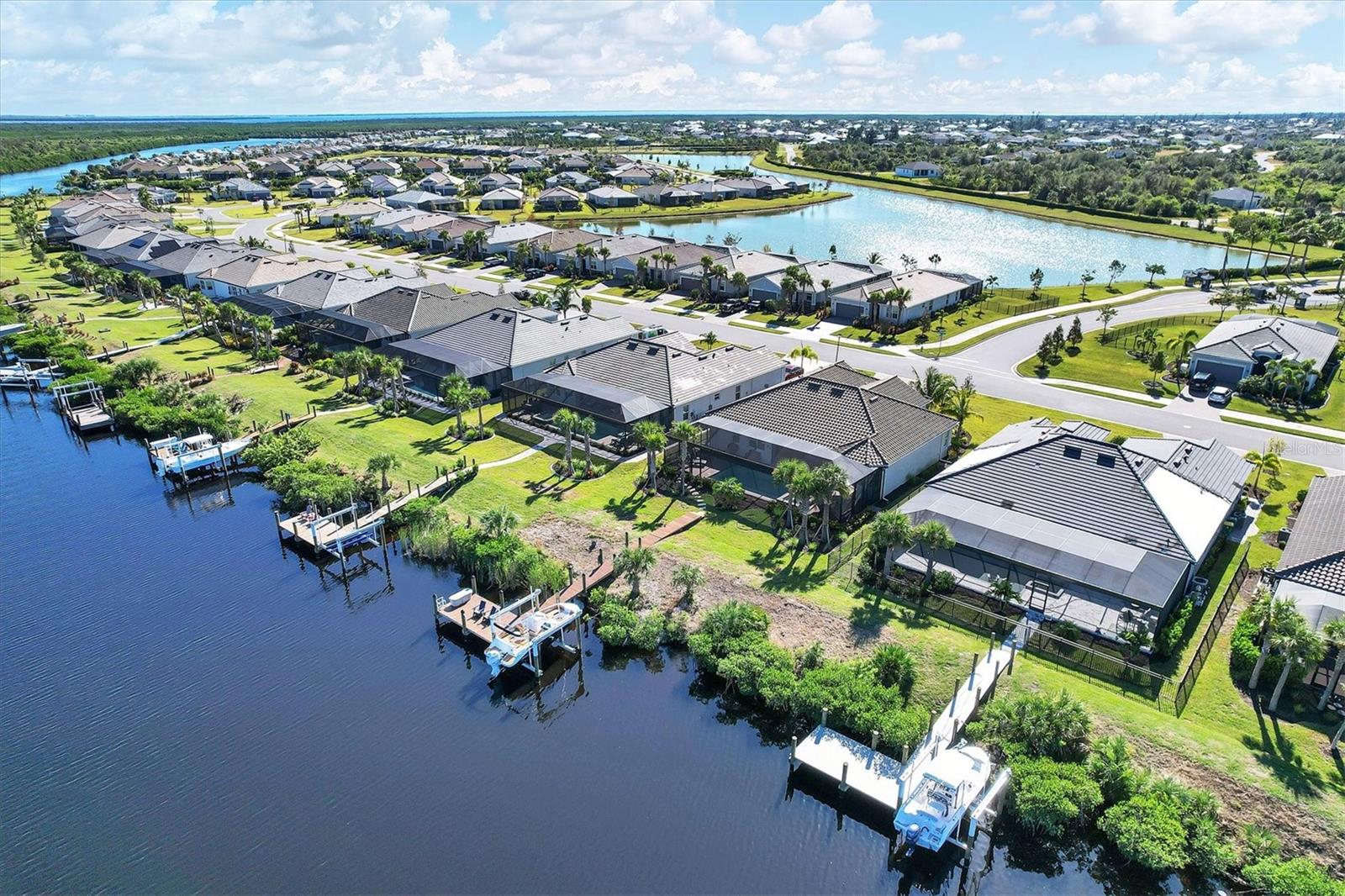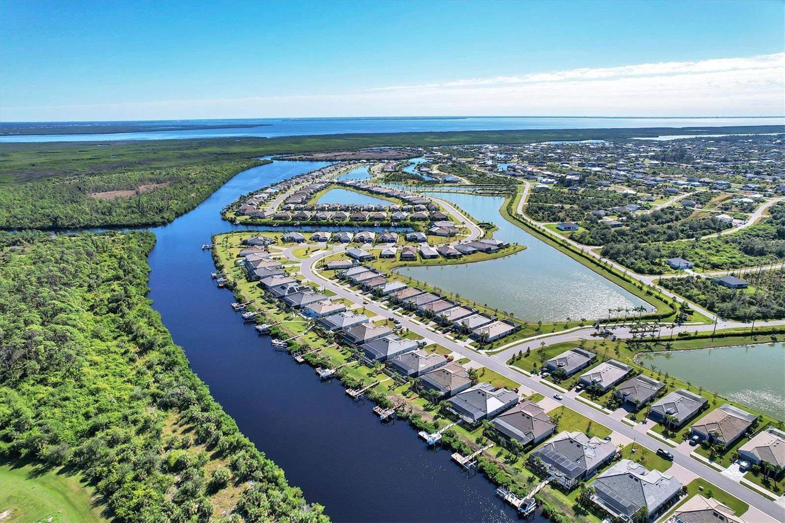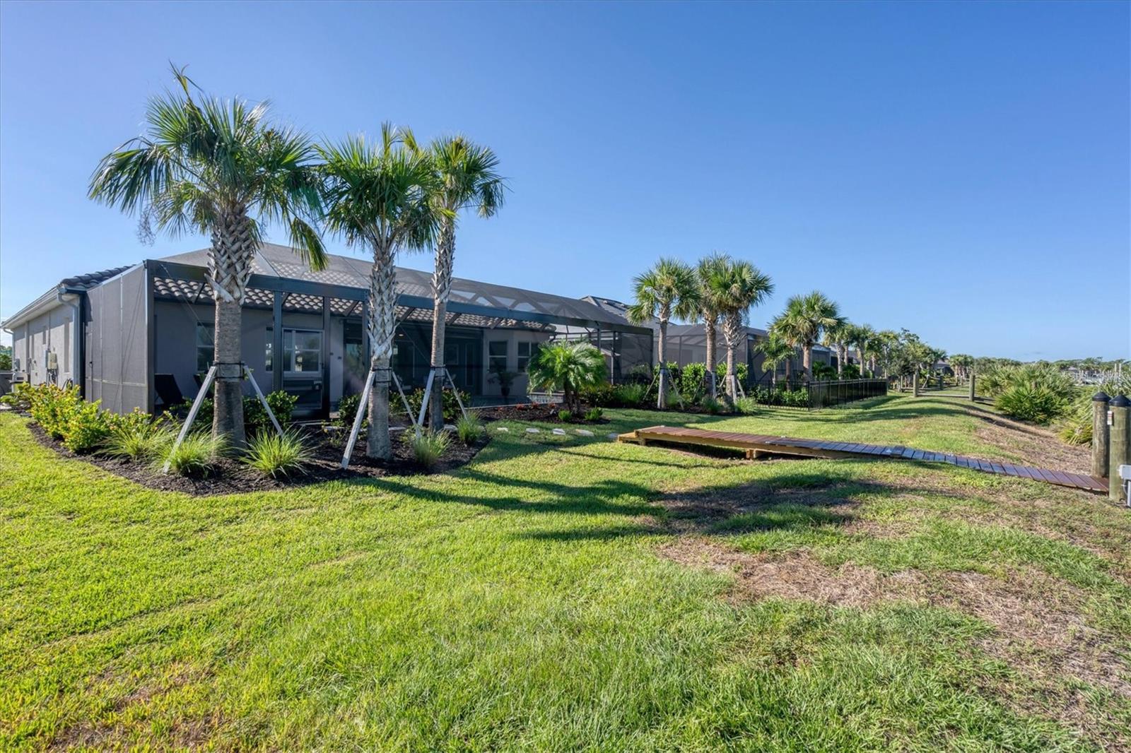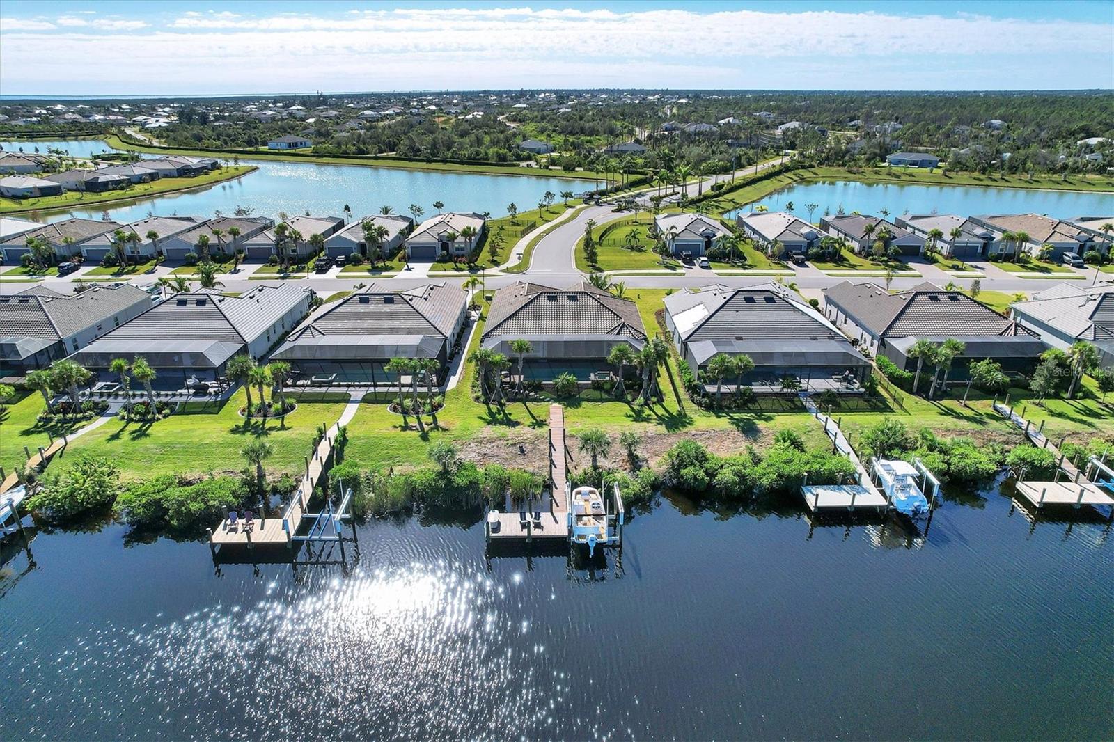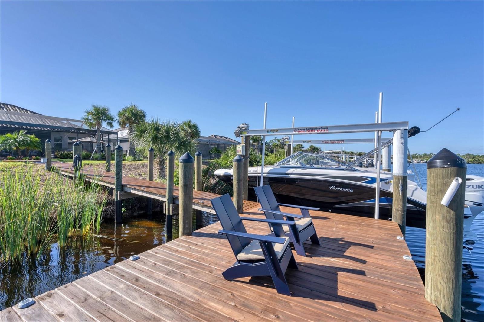 Dreaming of escaping to the Sunshine State? This is your chance to live the ultimate Florida lifestyle. This stunning three-bedroom, two-and-a-half bath, three-car garage, WATERFRONT home is nestled in the exclusive, deed-restricted, and gated community of Harbor West. Enjoy maintenance-free living in a community just minutes from the pristine waters of Southwest Florida, perfect for boating, fishing, and soaking up endless sunshine. For your peace of mind, this Oakmont II model boasts HURRICANE-RATED IMPACT WINDOWS. Entertain effortlessly in the spacious open-concept, split floor plan, featuring an oversized kitchen island, cozy breakfast nook, and an elegant dining room. Step outside to your brick-paved, enclosed oasis with a heated, saltwater pool and spa, perfectly positioned to provide stunning waterfront views. A HURRICANE-RATED SHUTTER on the lanai offers extra protection and convenience, making it effortless to secure outdoor furnishings. Boat straight from your private dock to the open waters—no bridges to slow you down, offering boaters the ultimate convenience. The panoramic lanai not only provides easy access to a pool bath but also leads directly to your private boat lift and dock—perfect for fishing right at home. This home is packed with high-end upgrades, including elegant board and batten trim in the breakfast nook and on the oversized kitchen island. Wake up to breathtaking water views in the expansive owner's suite, a peaceful retreat that showcases the surrounding natural beauty. This 'Smart Home' is truly a must-see. Call today to schedule your private tour and experience all the natural beauty and luxury this waterfront property has to give.