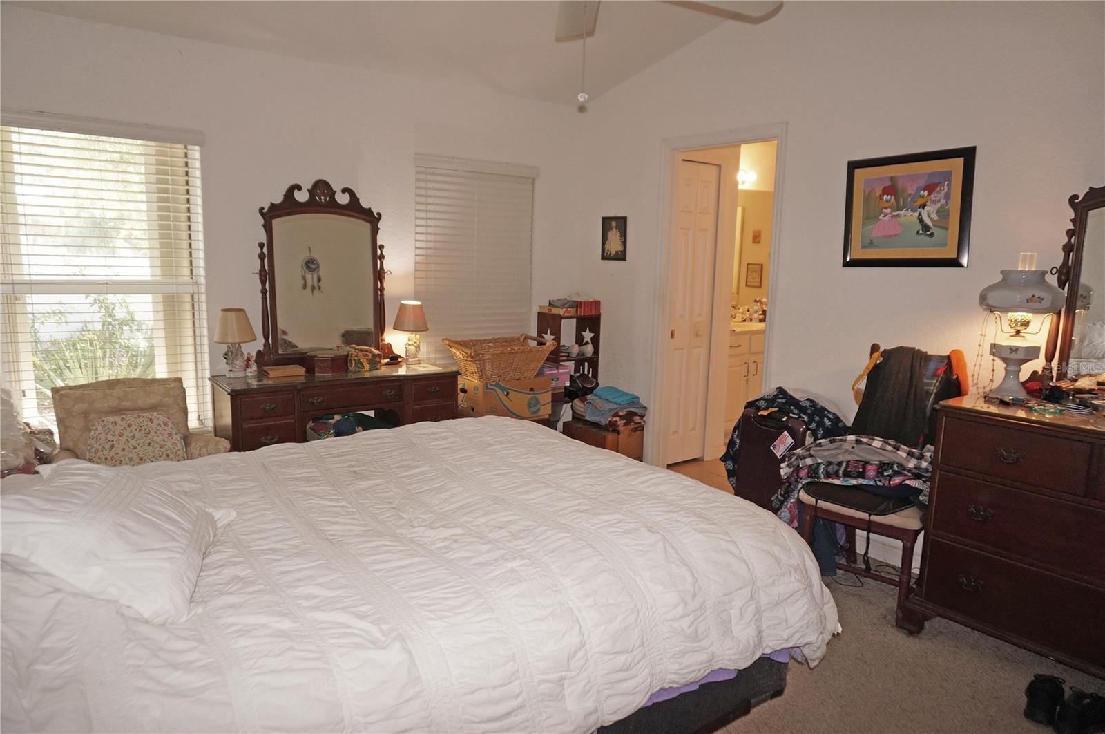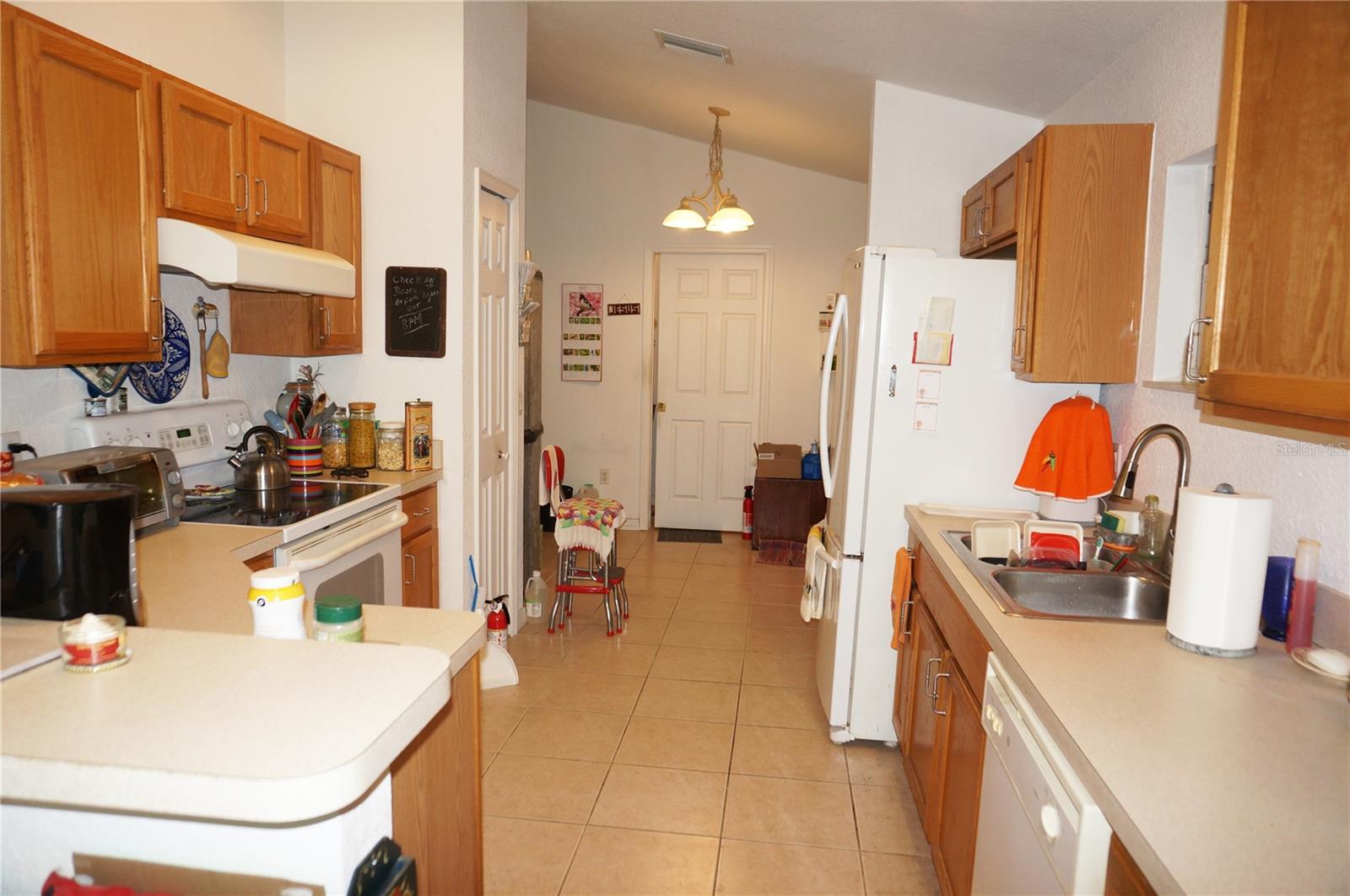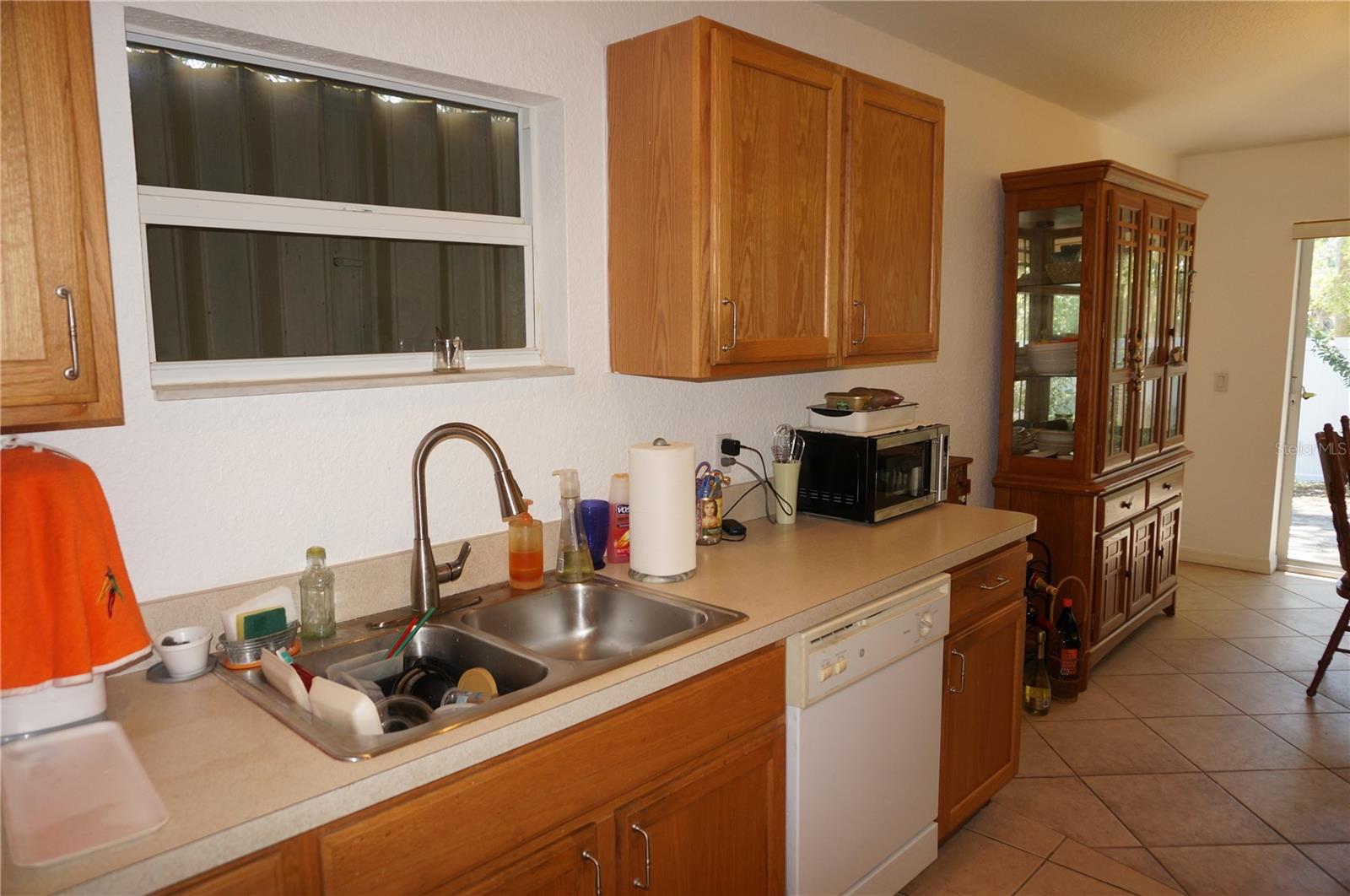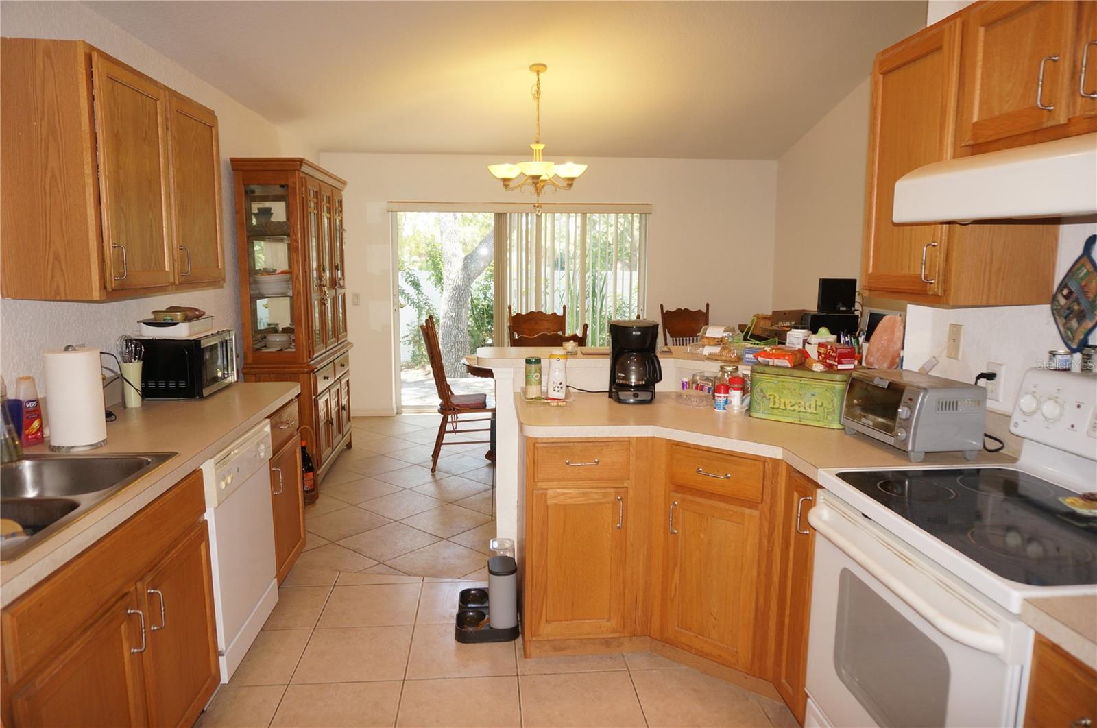 Spacious 3 Bedroom, 2 full Bathroom home with attached 2 Car Garage located in the Shadowmoss section of OAK HOLLOW in Port Charlotte. Large rooms, high ceilings and natural light through large windows. There is a large Great Room with soaring cathedral ceiling and plant shelves, large Dining Room with sliding glass doors to the backyard, well equipped Kitchen Inside Laundry. The Kitchen features wood cabinets, oven/range, dishwasher, French door refrigerator, pantry closet and dining area. The Master Bedroom suite has a walk in closet and private bathroom with his and hers sinks, garden tub and walk in shower. There are two additional generous sized bedrooms with double closets and the guest bathroom has a tub/shower combo. Other features include hurricane shutters, screen sliding doors at the garage entrance, transom window over the front door, rain gutters, mature landscaping, sidewalks, tile flooring throughout the living areas and carpet in the bedrooms. Some items will convey with the house including TV and electric fireplace in the Great Room, breakfront in the Dining Room, bicycle in the Garage. Oak Hollow residents enjoy county water and sewer, underground utilities, paved sidewalks. Residents have access to the Oak Hollow Recreation center which includes a heated swimming pool, exercise room, table tennis, children's playground, tennis court, pickleball, bocce ball court, billiards room, basketball court, lending library and picnic tables shaded by beautiful old oak trees. This is a deed restricted community with a low quarterly fee of $208. This home is minutes from the heart of Port Charlotte shopping, dining, medical care, waterfront parks, entertainment and Charlotte Sports Park- home to Tampa Bay Rays for spring training. This is a spacious home in a great community!