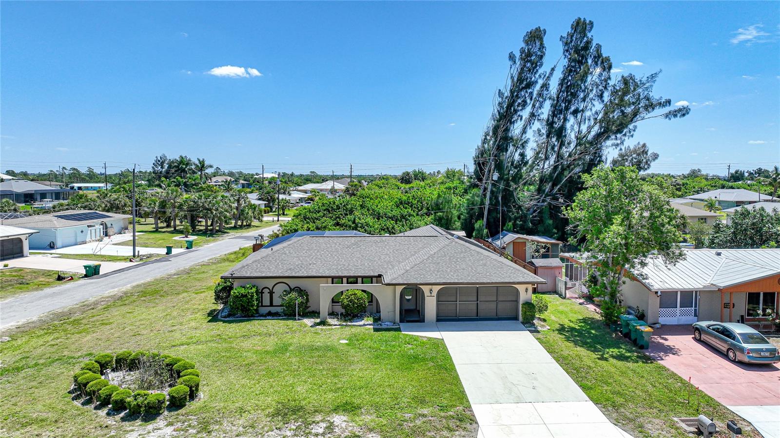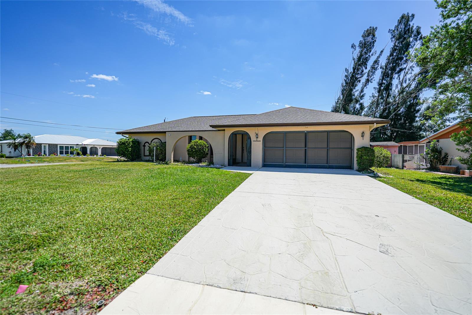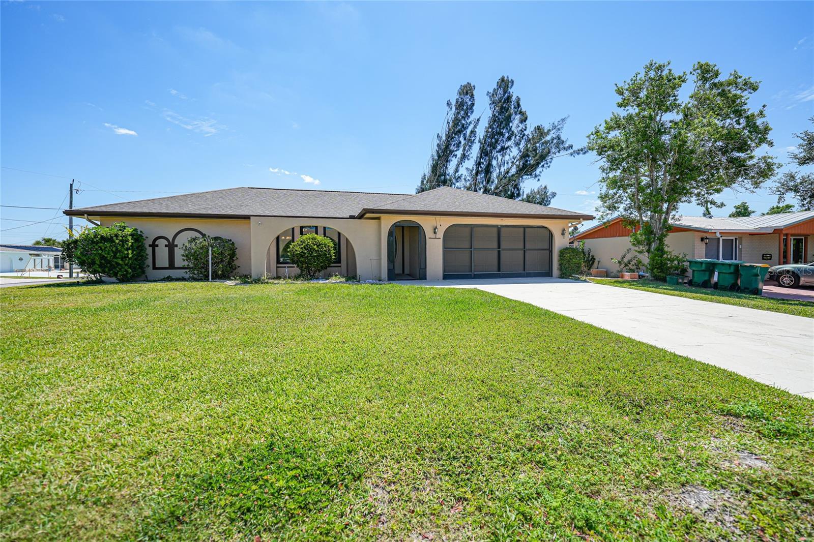 PRICED TO SELL - HUGE price adjustment - Welcome to your dream home in sunny Port Charlotte! This charming 3-bedroom, 2-bathroom, 2 car garage gem is nestled on an oversized corner lot and ready to welcome you with open arms. Let me walk you through the highlights of this fantastic property: Dive into luxury with your very own solar heated pool, perfect for year-round enjoyment and relaxation. New Roof & Pool Cage: Say goodbye to worries about repairs and hello to peace of mind with brand-new installations. Modern Amenities: With a 6-year-old AC unit and a new hot water heater, you can live comfortably without any hassle. Well-Equipped Kitchen: Granite countertops, ample storage, and a central layout make this kitchen a chef's delight and perfect for entertaining guests. Spacious Living Areas: From the large family room to the cozy breakfast nook, there's plenty of space for everyone to gather and create lasting memories. Outdoor Living: Step out onto the lanai and pool area from the dining room slider, extending your living space seamlessly into the Florida sunshine. Convenient Location: Enjoy easy access to Englewood and Boca Grande beaches, golf courses, fishing spots, and a variety of dining options—all just minutes away! Community Amenities include Sunseekers Resort: Relax and unwind in style at this nearby resort. Fisherman’s Village: Explore charming shops and waterfront dining at this local hotspot. Punta Gorda Airport: Traveling is a breeze with the airport just a short drive away. Whether you're looking for a permanent residence or a winter getaway, this home offers the perfect blend of comfort, convenience, and Florida charm. Don't miss out on your chance to make this slice of paradise your own! Contact me today for more information or to schedule a showing.