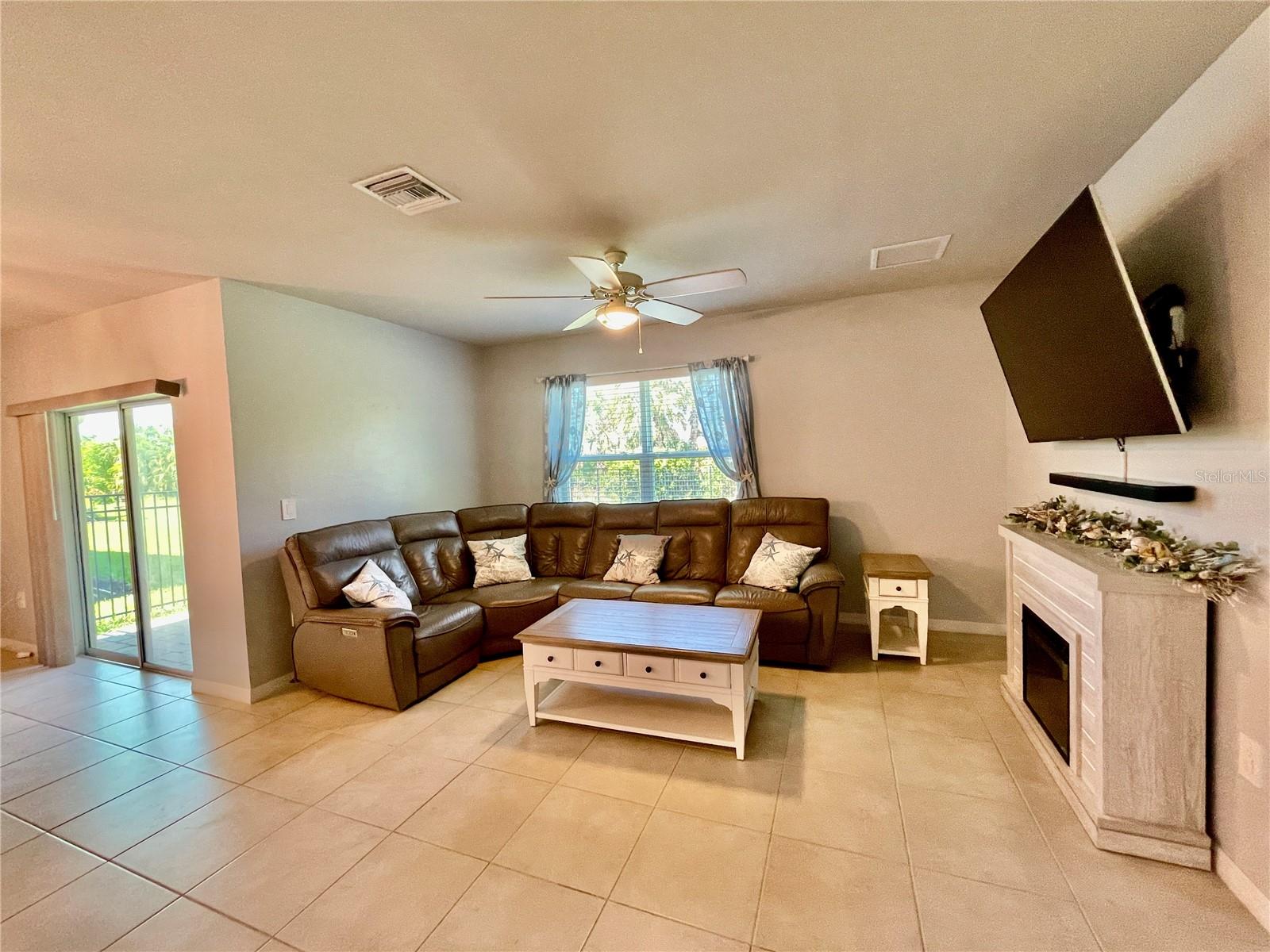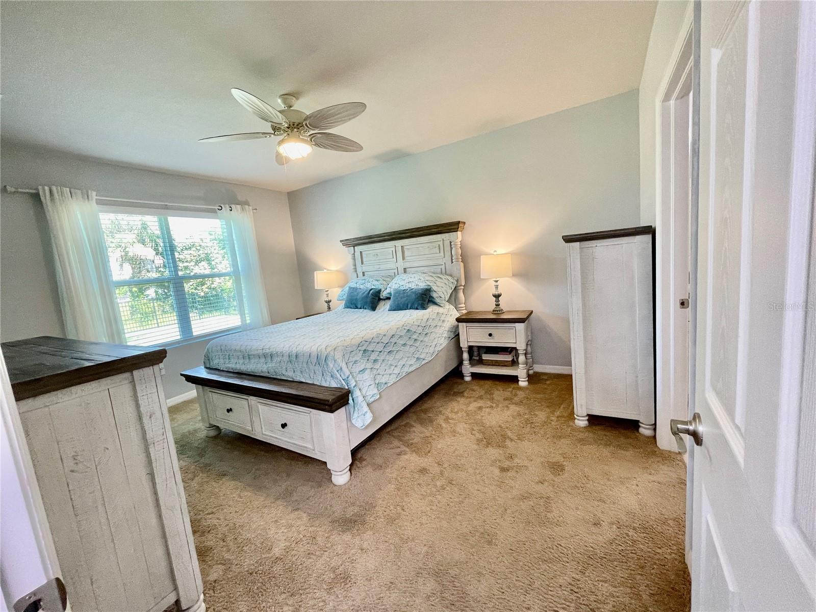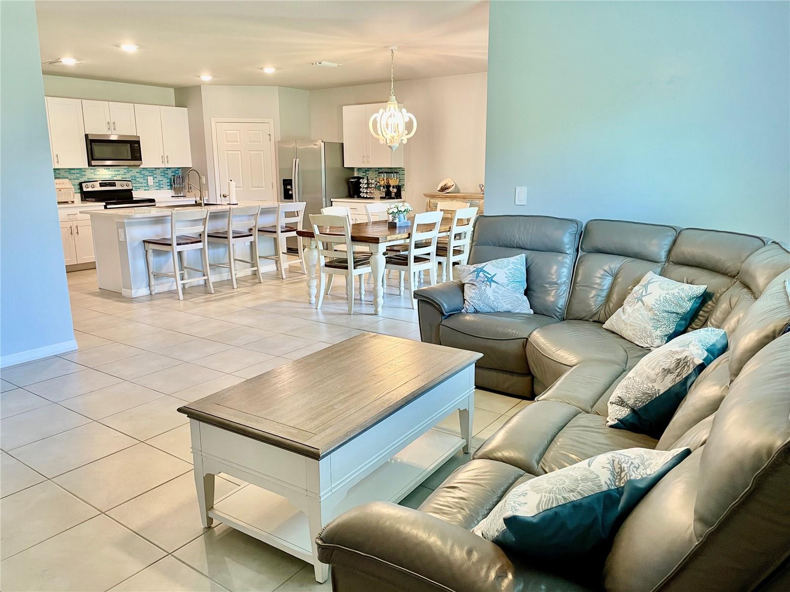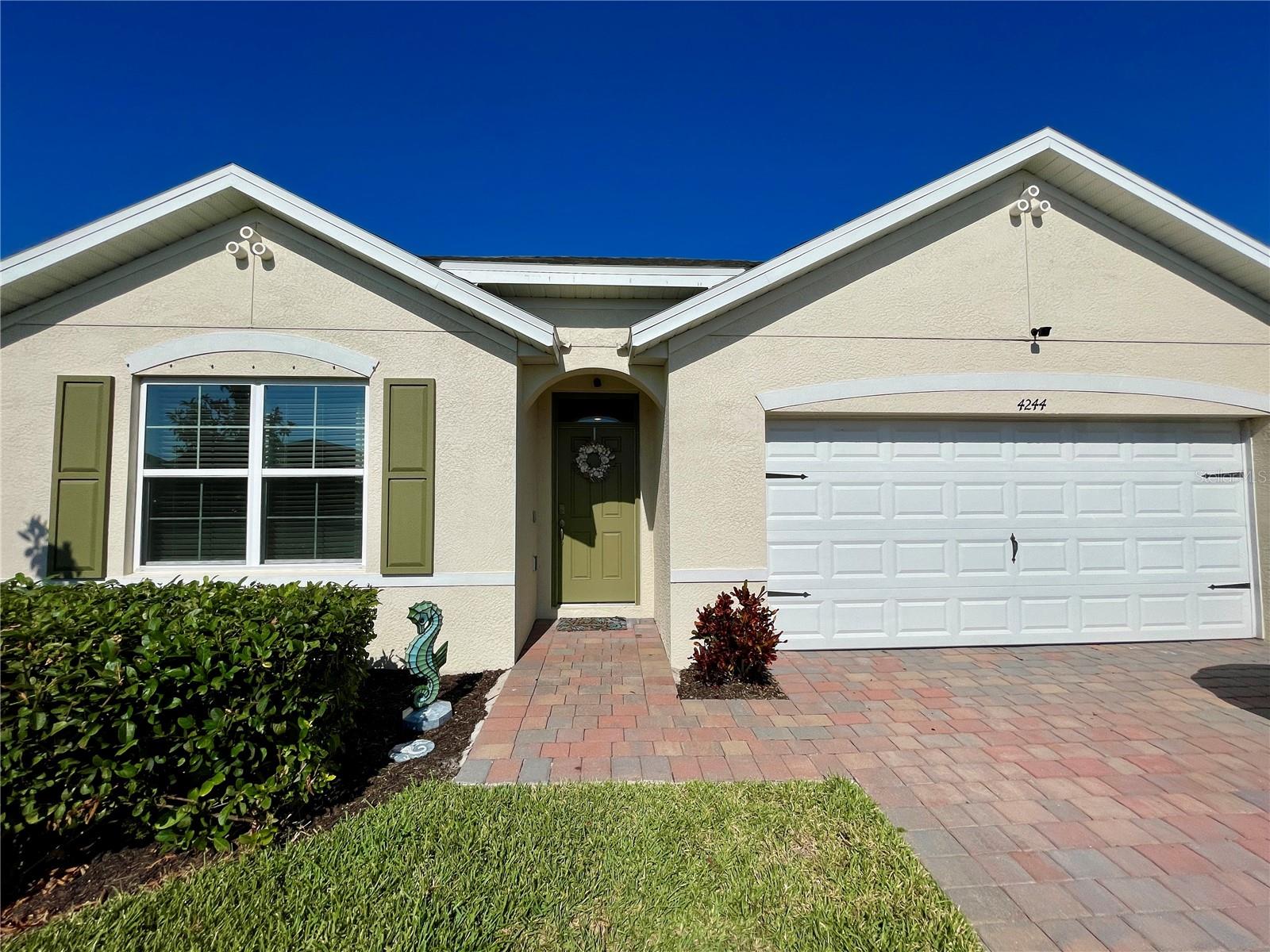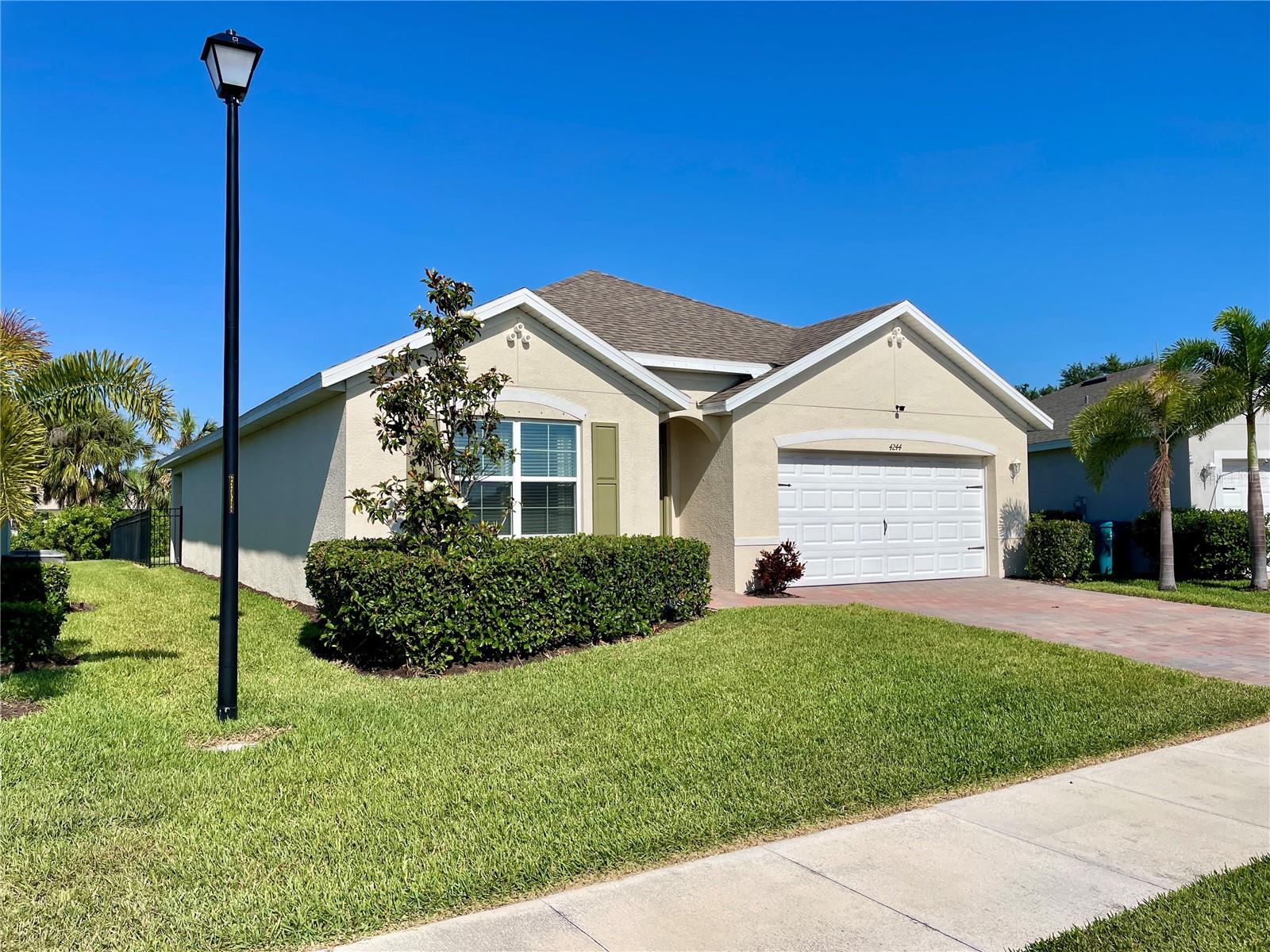 Beautiful 4/2/2 1872sf 2020 built home is nestled in the lovely Gated Community of River Club. MOTIVATED SELLER! This home is in an X flood zone, NO FLOOD INSURANCE IS REQUIRED! This split floor plan, light, bright home has tasteful updates...the kitchen has a large single stainless sink, Faucet, glass backsplash that adds a splash of color, dining area has a modern light fixture, fresh interior paint, and a large fenced backyard. There is tile through the main living area and carpet in the bedrooms. There are ceiling fans in most of the rooms. The kitchen has white cabinets, quartz countertops, stainless appliances, and island with additional seating that faces the eating area and a walk-in pantry. Looking beyond the casual dining area you can see the outdoor living space with and under roof lanai and a large fenced backyard. The lawn and bushes are maintained by the HOA. You can be working in the kitchen and still be apart of the Great room activities. The spacious Master bedroom is in the back of the home, it has a walk-in closet. The bathroom has a double bowl vanity, walk-in shower, separate water closet, and a huge linen closet. The 2nd bedroom faces the front yard. It gets great morning sun. The guest bathroom and 3rd bedroom are also in the front of the home. The 4th bedroom is down the hall located near the inside laundry room and garage. This floor plan was well thought-out! The home has smart capabilities for the front door lock and thermostat. Come see this little piece of paradise and fall in love!