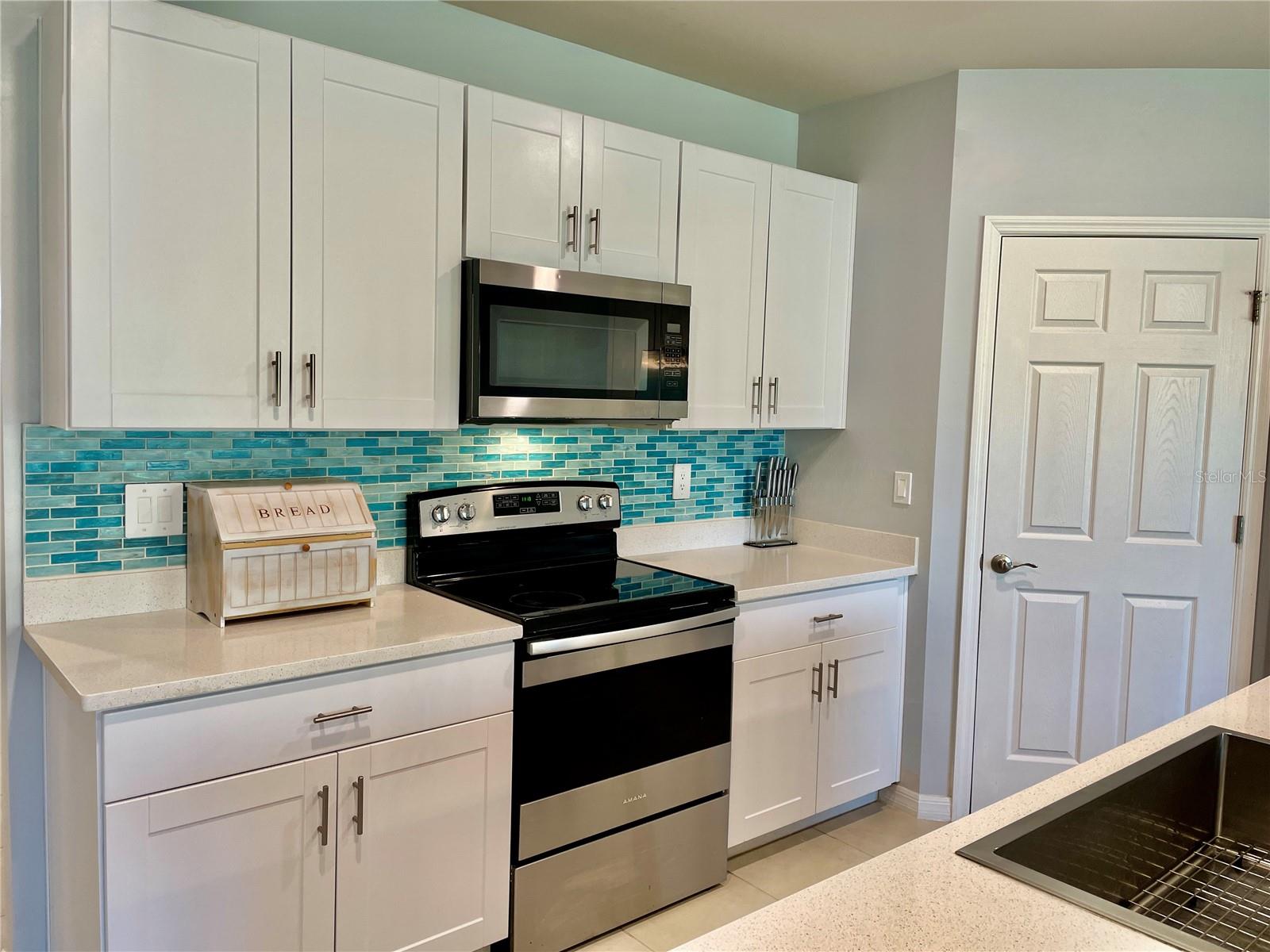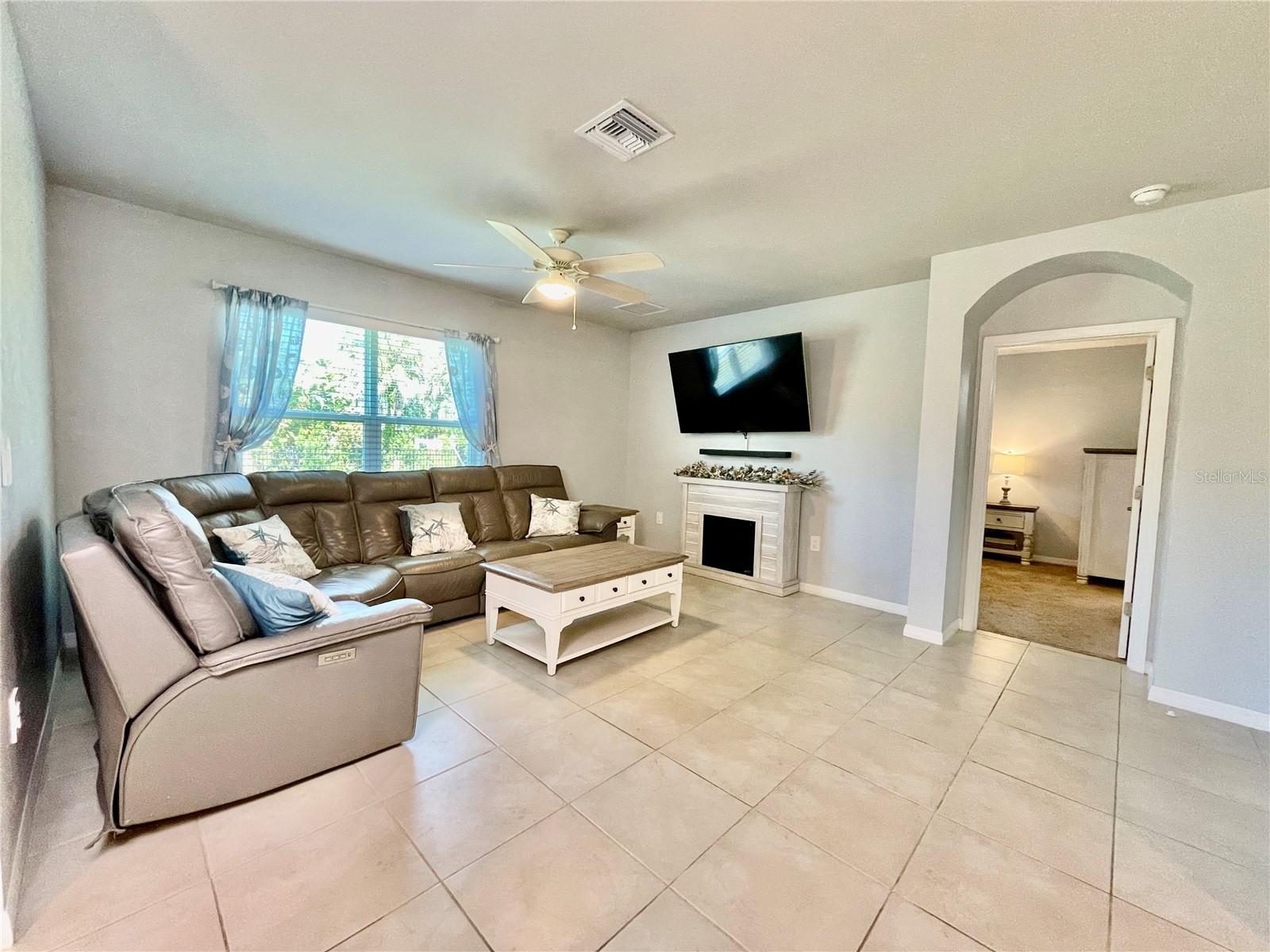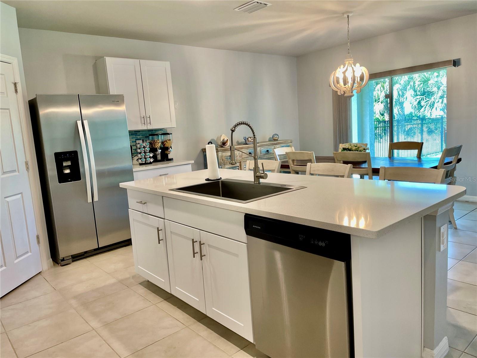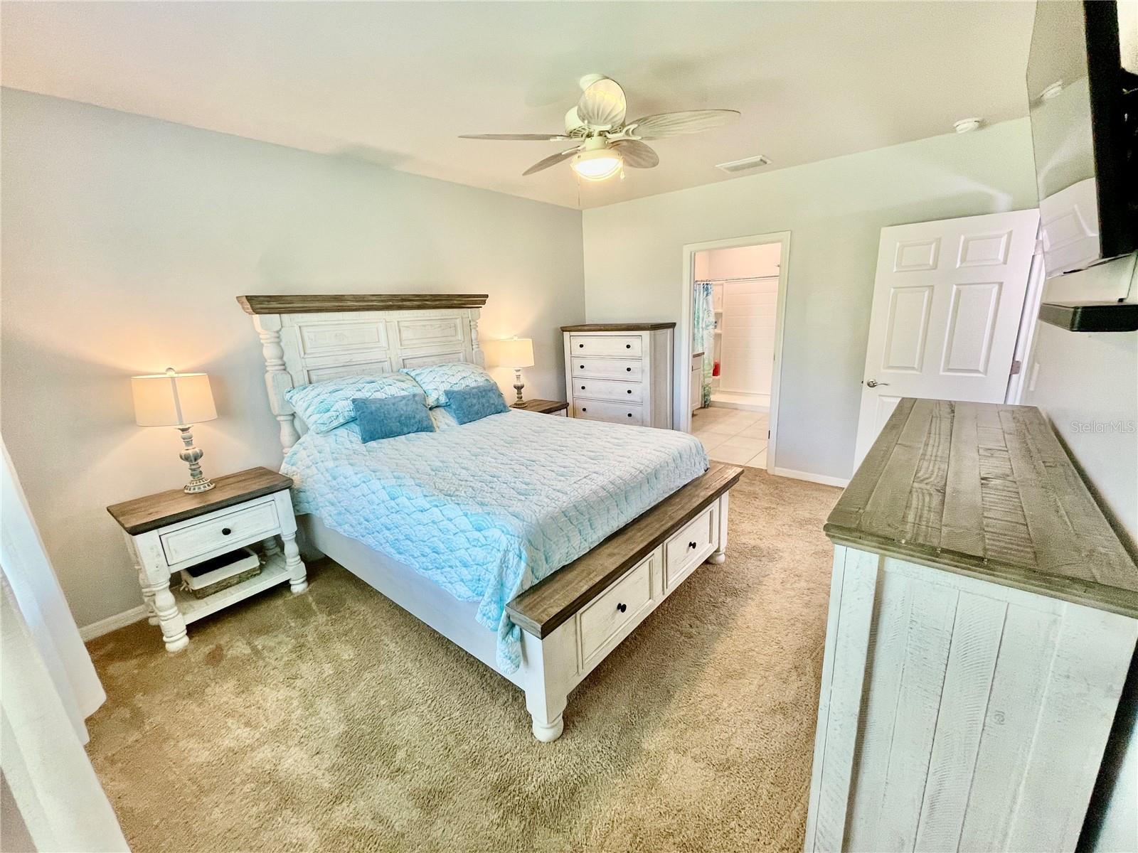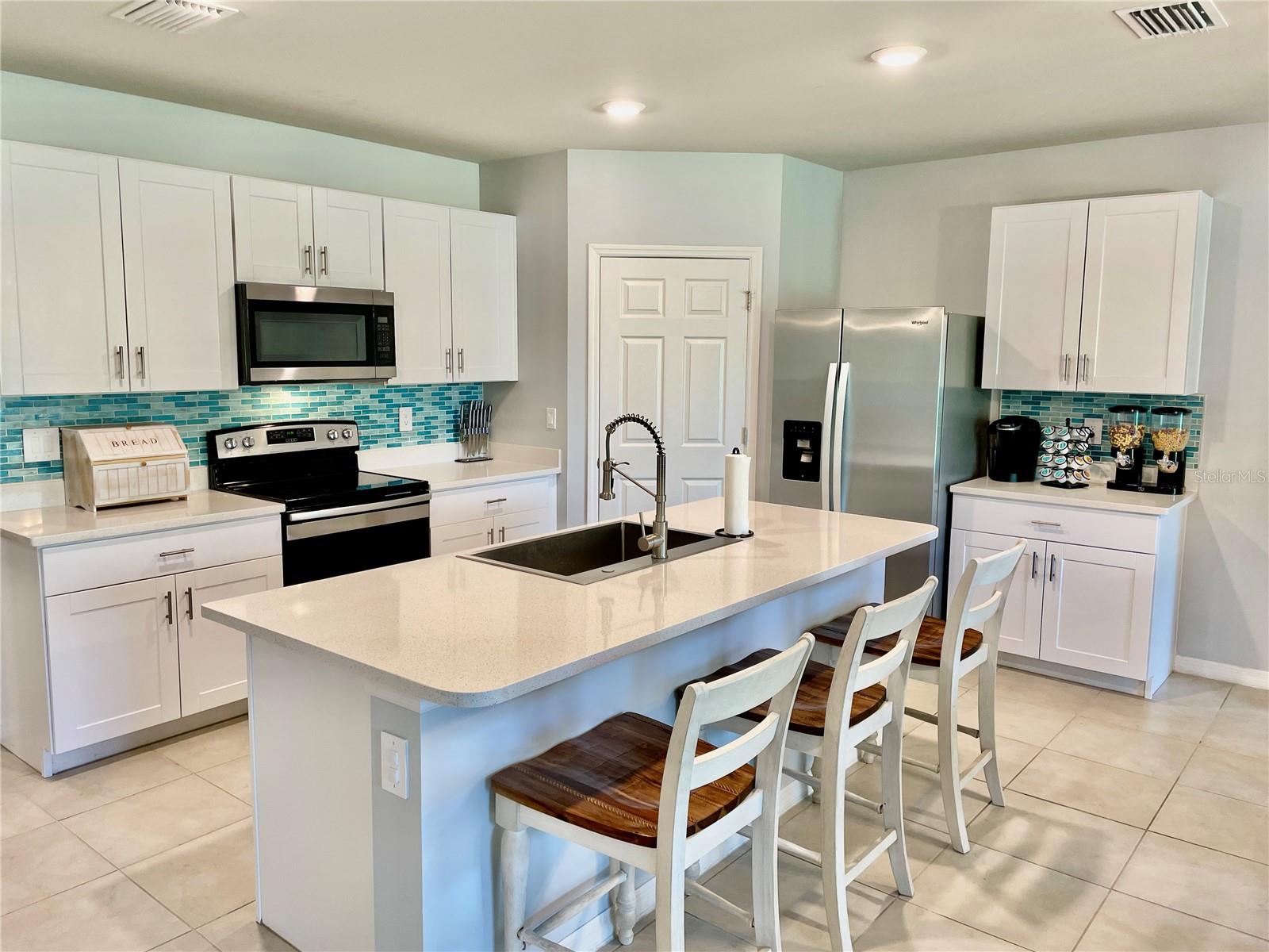 Beautiful 4/2/2 1872sf 2020 built home is nestled in the lovely Gated Community of River Club. MOTIVATED SELLER! This home is in an X flood zone, NO FLOOD INSURANCE IS REQUIRED! This split floor plan, light, bright home has tasteful updates...the kitchen has a large single stainless sink, Faucet, glass backsplash that adds a splash of color, dining area has a modern light fixture, fresh interior paint, and a large fenced backyard. There is tile through the main living area and carpet in the bedrooms. There are ceiling fans in most of the rooms. The kitchen has white cabinets, quartz countertops, stainless appliances, and island with additional seating that faces the eating area and a walk-in pantry. Looking beyond the casual dining area you can see the outdoor living space with and under roof lanai and a large fenced backyard. The lawn and bushes are maintained by the HOA. You can be working in the kitchen and still be apart of the Great room activities. The spacious Master bedroom is in the back of the home, it has a walk-in closet. The bathroom has a double bowl vanity, walk-in shower, separate water closet, and a huge linen closet. The 2nd bedroom faces the front yard. It gets great morning sun. The guest bathroom and 3rd bedroom are also in the front of the home. The 4th bedroom is down the hall located near the inside laundry room and garage. This floor plan was well thought-out! The home has smart capabilities for the front door lock and thermostat. Come see this little piece of paradise and fall in love!