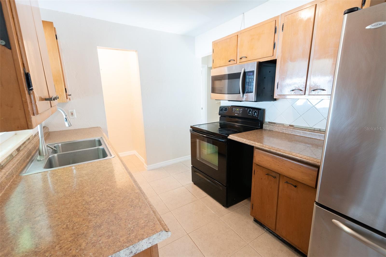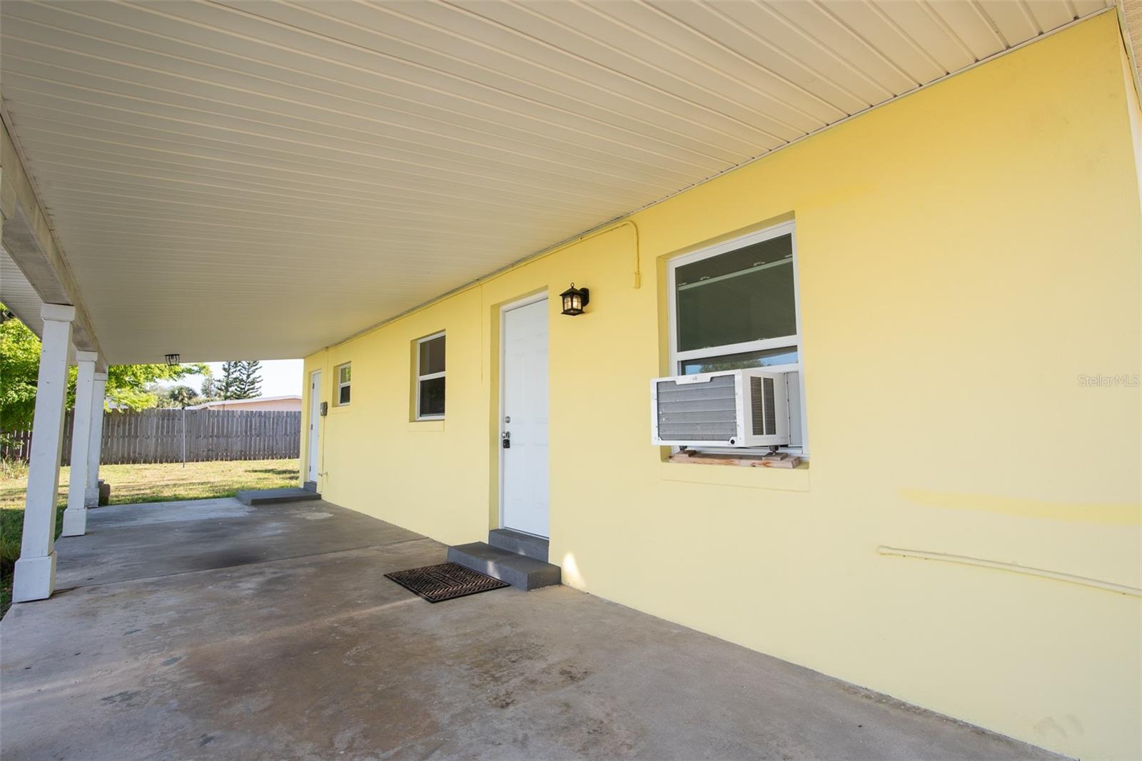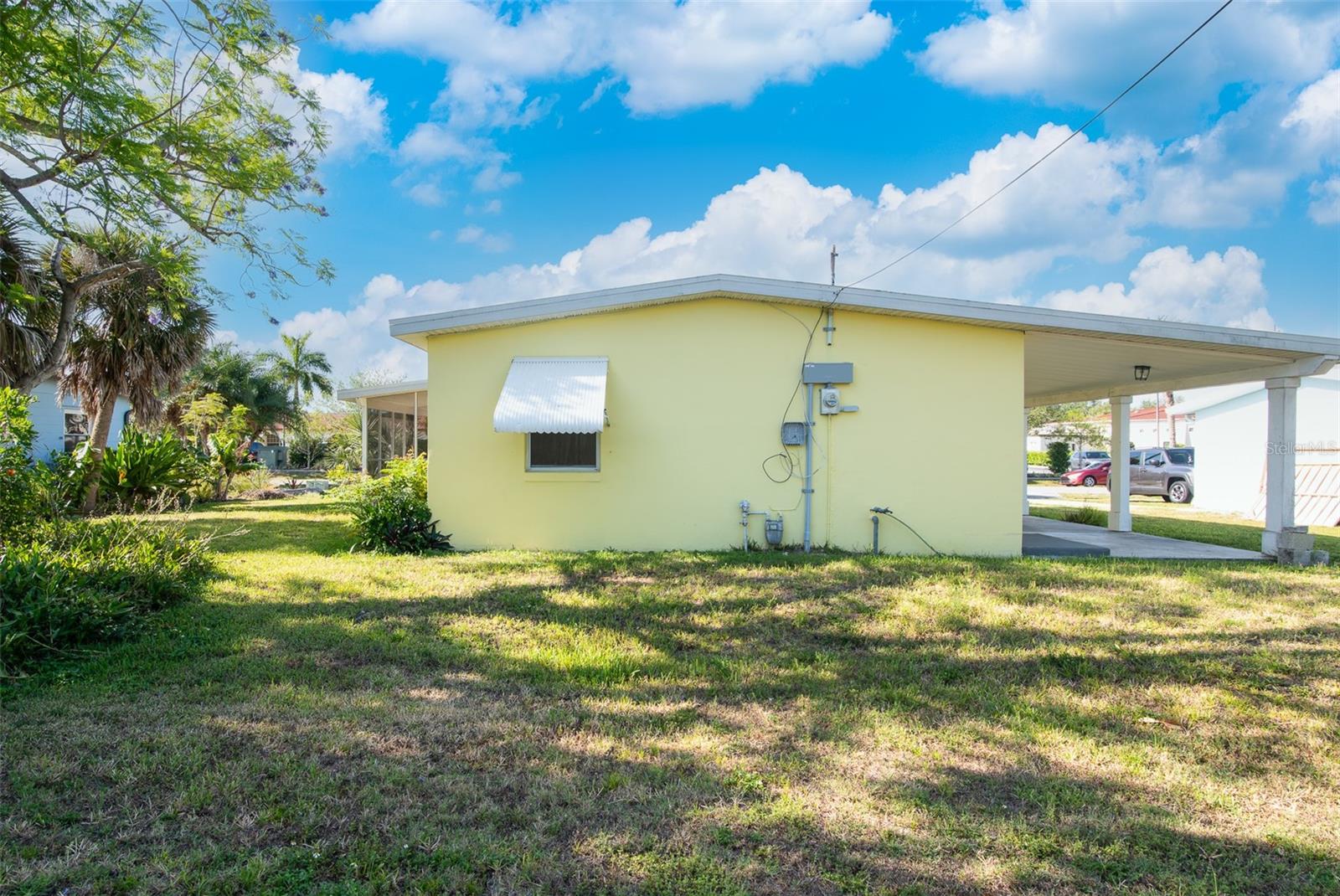 AFFORDABLE LIVING IN PORT CHARLOTTE, FL WITH NEW METAL ROOF INSTALLED (completed August, 2024). This is a perfect starter home or investment opportunity, as it’s move in ready and fully functional. This home has neutral paint and consistent tile throughout. All rooms are light and bright with plenty of windows. Located near the hospital, you will notice that as you drive up, this is a quiet, friendly neighborhood. Stay dry by parking in the extra-long carport (2 tandem cars or space for an extra outdoor seating area) and enter the home through the side door at the kitchen. Notice the stainless-steel modern refrigerator and over the range microwave. In addition to cabinetry for storage, there are extra pantry shelves. The kitchen is adjacent to the dining area / family room combo. The bright living area accesses the front door and screened lanai on the side of the home. Via the central hallway, you’ll find both bedrooms and a bathroom with natural light and tub/shower combo. The primary bedroom in the rear of the home offers two closets. In addition, there are shelves in the hallway for linen storage. Watch the little one play or have a backyard BBQ, as the neighboring property in the rear is fenced, offering you extra privacy. Featuring CITY WATER AND SEWER, plus NO HOA FEES. This conveniently located home is just a few minutes from hospitals, golf courses, stores, & restaurants; 10 minutes from beautiful downtown Punta Gorda; and 45 minutes to multiple Gulf Coast beaches. Southwest Florida features world-class fishing, boating, and water sports. The Port Charlotte area is easily accessible from the interstate and nearby regional airports in Punta Gorda, Sarasota, and Fort Myers. Schedule your private showing quickly, as this clean, move-in-ready home will not be on the market long.