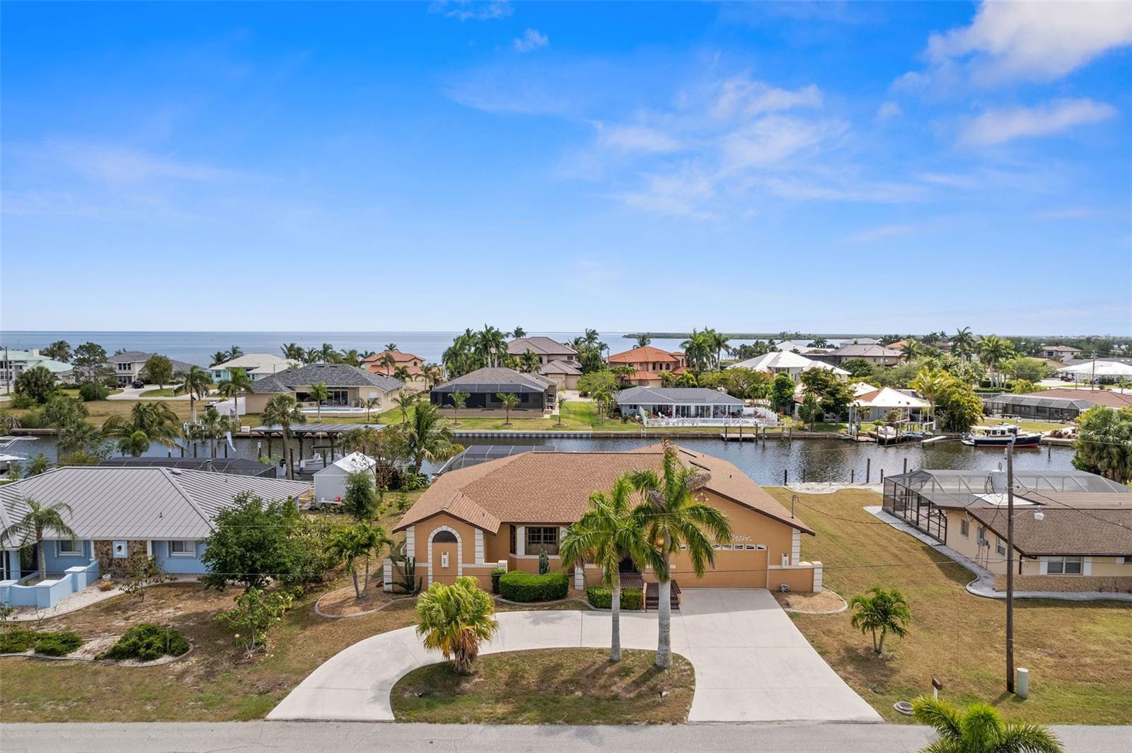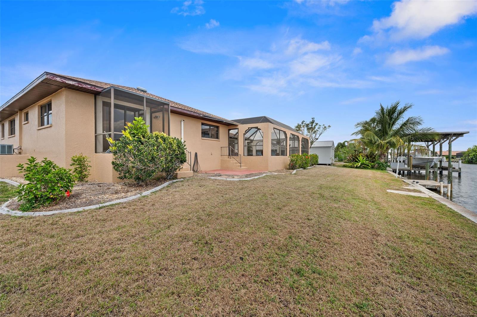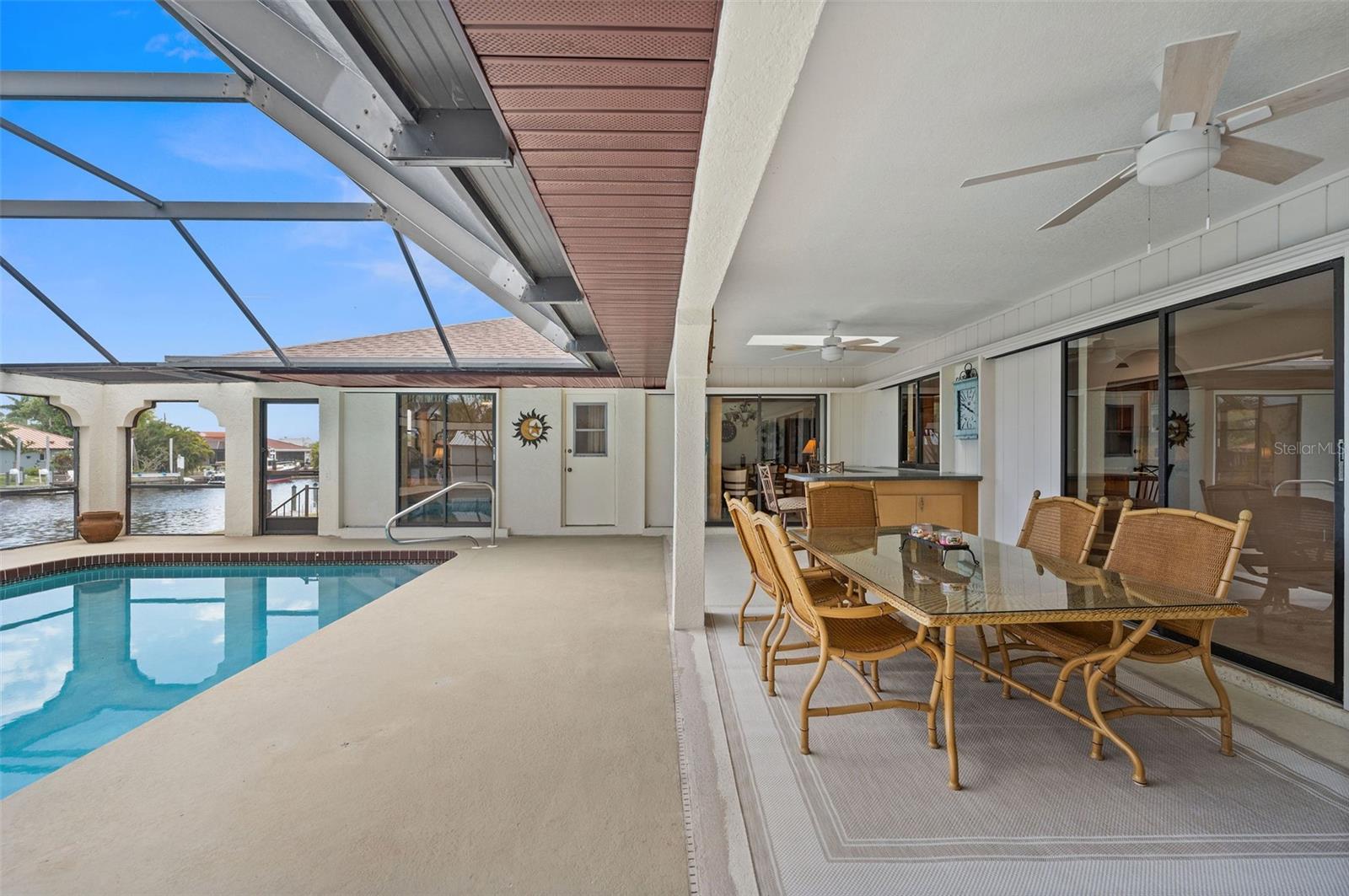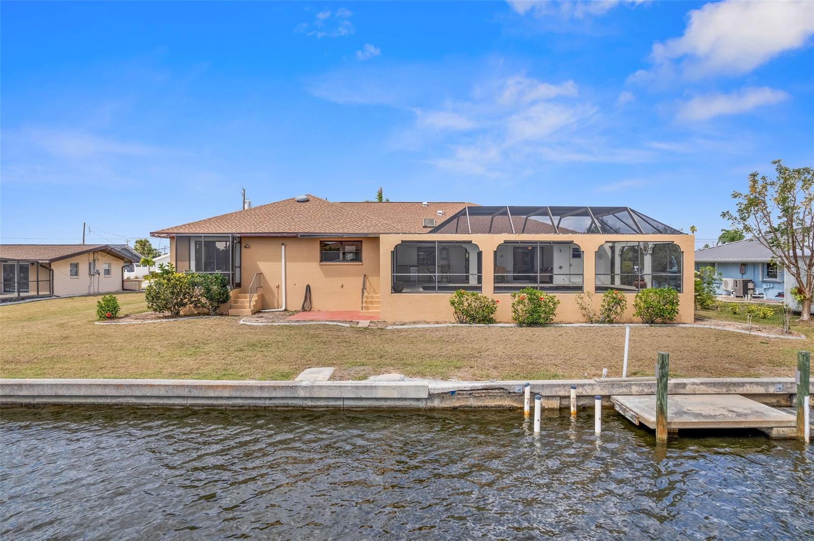 DIRECT SAILBOAT ACCESS 4 Bedroom, 3 Bathroom, 2 Car Garage, Pool home with a Family room on an OVERSIZED LOT & 101 FEET OF WATER FRONTAGE just MINUTES to OPEN WATER located in the Charlotte Beach complex in Port Charlotte. NO HOA FEES - 2023 ROOF - CONCRETE SEAWALL - EXTRA LARGE POOL & GARAGE! CLICK ON THE VIRTUAL TOUR LINK 1 FOR THE VIDEO AND VIRTUAL LINK 2 FOR THE 3D TOUR. This lovely home boasts over 2,500 square feet of living space with STUNNING Canal views. Spend quality time with friends and family in the open living and dining room with a glass slider flowing to the kitchen. The kitchen offers ALL Stainless-steel appliances, granite countertops, a tiled backsplash, a service window to the lanai, plenty of cabinets for storage, a breakfast counter, and an off-kitchen breakfast nook. Beyond the kitchen is a family room, with a wet bar, a slider to the lanai, skylight and an exposed beam ceiling, expanding your living and entertaining space. The spacious master bedroom has a BEAUTIFUL water view, HIS & HERS walk-in closets, and a private bathroom with a dual sink vanity, walk-in shower, soaking tub, and private toilet. The guest bedrooms have built-in closets and are on a split floor plan offering plenty of privacy. Two of the guest rooms have glass sliders for GORGEOUS water views, one with access to the lanai and the other with a private screened-in patio overlooking the canal. A large lanai has an outdoor bar and is perfect for sipping your morning coffee or unwinding with your favorite evening beverage while enjoying MAGICAL Sunsets over the water. Dive into the crystal waters of a private HEATED pool or soak up the sun from the pool deck, complete with an outdoor shower. Set sail for endless water adventures from a private dock in your backyard! MINUTES to Port Charlotte Beach Complex that offers sand, sheltered waters, and spectacular sunsets year round. Amenities include a boardwalk with a fishing pier, boat ramp, canoe/kayak launch, horseshoe pits, bocce courts, basketball courts, tennis courts, volleyball court, playground area, small shelters with picnic tables, two large pavilions, restrooms, heated swimming pool, and a recreation center. Also nearby is US-41, local favorites such as Fishermen’s Village, Ponce De Leon Park, shopping & boutiques, fine & casual dining, and LIVE entertainment. Schedule your showing TODAY!