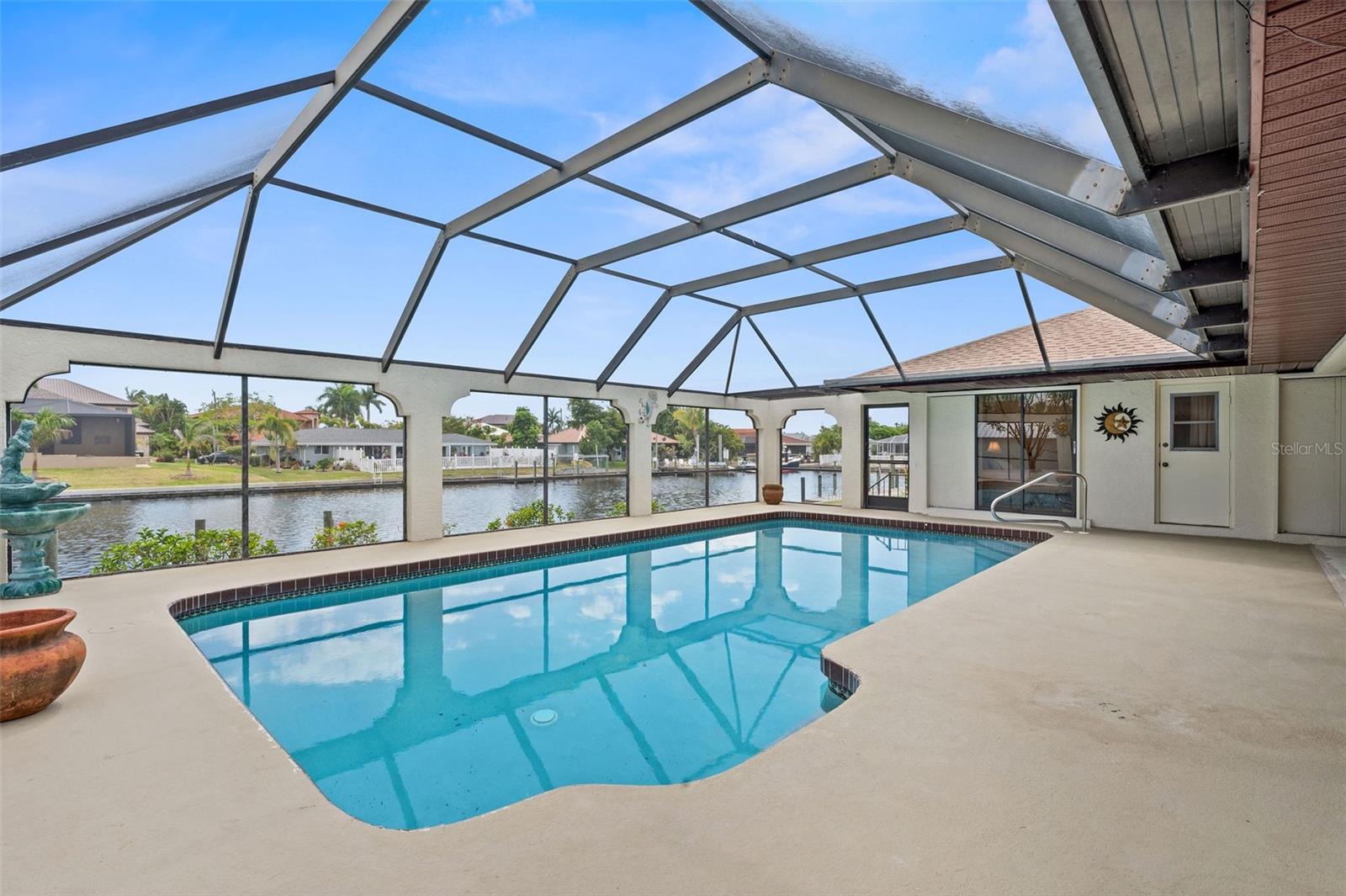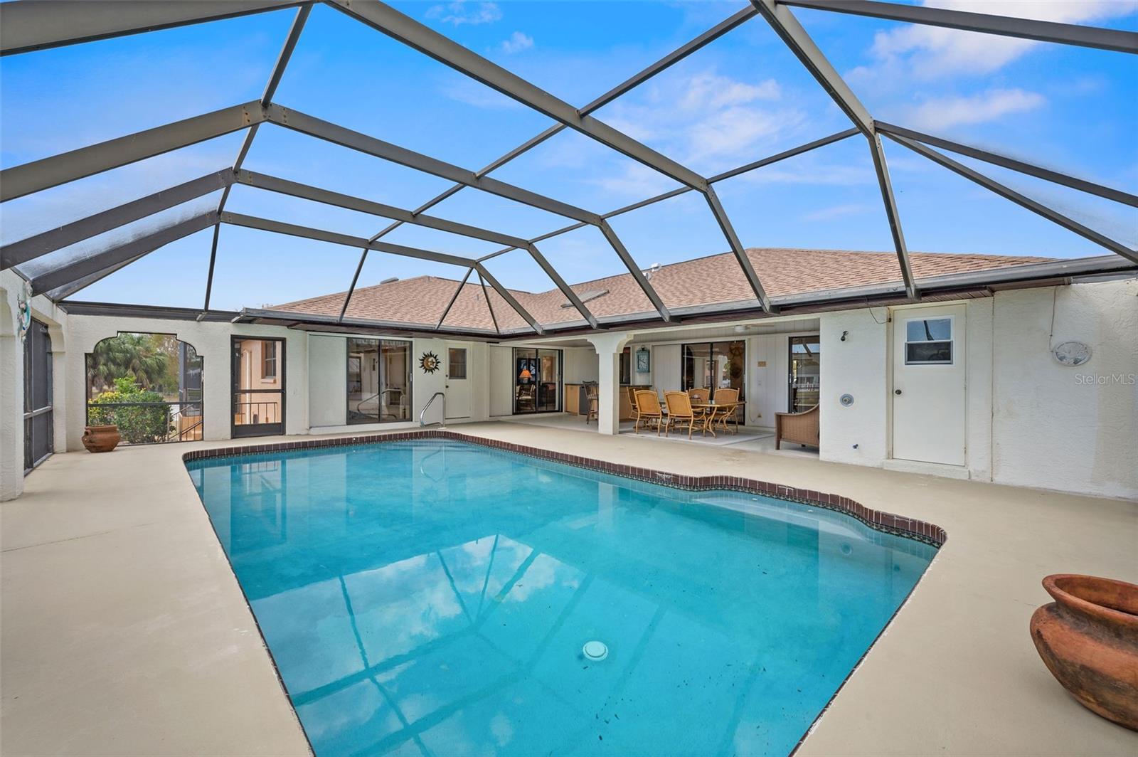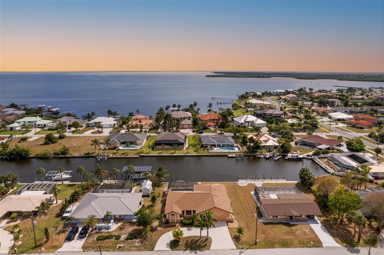 DIRECT SAILBOAT ACCESS 4 Bedroom, 3 Bathroom, 2 Car Garage, Pool home with a Family room on an OVERSIZED LOT & 101 FEET OF WATER FRONTAGE just MINUTES to OPEN WATER located in the Charlotte Beach complex in Port Charlotte. NO HOA FEES - 2023 ROOF - CONCRETE SEAWALL - EXTRA LARGE POOL & GARAGE! CLICK ON THE VIRTUAL TOUR LINK 1 FOR THE VIDEO AND VIRTUAL LINK 2 FOR THE 3D TOUR. This lovely home boasts over 2,500 square feet of living space with STUNNING Canal views. Spend quality time with friends and family in the open living and dining room with a glass slider flowing to the kitchen. The kitchen offers ALL Stainless-steel appliances, granite countertops, a tiled backsplash, a service window to the lanai, plenty of cabinets for storage, a breakfast counter, and an off-kitchen breakfast nook. Beyond the kitchen is a family room, with a wet bar, a slider to the lanai, skylight and an exposed beam ceiling, expanding your living and entertaining space. The spacious master bedroom has a BEAUTIFUL water view, HIS & HERS walk-in closets, and a private bathroom with a dual sink vanity, walk-in shower, soaking tub, and private toilet. The guest bedrooms have built-in closets and are on a split floor plan offering plenty of privacy. Two of the guest rooms have glass sliders for GORGEOUS water views, one with access to the lanai and the other with a private screened-in patio overlooking the canal. A large lanai has an outdoor bar and is perfect for sipping your morning coffee or unwinding with your favorite evening beverage while enjoying MAGICAL Sunsets over the water. Dive into the crystal waters of a private HEATED pool or soak up the sun from the pool deck, complete with an outdoor shower. Set sail for endless water adventures from a private dock in your backyard! MINUTES to Port Charlotte Beach Complex that offers sand, sheltered waters, and spectacular sunsets year round. Amenities include a boardwalk with a fishing pier, boat ramp, canoe/kayak launch, horseshoe pits, bocce courts, basketball courts, tennis courts, volleyball court, playground area, small shelters with picnic tables, two large pavilions, restrooms, heated swimming pool, and a recreation center. Also nearby is US-41, local favorites such as Fishermen’s Village, Ponce De Leon Park, shopping & boutiques, fine & casual dining, and LIVE entertainment. Schedule your showing TODAY!