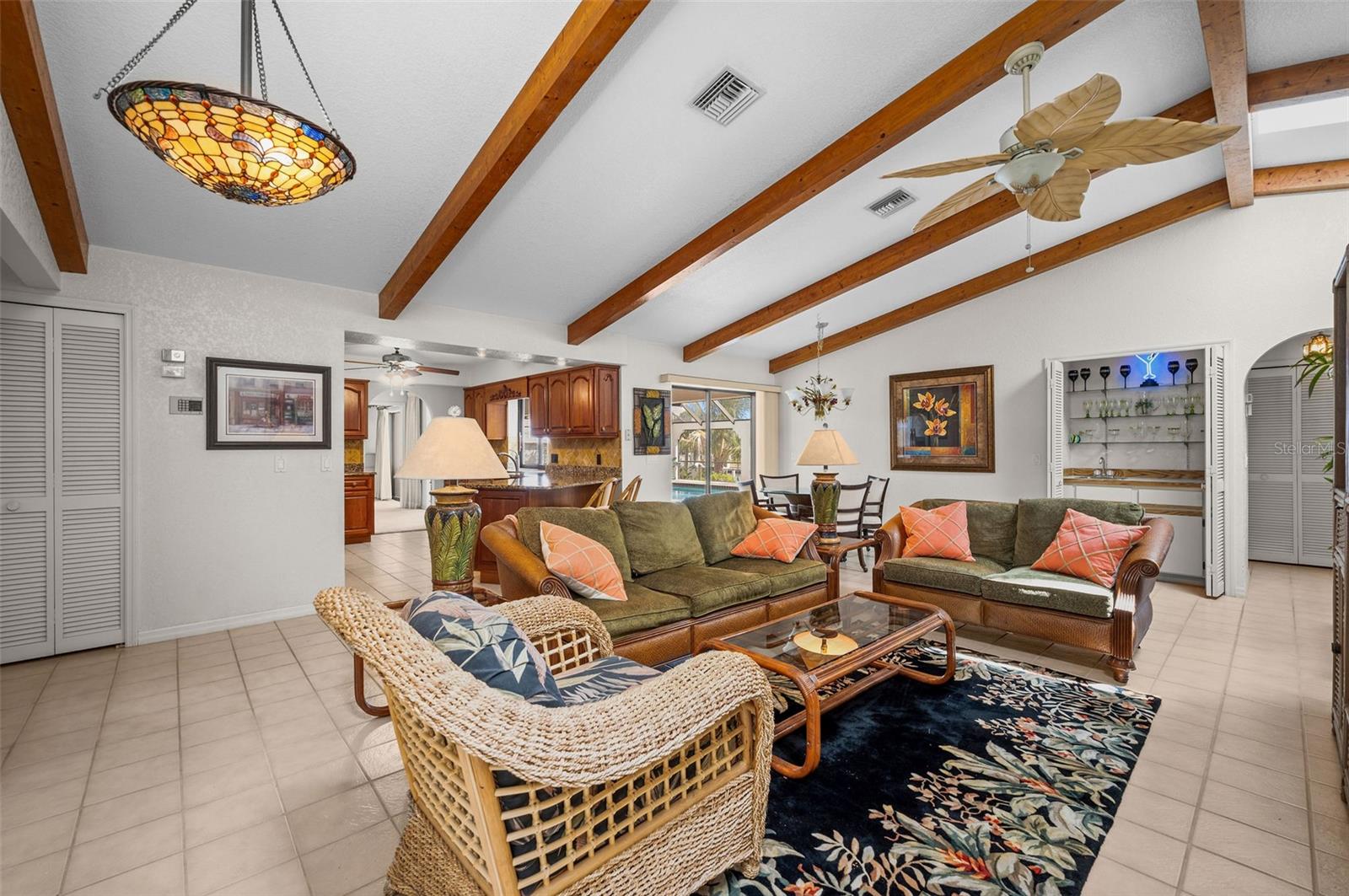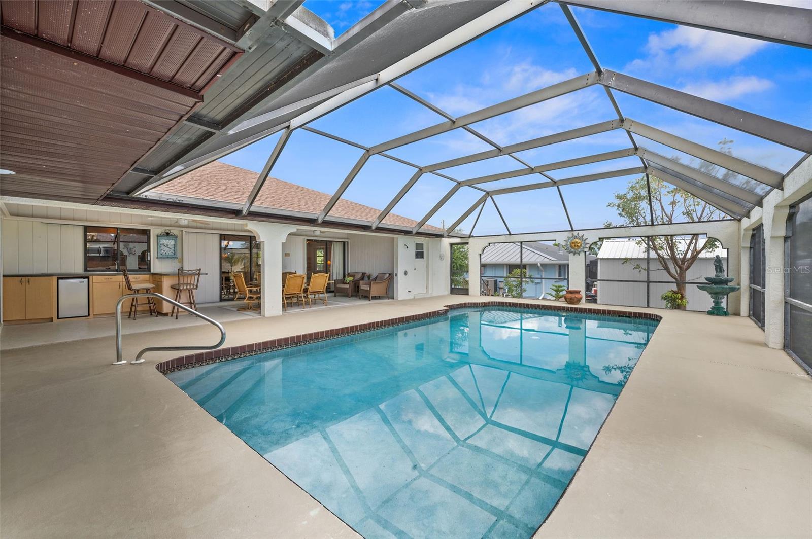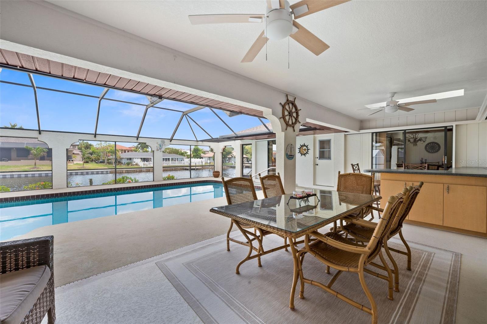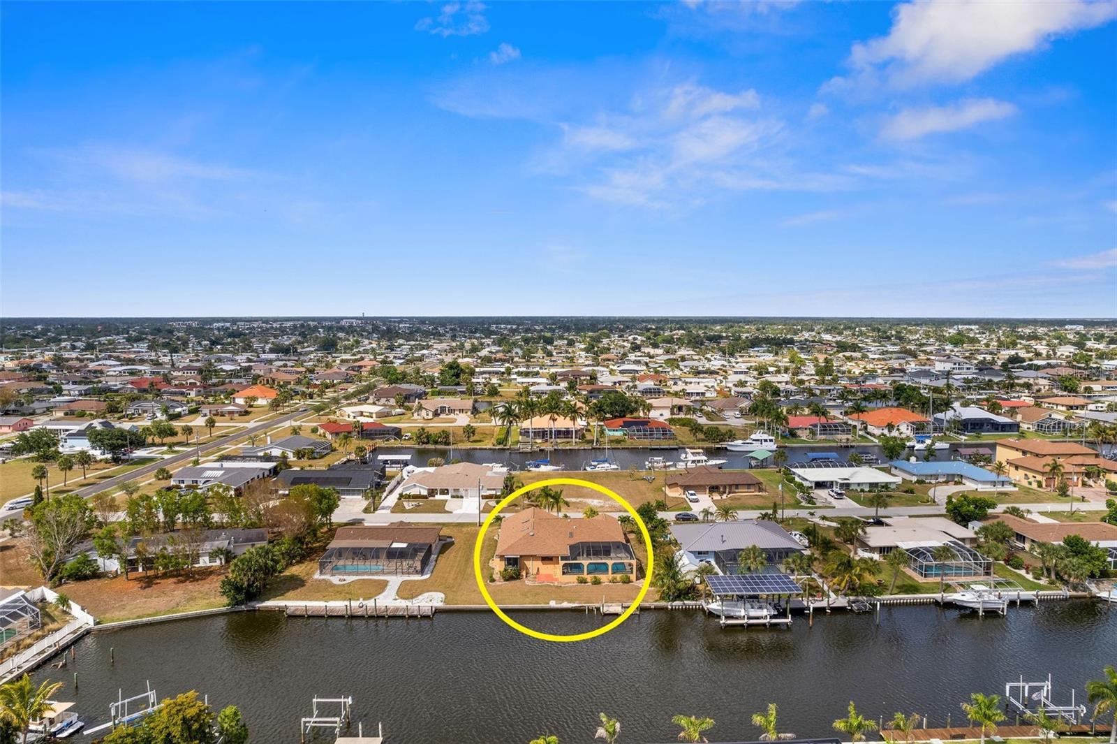 DIRECT SAILBOAT ACCESS 4 Bedroom, 3 Bathroom, 2 Car Garage, Pool home with a Family room on an OVERSIZED LOT & 101 FEET OF WATER FRONTAGE just MINUTES to OPEN WATER located in the Charlotte Beach complex in Port Charlotte. NO HOA FEES - 2023 ROOF - CONCRETE SEAWALL - EXTRA LARGE POOL & GARAGE! CLICK ON THE VIRTUAL TOUR LINK 1 FOR THE VIDEO AND VIRTUAL LINK 2 FOR THE 3D TOUR. This lovely home boasts over 2,500 square feet of living space with STUNNING Canal views. Spend quality time with friends and family in the open living and dining room with a glass slider flowing to the kitchen. The kitchen offers ALL Stainless-steel appliances, granite countertops, a tiled backsplash, a service window to the lanai, plenty of cabinets for storage, a breakfast counter, and an off-kitchen breakfast nook. Beyond the kitchen is a family room, with a wet bar, a slider to the lanai, skylight and an exposed beam ceiling, expanding your living and entertaining space. The spacious master bedroom has a BEAUTIFUL water view, HIS & HERS walk-in closets, and a private bathroom with a dual sink vanity, walk-in shower, soaking tub, and private toilet. The guest bedrooms have built-in closets and are on a split floor plan offering plenty of privacy. Two of the guest rooms have glass sliders for GORGEOUS water views, one with access to the lanai and the other with a private screened-in patio overlooking the canal. A large lanai has an outdoor bar and is perfect for sipping your morning coffee or unwinding with your favorite evening beverage while enjoying MAGICAL Sunsets over the water. Dive into the crystal waters of a private HEATED pool or soak up the sun from the pool deck, complete with an outdoor shower. Set sail for endless water adventures from a private dock in your backyard! MINUTES to Port Charlotte Beach Complex that offers sand, sheltered waters, and spectacular sunsets year round. Amenities include a boardwalk with a fishing pier, boat ramp, canoe/kayak launch, horseshoe pits, bocce courts, basketball courts, tennis courts, volleyball court, playground area, small shelters with picnic tables, two large pavilions, restrooms, heated swimming pool, and a recreation center. Also nearby is US-41, local favorites such as Fishermen’s Village, Ponce De Leon Park, shopping & boutiques, fine & casual dining, and LIVE entertainment. Schedule your showing TODAY!