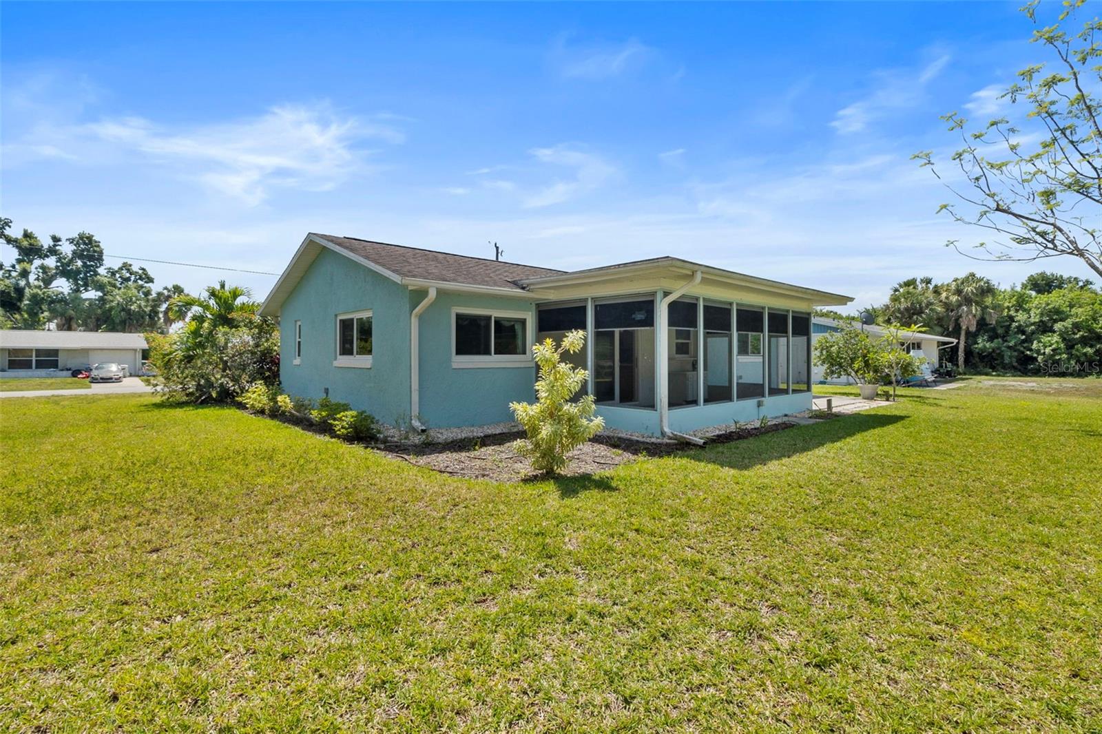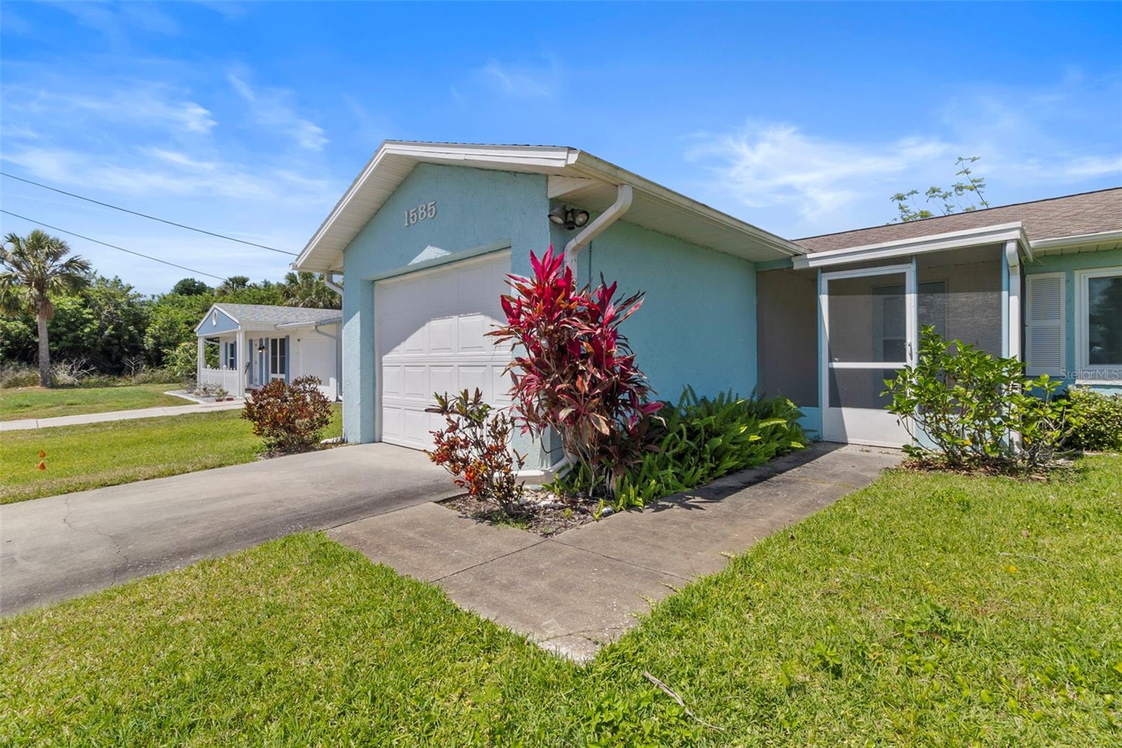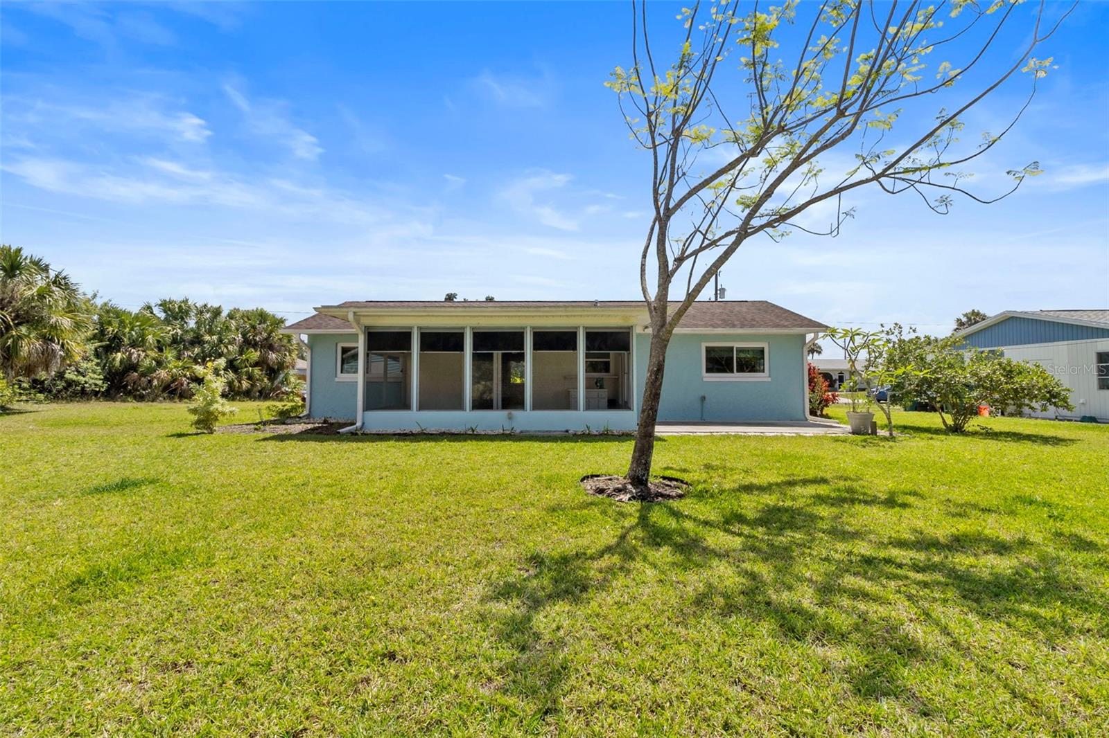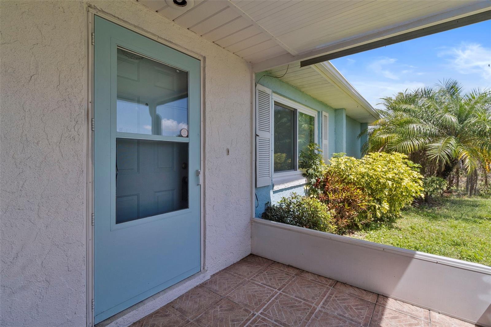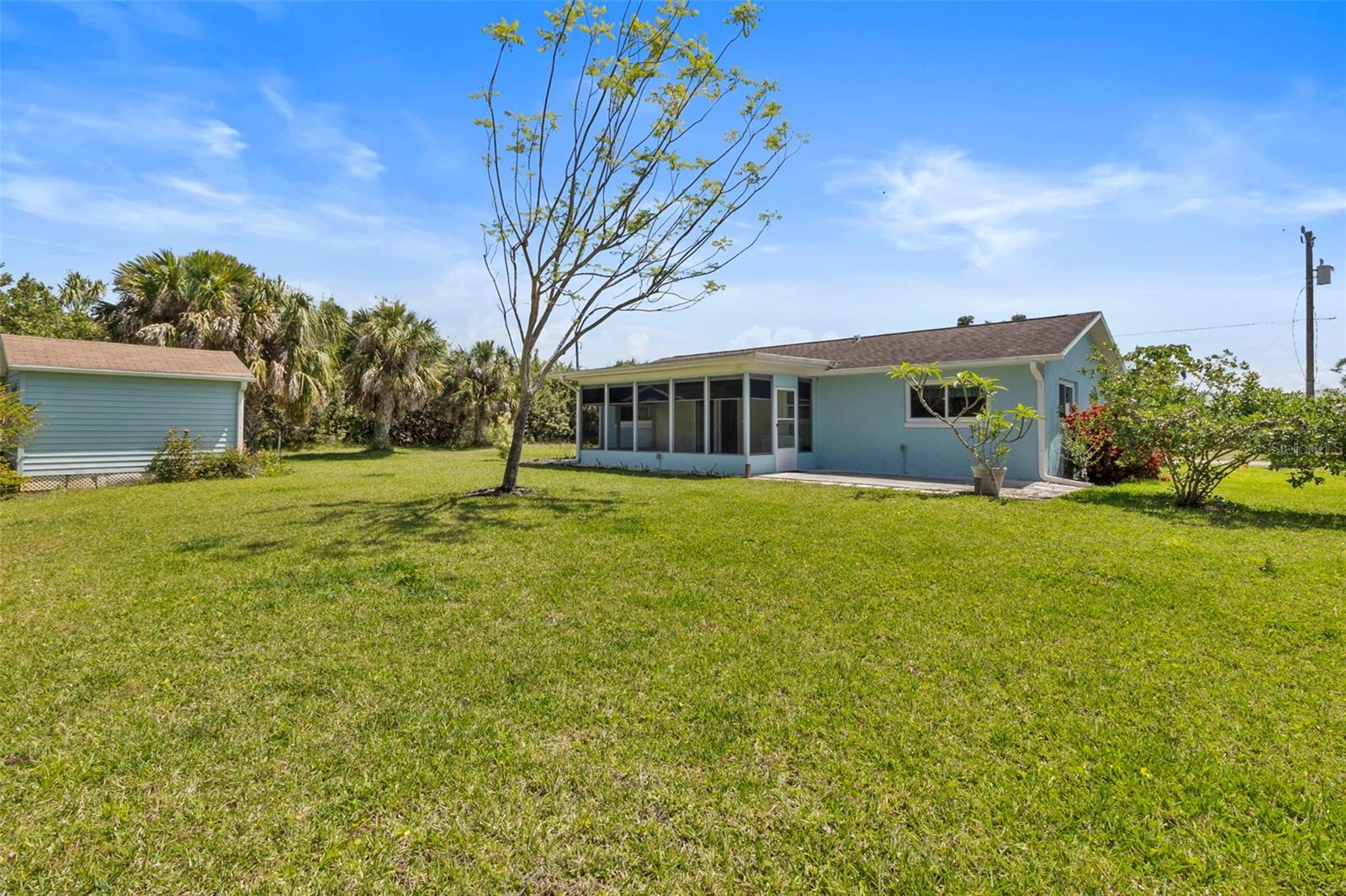 One or more photo(s) has been virtually staged. NO FLODD INSURANCE REQUIRED- X flood zone. Welcome to your waterfront retreat on the Elkham Waterway! This 2-bedroom, 2-bathroom home offers 1,039 square feet of thoughtfully designed living space. Inside, you'll find ceramic tile and wood-look vinyl flooring throughout, combining style with practicality. The kitchen is well-appointed with plenty of counter and cabinet space, along with essential appliances, including a microwave, range, refrigerator, and dishwasher. Ceiling fans in every room help keep the home cool and comfortable. Recent updates include IMPACT WINDOWS for added security and energy efficiency, a NEWER ROOF (2017), and an HVAC SYSTEM (2019). MOTORIZED SHADES and blinds on every window allow for easy control of light and privacy. Step outside to the expansive screened-in patio, where you can unwind and savor the peaceful canal views. Whether you're enjoying your morning coffee or relaxing after a long day, this outdoor space offers the perfect setting to take in the serene surroundings. A RENOVATED SHED provides extra storage space for your outdoor gear. The lawn SPRINKLER SYSTEM uses canal water to keep your yard lush and green while saving on water bills—an added bonus for this waterfront home. Situated in a quiet Port Charlotte neighborhood, this home is close to Neil Armstrong Elementary, local restaurants, medical facilities, shopping, and downtown Punta Gorda. The Punta Gorda Airport is also just a short drive away for added convenience. Don’t miss your chance to see this waterfront home—schedule your showing today! For a full video tour, check out Facebook at Findingtreasurerealtor.