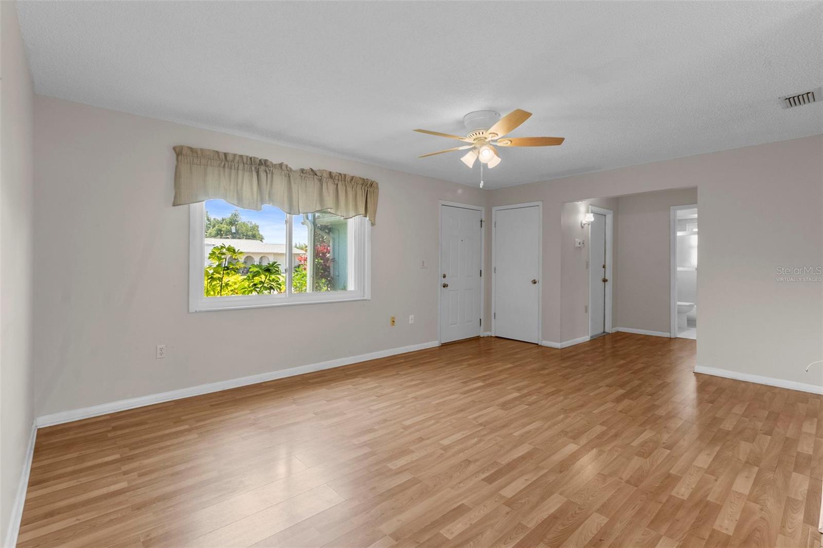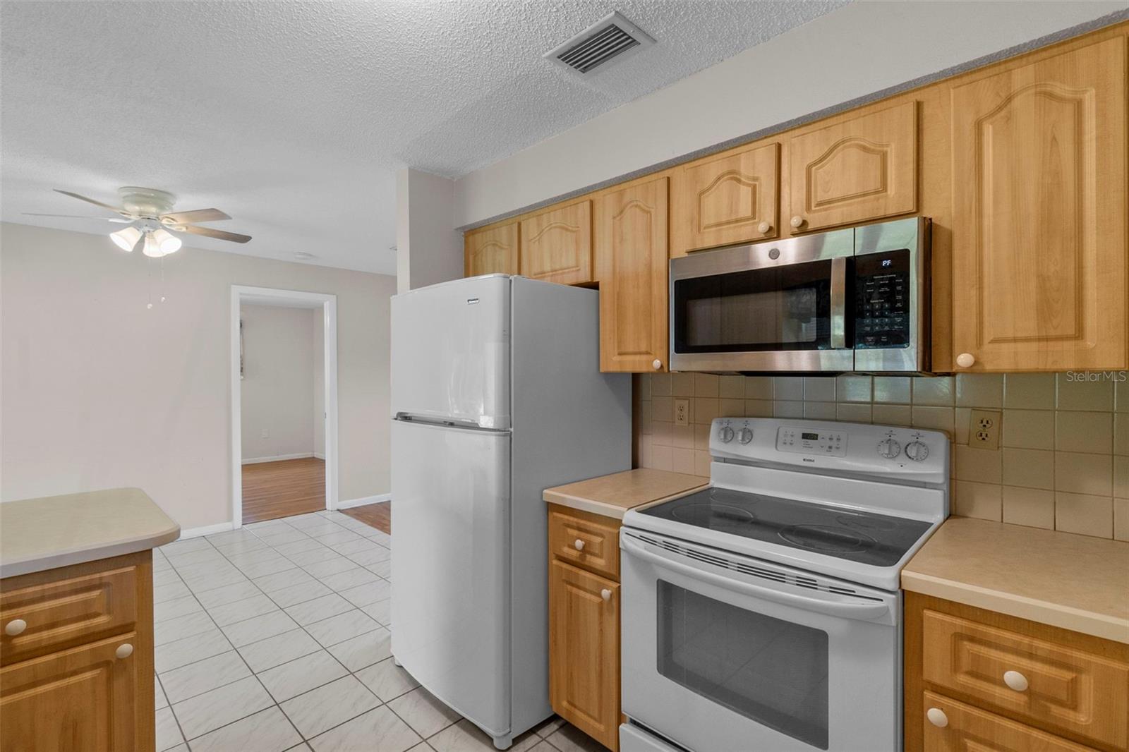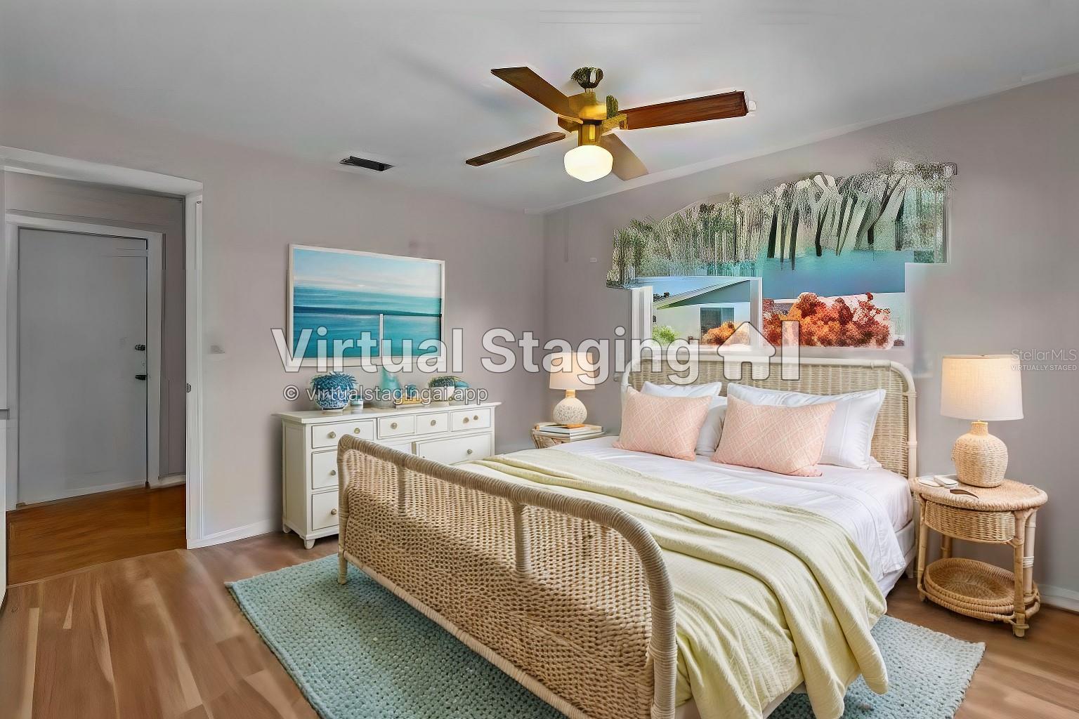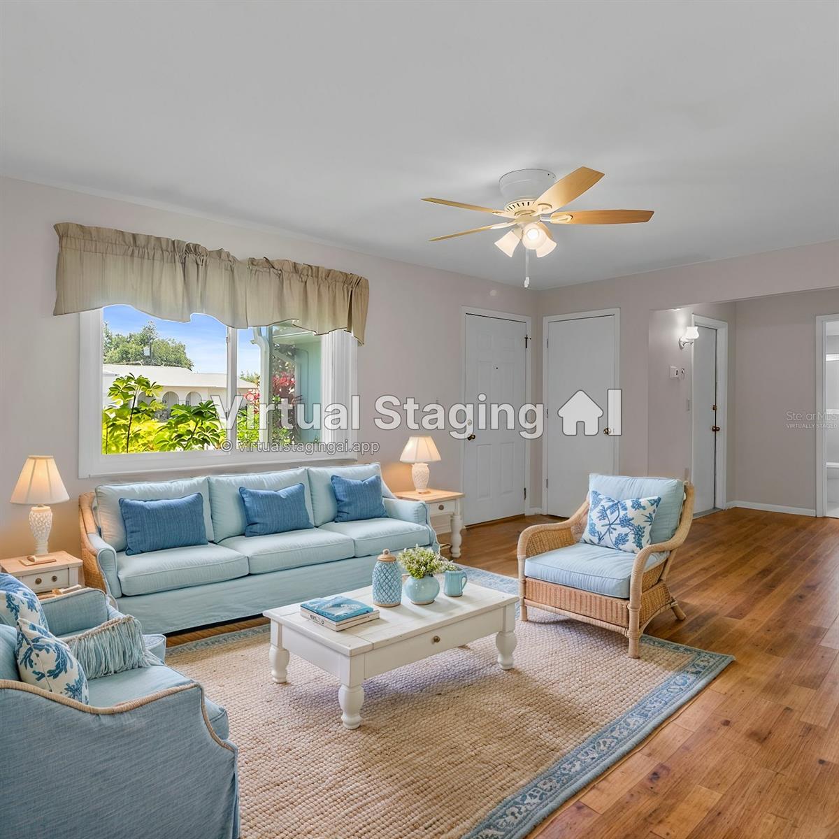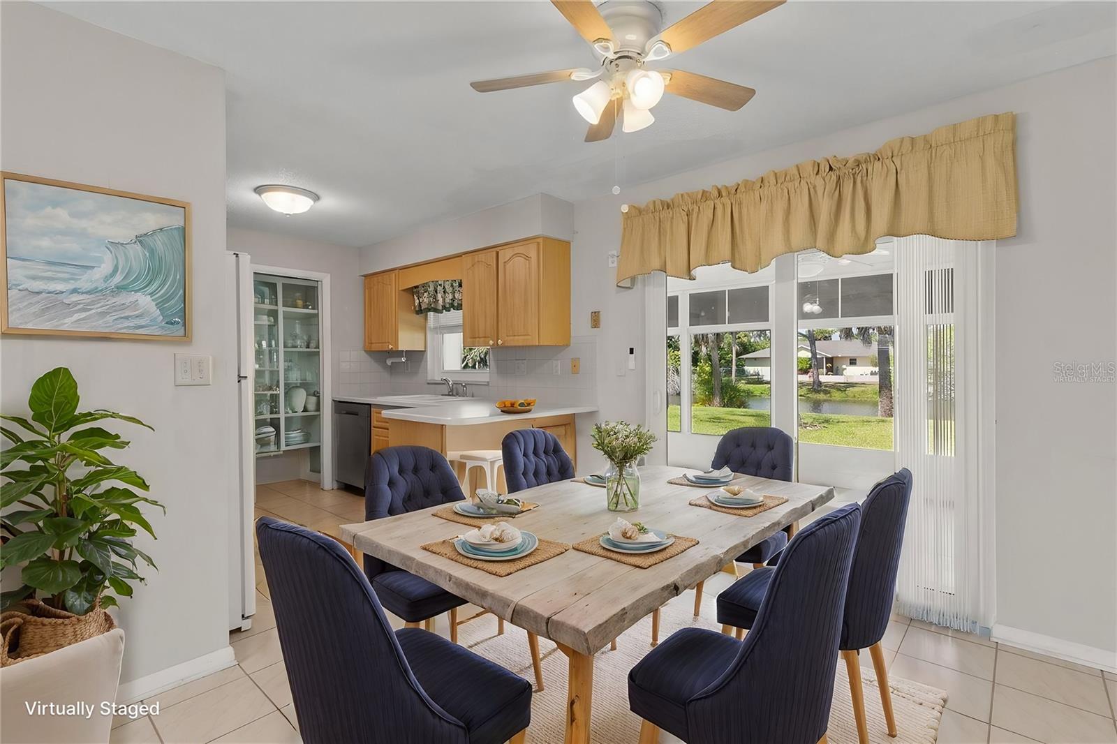 One or more photo(s) has been virtually staged. NO FLODD INSURANCE REQUIRED- X flood zone. Welcome to your waterfront retreat on the Elkham Waterway! This 2-bedroom, 2-bathroom home offers 1,039 square feet of thoughtfully designed living space. Inside, you'll find ceramic tile and wood-look vinyl flooring throughout, combining style with practicality. The kitchen is well-appointed with plenty of counter and cabinet space, along with essential appliances, including a microwave, range, refrigerator, and dishwasher. Ceiling fans in every room help keep the home cool and comfortable. Recent updates include IMPACT WINDOWS for added security and energy efficiency, a NEWER ROOF (2017), and an HVAC SYSTEM (2019). MOTORIZED SHADES and blinds on every window allow for easy control of light and privacy. Step outside to the expansive screened-in patio, where you can unwind and savor the peaceful canal views. Whether you're enjoying your morning coffee or relaxing after a long day, this outdoor space offers the perfect setting to take in the serene surroundings. A RENOVATED SHED provides extra storage space for your outdoor gear. The lawn SPRINKLER SYSTEM uses canal water to keep your yard lush and green while saving on water bills—an added bonus for this waterfront home. Situated in a quiet Port Charlotte neighborhood, this home is close to Neil Armstrong Elementary, local restaurants, medical facilities, shopping, and downtown Punta Gorda. The Punta Gorda Airport is also just a short drive away for added convenience. Don’t miss your chance to see this waterfront home—schedule your showing today! For a full video tour, check out Facebook at Findingtreasurerealtor.