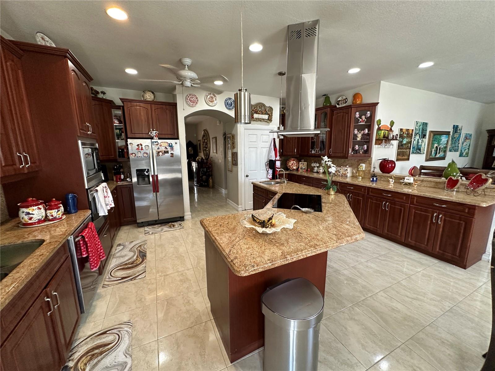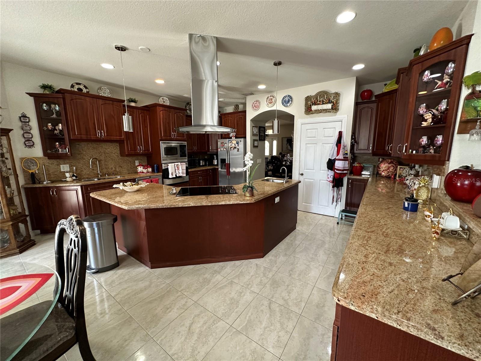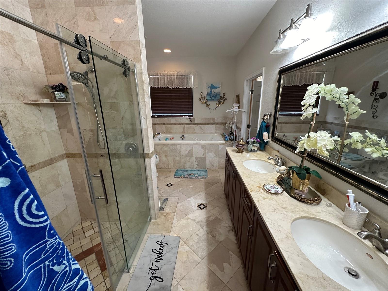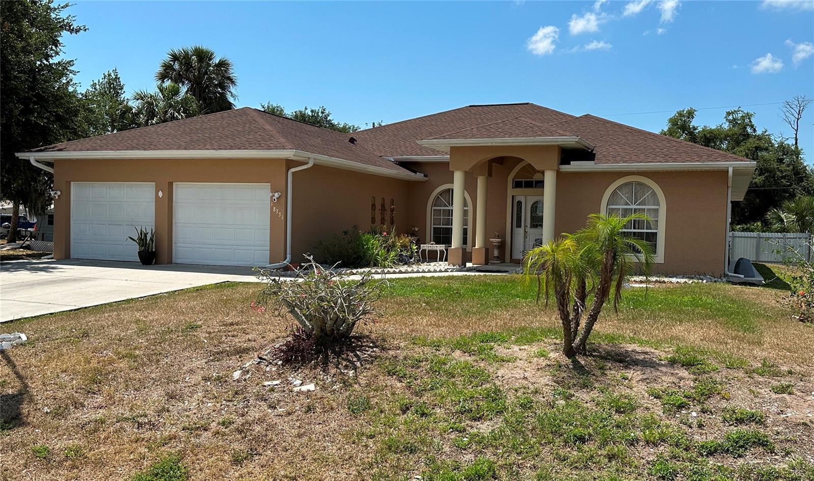 Click the Tour 1 icon above for the NARRATED VIDEO VIRTUAL TOUR, not just the same still photos! The expansive front porch/patio not only welcomes all visitors, but it is also the perfect place to relax and interact with the neighbors. The kitchen and master bedroom are so splendidly set up that it is hard to decide which is best. There is an unusual amount of laddered, 42” wall cabinets, a large center island, and just think of all the base cabinet storage sitting under approximately 30 running feet of granite countertops. Add in the wall microwave, wall oven, countertop range, and pantry closet to make a sensational kitchen. The master bedroom is graced by matching his/hers walk-in closets and a truly large additional closet with much hanging space, shelf space, and a makeup desk. Its ensuite bathroom features a large jacuzzi tub, bidet, dual shower heads and controls, and an 8’ long comfort-height vanity with dual sinks. What lady of the house would not be enthralled with this kitchen and bedroom setup? Bedrooms 2 and 3 have extra long closets, and 3 is made all the more livable with its own ensuite shower bath. The hall bath has a tub for washing youngsters or soaking odd items. Need a 4th bedroom? Just add a closet and door to the living room – the family room gives sufficient living space. Added to the vast closet space in this lovely home are a storeroom with wall cabinets and pull-down attic stairs in the oversized garage. The extra lot has a paving stone parking pad which is perfect for that boat or RV, lots of shade, and a 10’ X 18’ storage shed. The security cameras add to the family’s protection and are set up to be monitored by phone – never miss a thing. This property comes with a ONE YEAR HOME WARRANTY. Much, MUCH MORE INFO is attached – ask your agent for copies, especially the FEATURES LIST AND WARRANTY.