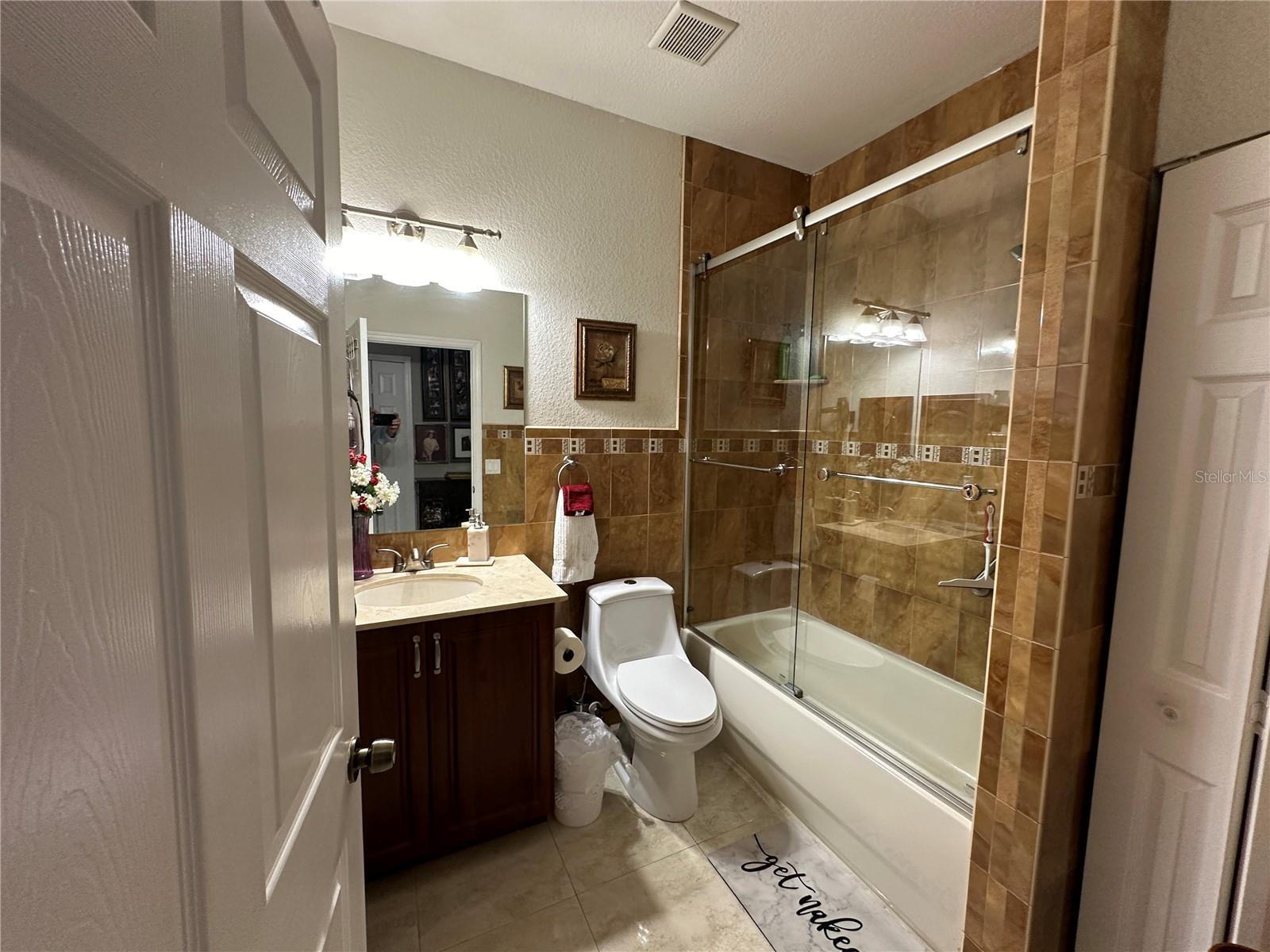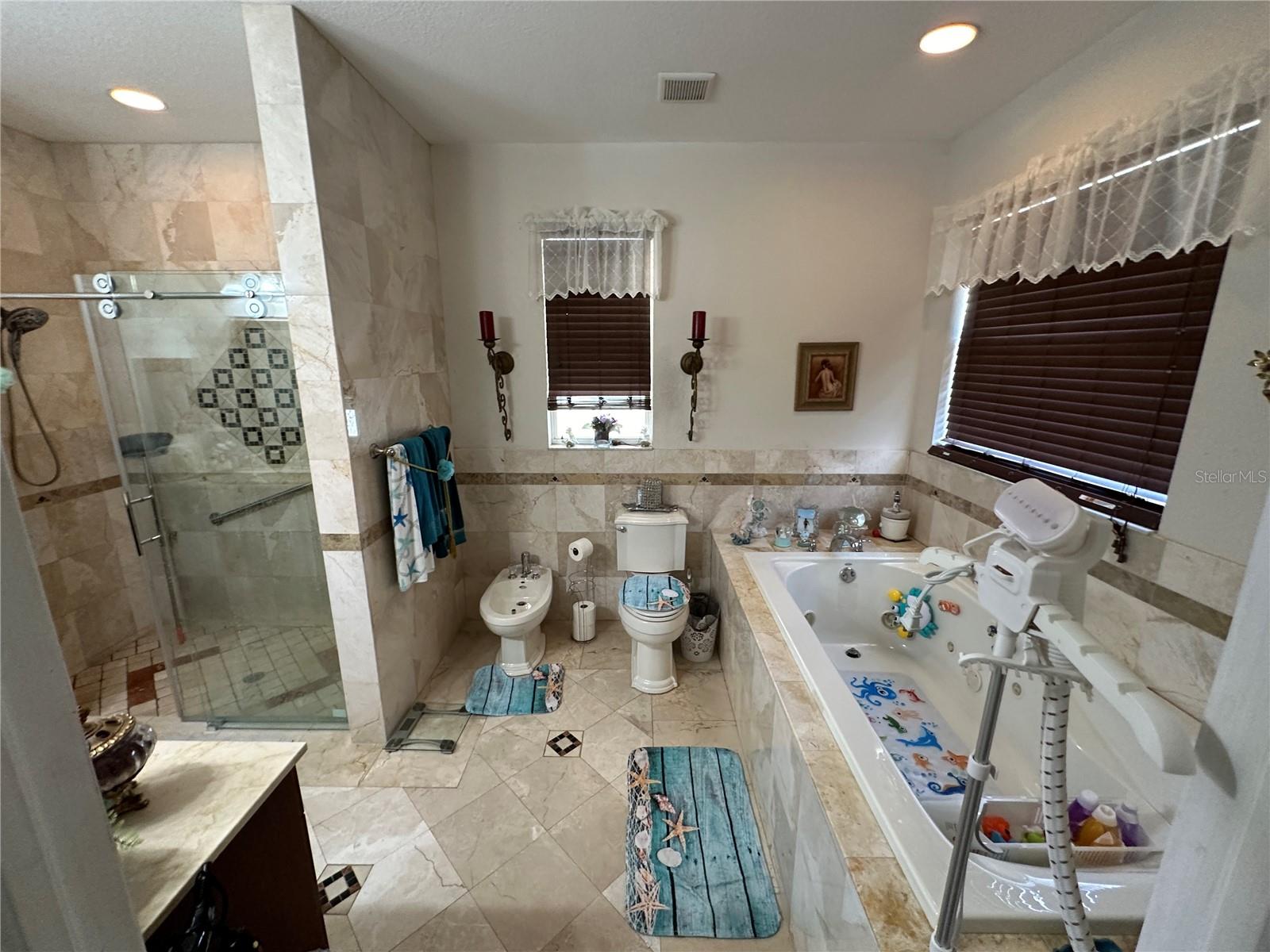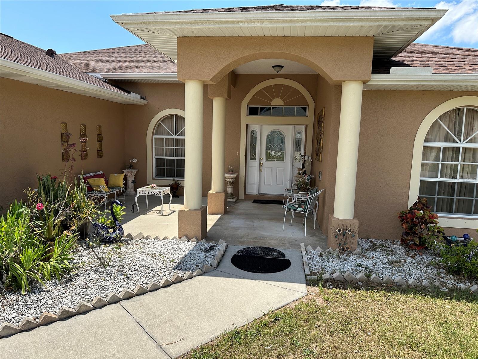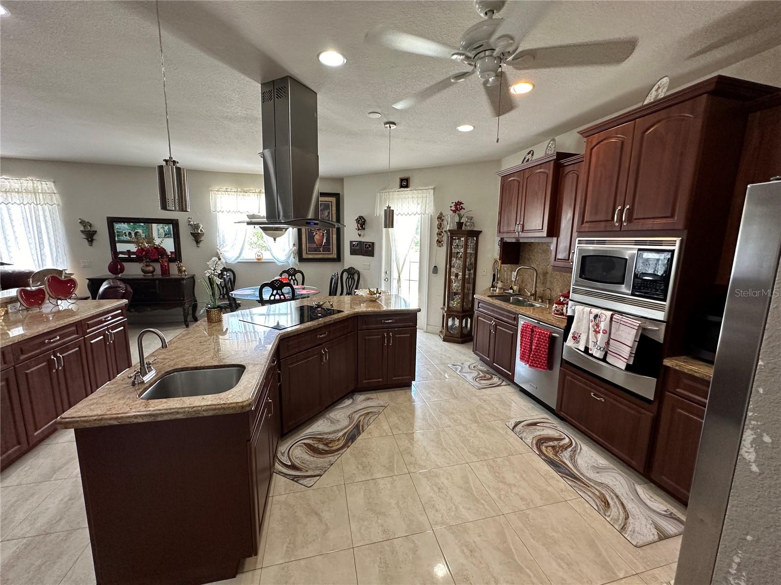 Click the Tour 1 icon above for the NARRATED VIDEO VIRTUAL TOUR, not just the same still photos! The expansive front porch/patio not only welcomes all visitors, but it is also the perfect place to relax and interact with the neighbors. The kitchen and master bedroom are so splendidly set up that it is hard to decide which is best. There is an unusual amount of laddered, 42” wall cabinets, a large center island, and just think of all the base cabinet storage sitting under approximately 30 running feet of granite countertops. Add in the wall microwave, wall oven, countertop range, and pantry closet to make a sensational kitchen. The master bedroom is graced by matching his/hers walk-in closets and a truly large additional closet with much hanging space, shelf space, and a makeup desk. Its ensuite bathroom features a large jacuzzi tub, bidet, dual shower heads and controls, and an 8’ long comfort-height vanity with dual sinks. What lady of the house would not be enthralled with this kitchen and bedroom setup? Bedrooms 2 and 3 have extra long closets, and 3 is made all the more livable with its own ensuite shower bath. The hall bath has a tub for washing youngsters or soaking odd items. Need a 4th bedroom? Just add a closet and door to the living room – the family room gives sufficient living space. Added to the vast closet space in this lovely home are a storeroom with wall cabinets and pull-down attic stairs in the oversized garage. The extra lot has a paving stone parking pad which is perfect for that boat or RV, lots of shade, and a 10’ X 18’ storage shed. The security cameras add to the family’s protection and are set up to be monitored by phone – never miss a thing. This property comes with a ONE YEAR HOME WARRANTY. Much, MUCH MORE INFO is attached – ask your agent for copies, especially the FEATURES LIST AND WARRANTY.